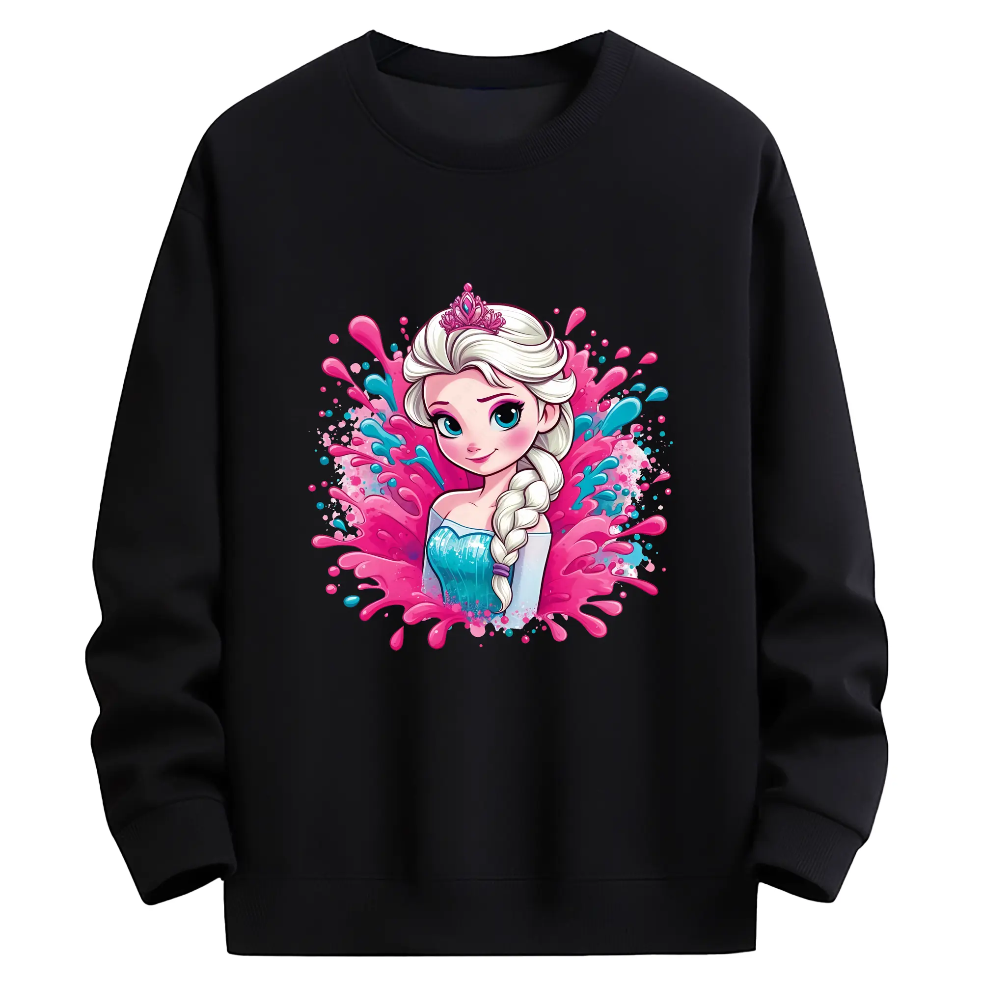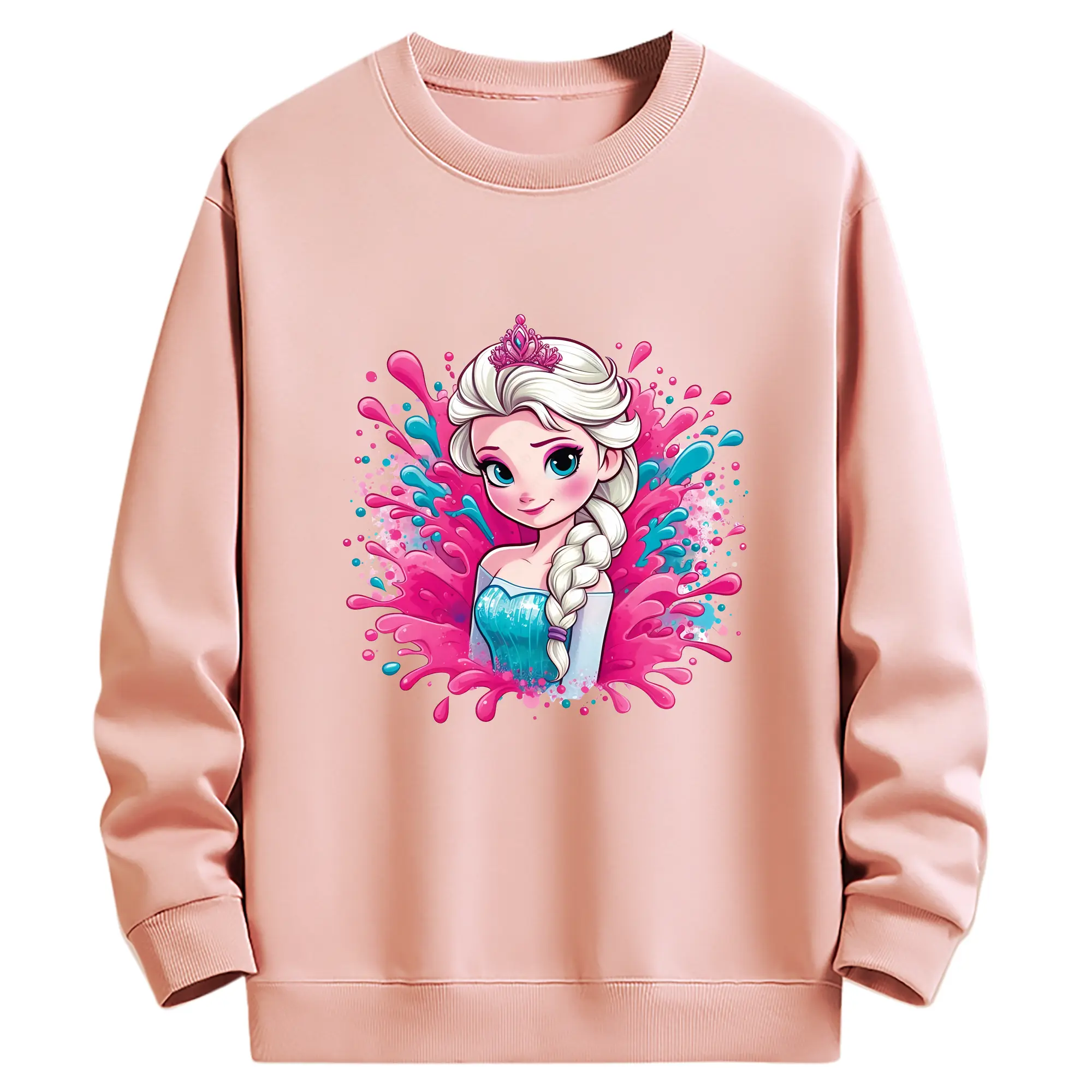 アナと雪の女王(Frozen) グッズ エルサ(Elsa) - 高品質 クルーネック スウェット ・ コットン59% ポリエステル41% ・ ユニセックス 長袖 トレーナー ・ カジュアル デイリー スポーツ 散歩用