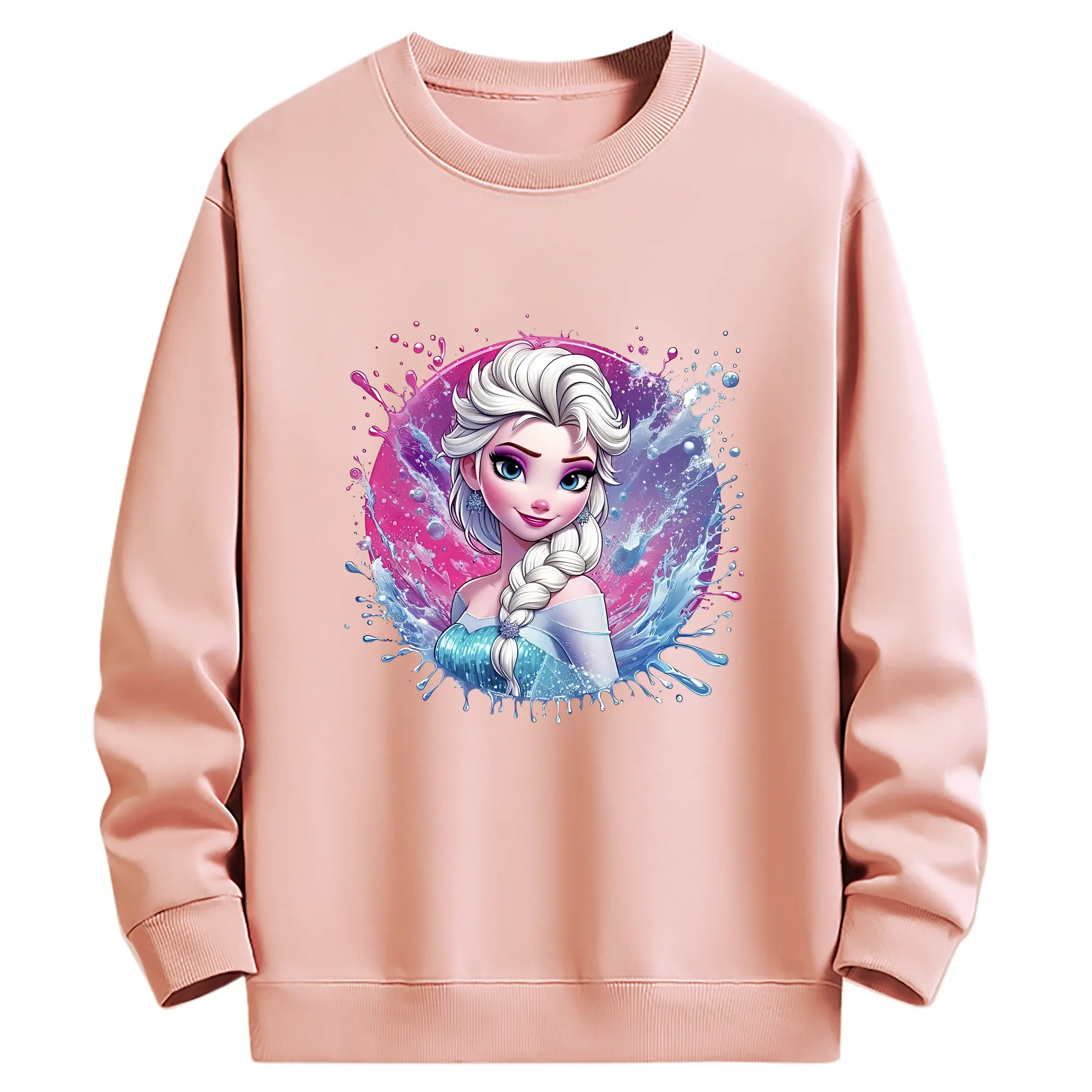 アナと雪の女王(Frozen) グッズ エルサ(Elsa) - 薄手 クルーネック スウェット 裏毛260g · ポリエステル 春秋向け カジュアル 男女兼用 · トレーナー デイリー スポーツ 散歩に最適
