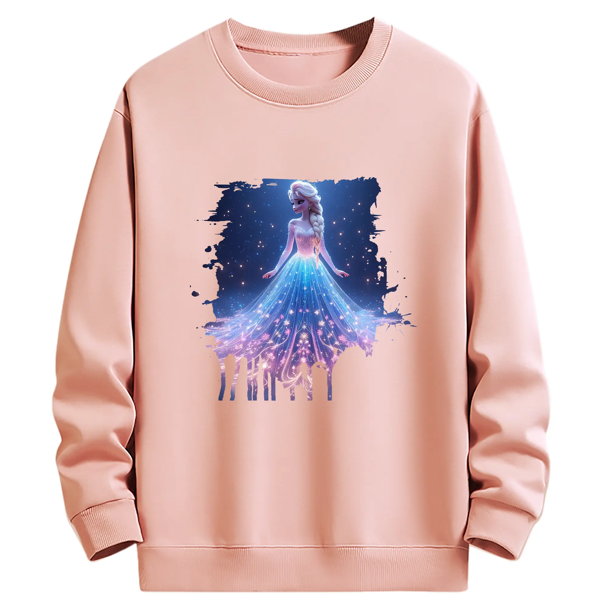 アナと雪の女王(Frozen) グッズ エルサ(Elsa) - 薄手 クルーネック スウェット 裏毛260g · ポリエステル 春秋向け カジュアル 男女兼用 · トレーナー デイリー スポーツ 散歩に最適