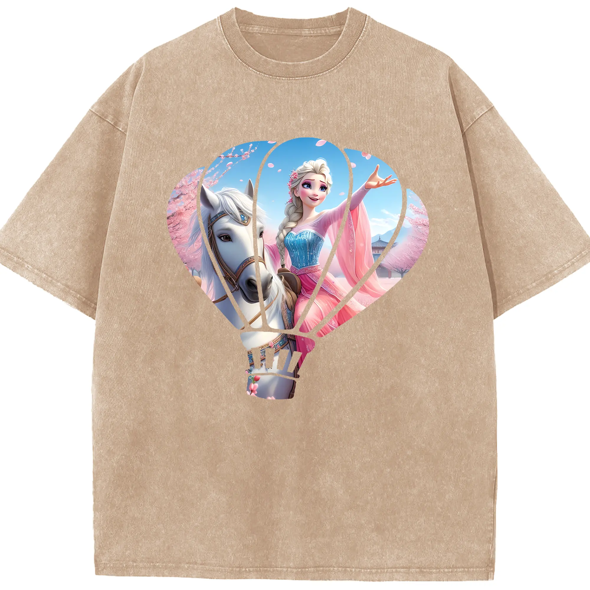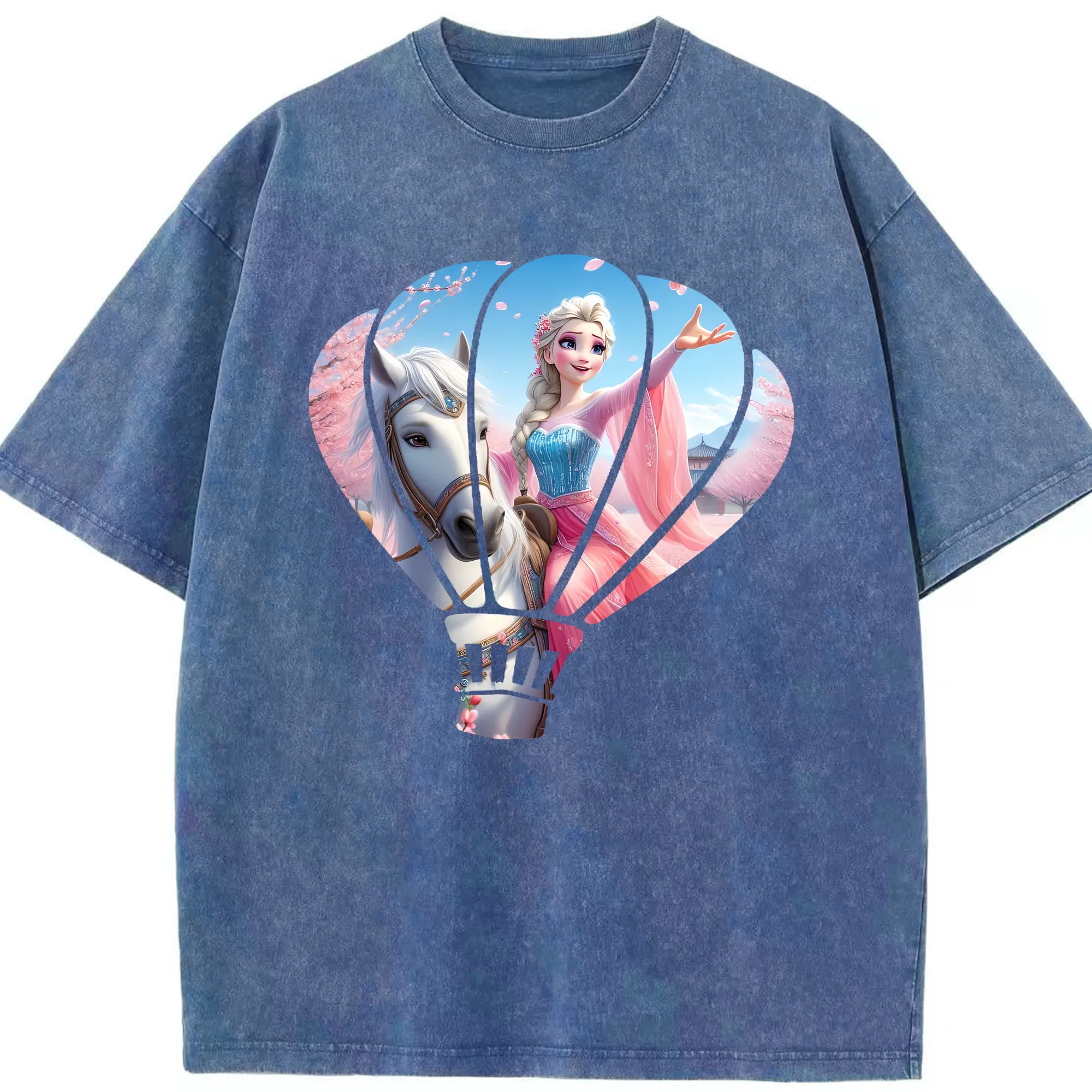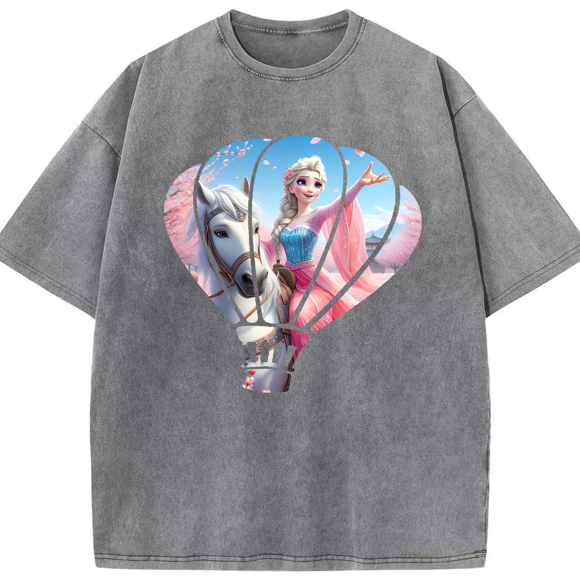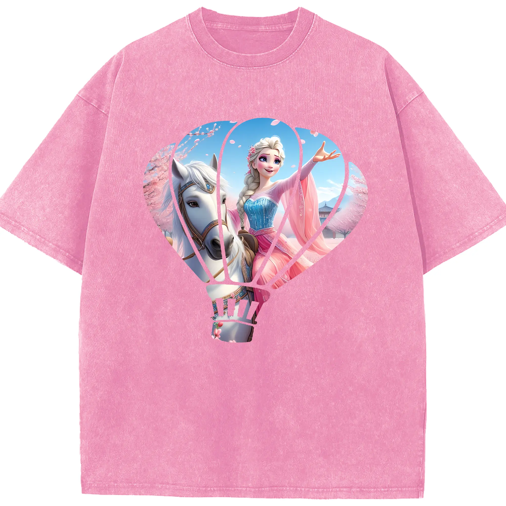 アナと雪の女王(Frozen) グッズ エルサ(Elsa) - 綿100% ヴィンテージ風 半袖Tシャツ ・ 背面プリント ・ 柔らか肌触り ・ 通気性 快適 ・ スポーツ カジュアル 外出用
