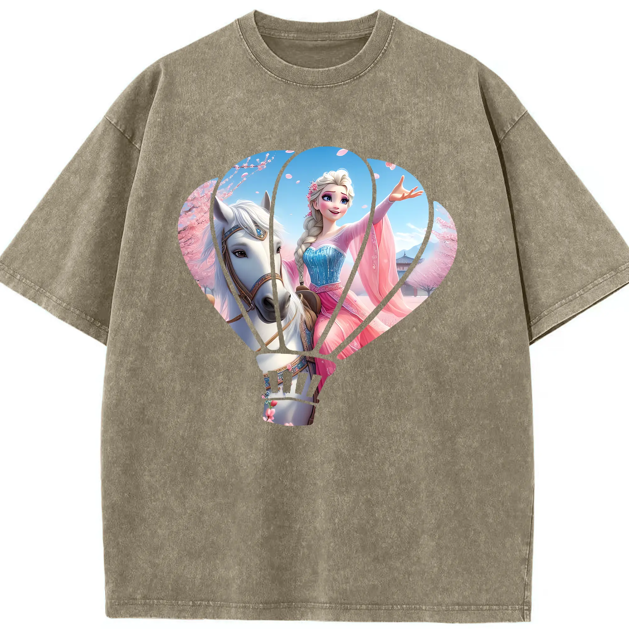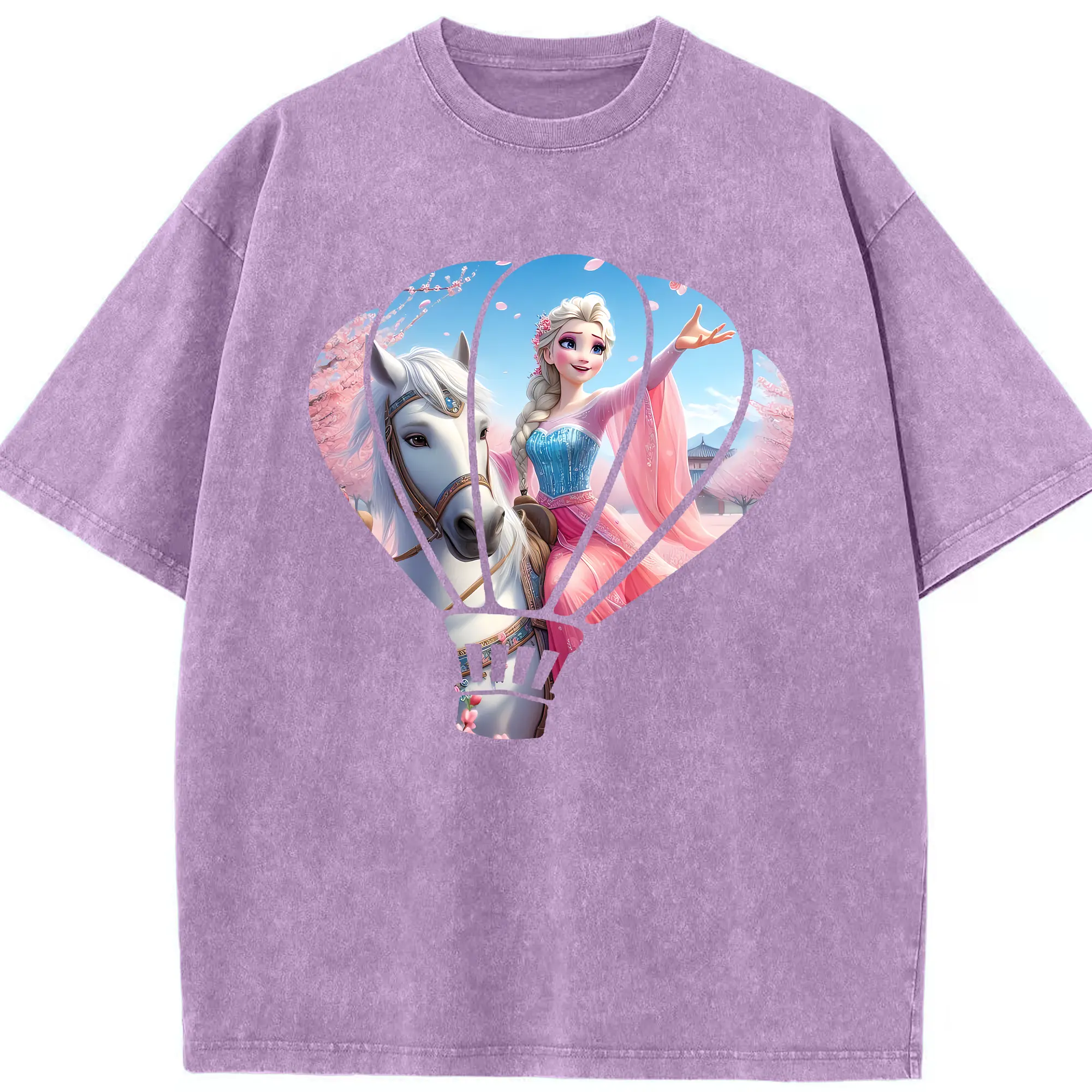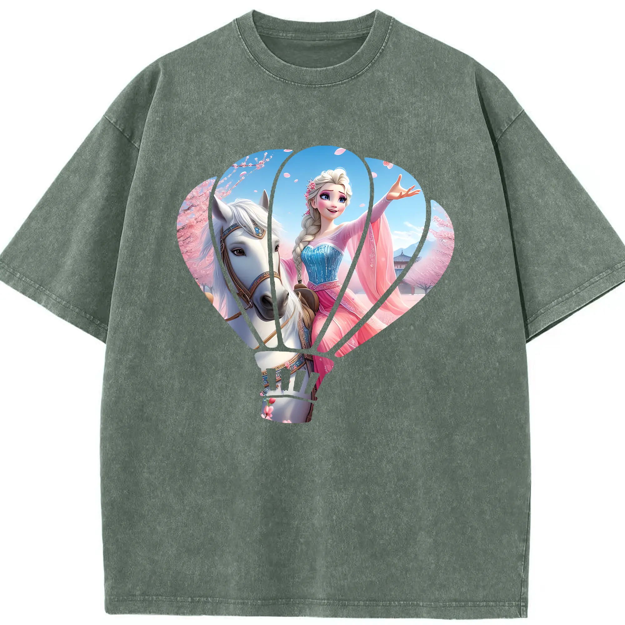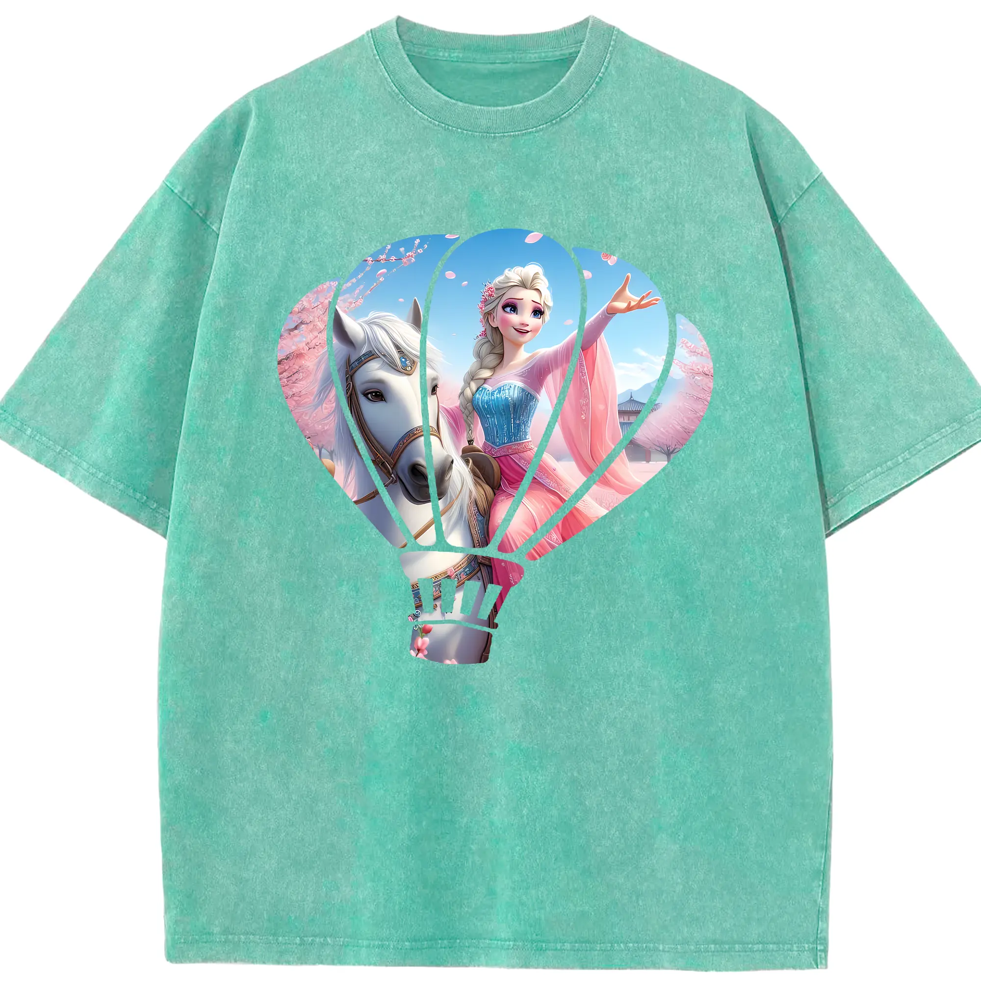 アナと雪の女王(Frozen) グッズ エルサ(Elsa) - 綿100% ヴィンテージ風 半袖Tシャツ ・ 背面プリント ・ 柔らか肌触り ・ 通気性 快適 ・ スポーツ カジュアル 外出用