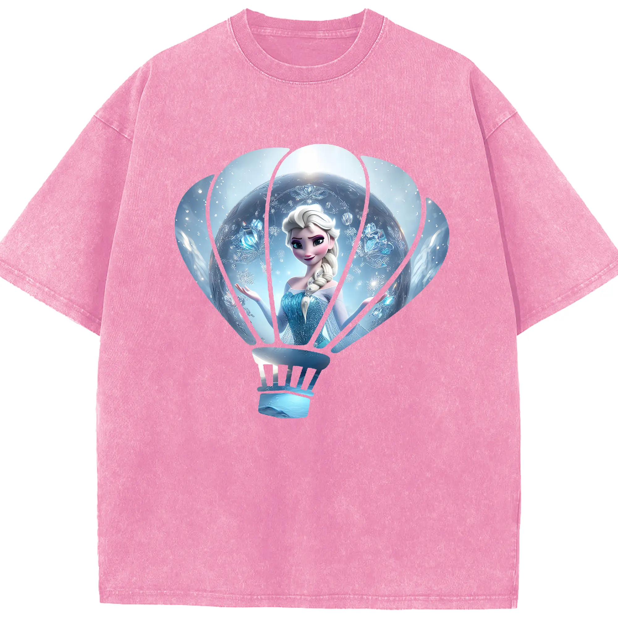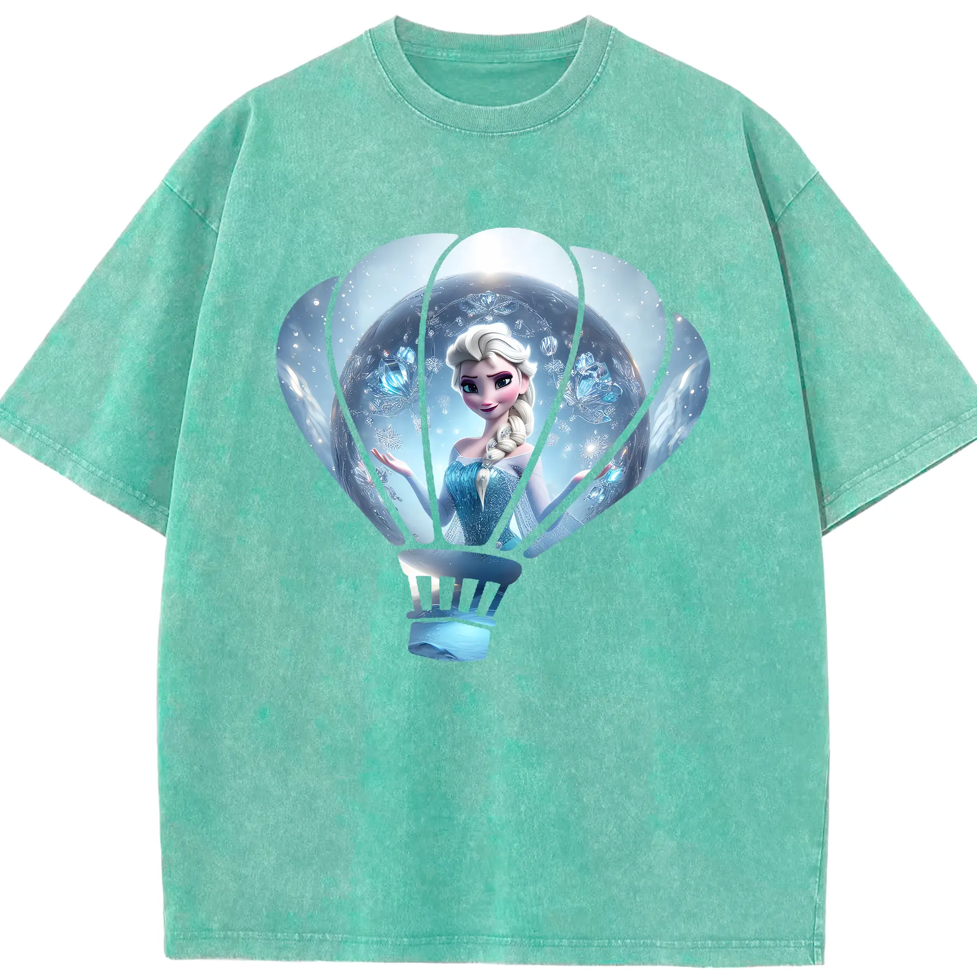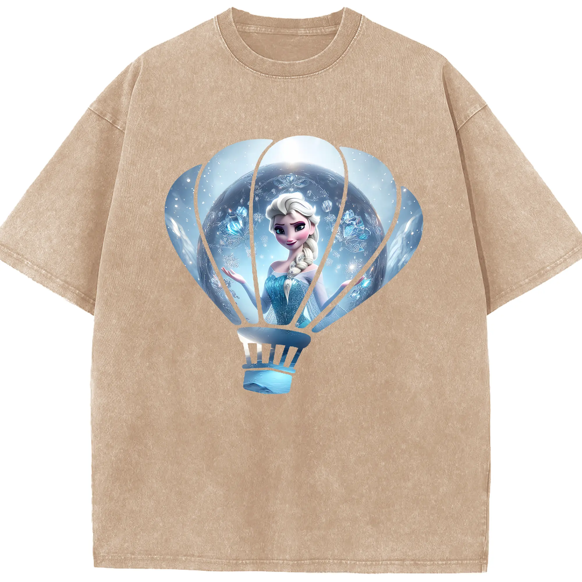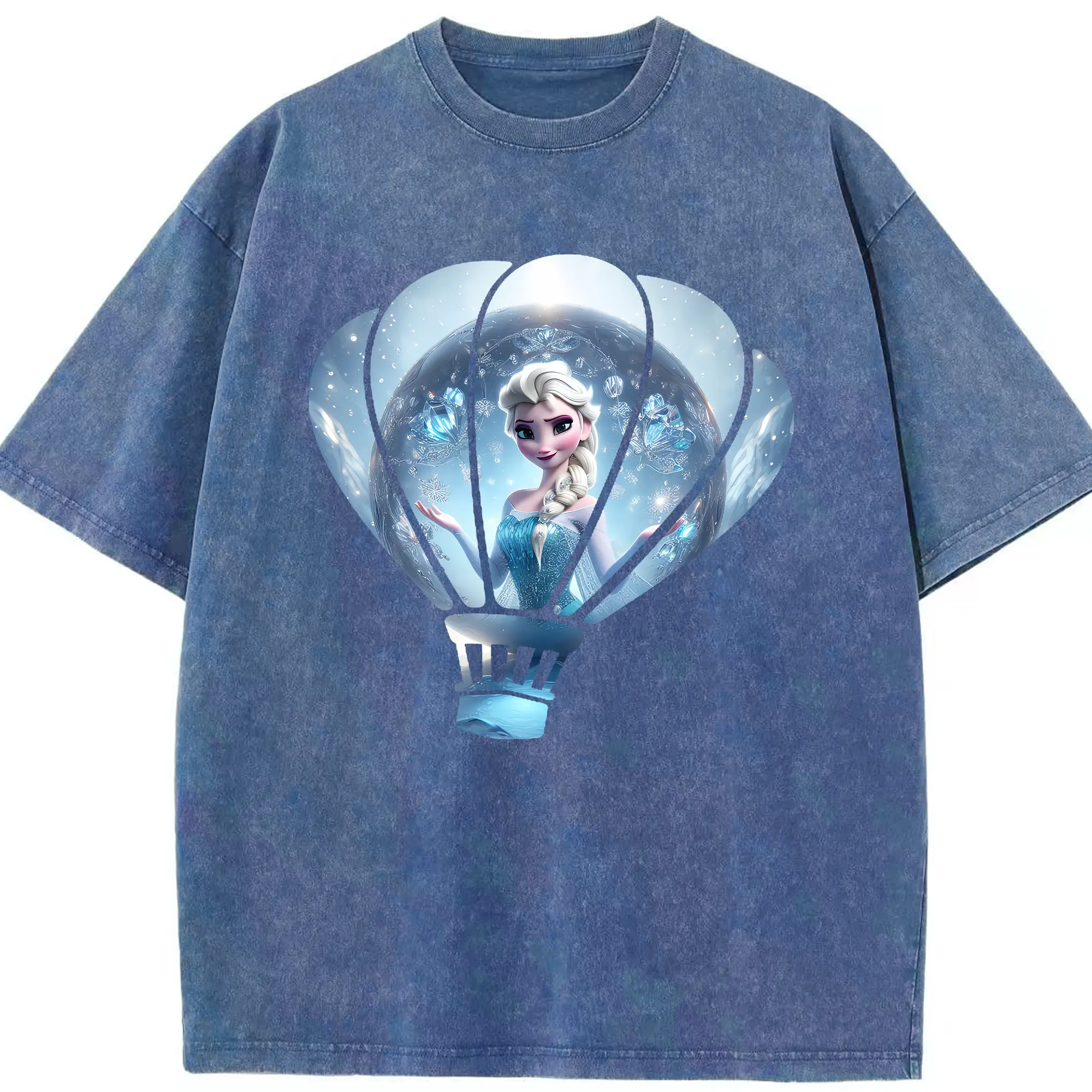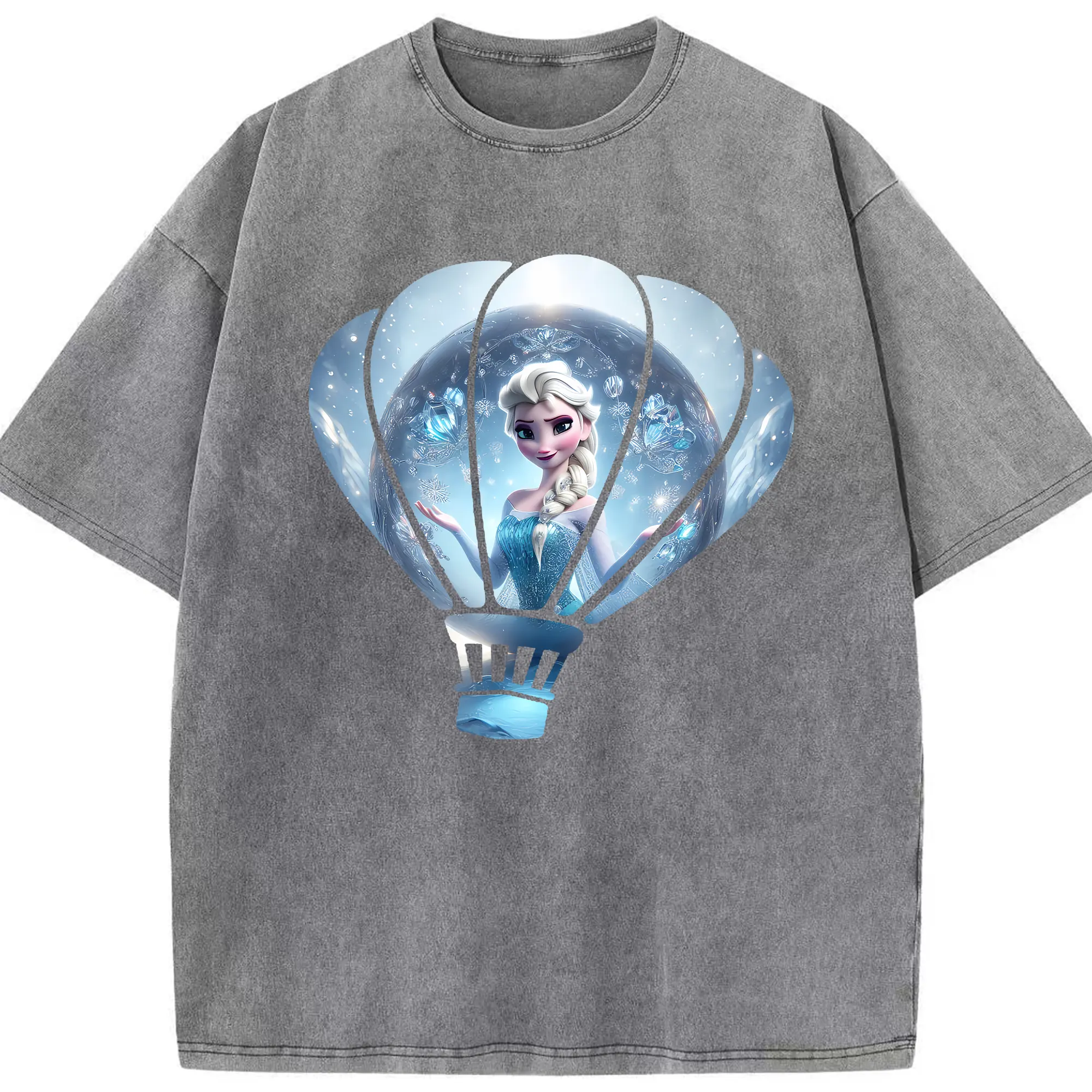 アナと雪の女王(Frozen) グッズ エルサ(Elsa) - 綿100% ヴィンテージ風 半袖Tシャツ ・ 背面プリント ・ 柔らか肌触り ・ 通気性 快適 ・ スポーツ カジュアル 外出用