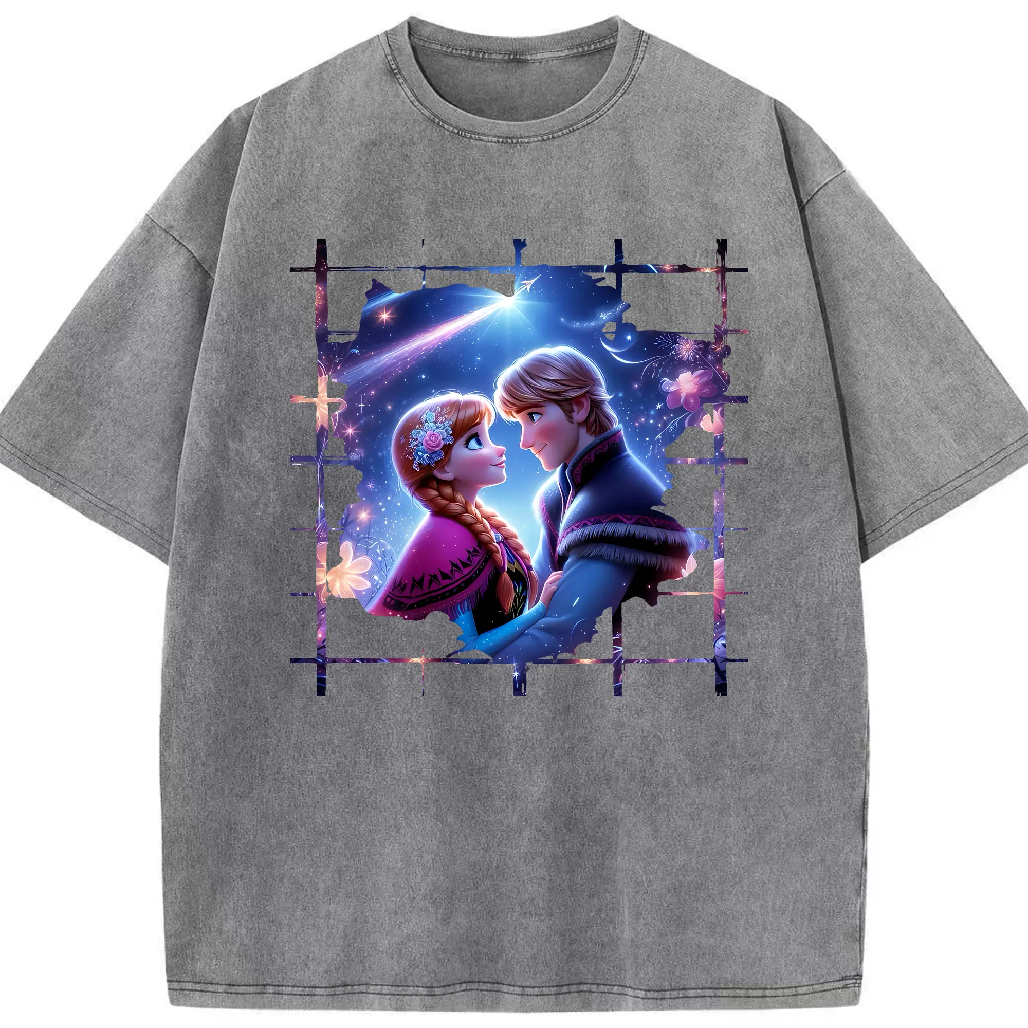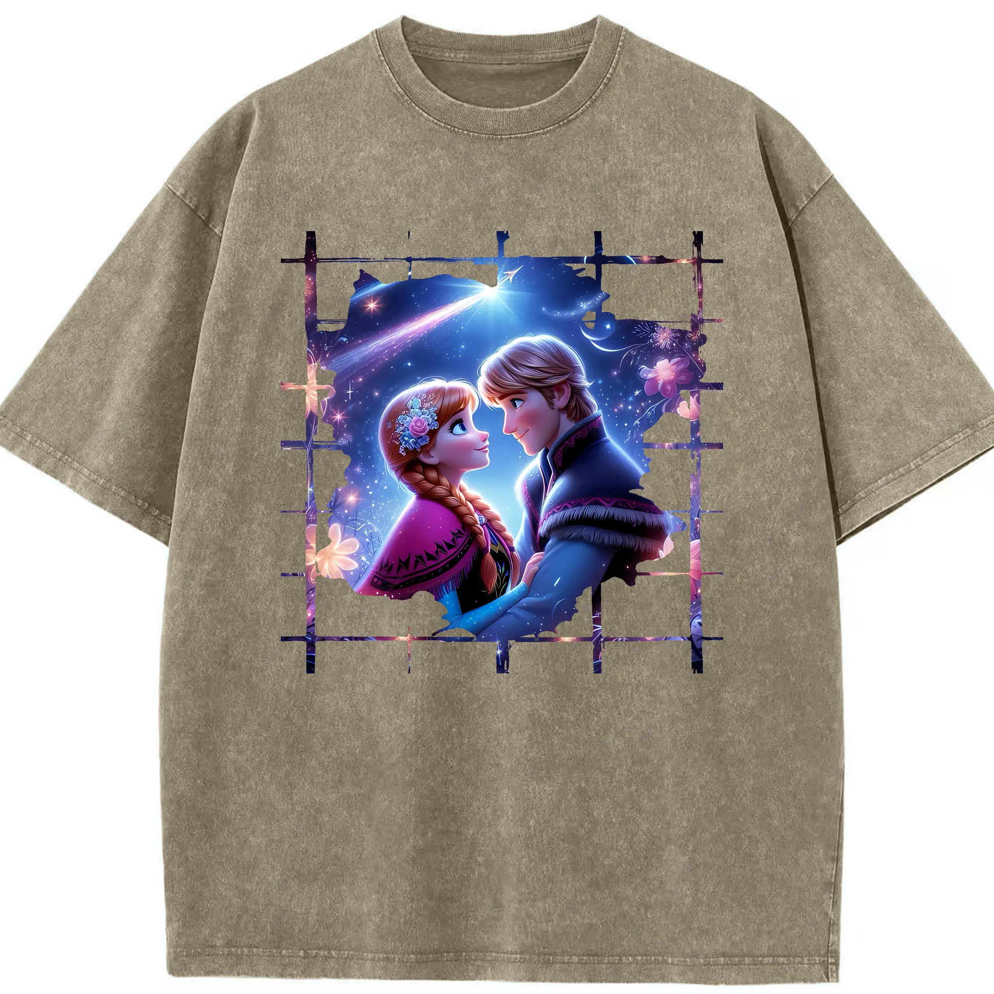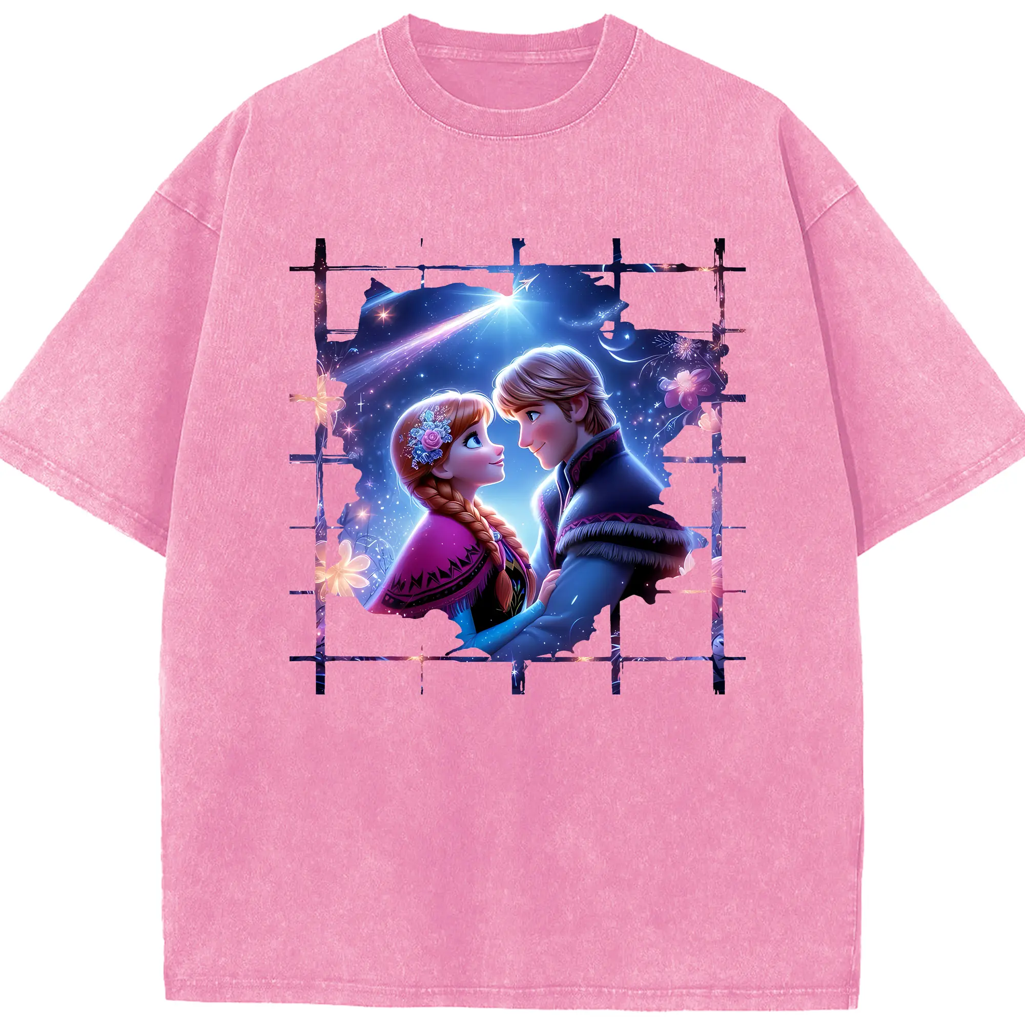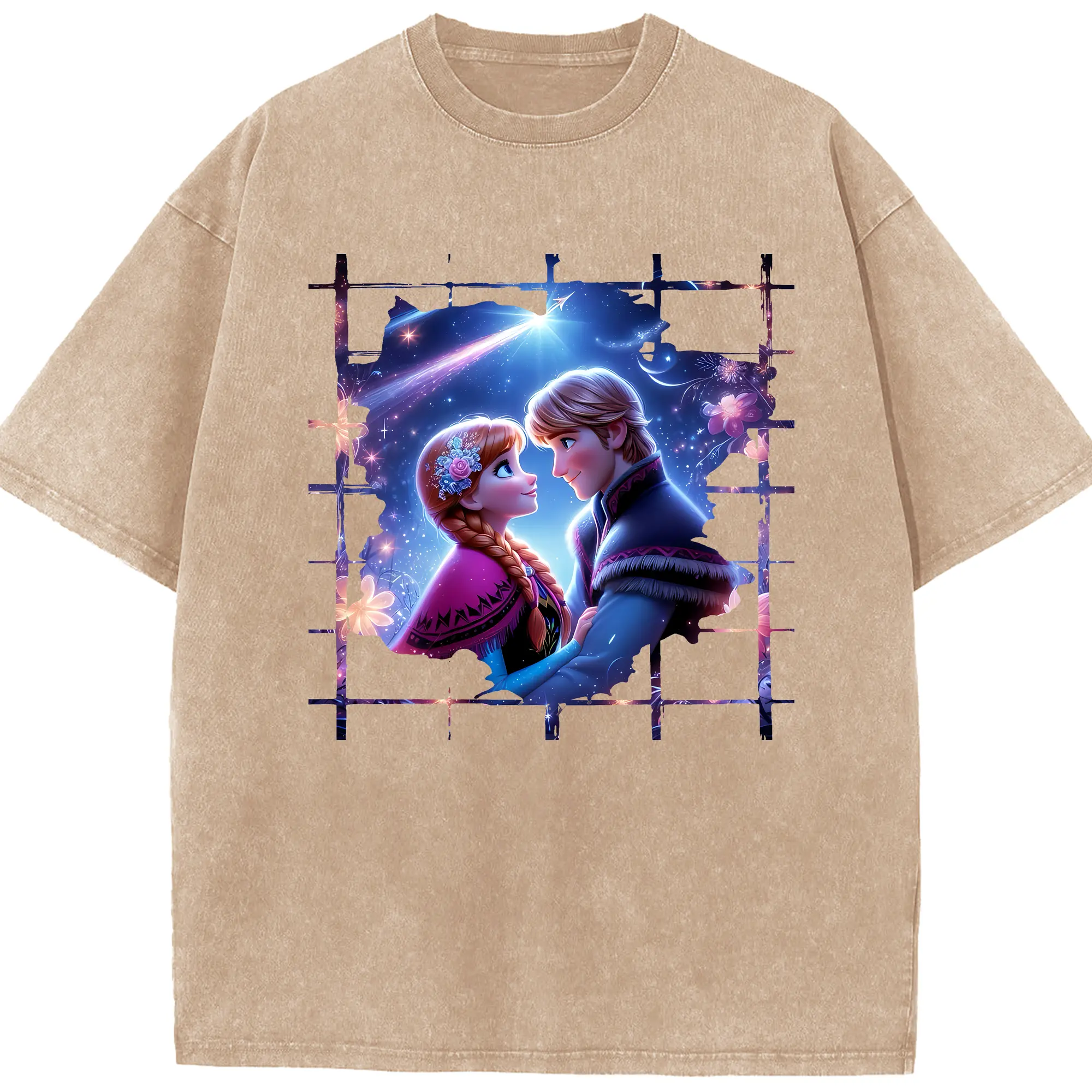 アナと雪の女王(Frozen) グッズ エルサ(Elsa) - 綿100% ヴィンテージ風 半袖Tシャツ ・ 背面プリント ・ 柔らか肌触り ・ 通気性 快適 ・ スポーツ カジュアル 外出用
