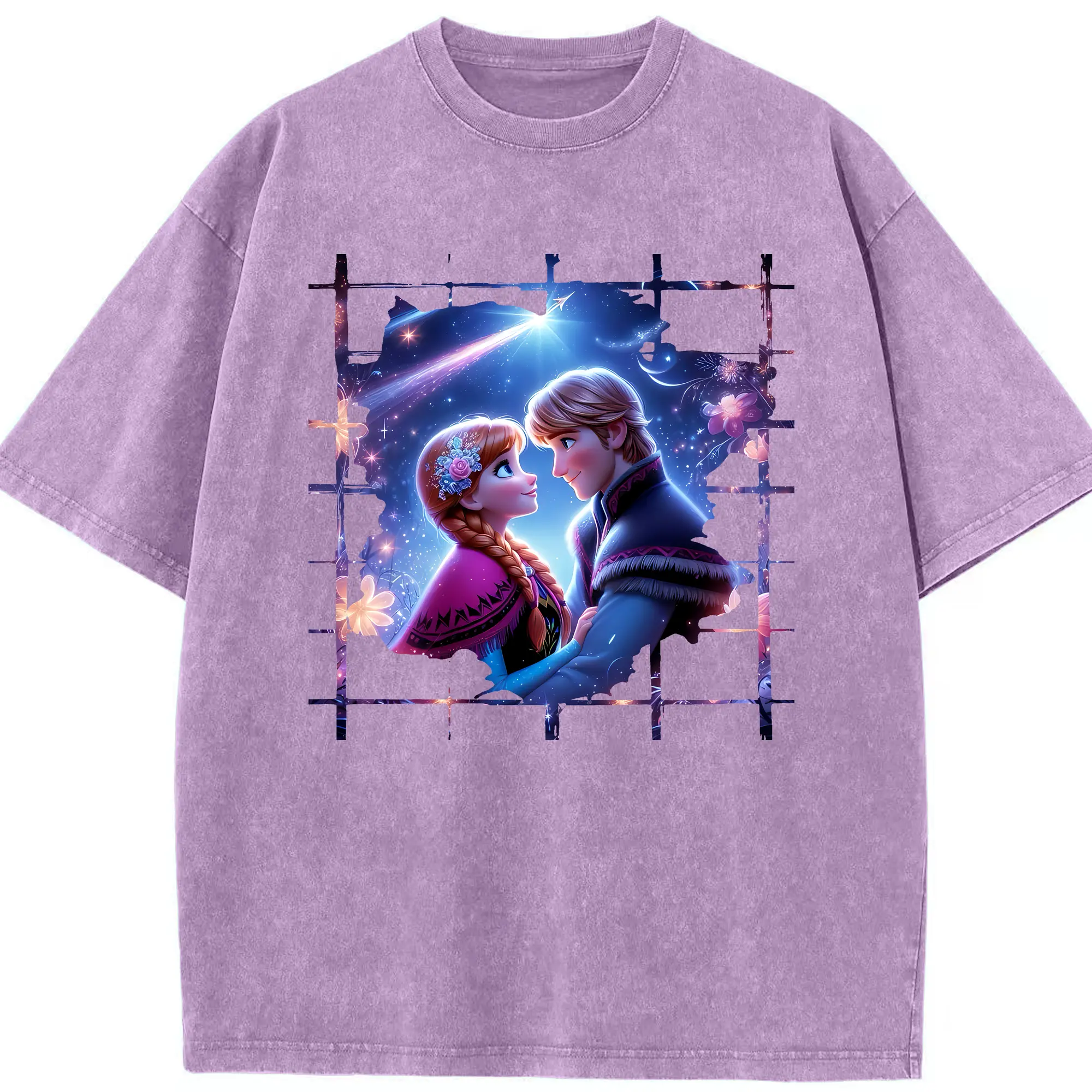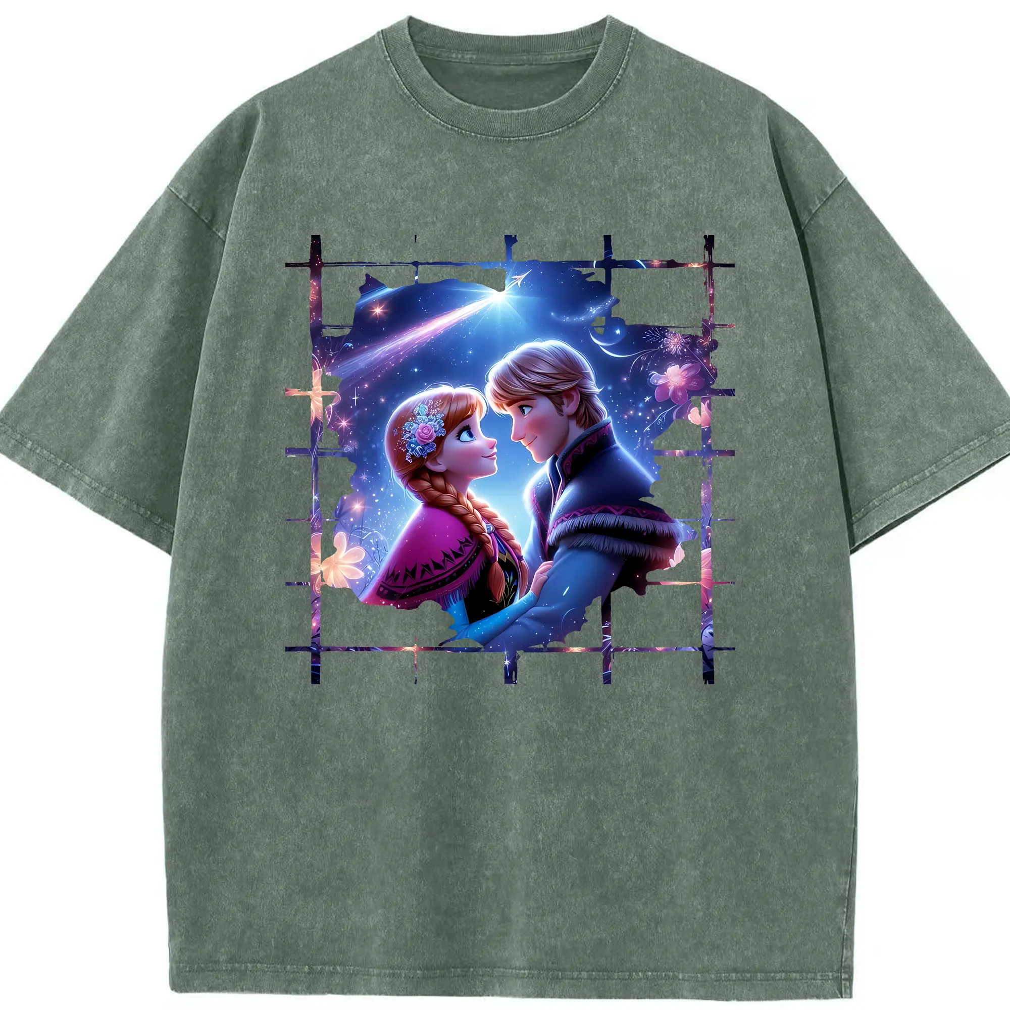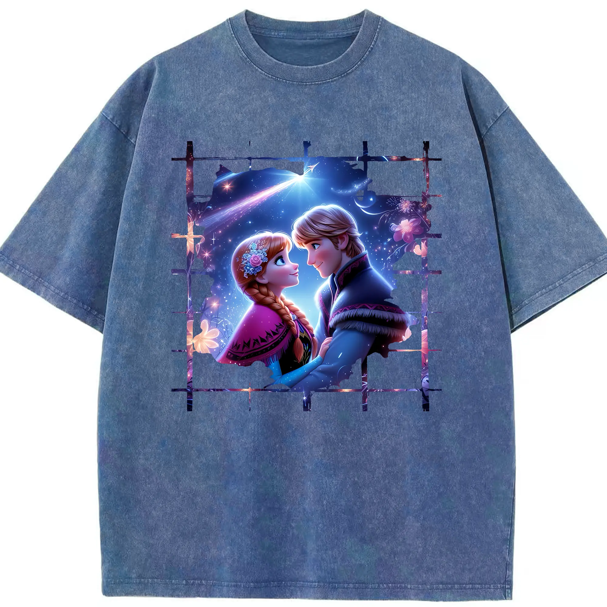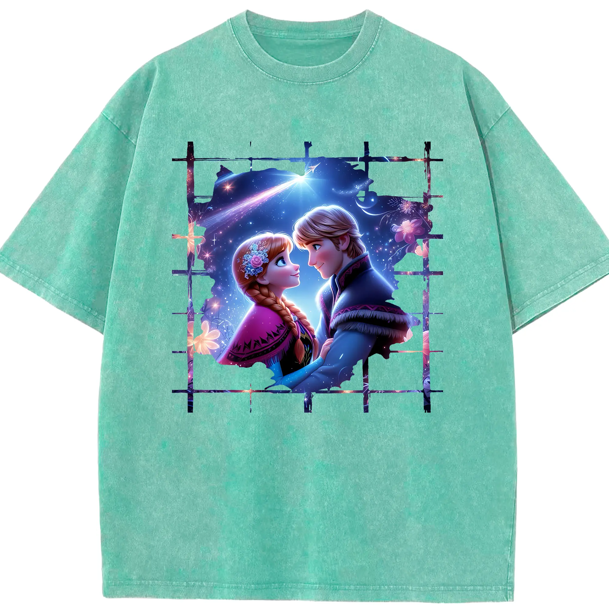 アナと雪の女王(Frozen) グッズ エルサ(Elsa) - 綿100% ヴィンテージ風 半袖Tシャツ ・ 背面プリント ・ 柔らか肌触り ・ 通気性 快適 ・ スポーツ カジュアル 外出用