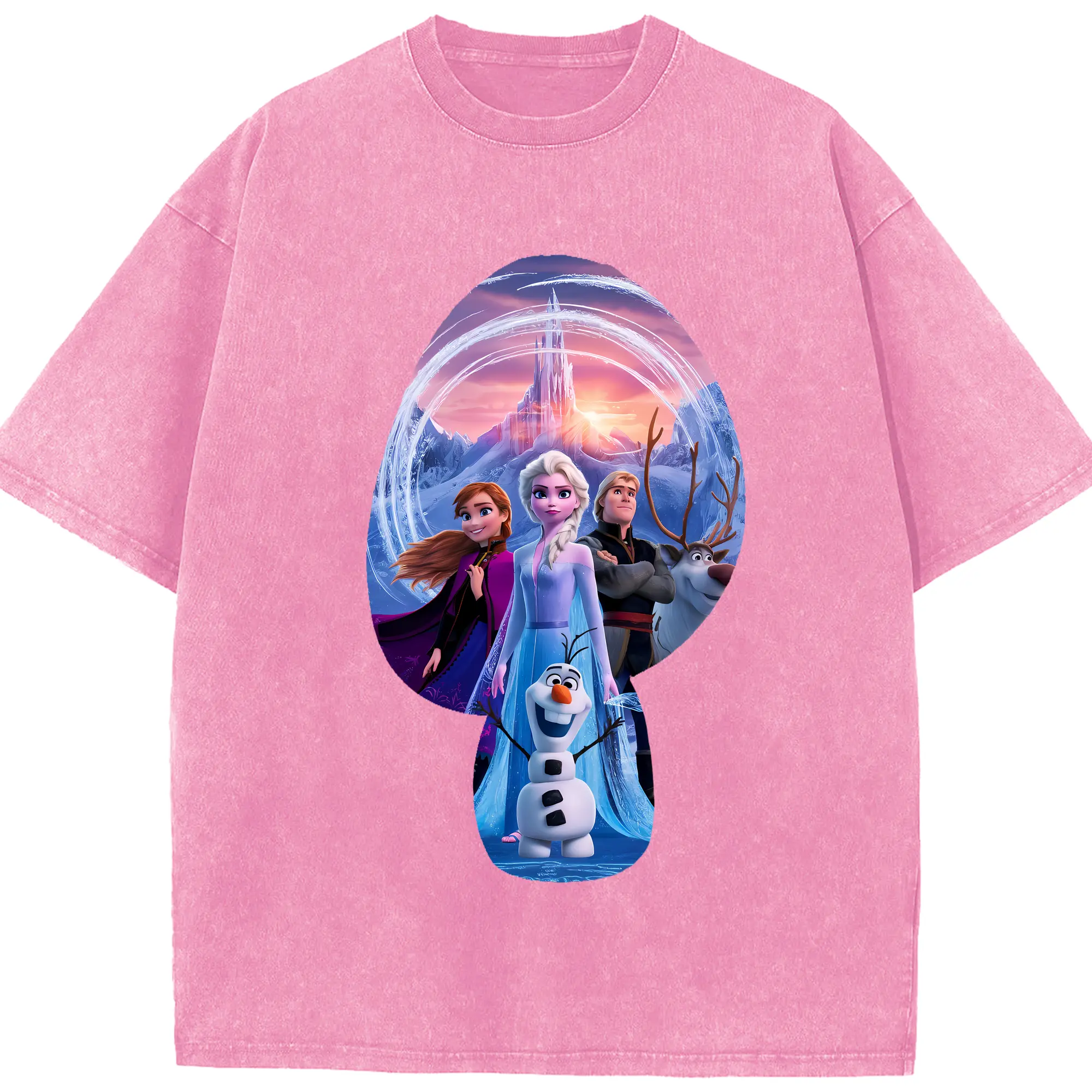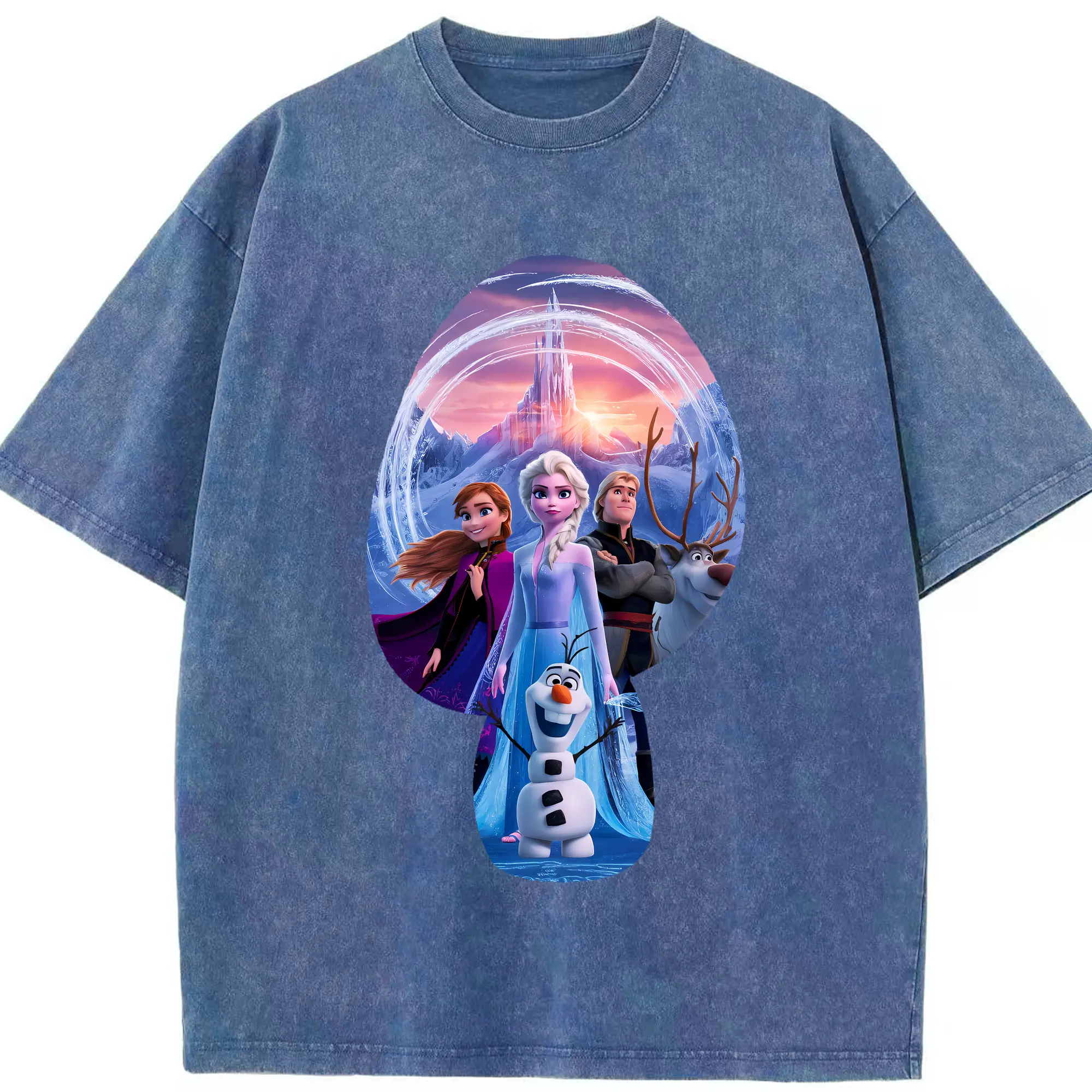 アナと雪の女王(Frozen) グッズ エルサ(Elsa) - 綿100% ヴィンテージ風 半袖Tシャツ ・ 背面プリント ・ 柔らか肌触り ・ 通気性 快適 ・ スポーツ カジュアル 外出用