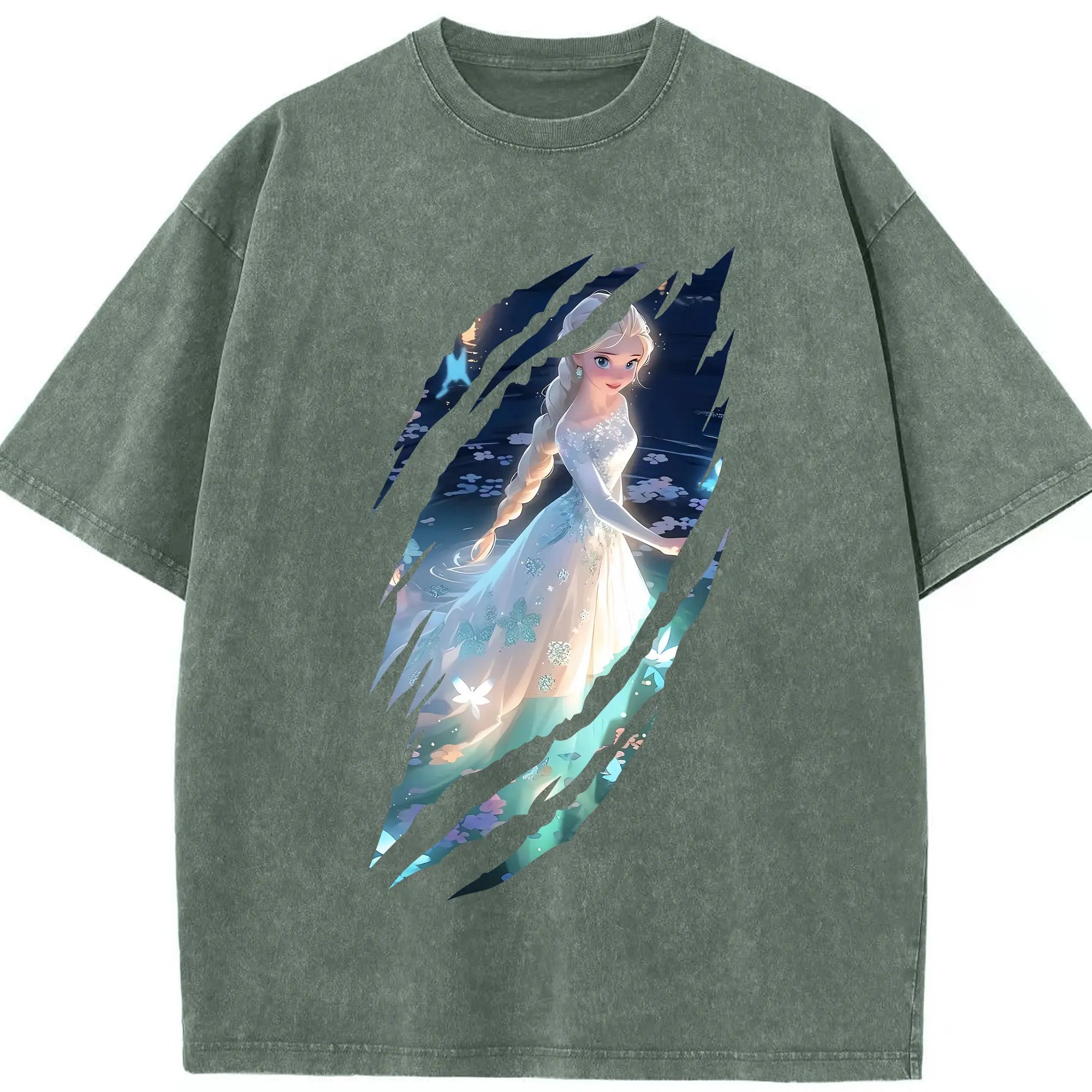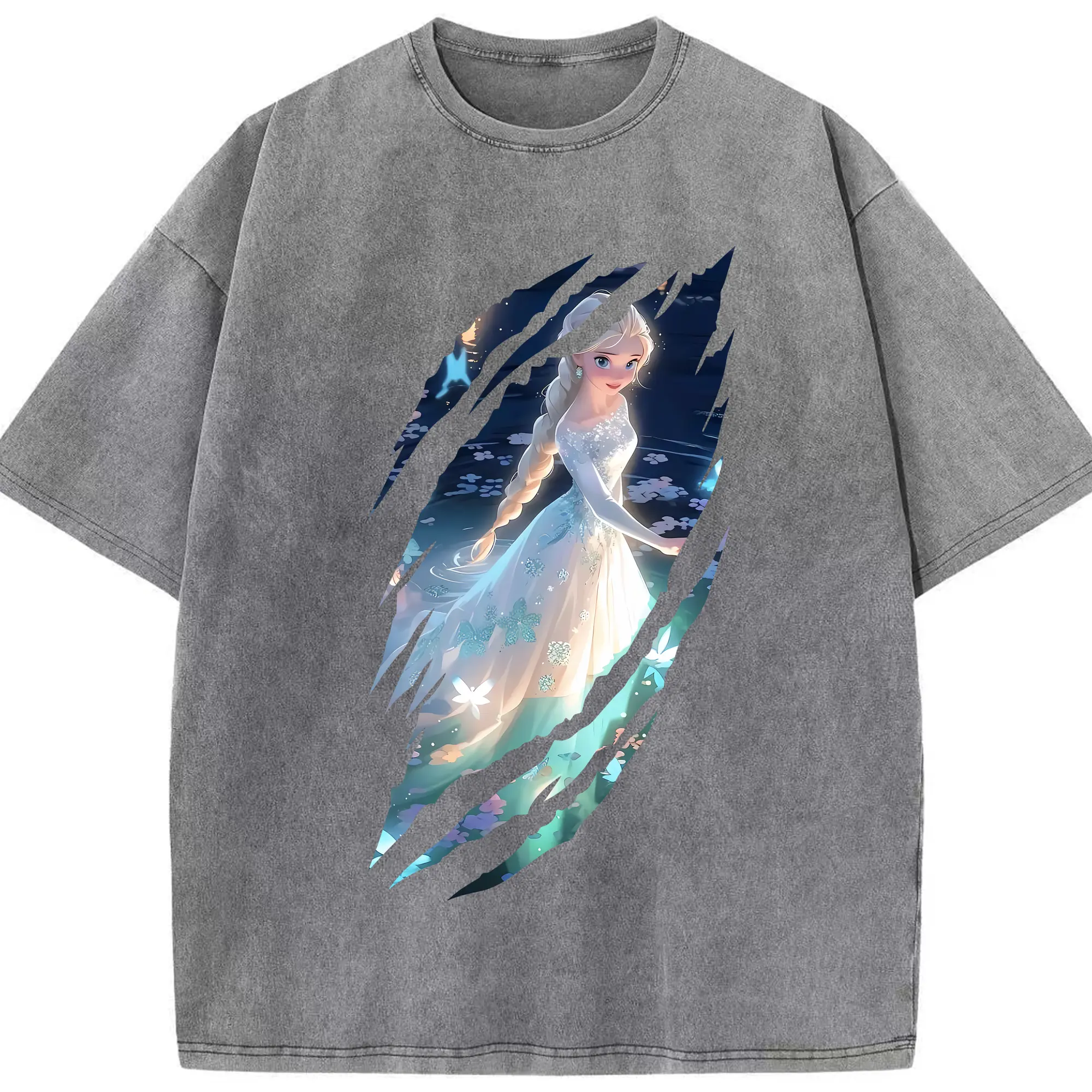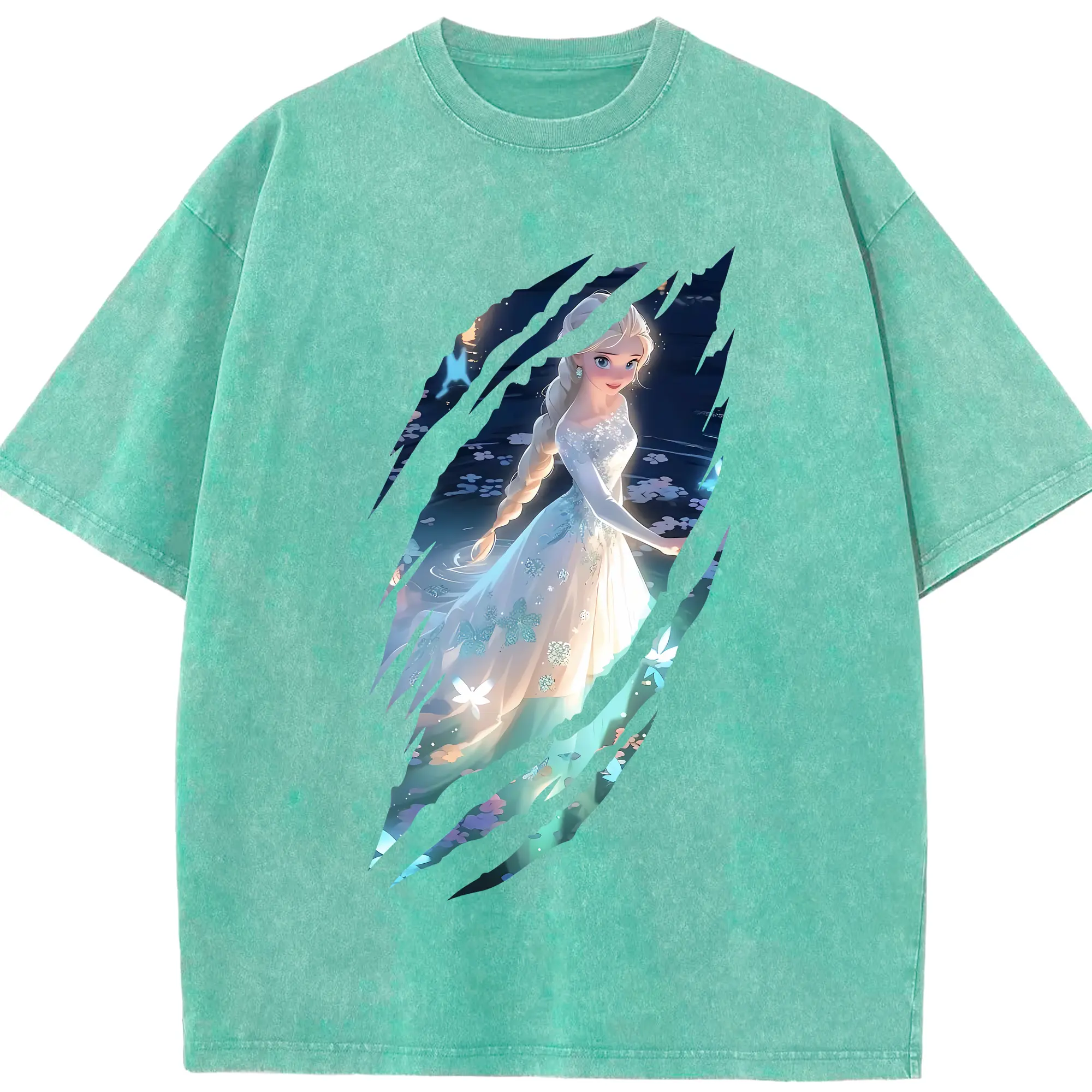アナと雪の女王(Frozen) グッズ エルサ(Elsa) - 綿100% ヴィンテージ風 半袖Tシャツ ・ 背面プリント ・ 柔らか肌触り ・ 通気性 快適 ・ スポーツ カジュアル 外出用