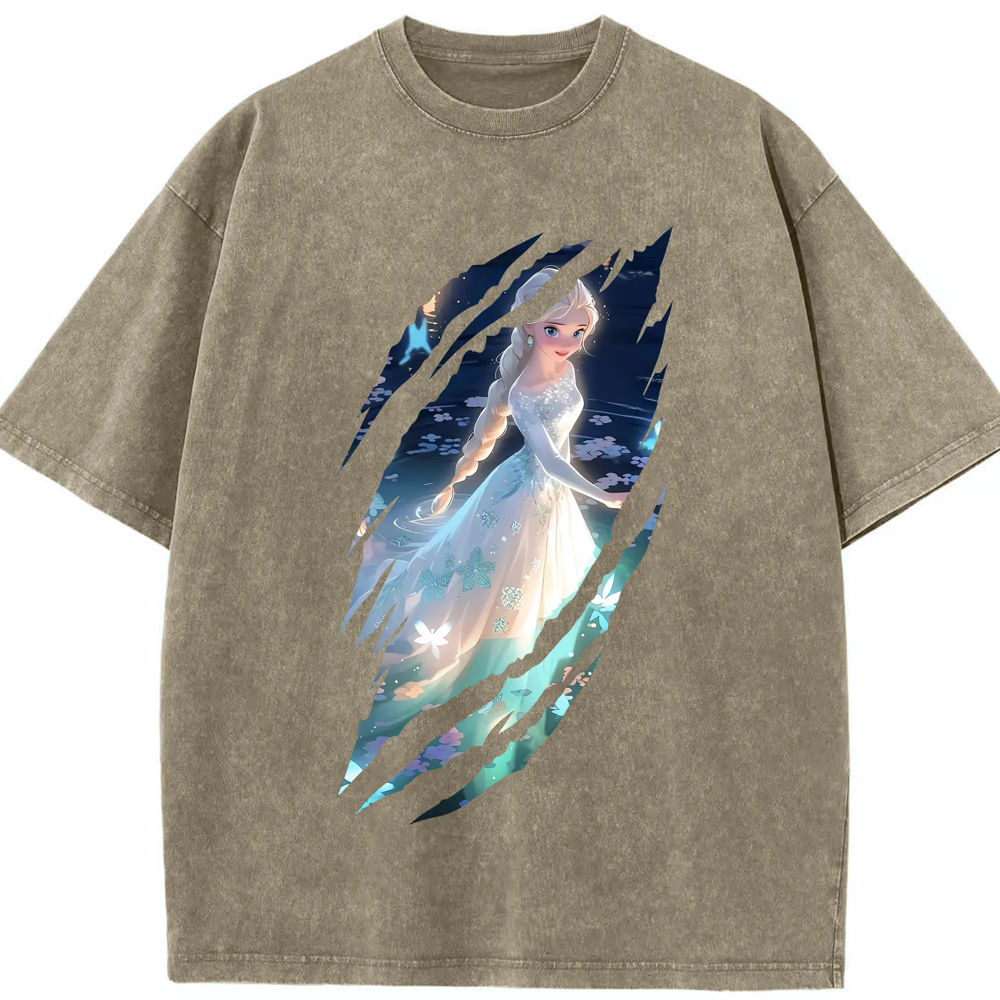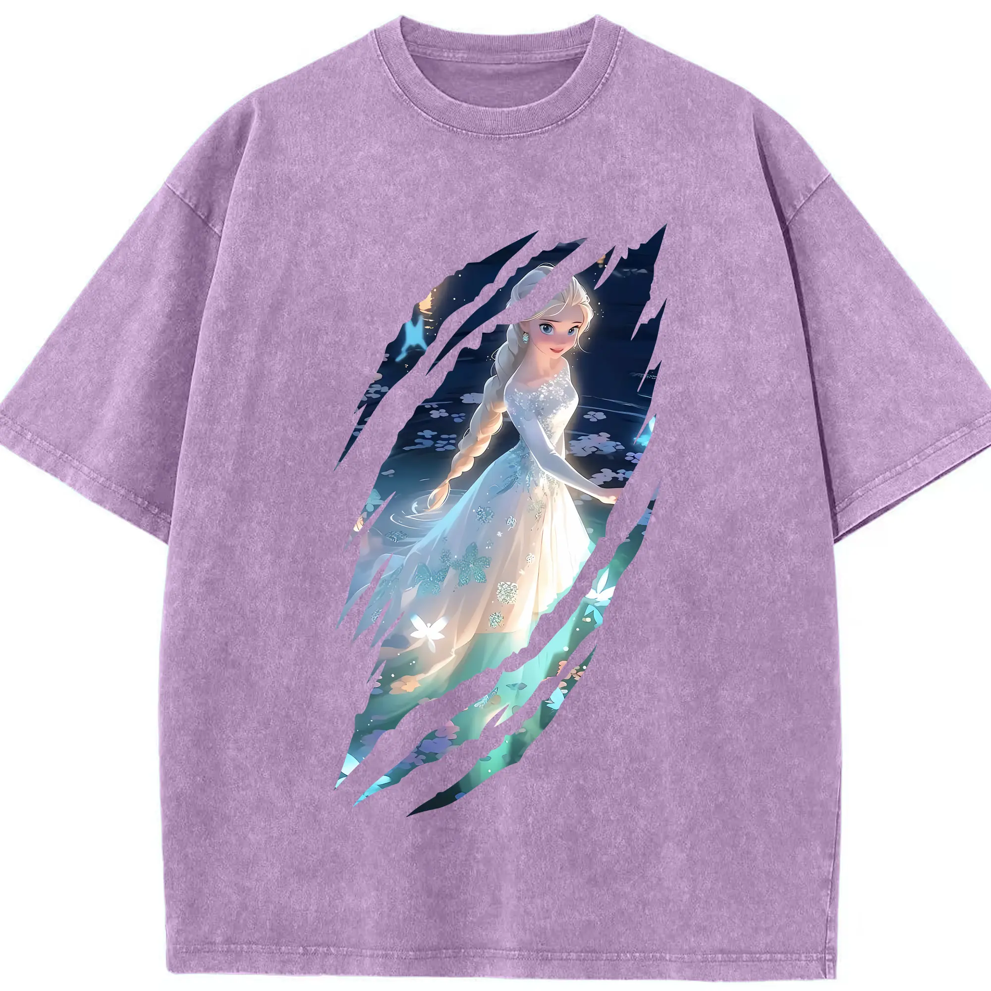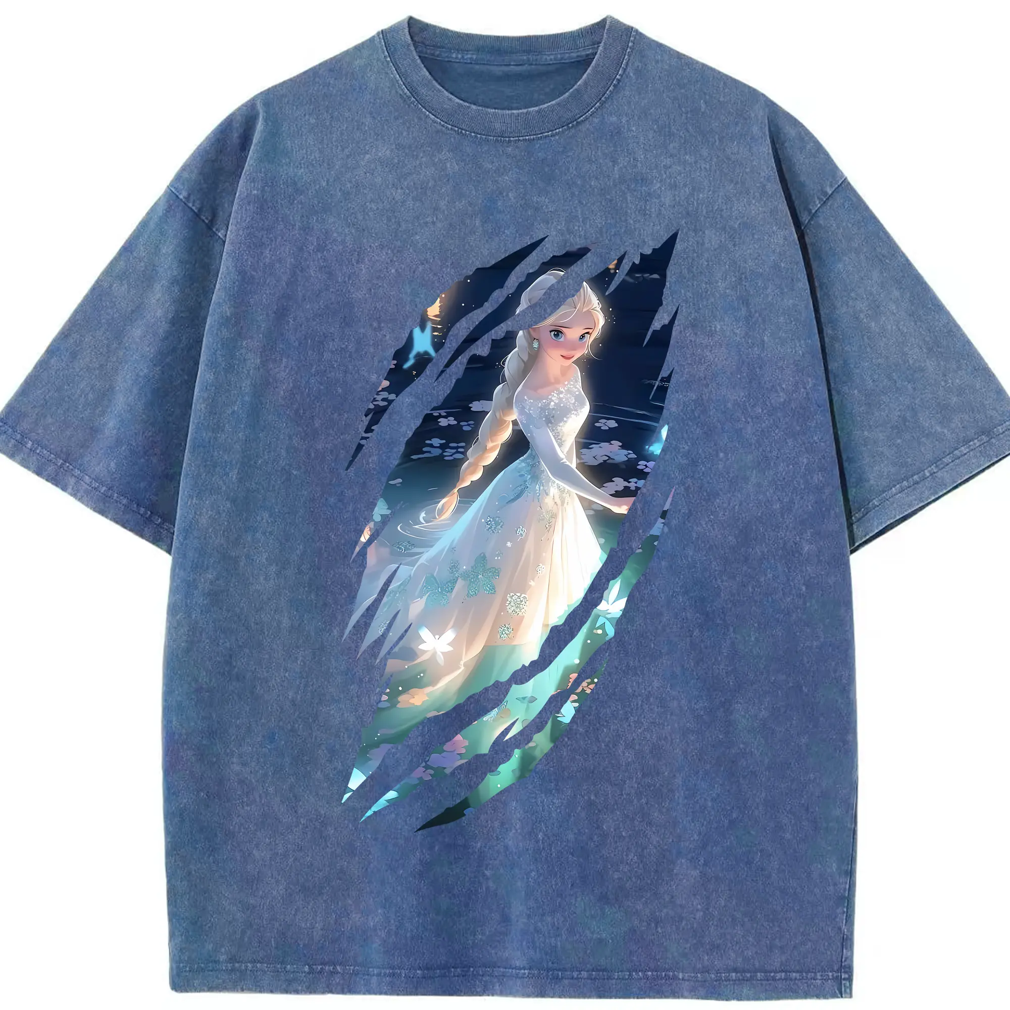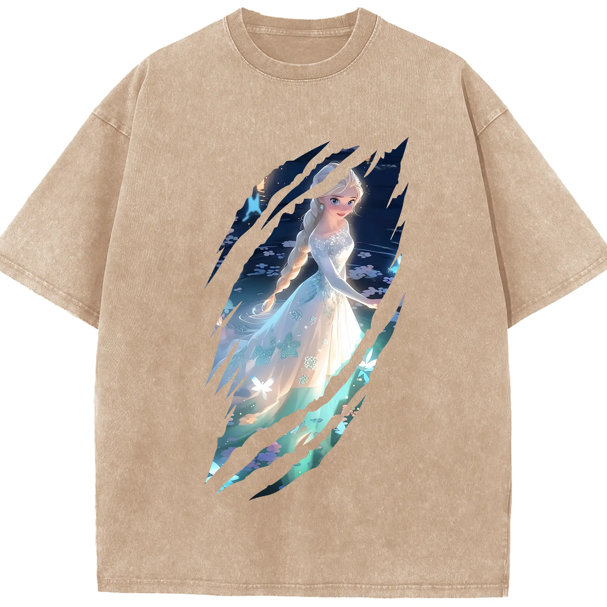 アナと雪の女王(Frozen) グッズ エルサ(Elsa) - 綿100% ヴィンテージ風 半袖Tシャツ ・ 背面プリント ・ 柔らか肌触り ・ 通気性 快適 ・ スポーツ カジュアル 外出用