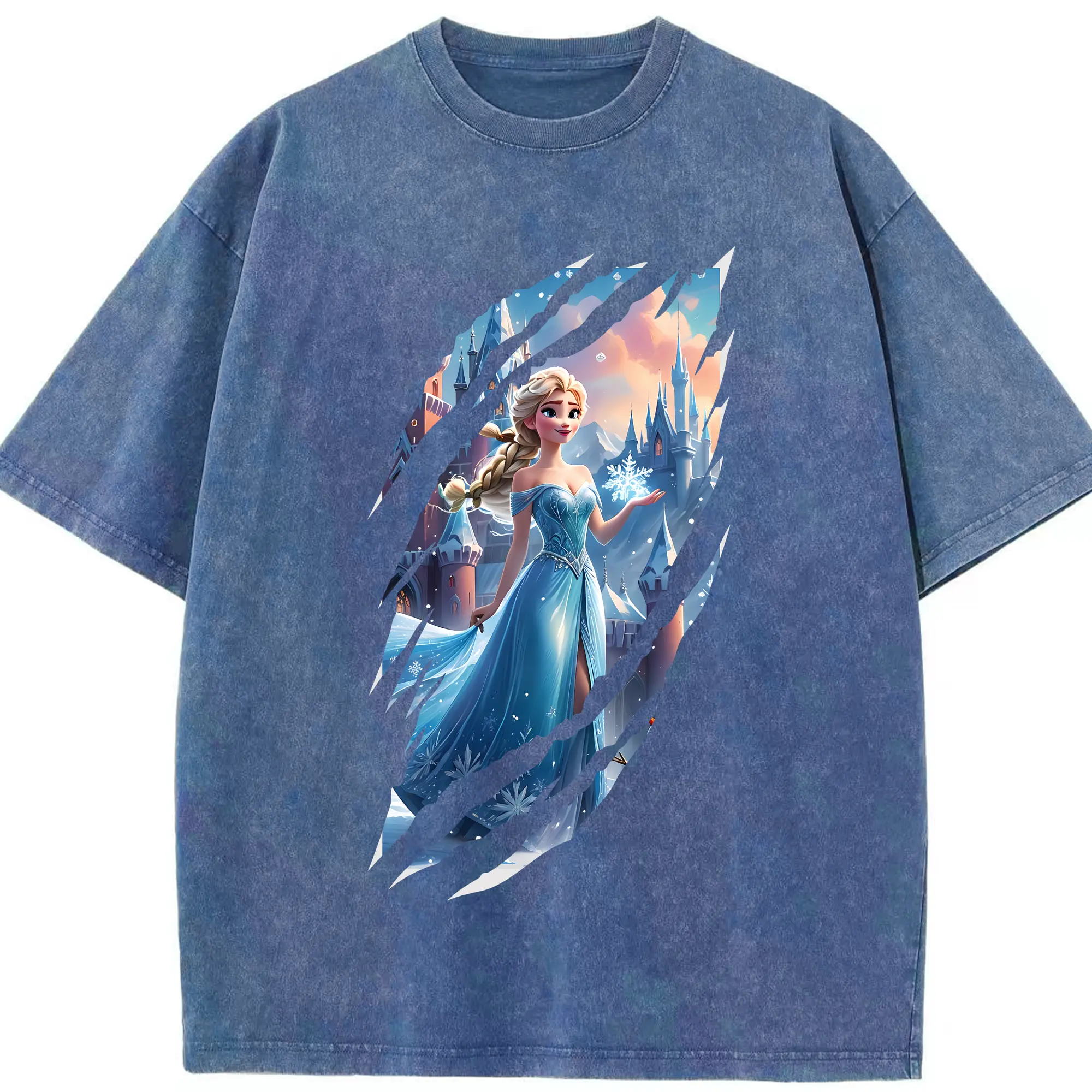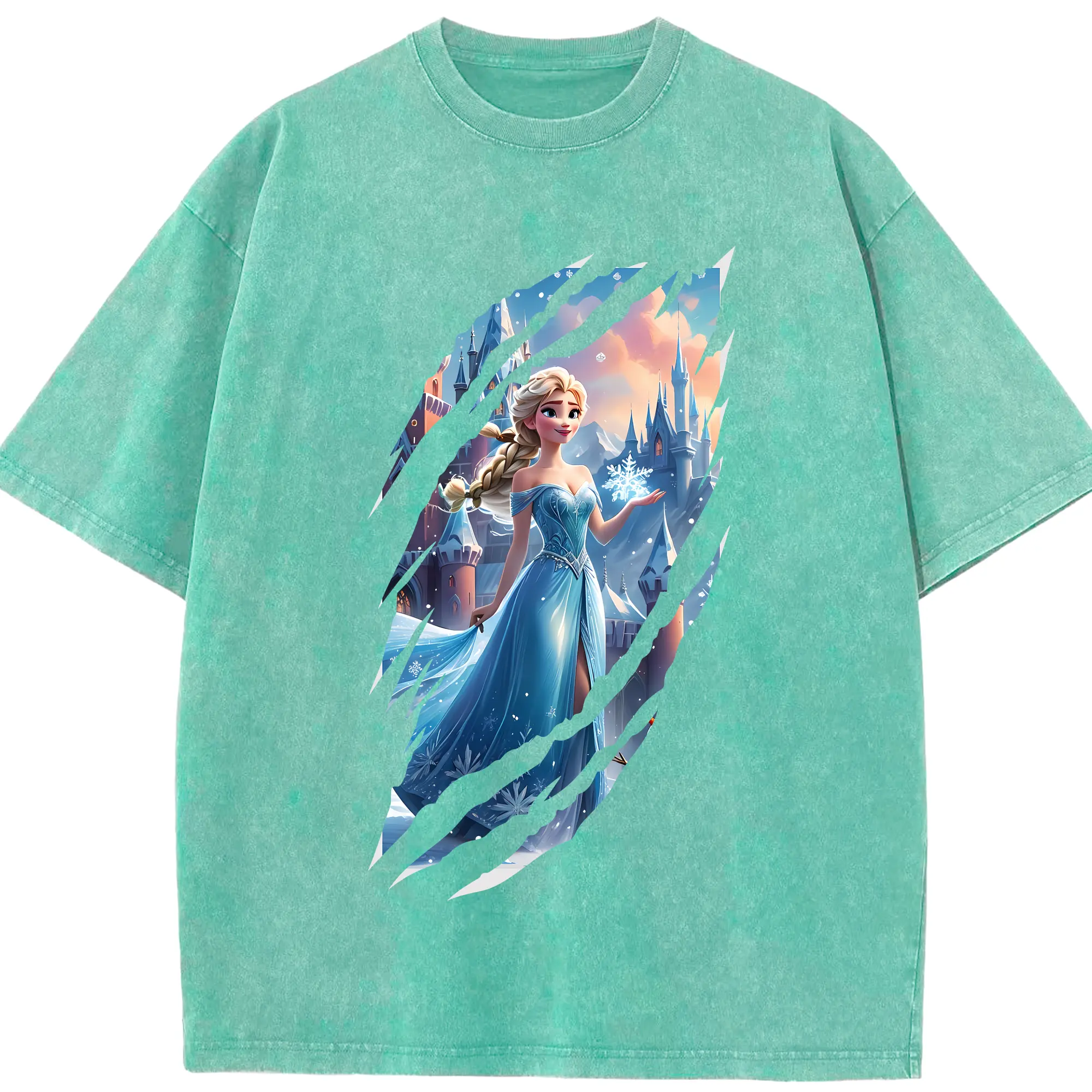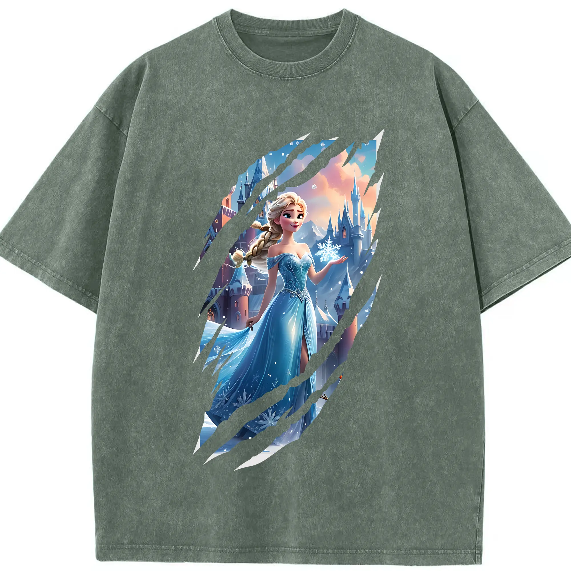 アナと雪の女王(Frozen) グッズ エルサ(Elsa) - 綿100% ヴィンテージ風 半袖Tシャツ ・ 背面プリント ・ 柔らか肌触り ・ 通気性 快適 ・ スポーツ カジュアル 外出用
