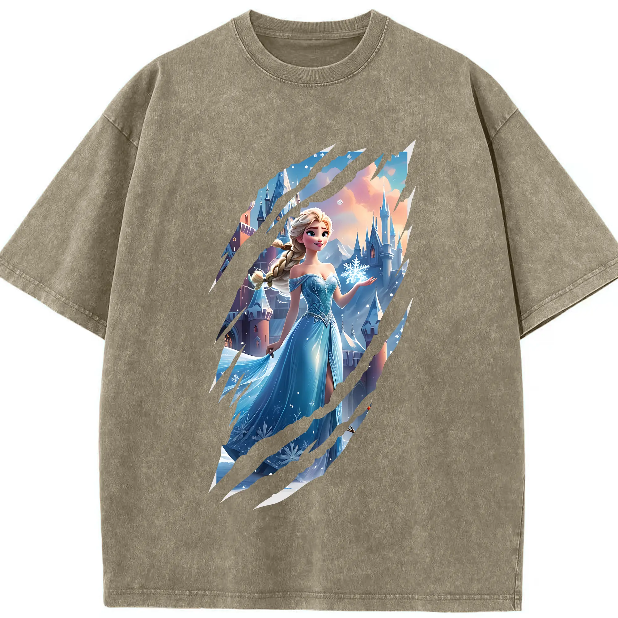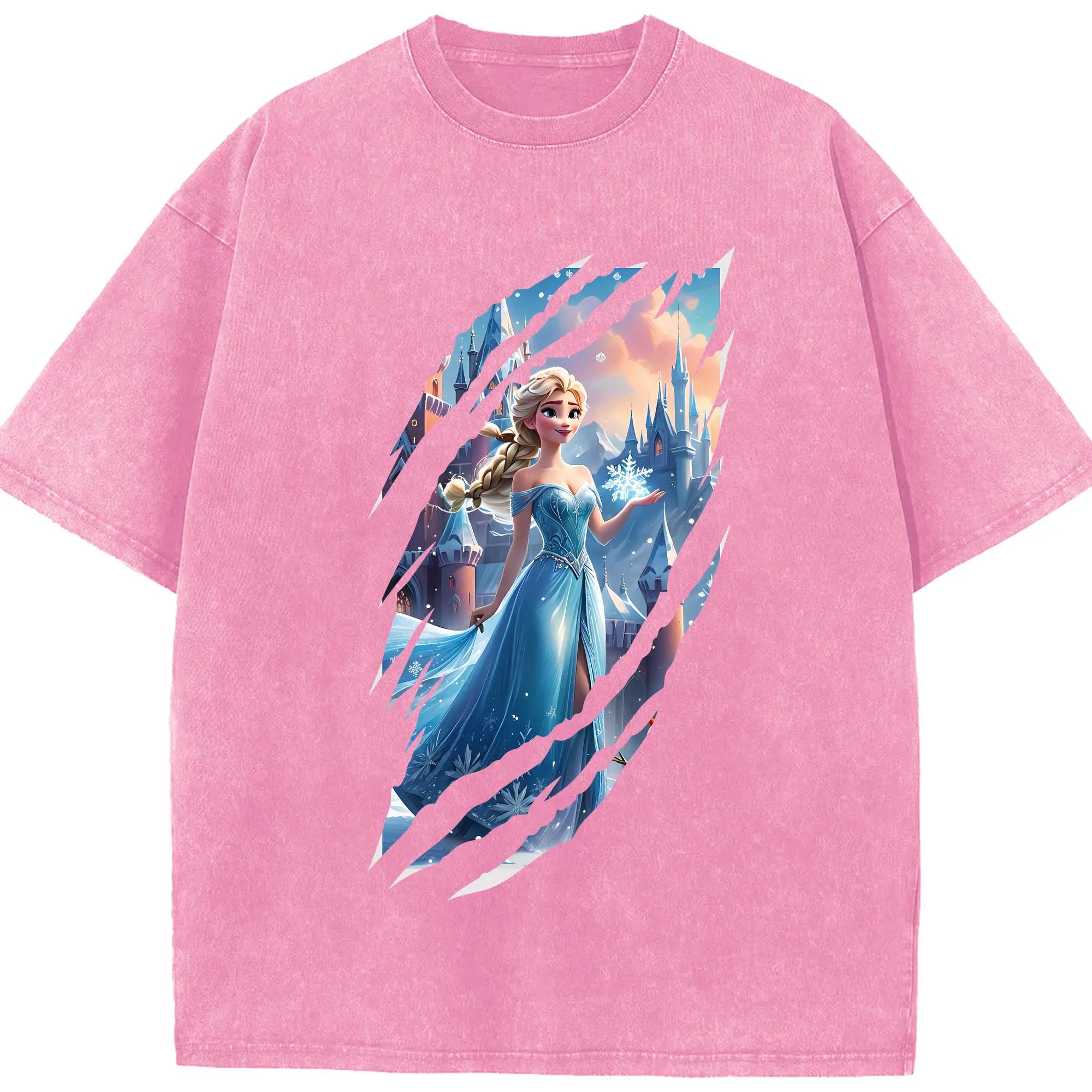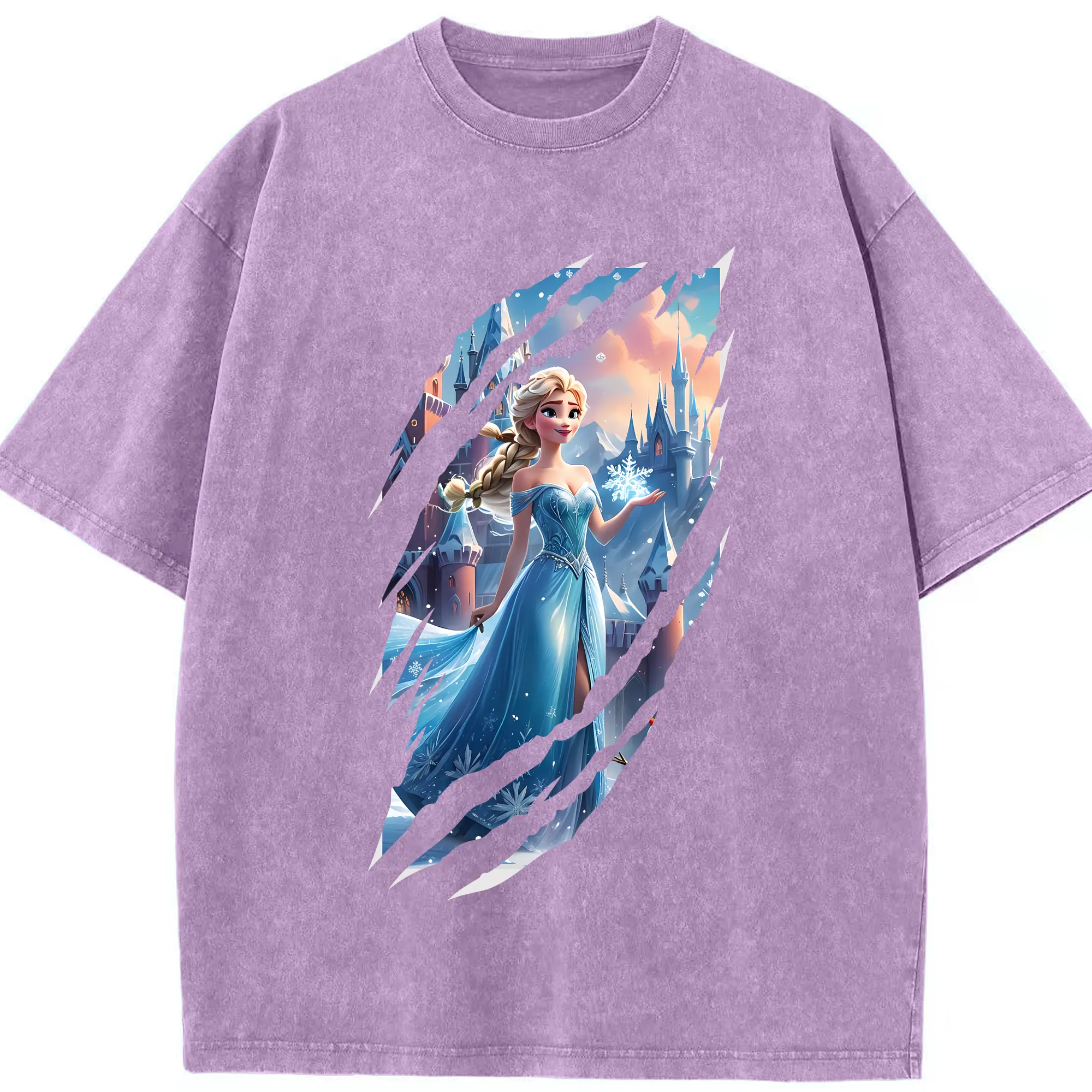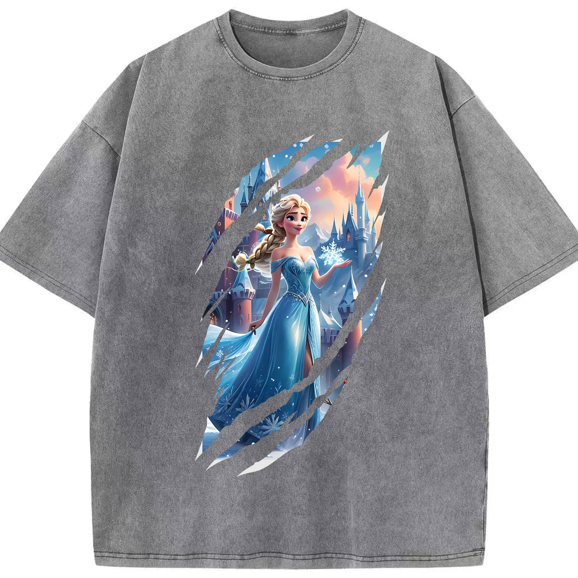 アナと雪の女王(Frozen) グッズ エルサ(Elsa) - 綿100% ヴィンテージ風 半袖Tシャツ ・ 背面プリント ・ 柔らか肌触り ・ 通気性 快適 ・ スポーツ カジュアル 外出用