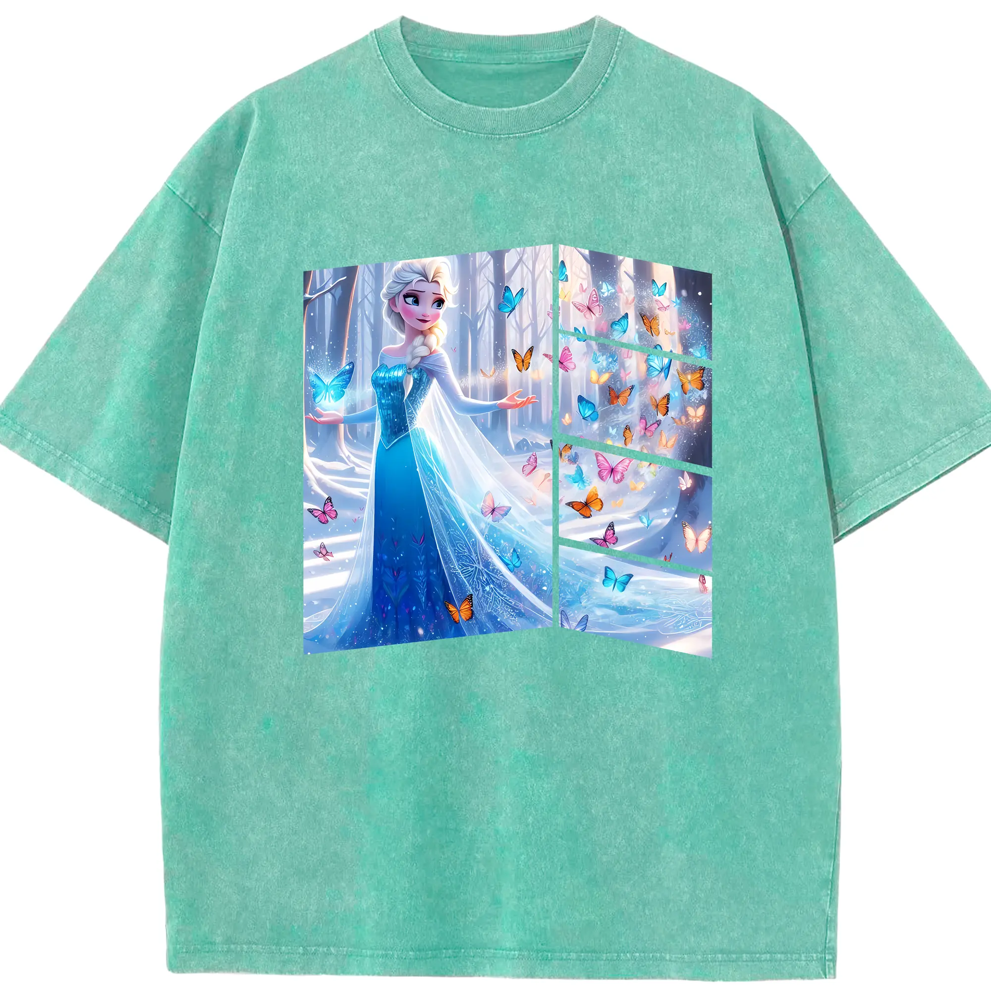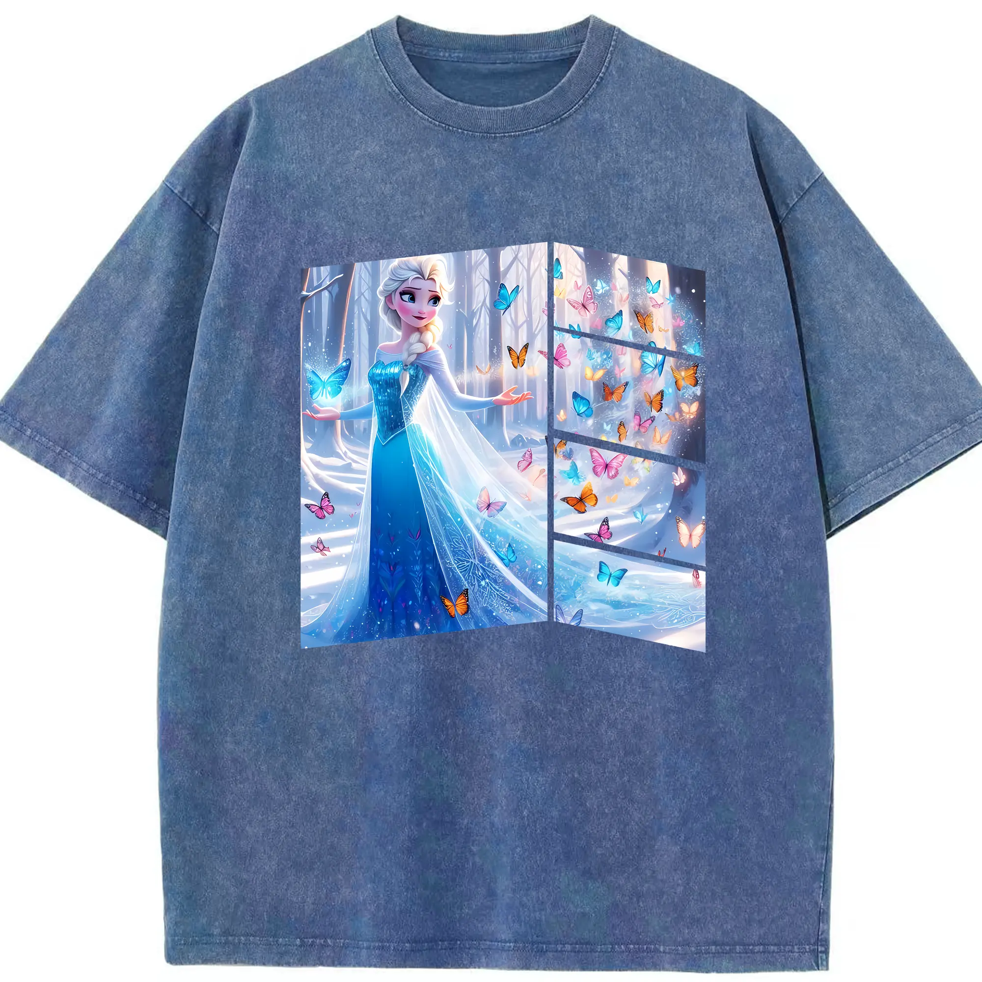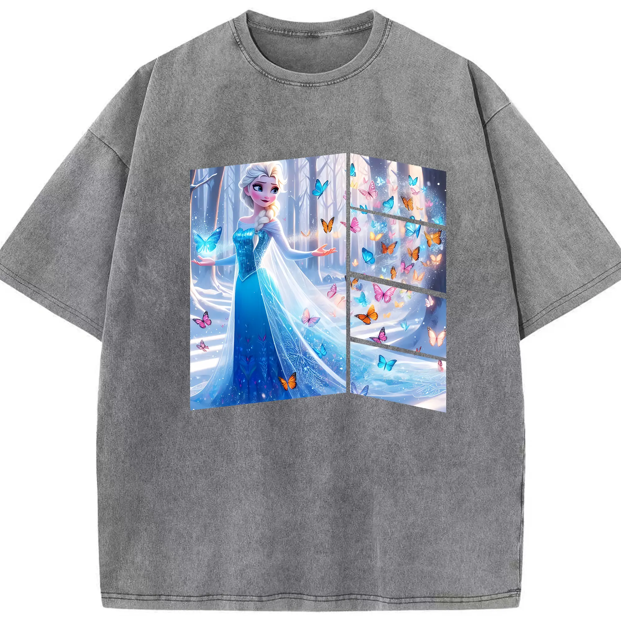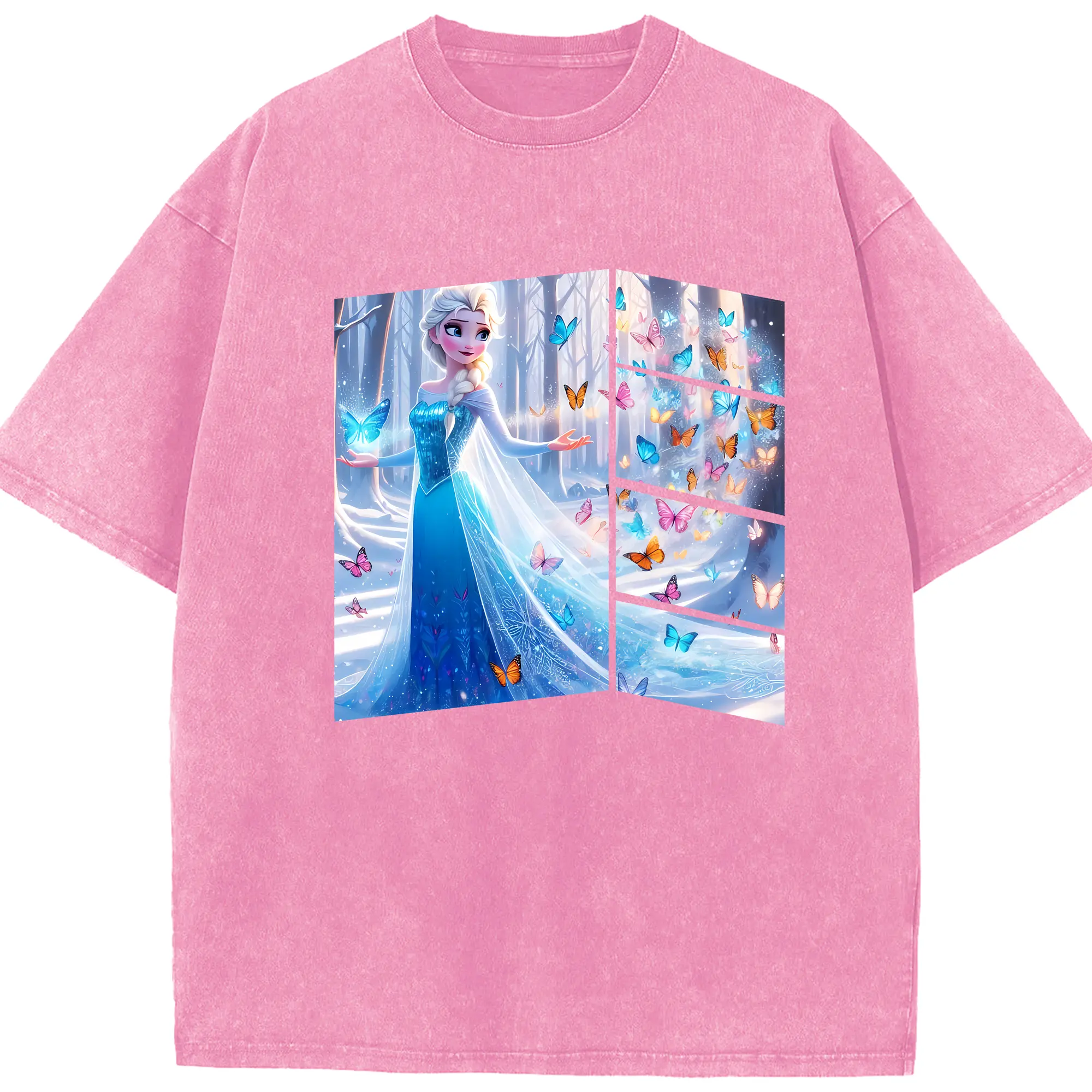 アナと雪の女王(Frozen) グッズ エルサ(Elsa) - 綿100% ヴィンテージ風 半袖Tシャツ ・ 背面プリント ・ 柔らか肌触り ・ 通気性 快適 ・ スポーツ カジュアル 外出用