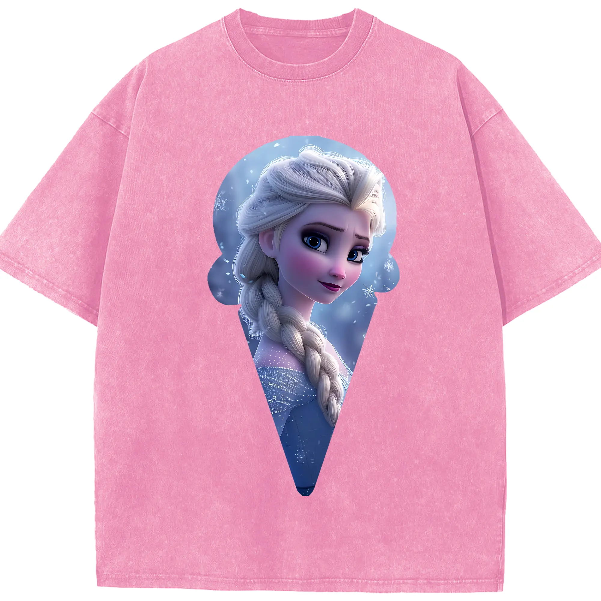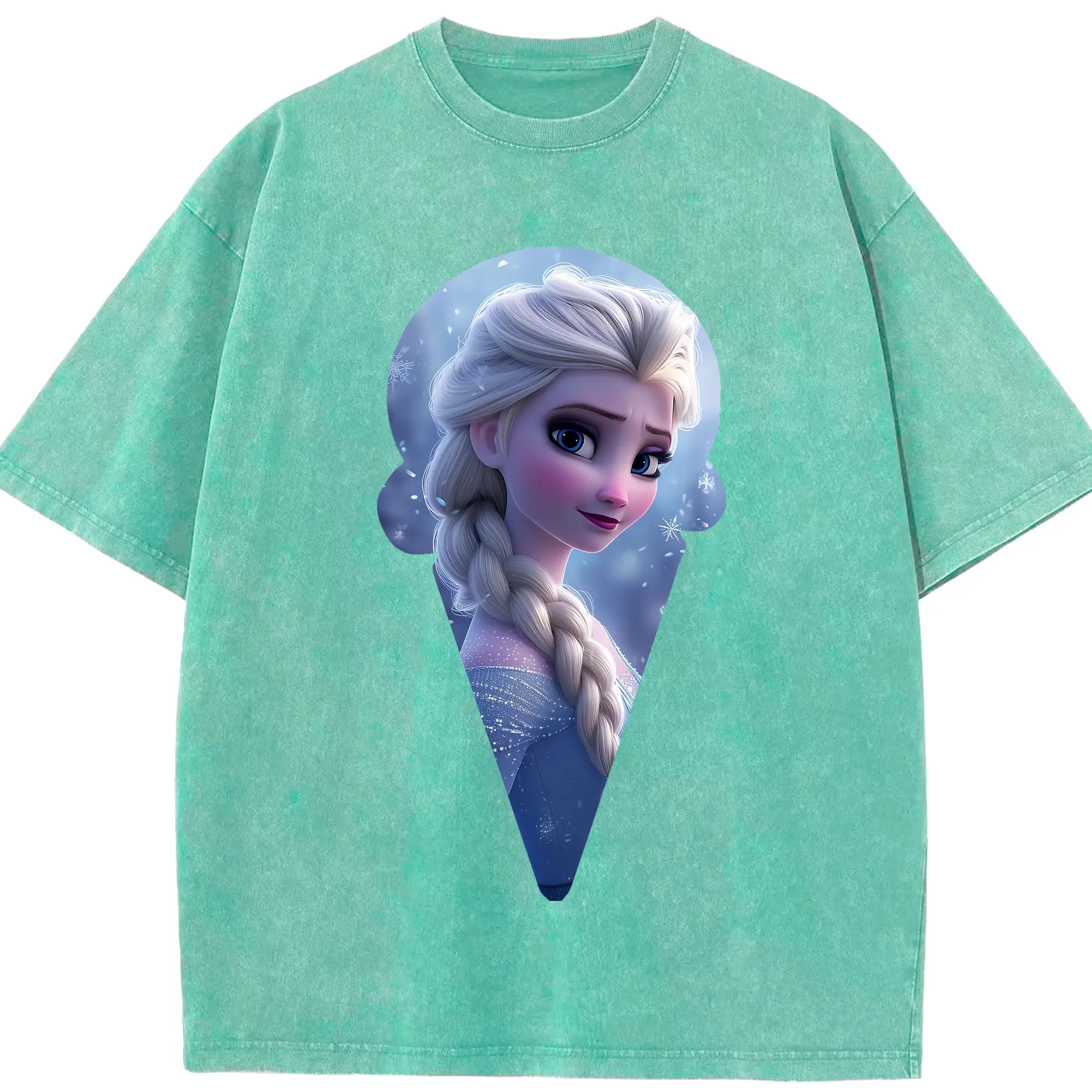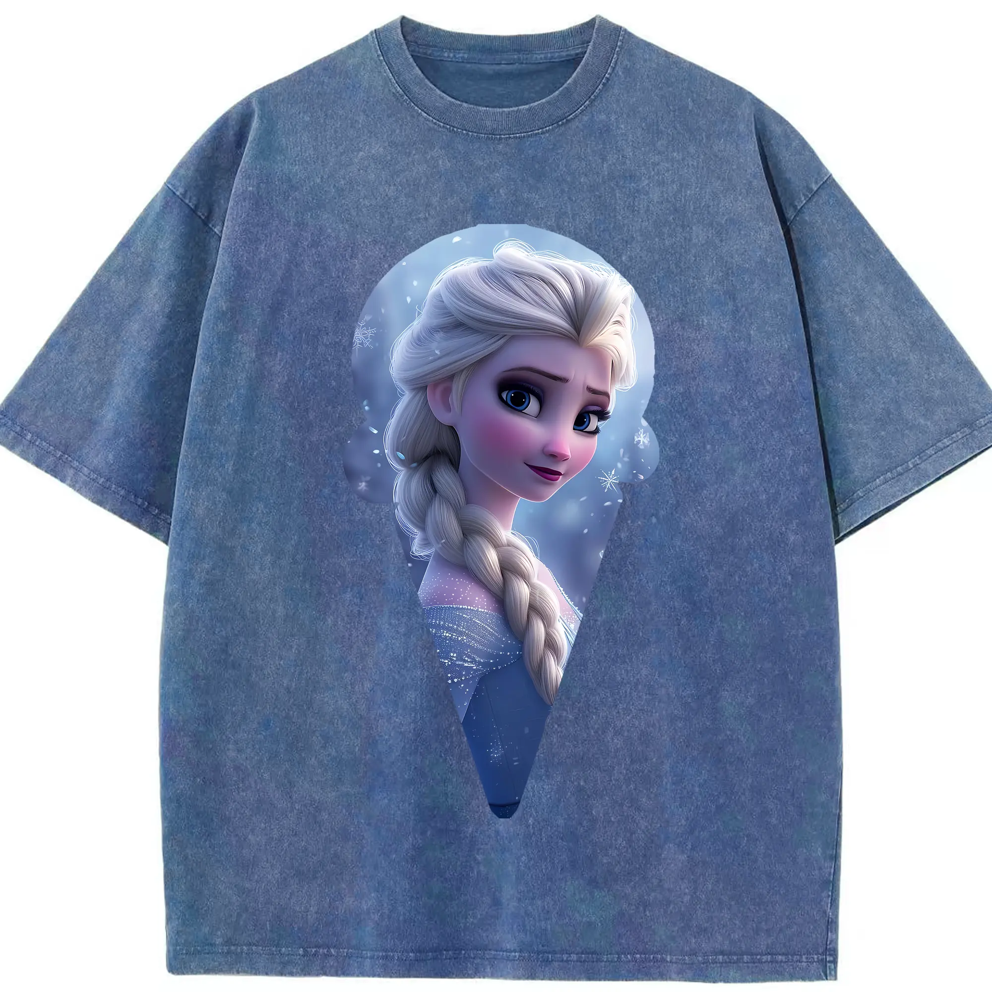 アナと雪の女王(Frozen) グッズ エルサ(Elsa) - 綿100% ヴィンテージ風 半袖Tシャツ ・ 背面プリント ・ 柔らか肌触り ・ 通気性 快適 ・ スポーツ カジュアル 外出用