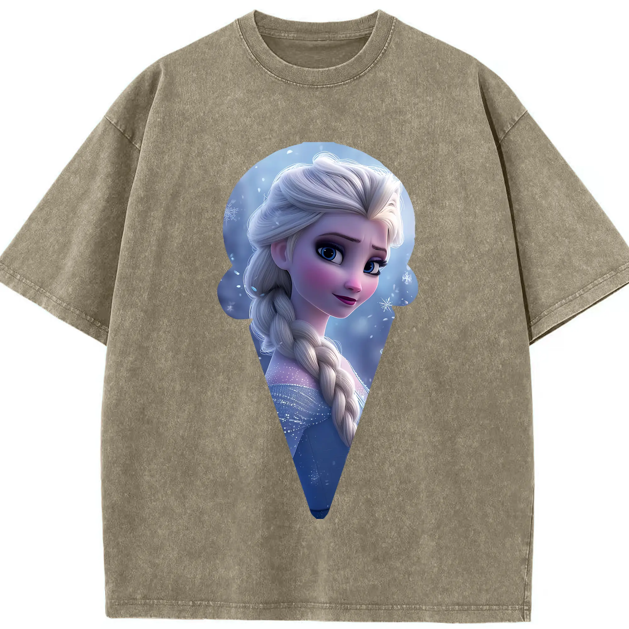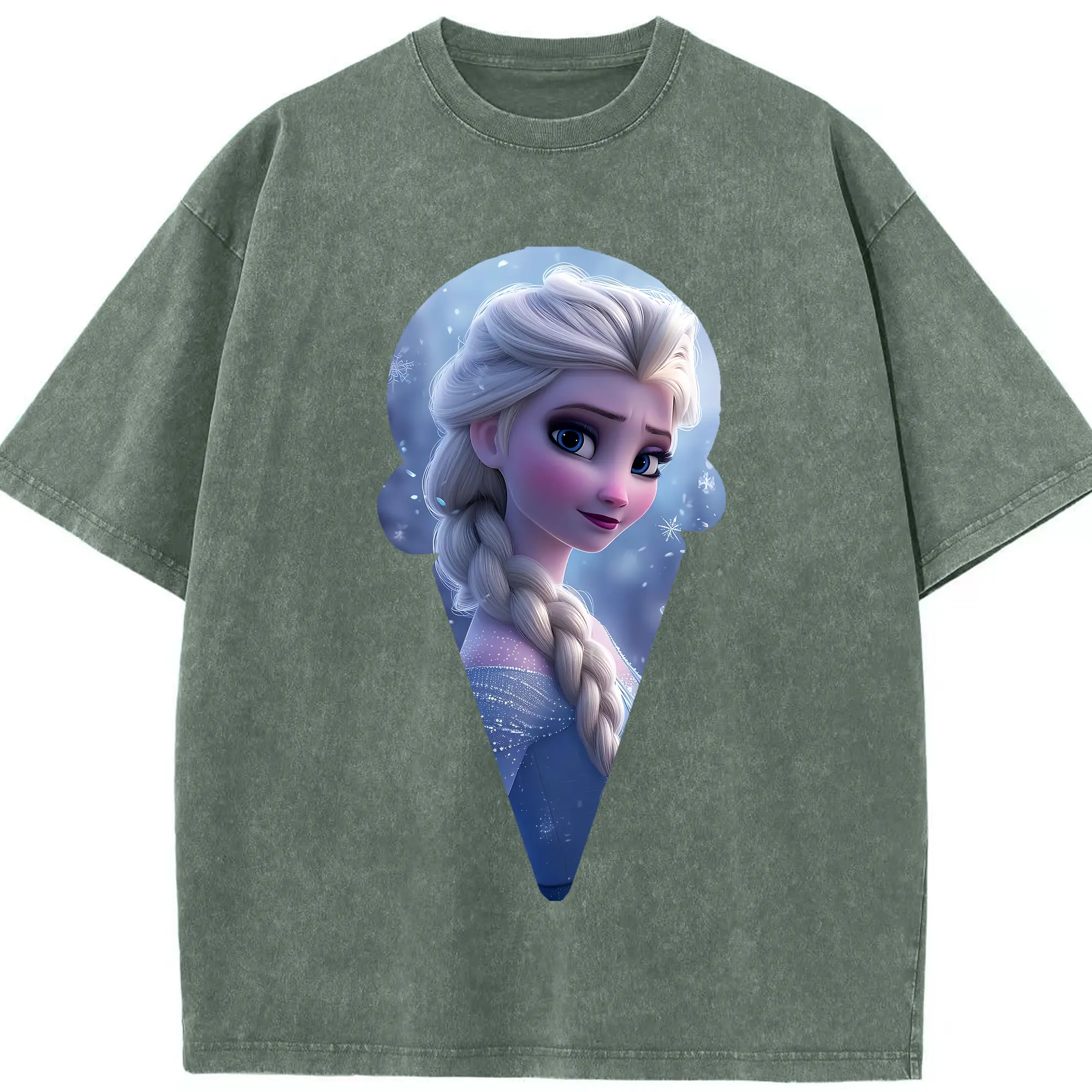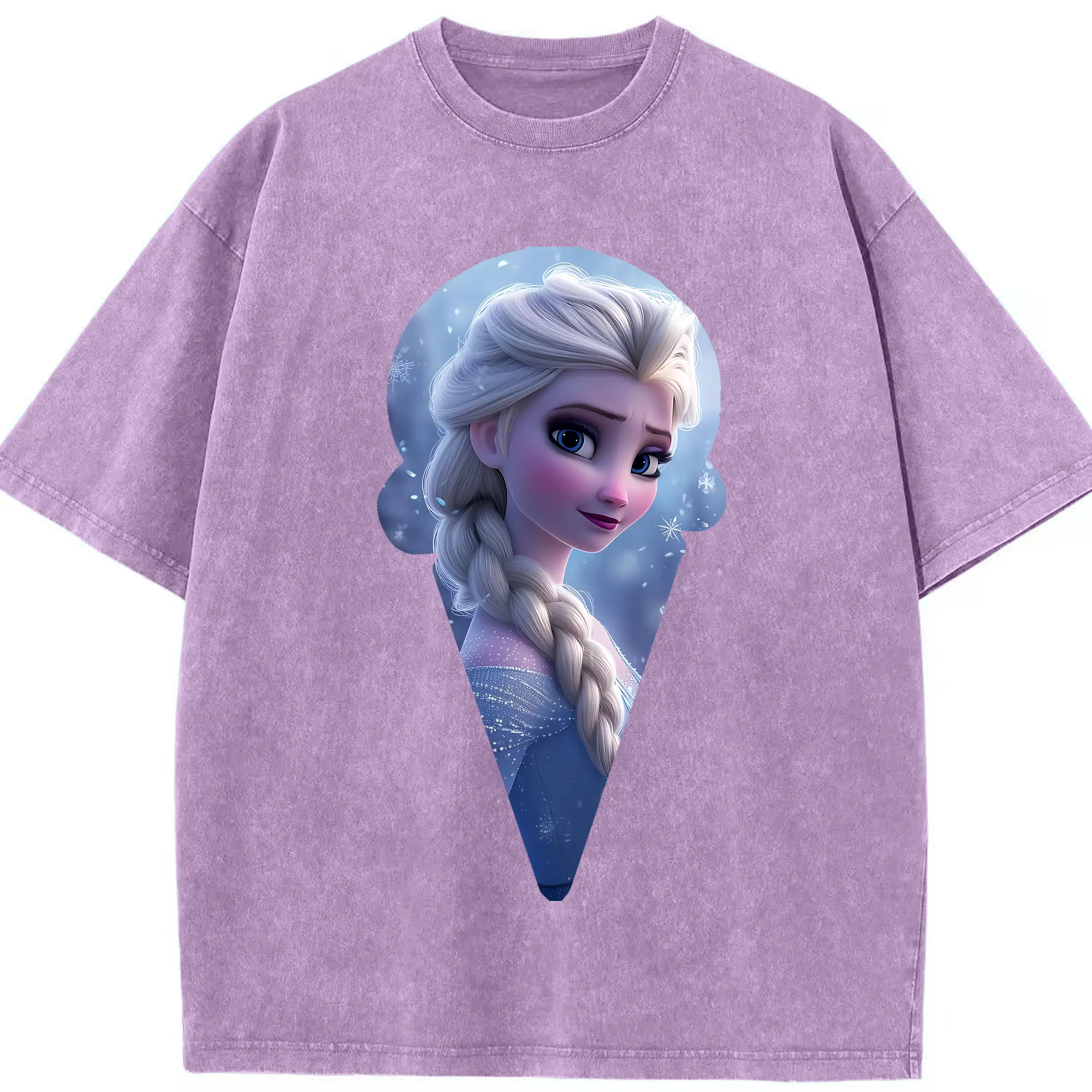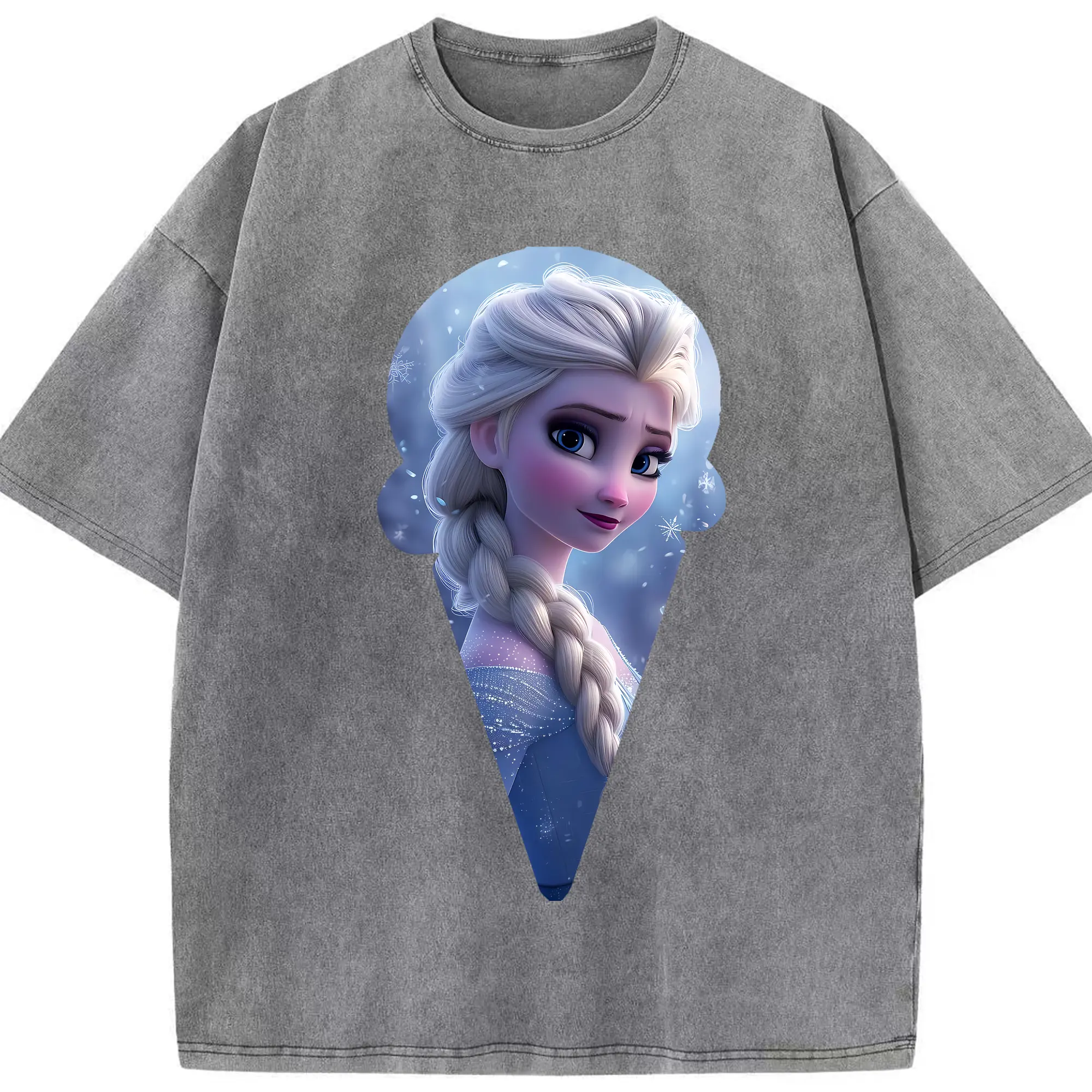 アナと雪の女王(Frozen) グッズ エルサ(Elsa) - 綿100% ヴィンテージ風 半袖Tシャツ ・ 背面プリント ・ 柔らか肌触り ・ 通気性 快適 ・ スポーツ カジュアル 外出用