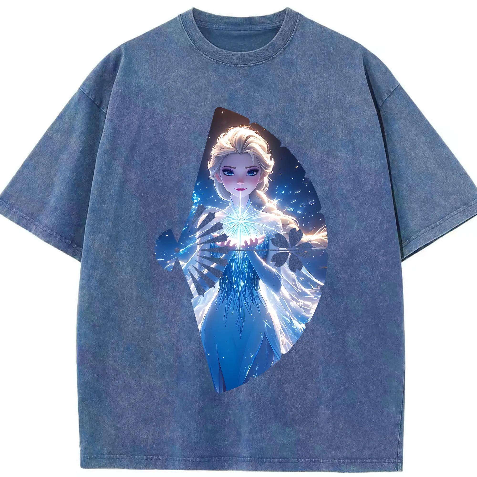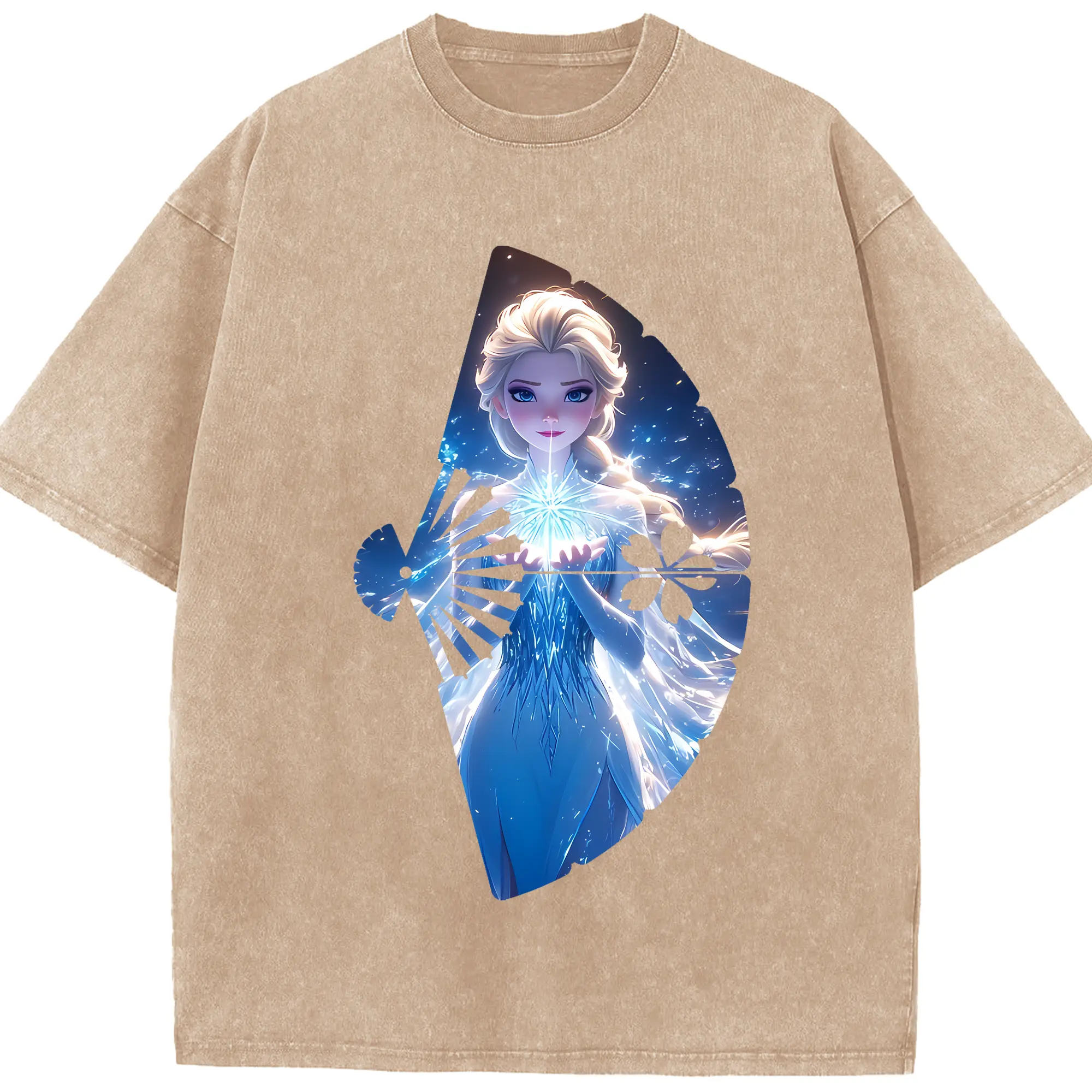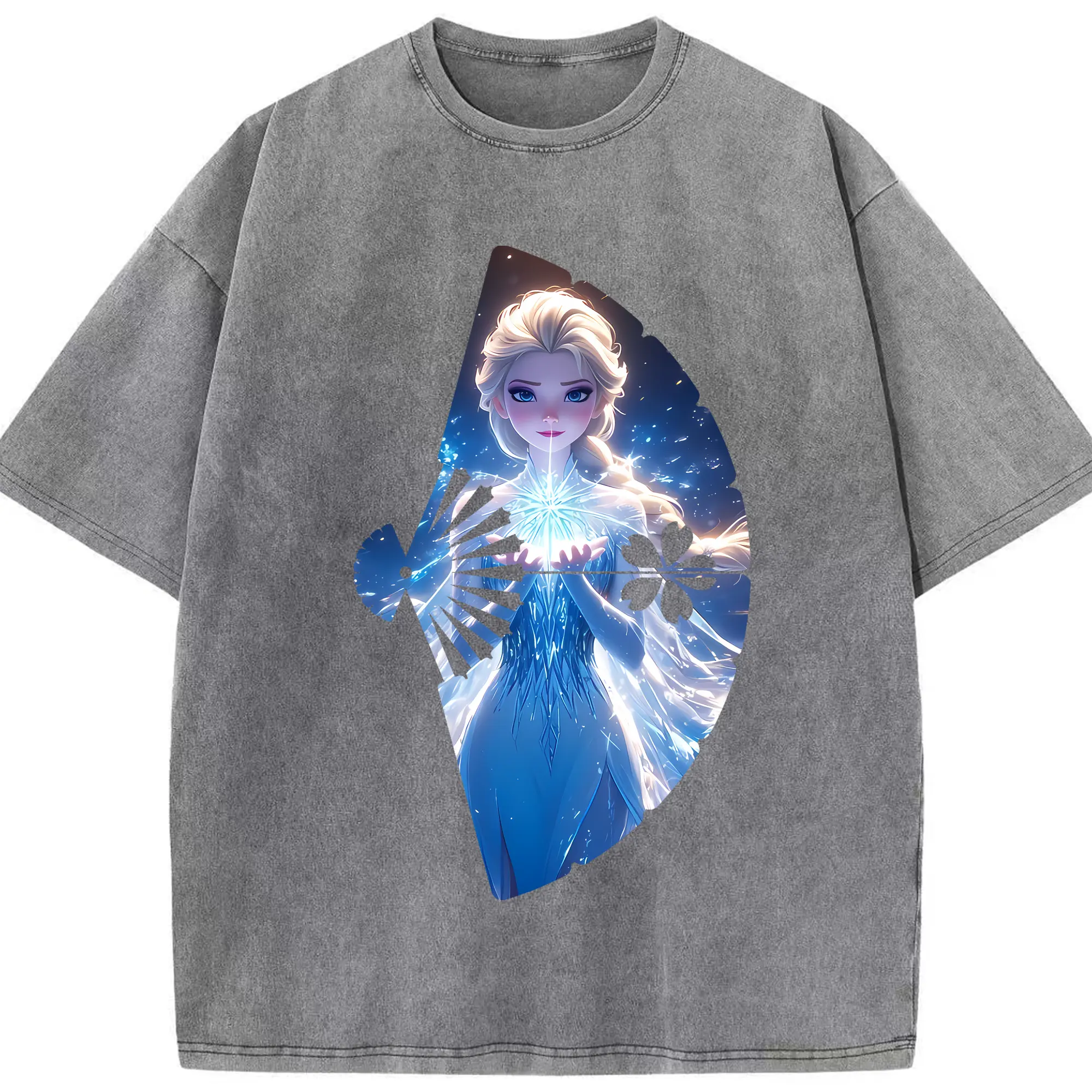 アナと雪の女王(Frozen) グッズ エルサ(Elsa) - 綿100% ヴィンテージ風 半袖Tシャツ ・ 背面プリント ・ 柔らか肌触り ・ 通気性 快適 ・ スポーツ カジュアル 外出用