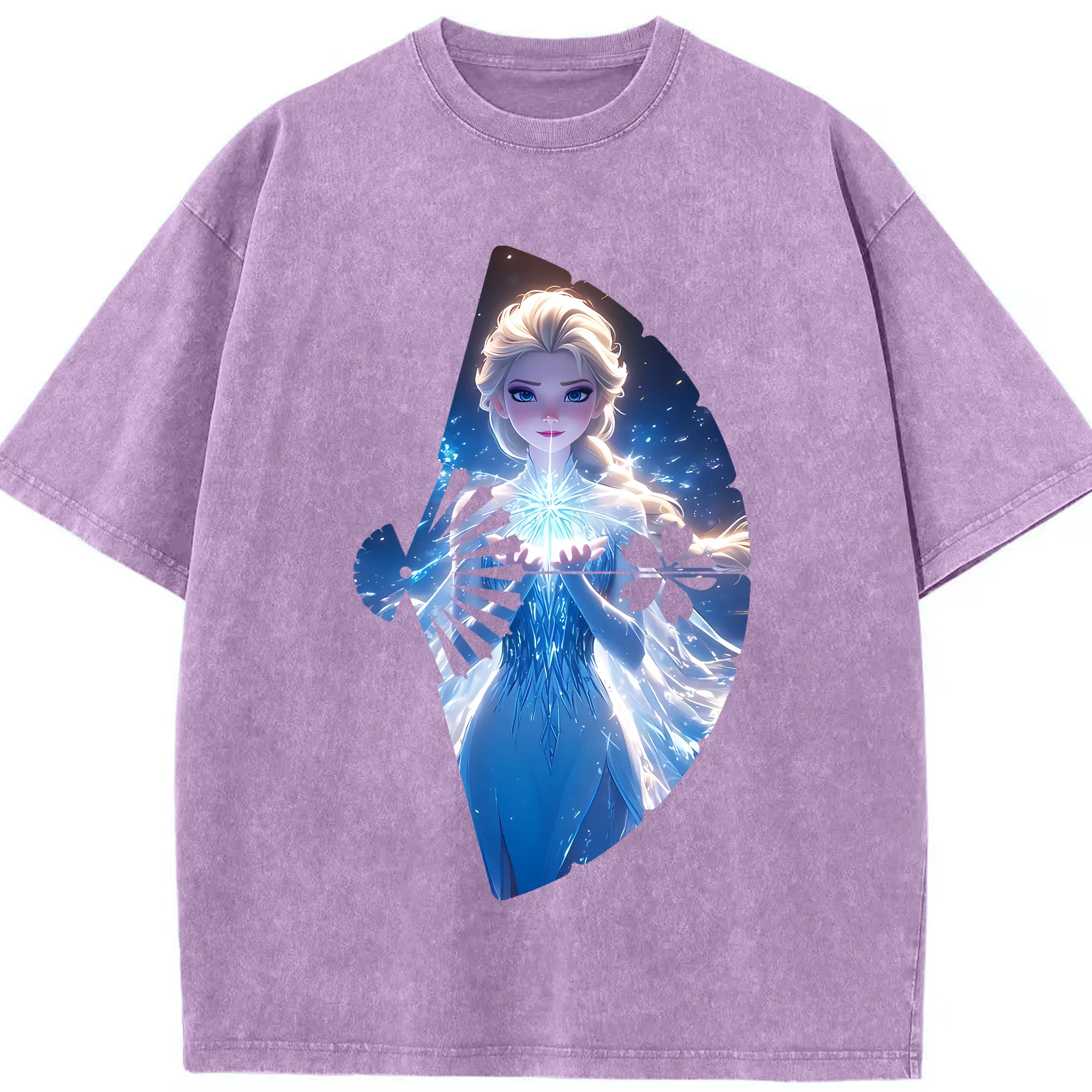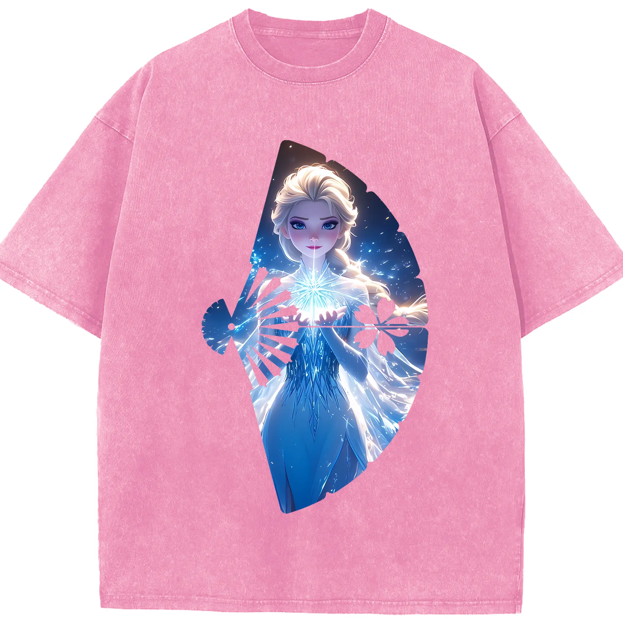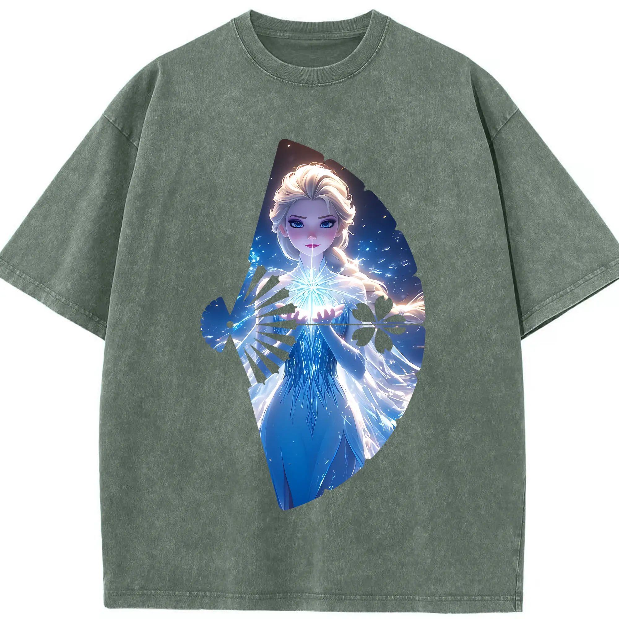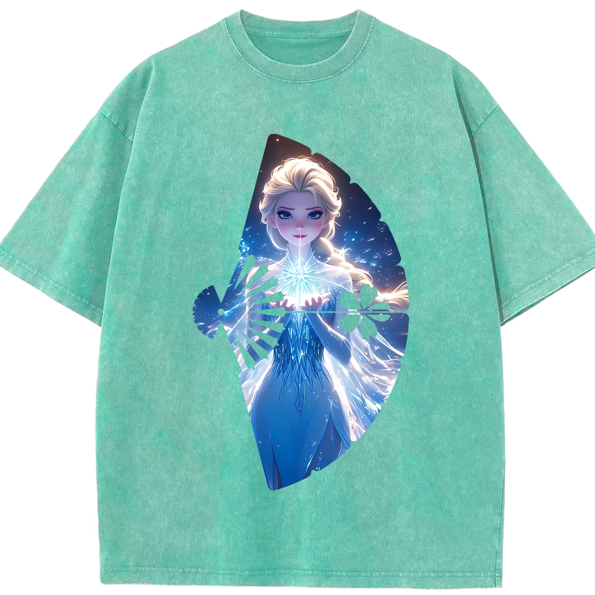 アナと雪の女王(Frozen) グッズ エルサ(Elsa) - 綿100% ヴィンテージ風 半袖Tシャツ ・ 背面プリント ・ 柔らか肌触り ・ 通気性 快適 ・ スポーツ カジュアル 外出用