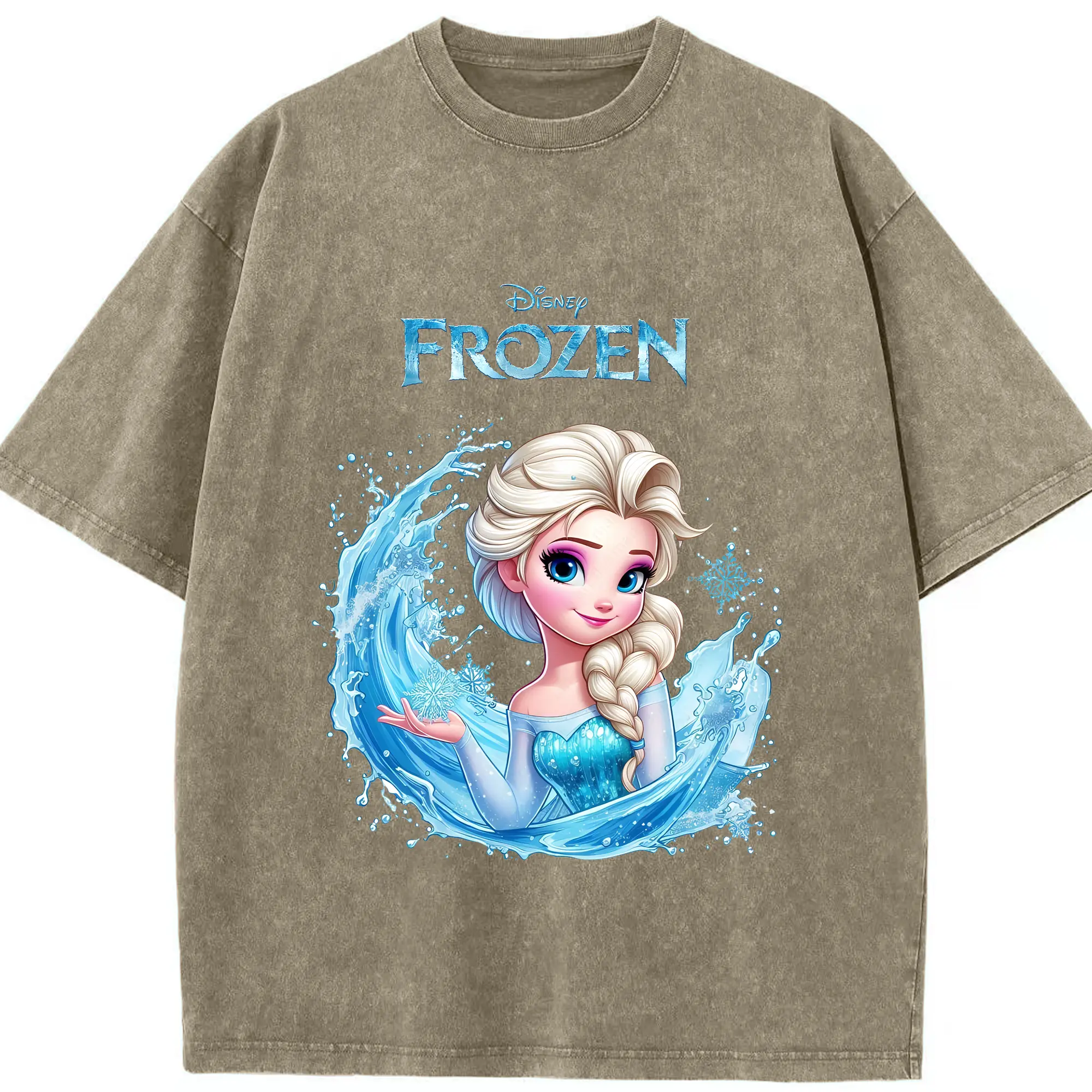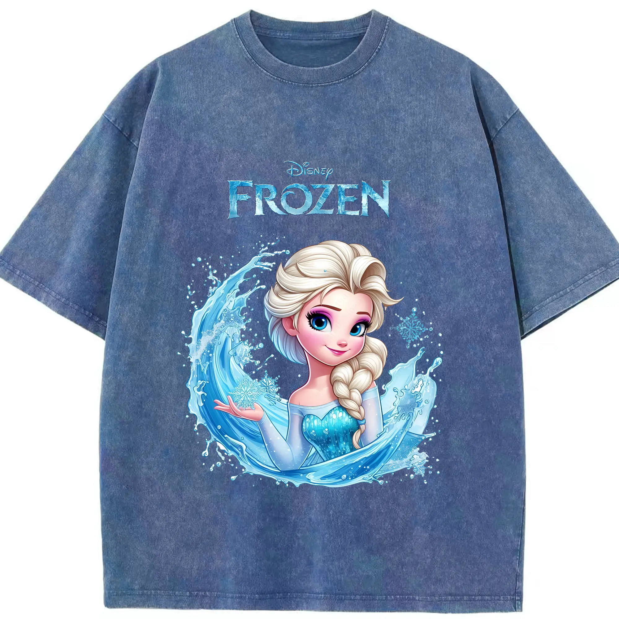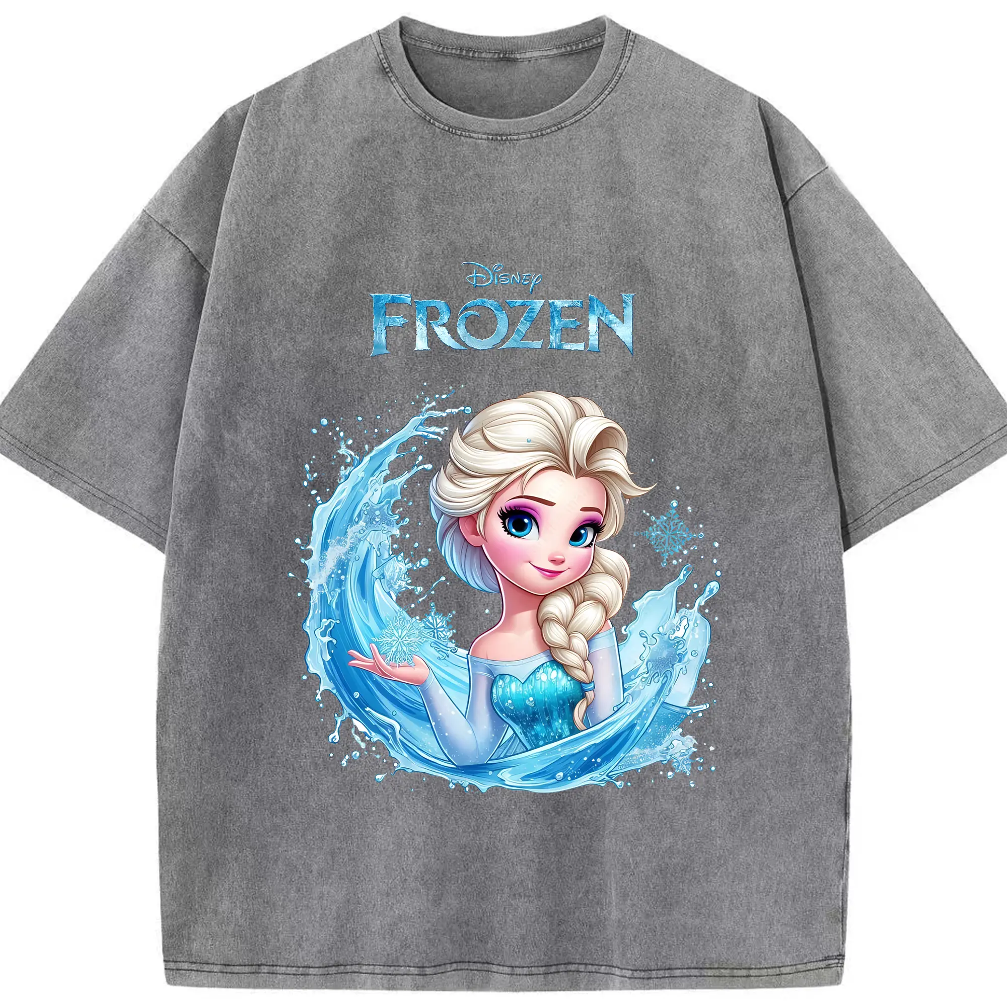 アナと雪の女王(Frozen) グッズ エルサ(Elsa) - 綿100% ヴィンテージ風 半袖Tシャツ ・ 背面プリント ・ 柔らか肌触り ・ 通気性 快適 ・ スポーツ カジュアル 外出用