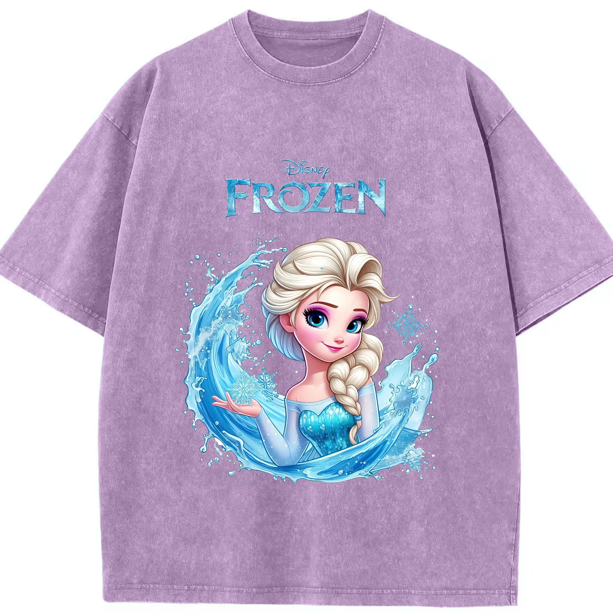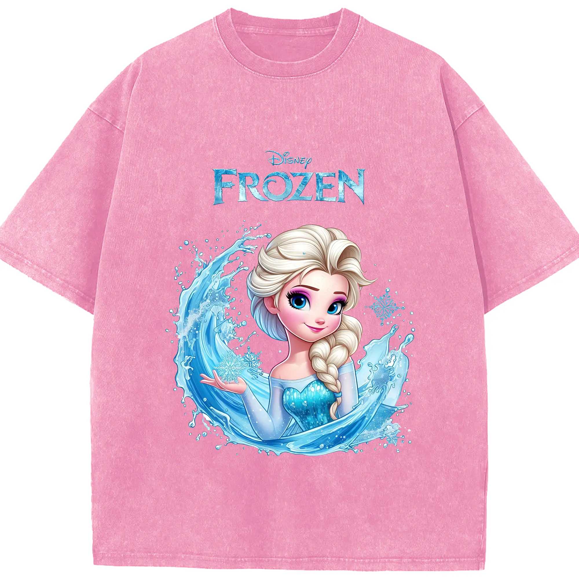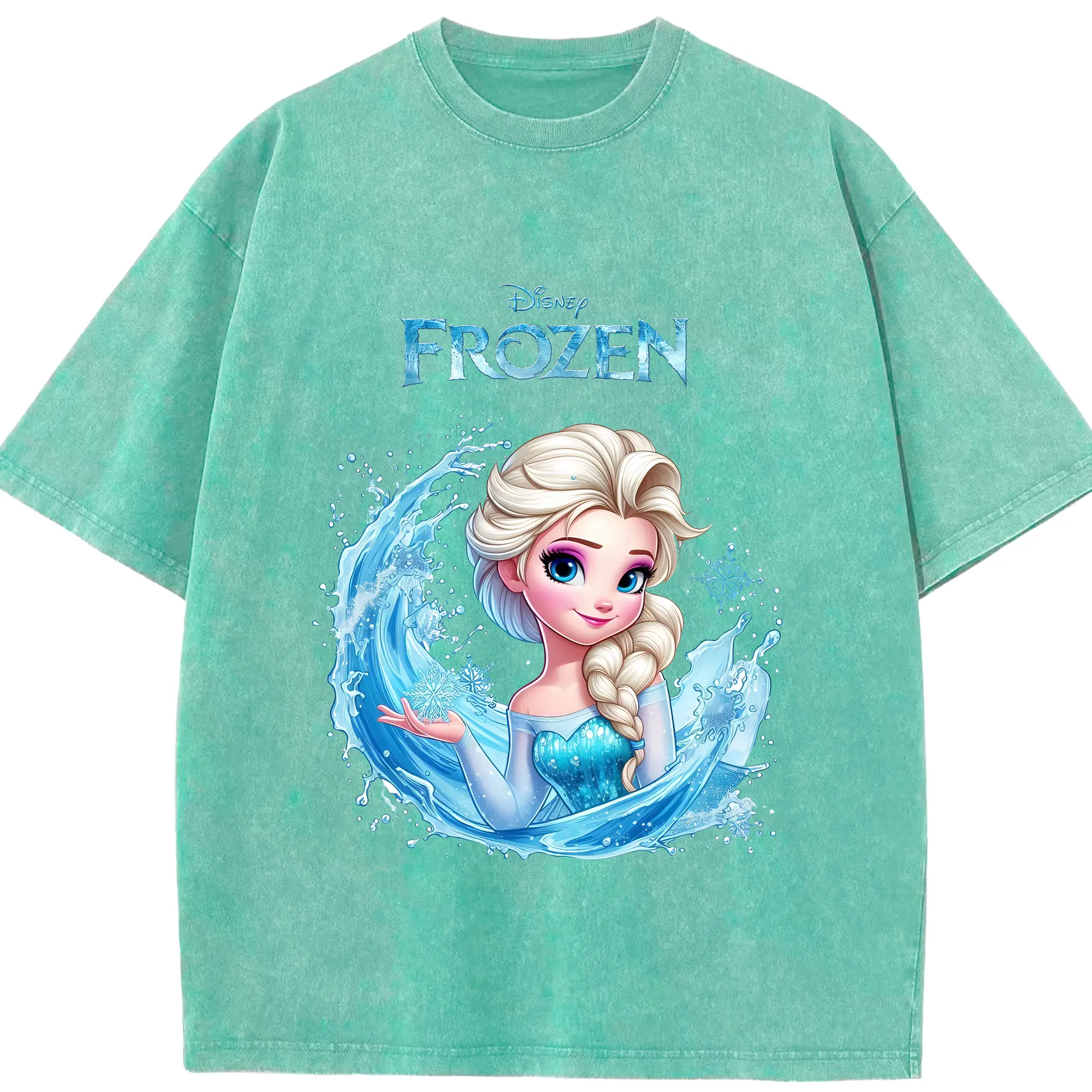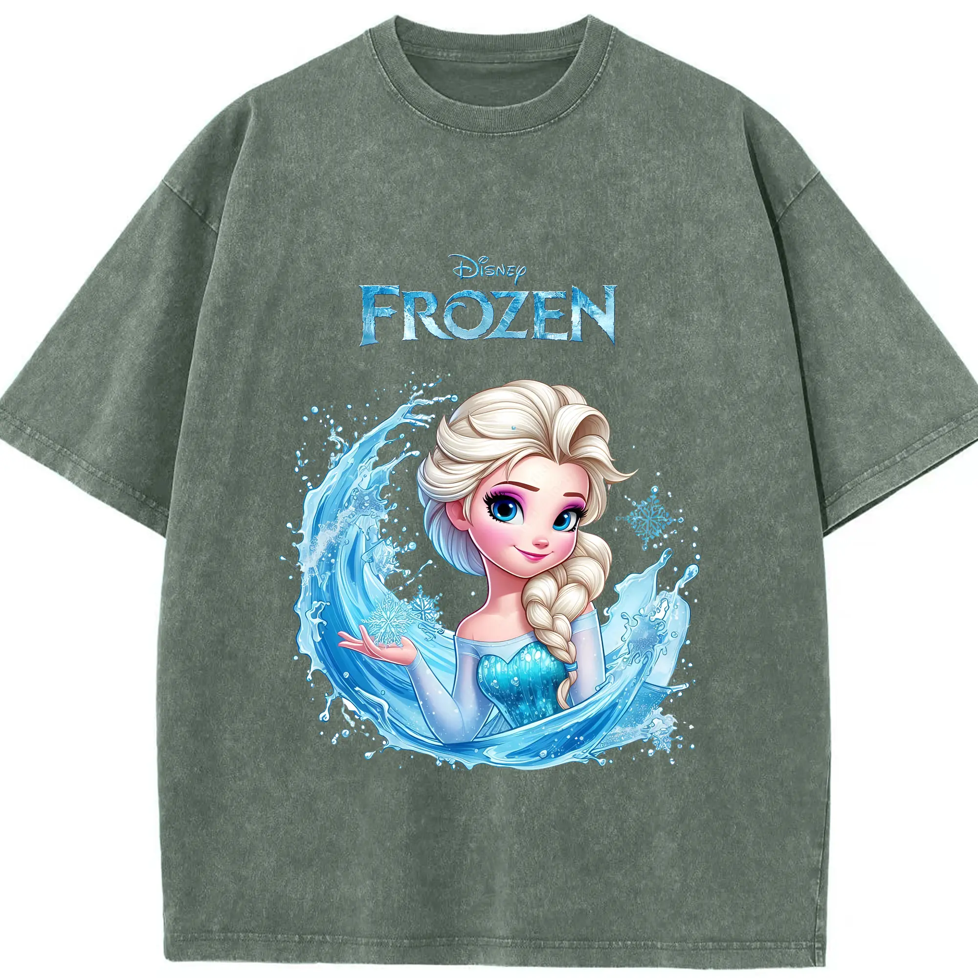 アナと雪の女王(Frozen) グッズ エルサ(Elsa) - 綿100% ヴィンテージ風 半袖Tシャツ ・ 背面プリント ・ 柔らか肌触り ・ 通気性 快適 ・ スポーツ カジュアル 外出用