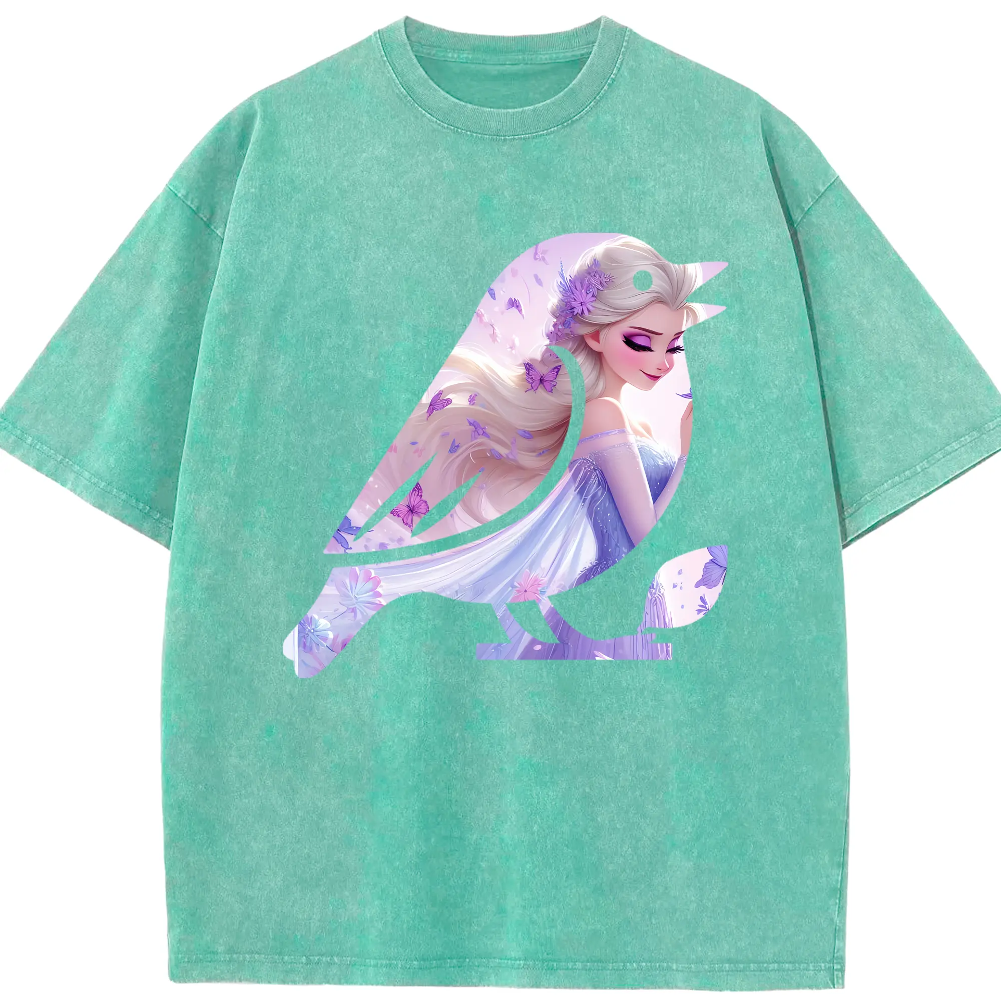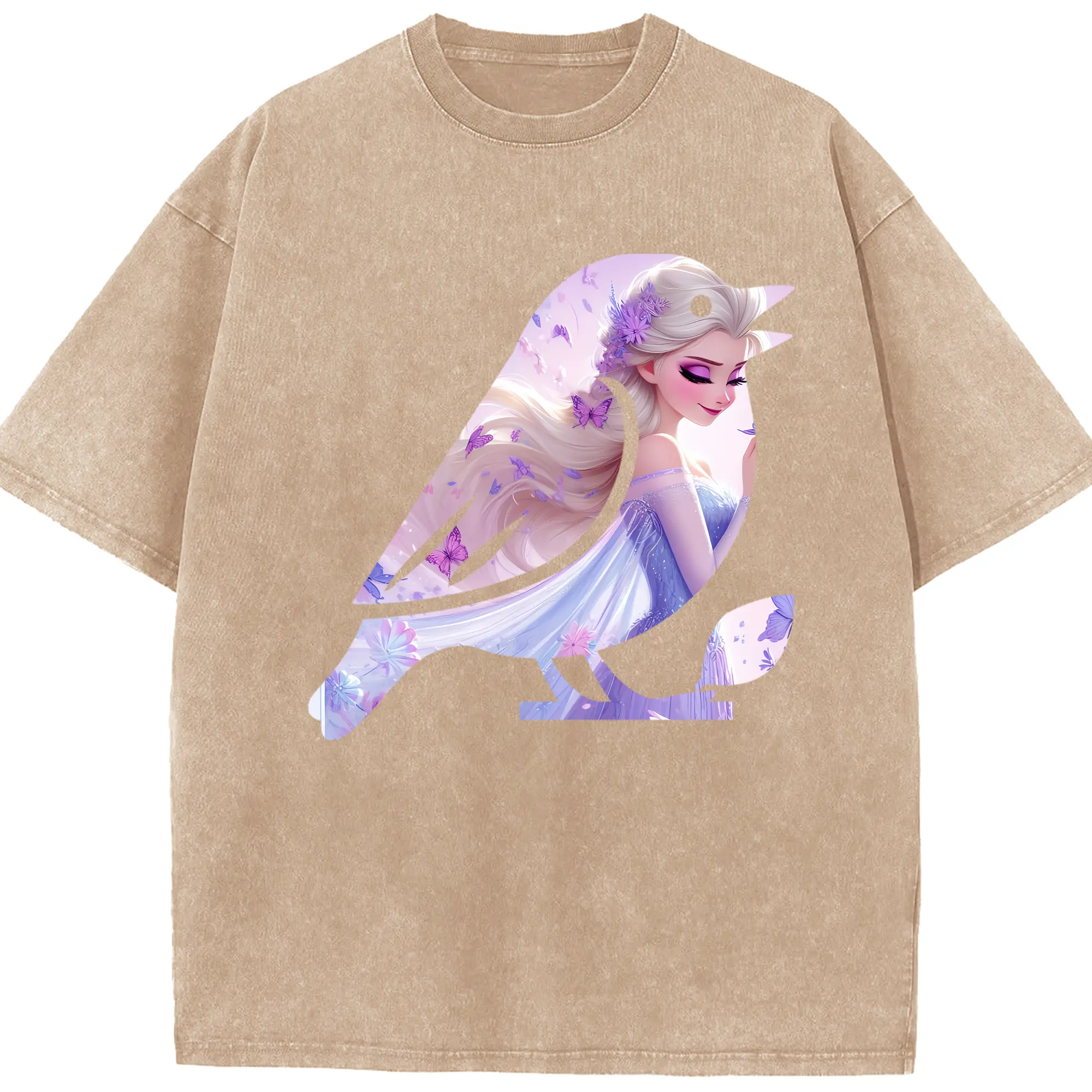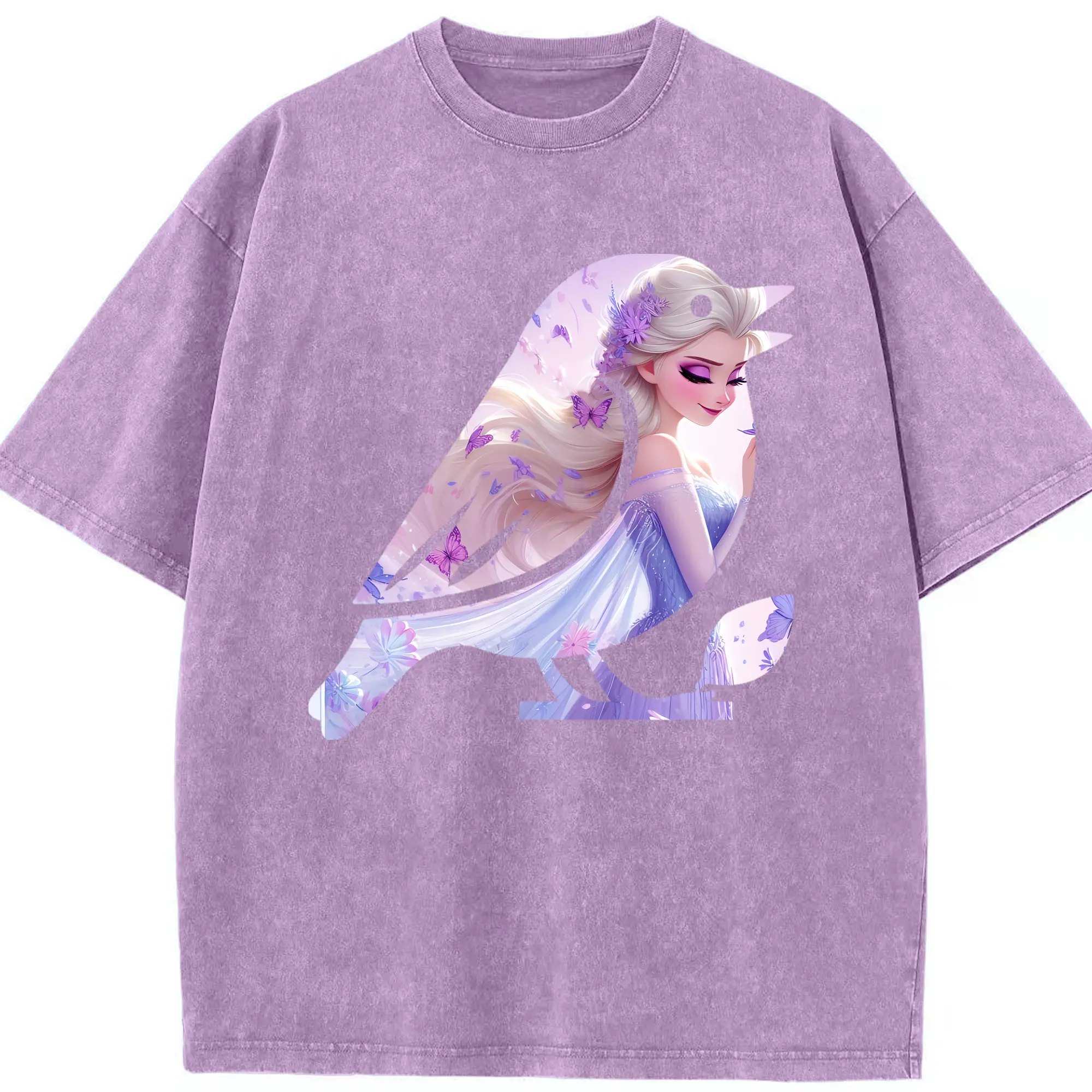アナと雪の女王(Frozen) グッズ エルサ(Elsa) - 綿100% ヴィンテージ風 半袖Tシャツ ・ 背面プリント ・ 柔らか肌触り ・ 通気性 快適 ・ スポーツ カジュアル 外出用