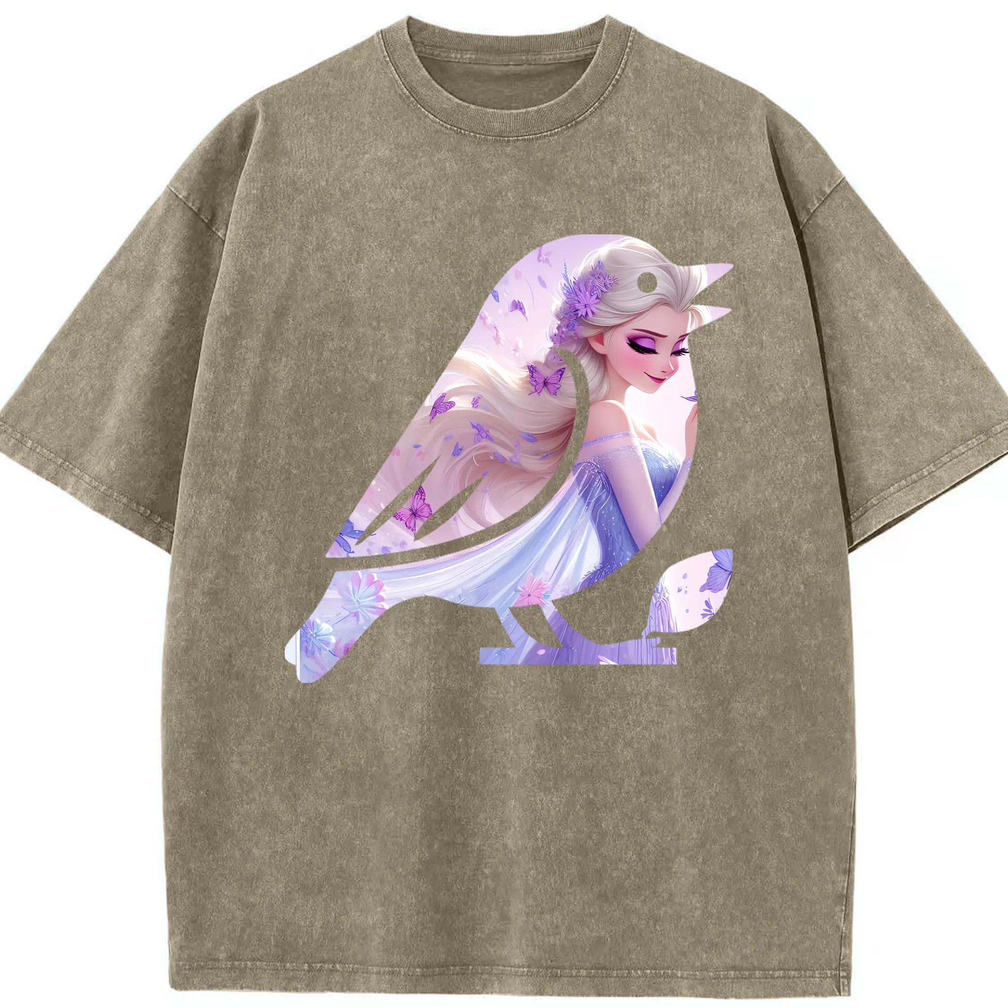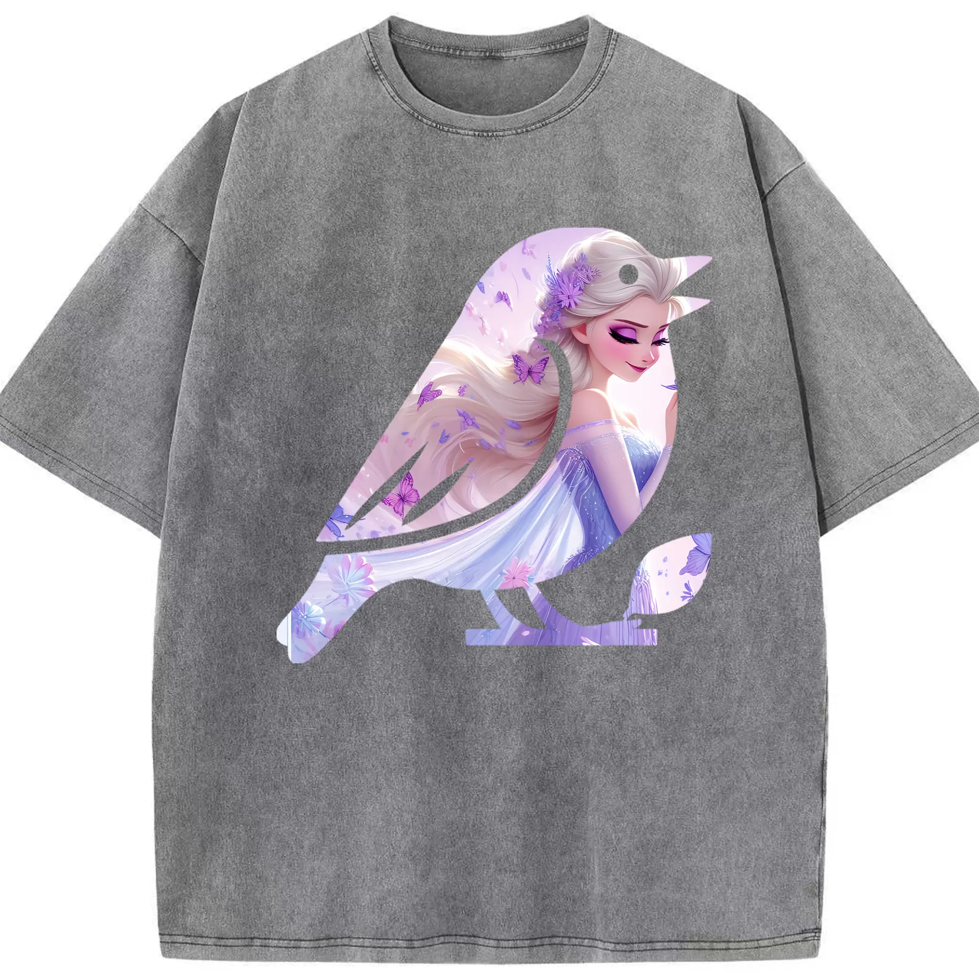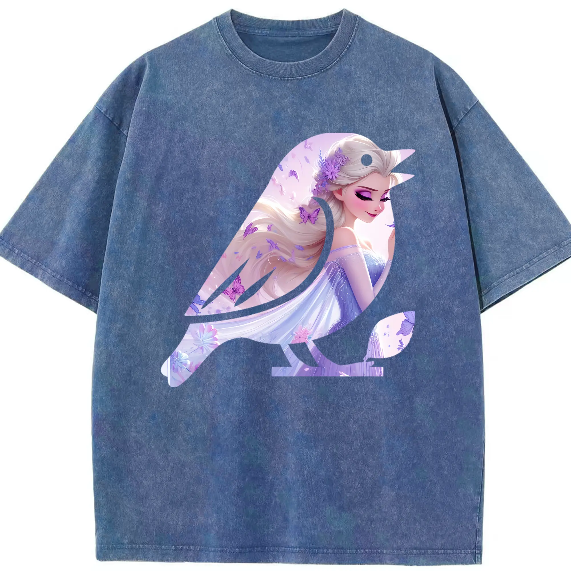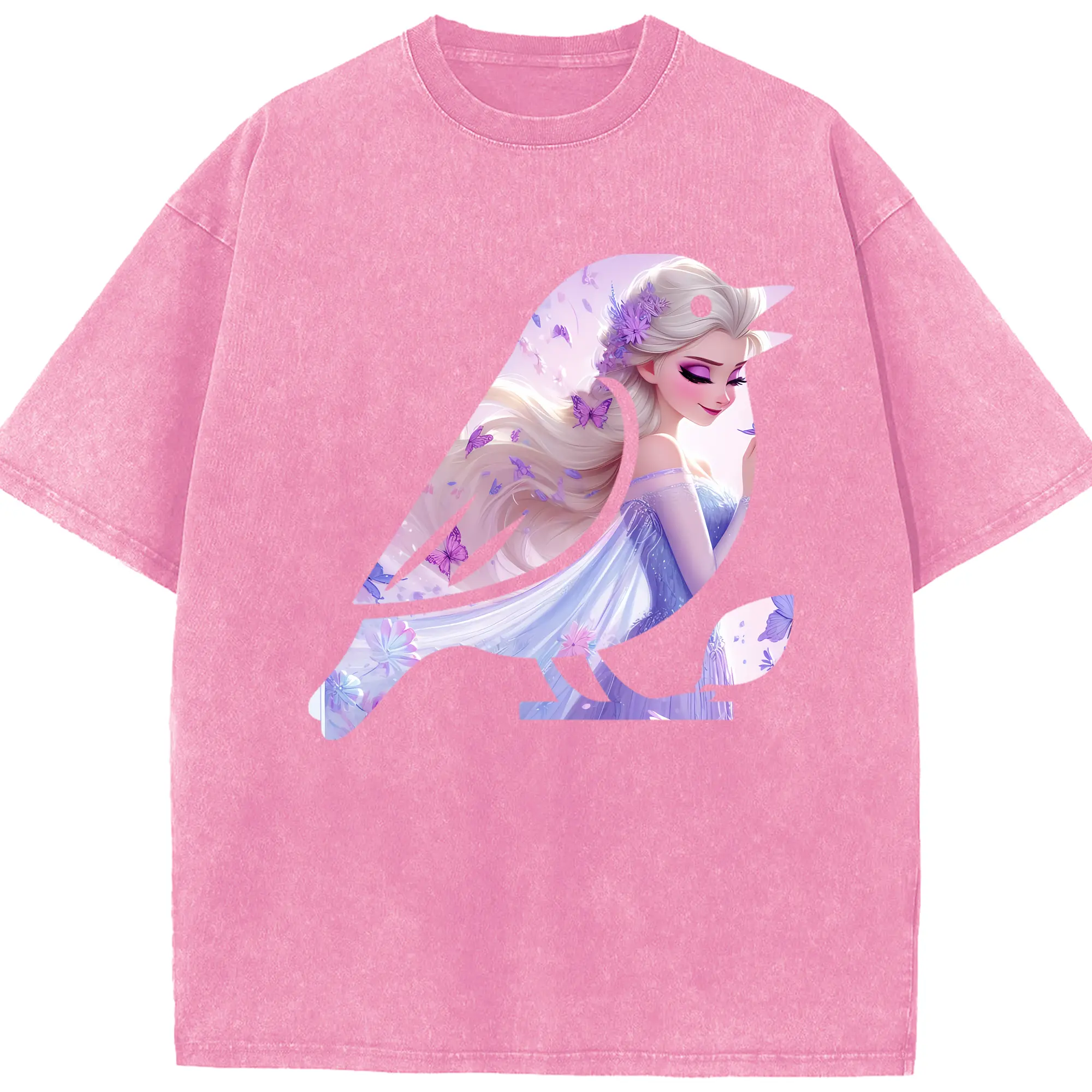 アナと雪の女王(Frozen) グッズ エルサ(Elsa) - 綿100% ヴィンテージ風 半袖Tシャツ ・ 背面プリント ・ 柔らか肌触り ・ 通気性 快適 ・ スポーツ カジュアル 外出用