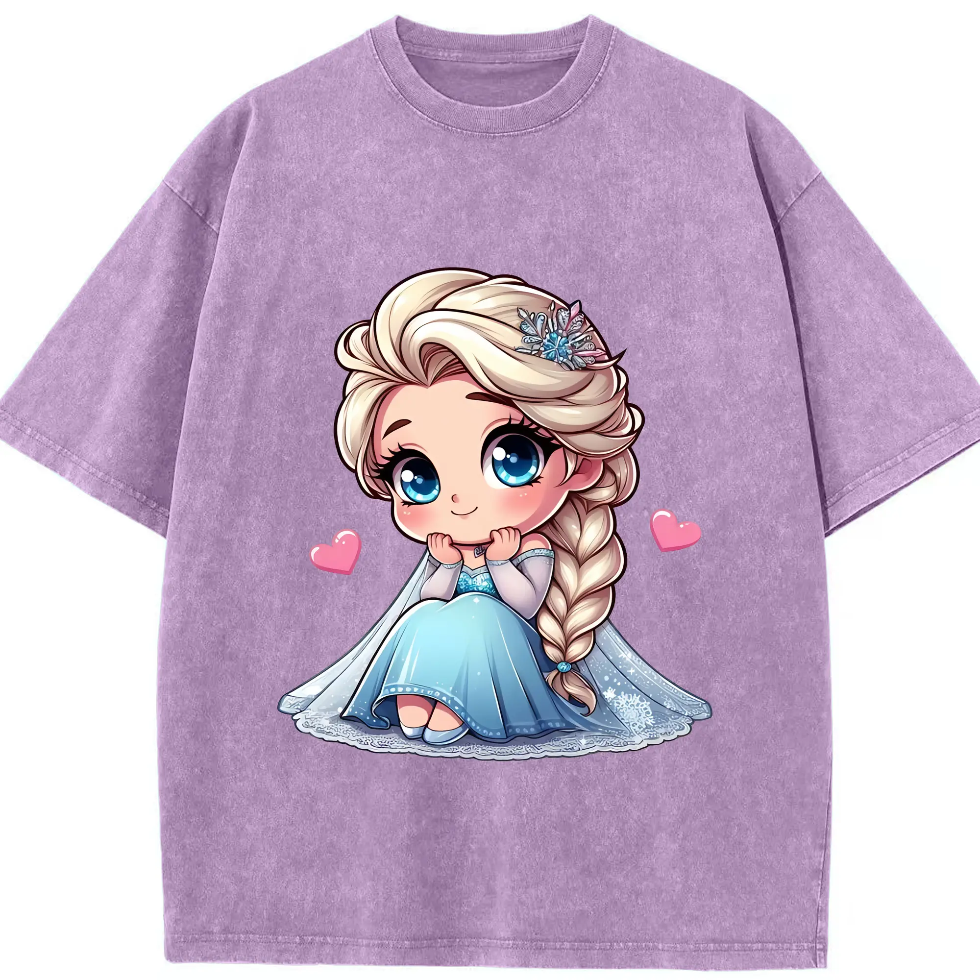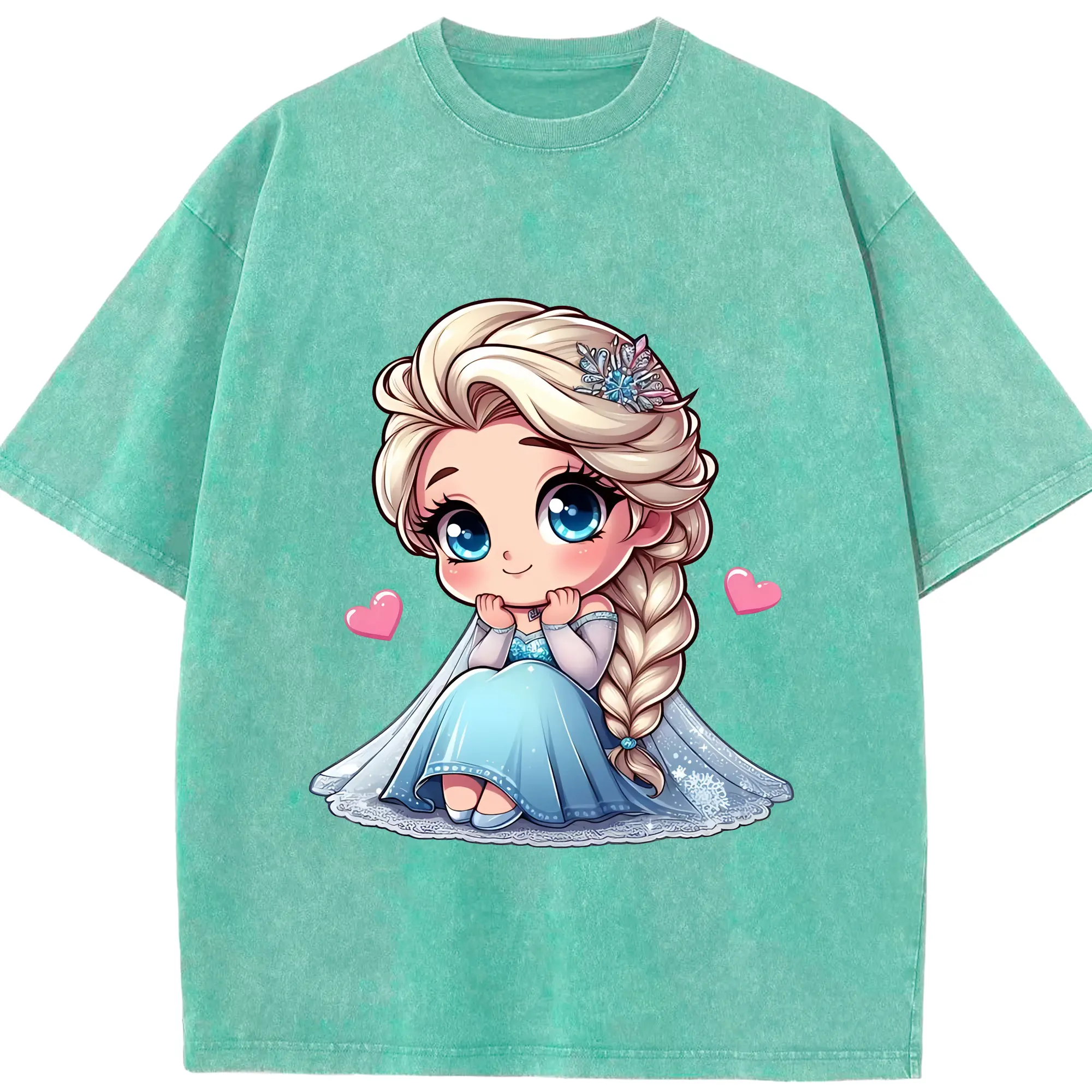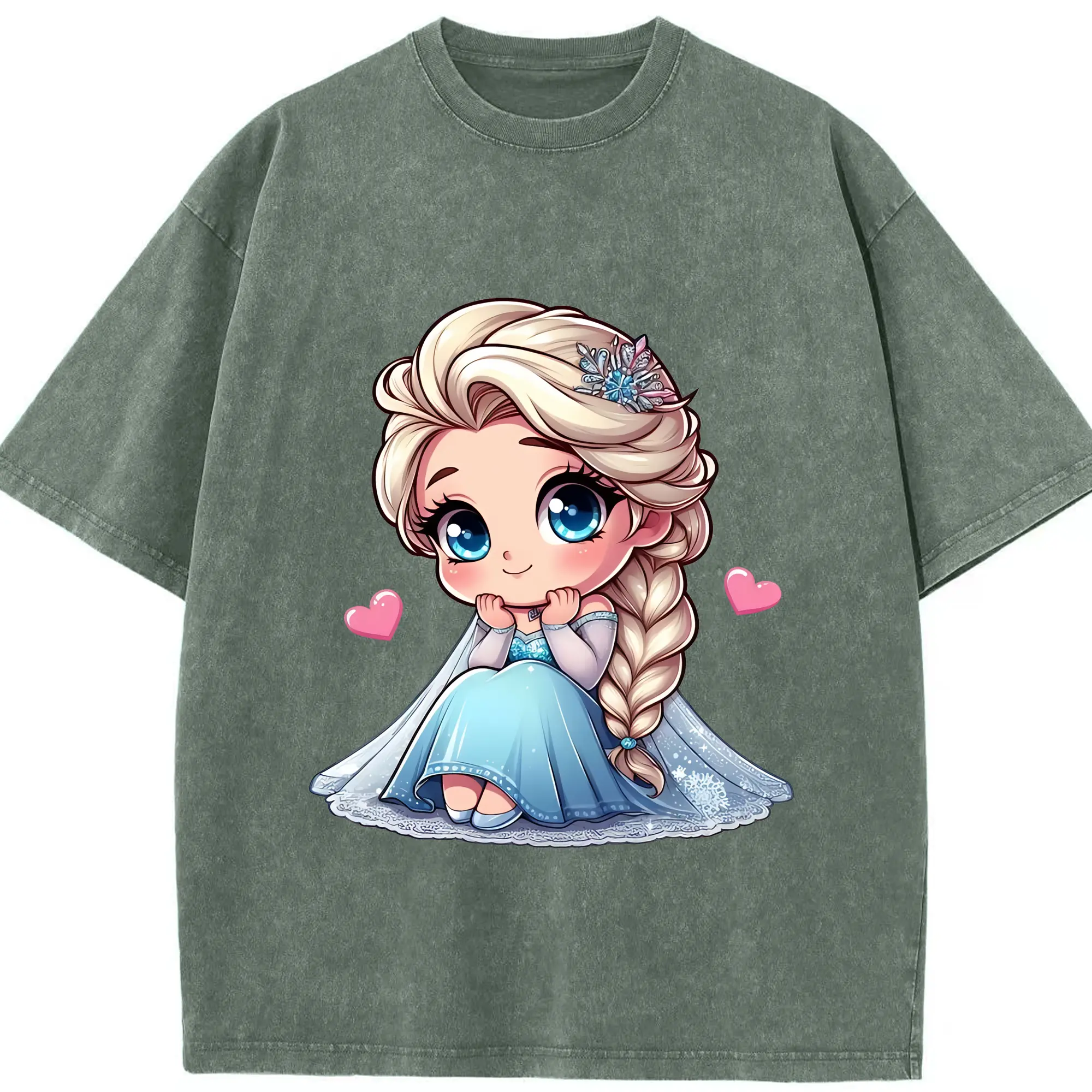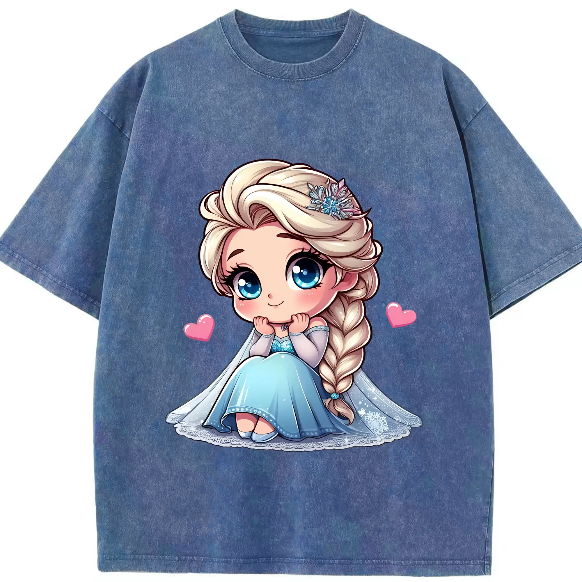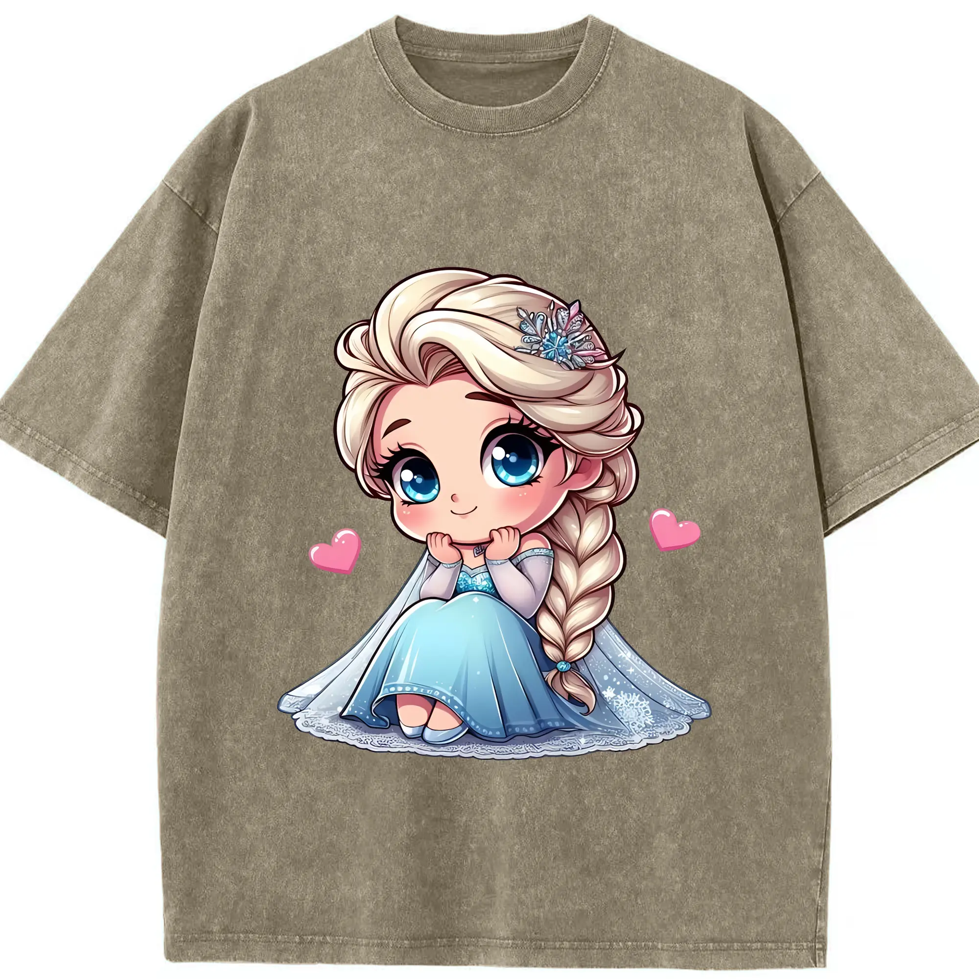アナと雪の女王(Frozen) グッズ エルサ(Elsa) - 綿100% ヴィンテージ風 半袖Tシャツ ・ フロントプリント ・ 柔らか肌触り ・ 通気性 快適 ・ スポーツ カジュアル 外出用