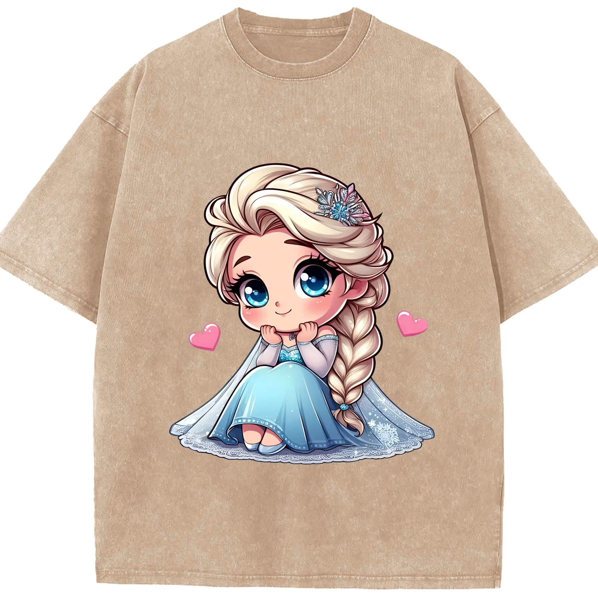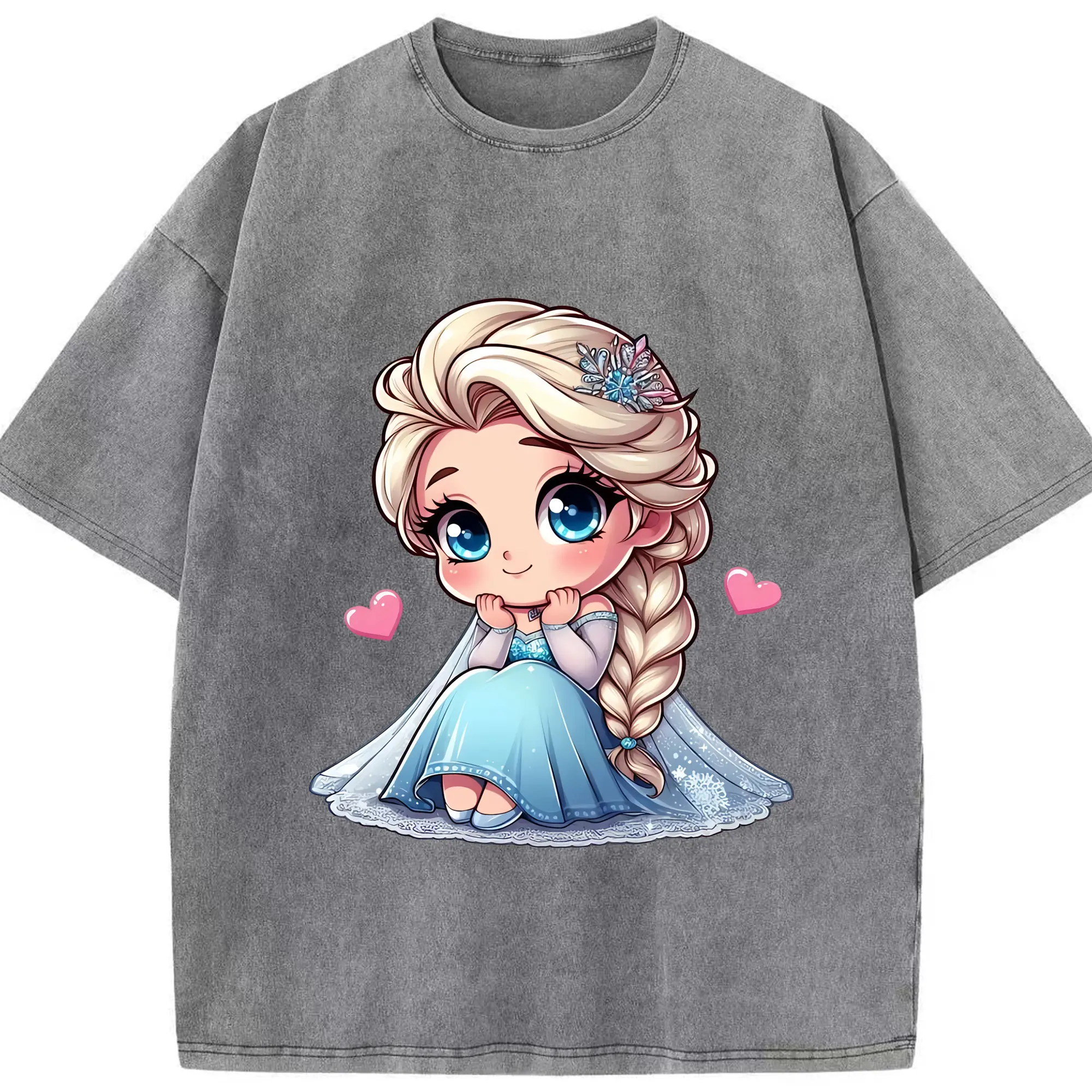 アナと雪の女王(Frozen) グッズ エルサ(Elsa) - 綿100% ヴィンテージ風 半袖Tシャツ ・ 背面プリント ・ 柔らか肌触り ・ 通気性 快適 ・ スポーツ カジュアル 外出用