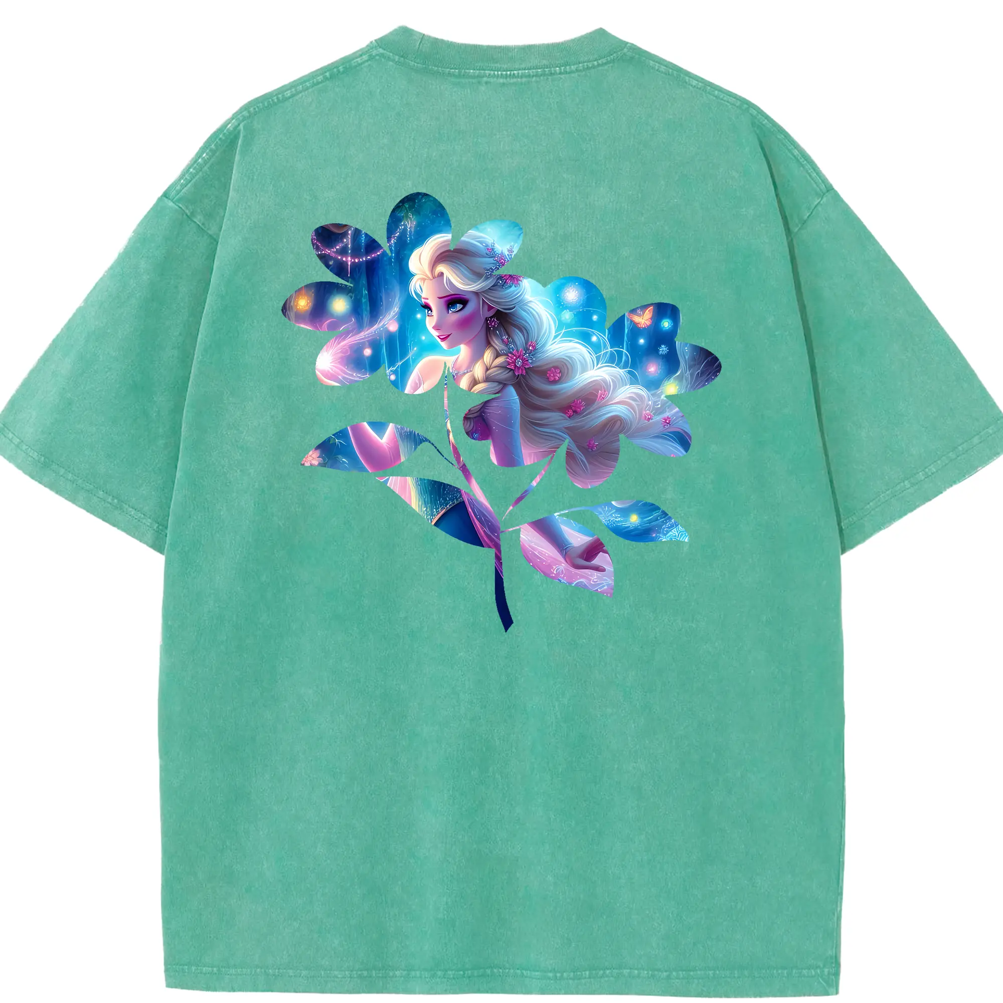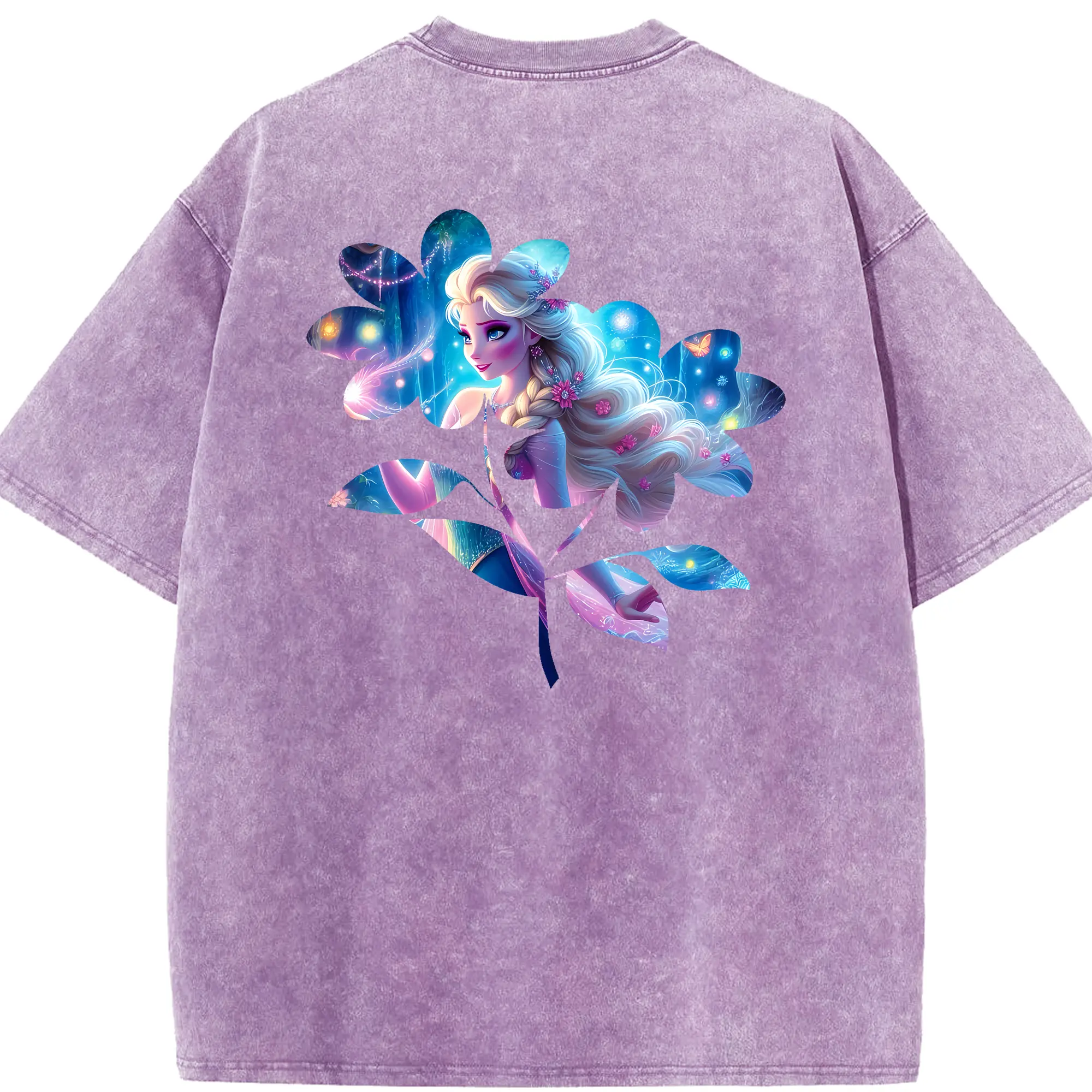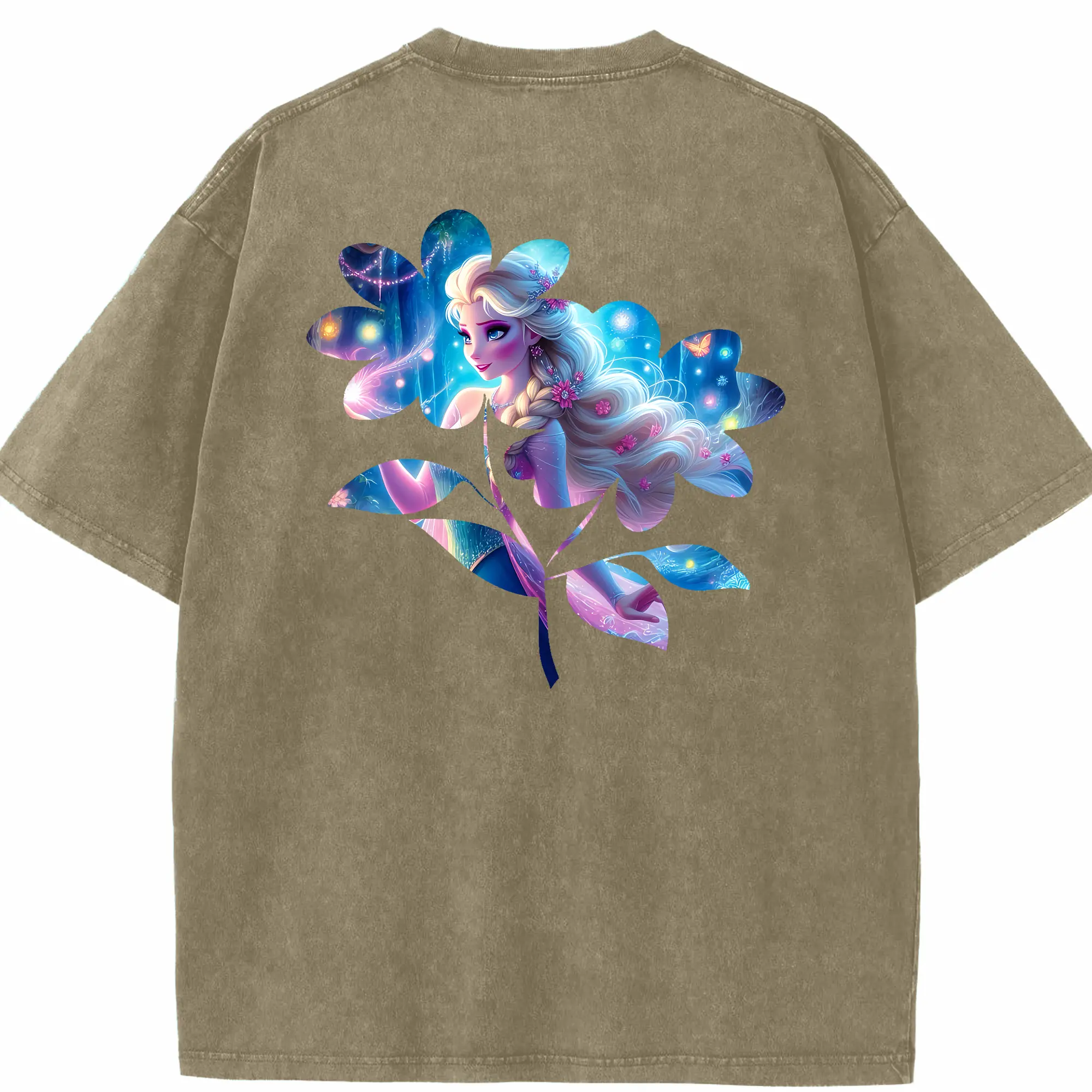 アナと雪の女王(Frozen) グッズ エルサ(Elsa) - 綿100% ヴィンテージ風 半袖Tシャツ ・ フロントプリント ・ 柔らか肌触り ・ 通気性 快適 ・ スポーツ カジュアル 外出用