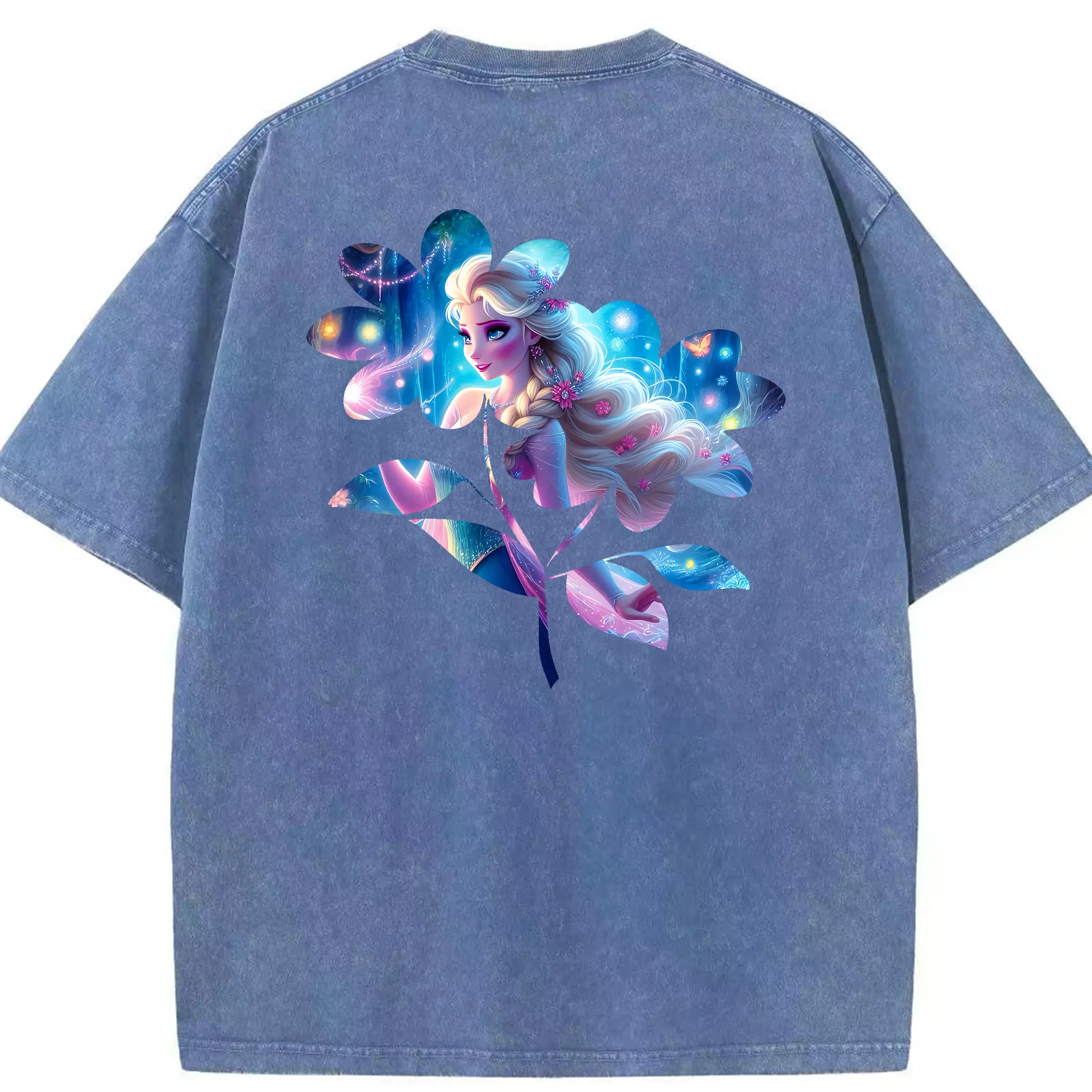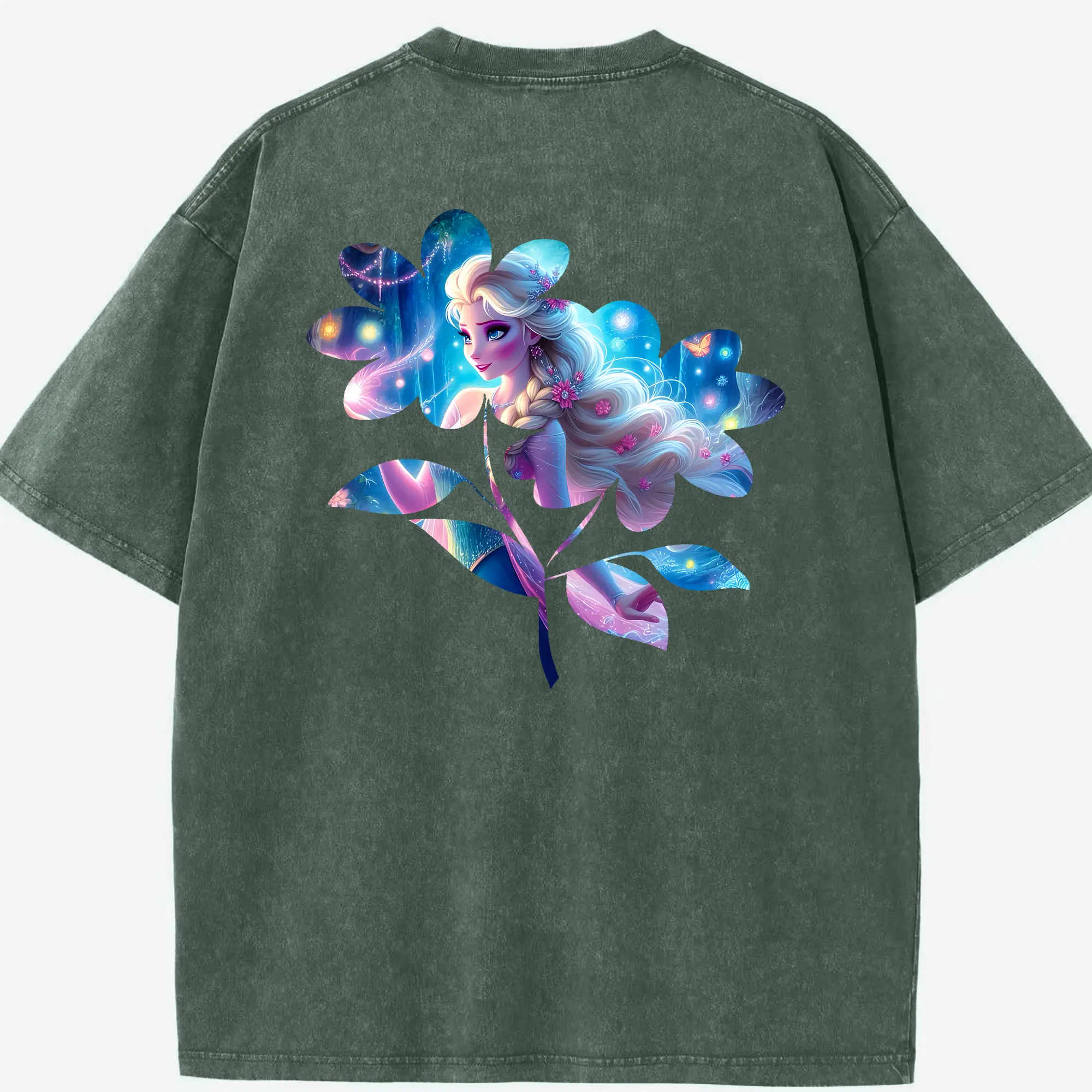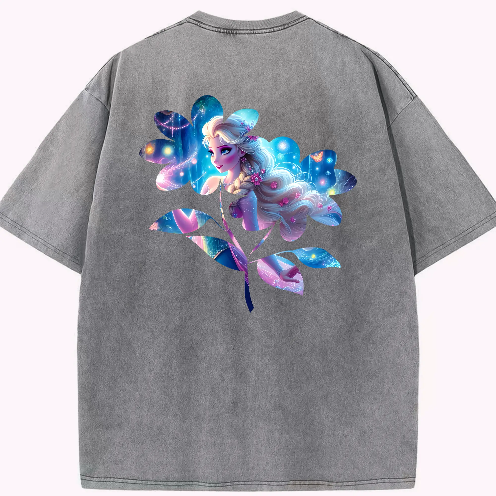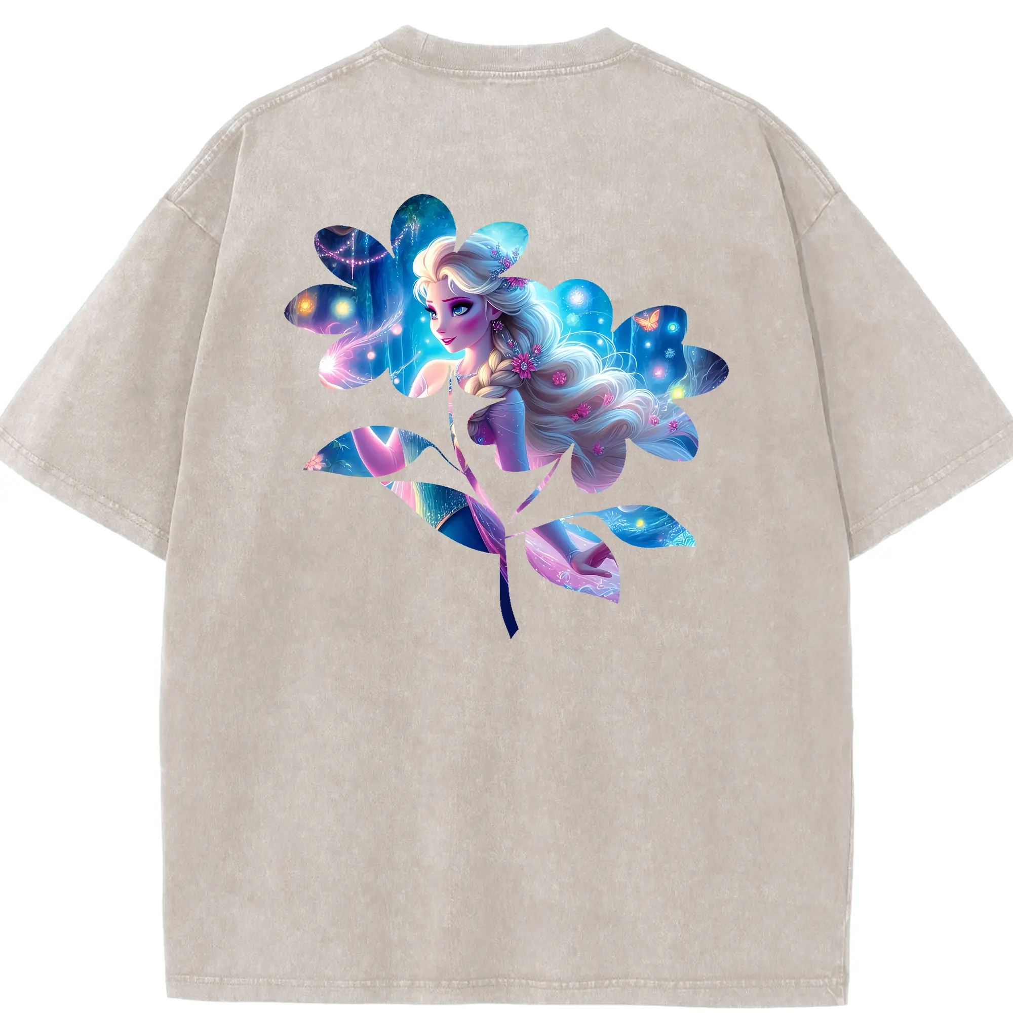 アナと雪の女王(Frozen) グッズ エルサ(Elsa) - 綿100% ヴィンテージ風 半袖Tシャツ ・ フロントプリント ・ 柔らか肌触り ・ 通気性 快適 ・ スポーツ カジュアル 外出用