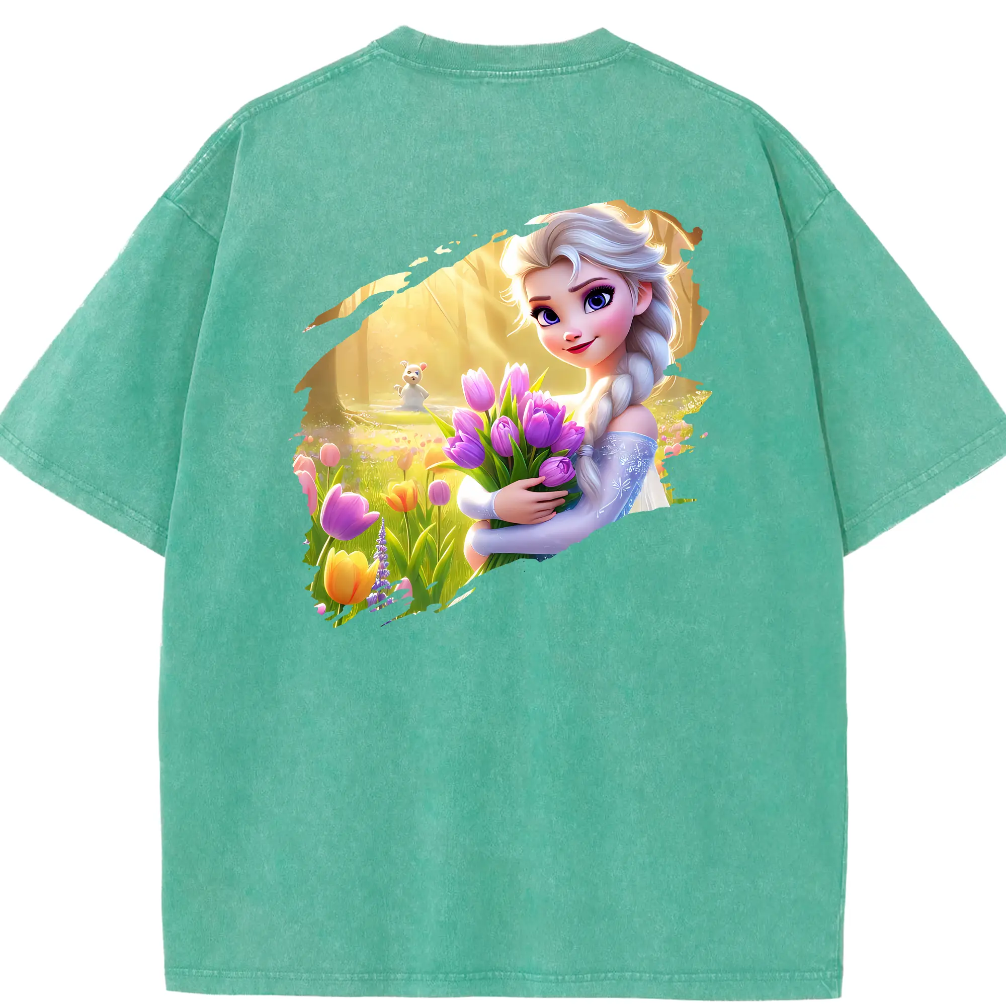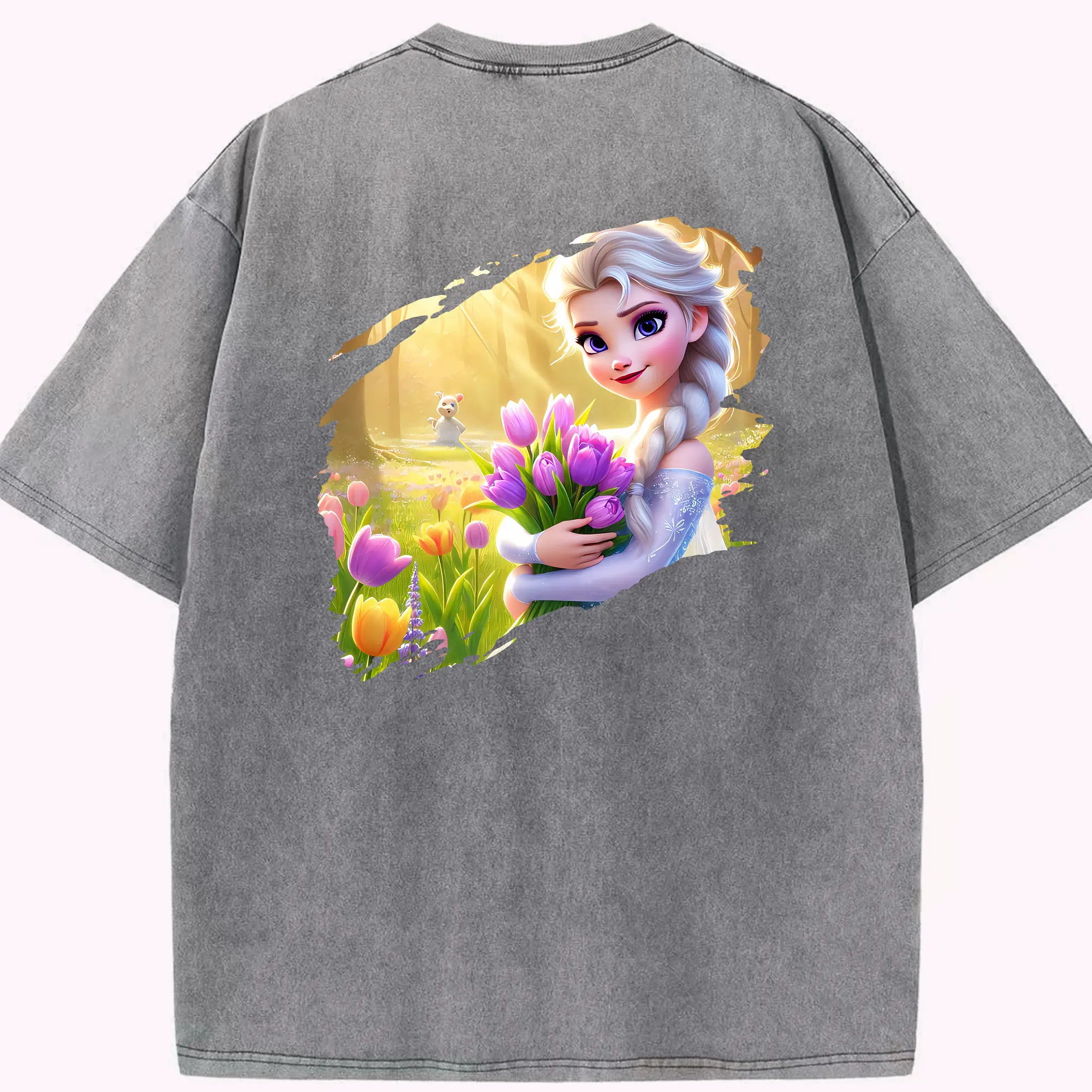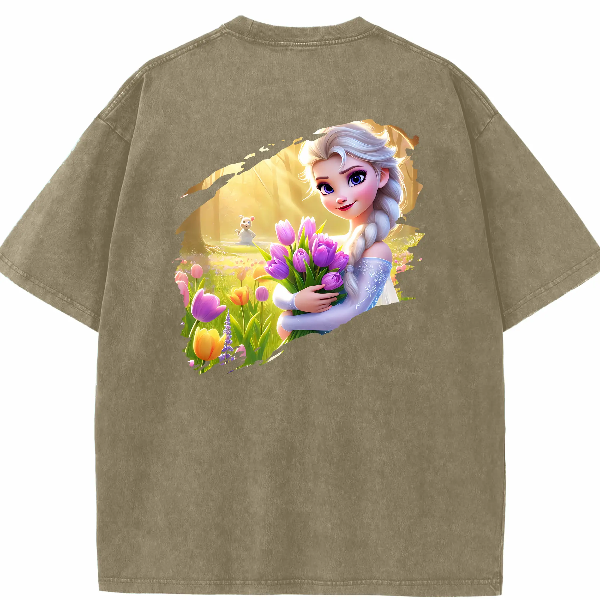 アナと雪の女王(Frozen) グッズ エルサ(Elsa) - 綿100% ヴィンテージ風 半袖Tシャツ ・ フロントプリント ・ 柔らか肌触り ・ 通気性 快適 ・ スポーツ カジュアル 外出用