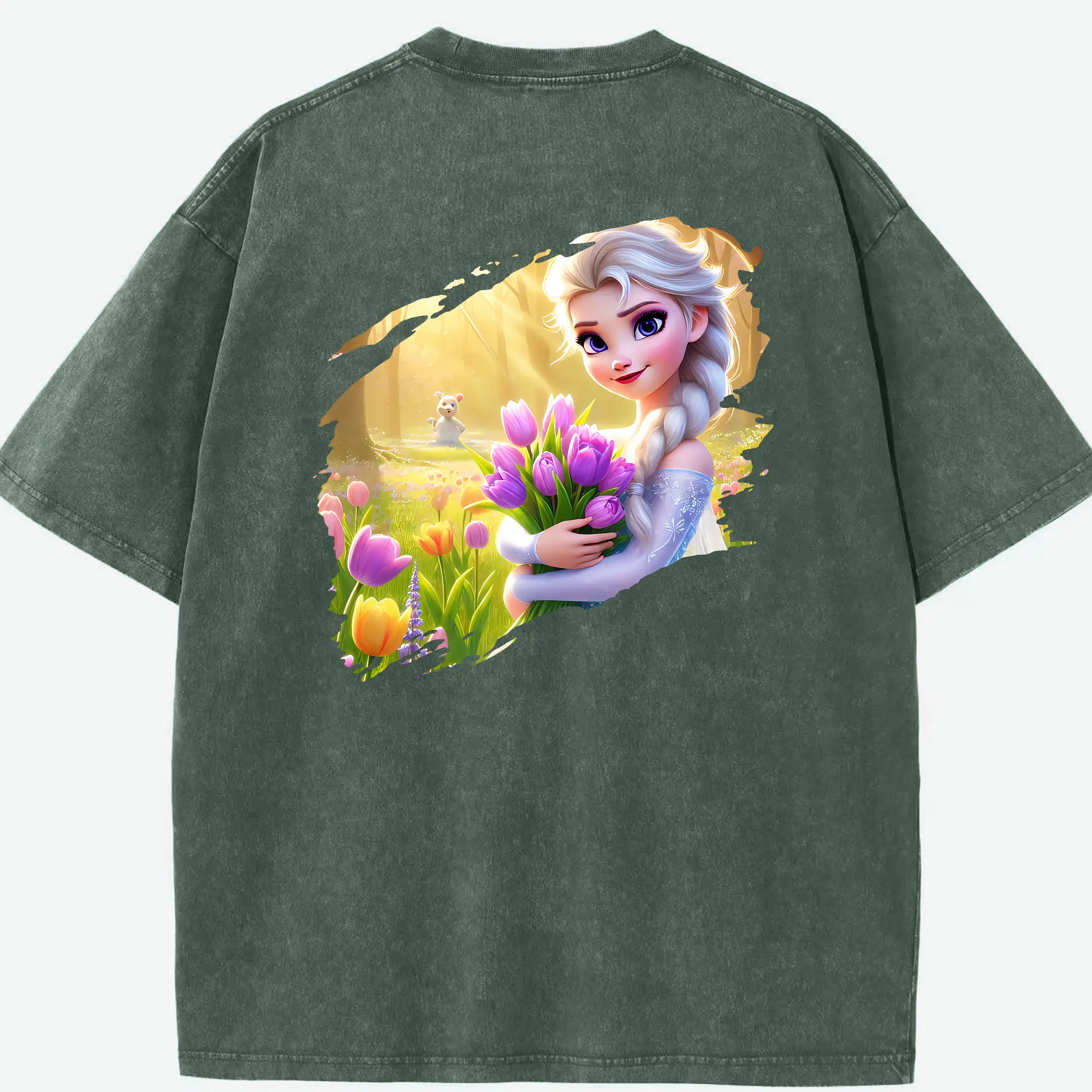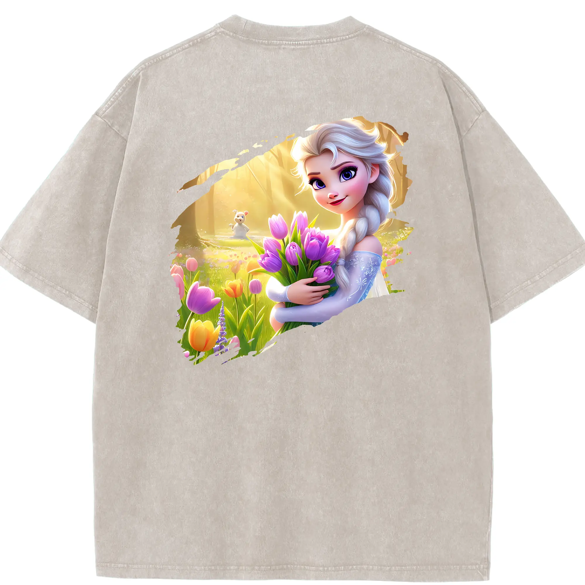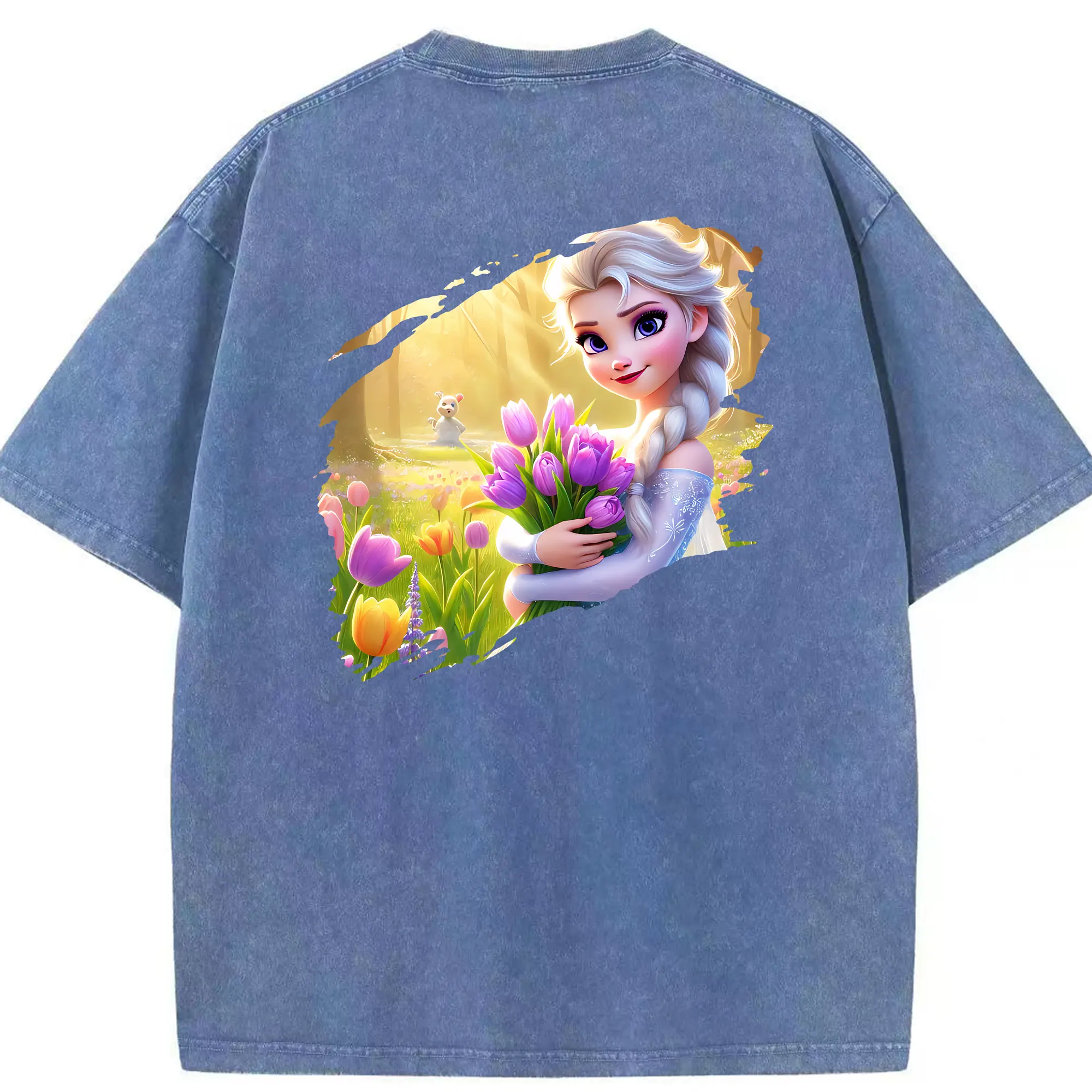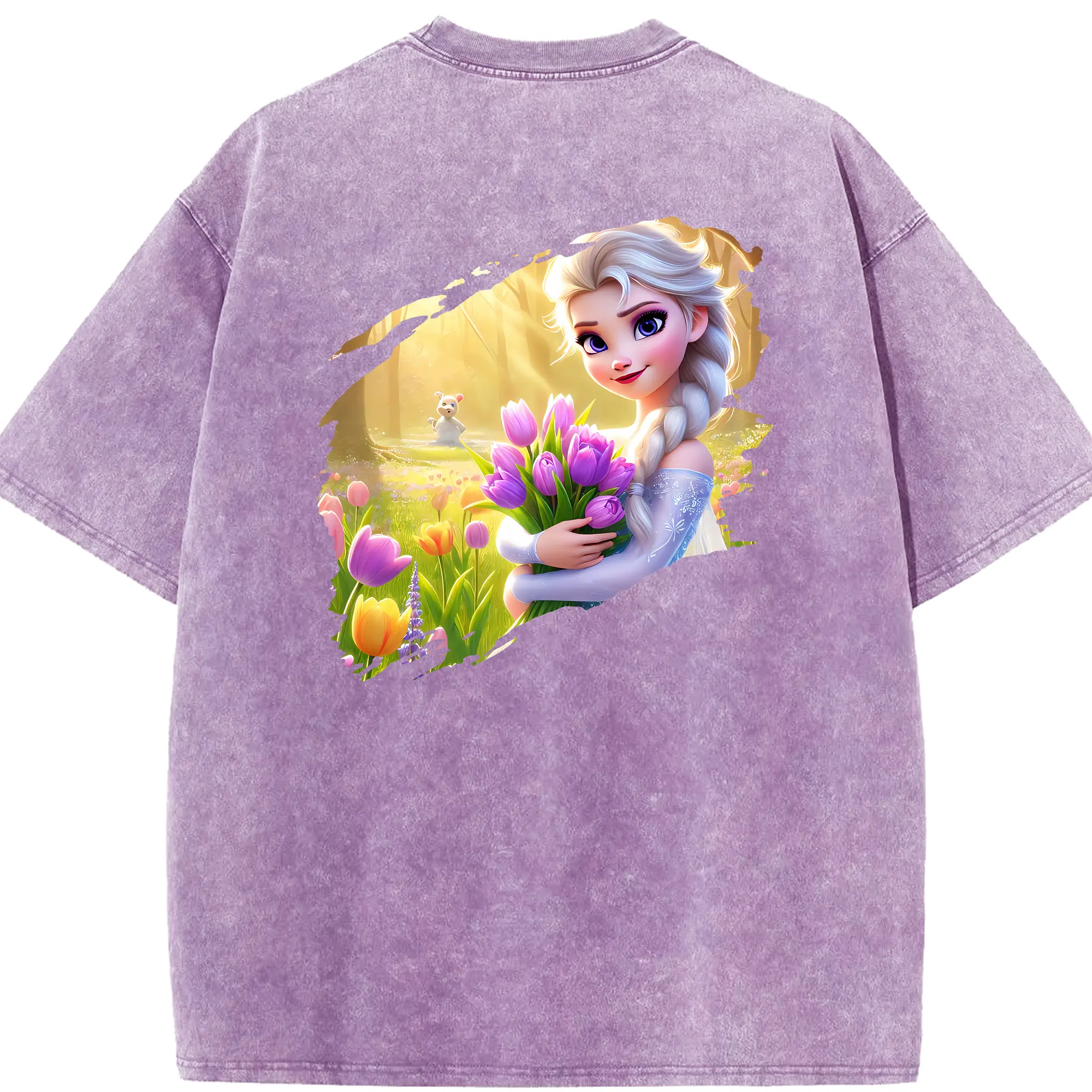 アナと雪の女王(Frozen) グッズ エルサ(Elsa) - 綿100% ヴィンテージ風 半袖Tシャツ ・ フロントプリント ・ 柔らか肌触り ・ 通気性 快適 ・ スポーツ カジュアル 外出用