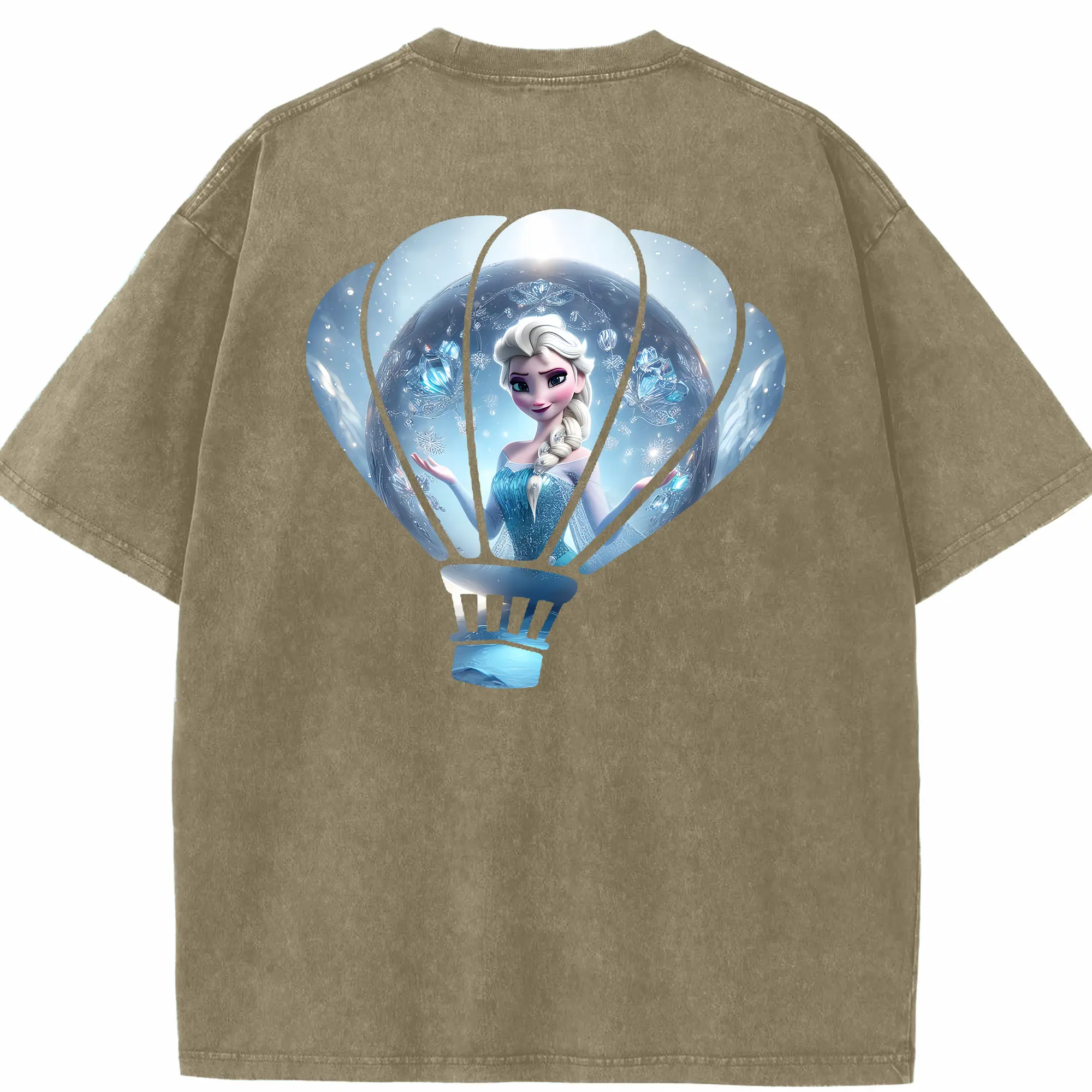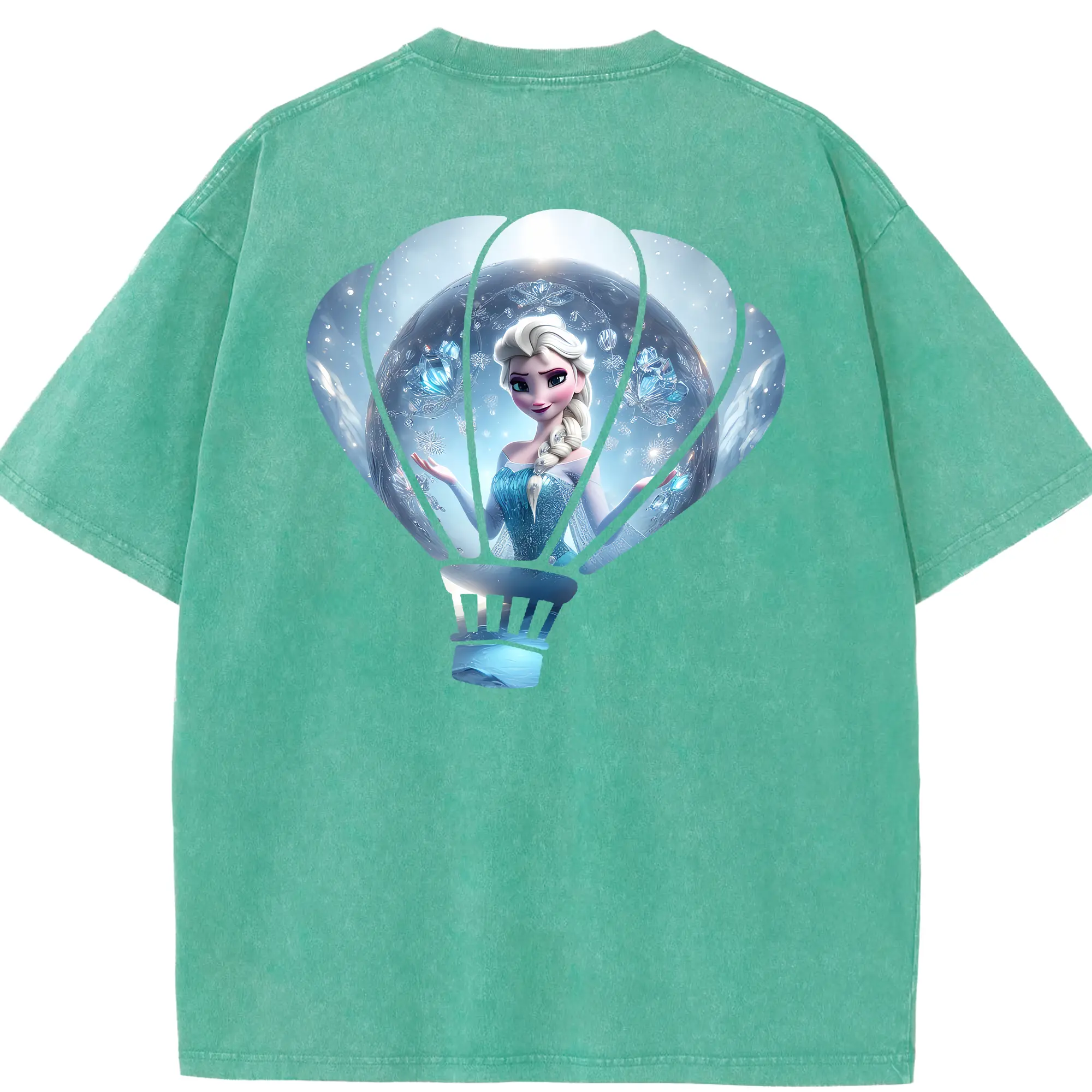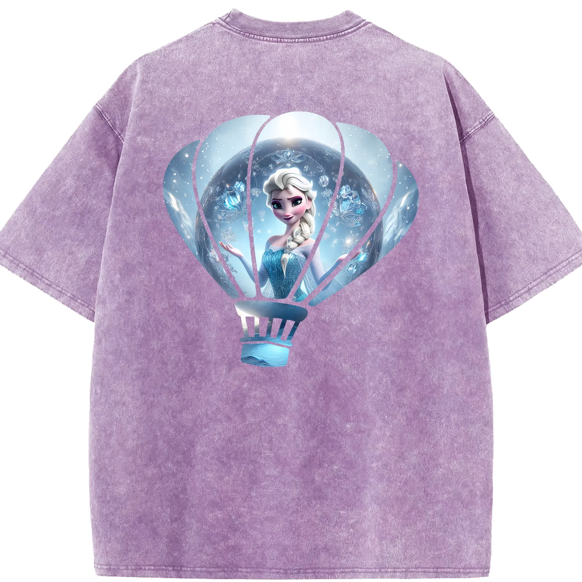 アナと雪の女王(Frozen) グッズ エルサ(Elsa) - 綿100% ヴィンテージ風 半袖Tシャツ ・ フロントプリント ・ 柔らか肌触り ・ 通気性 快適 ・ スポーツ カジュアル 外出用
