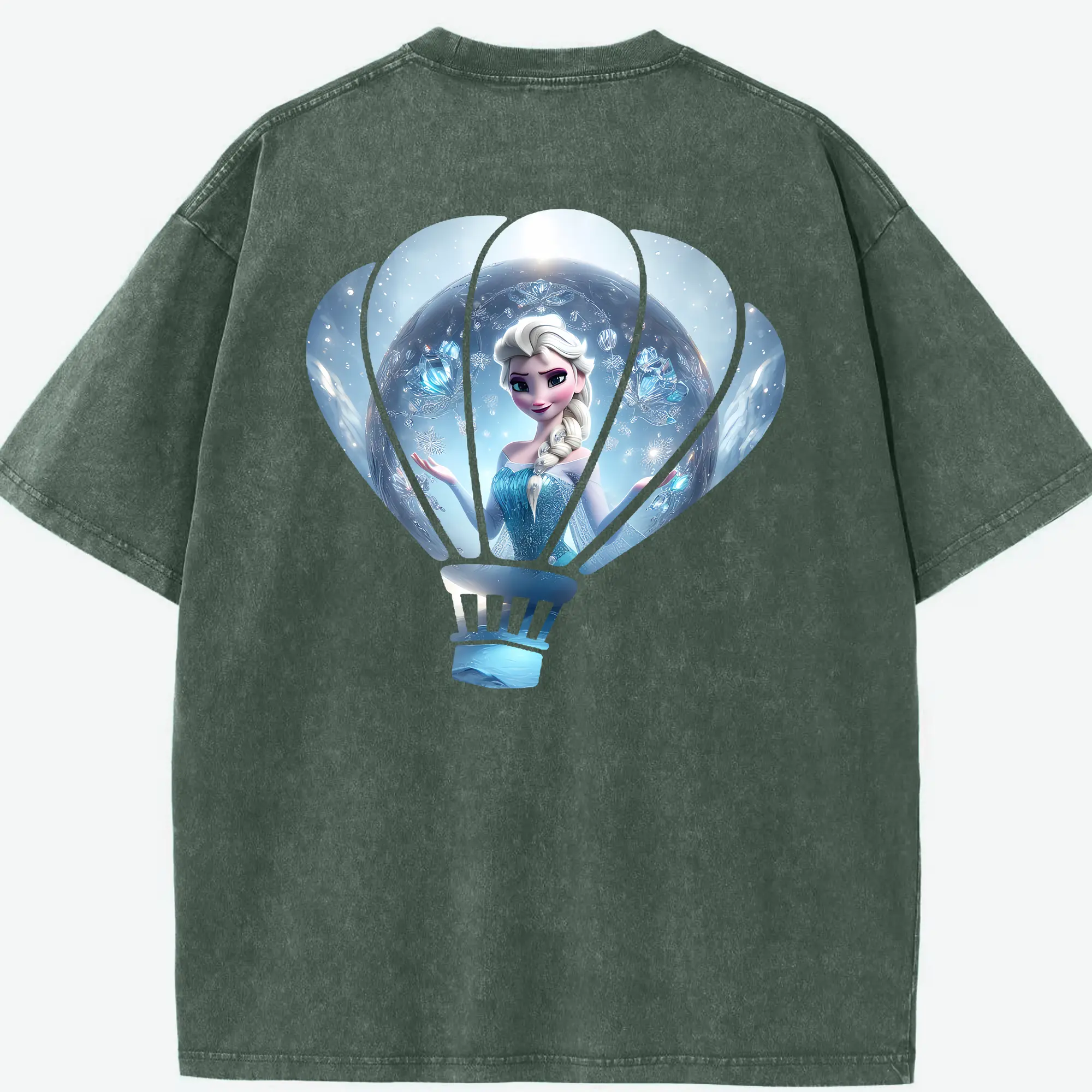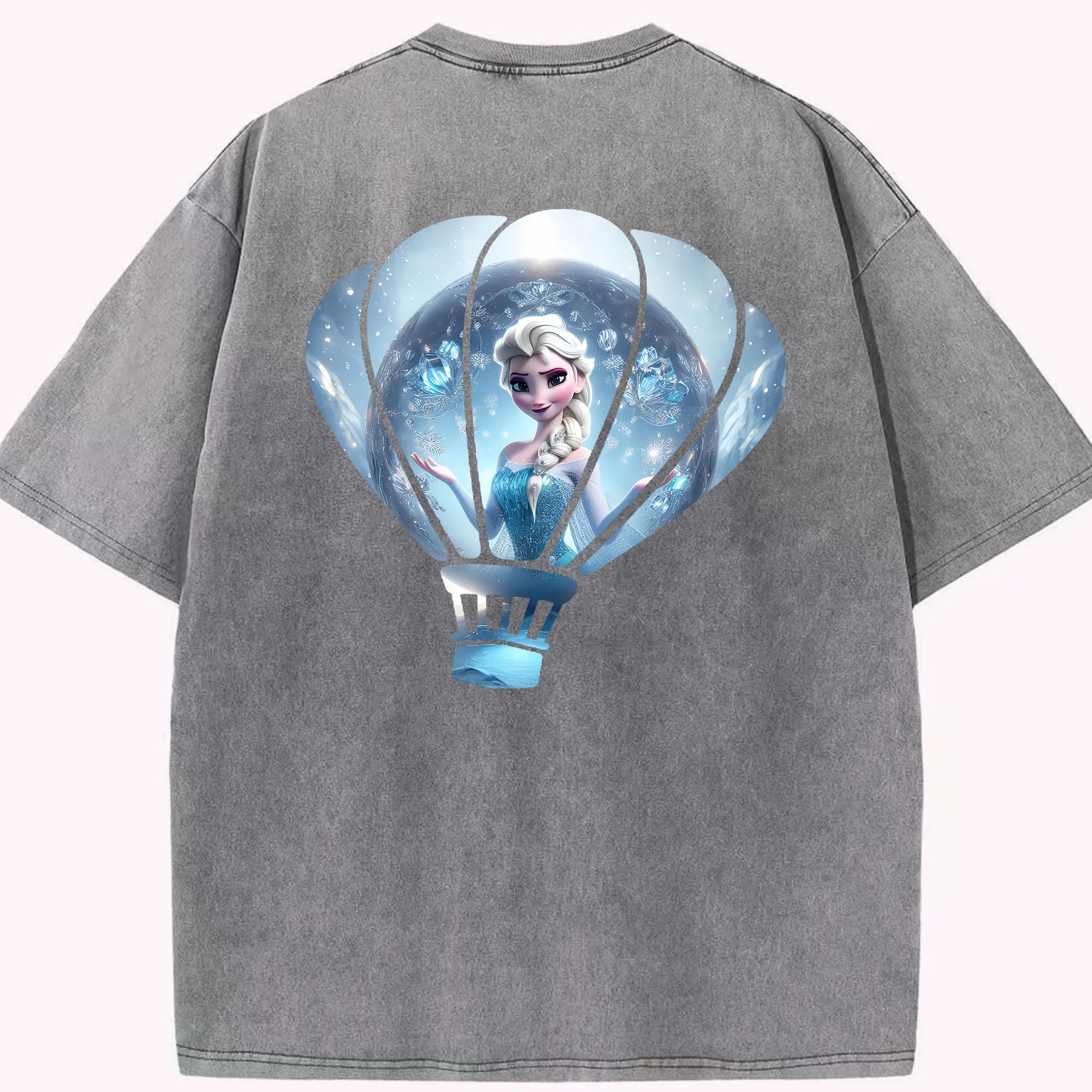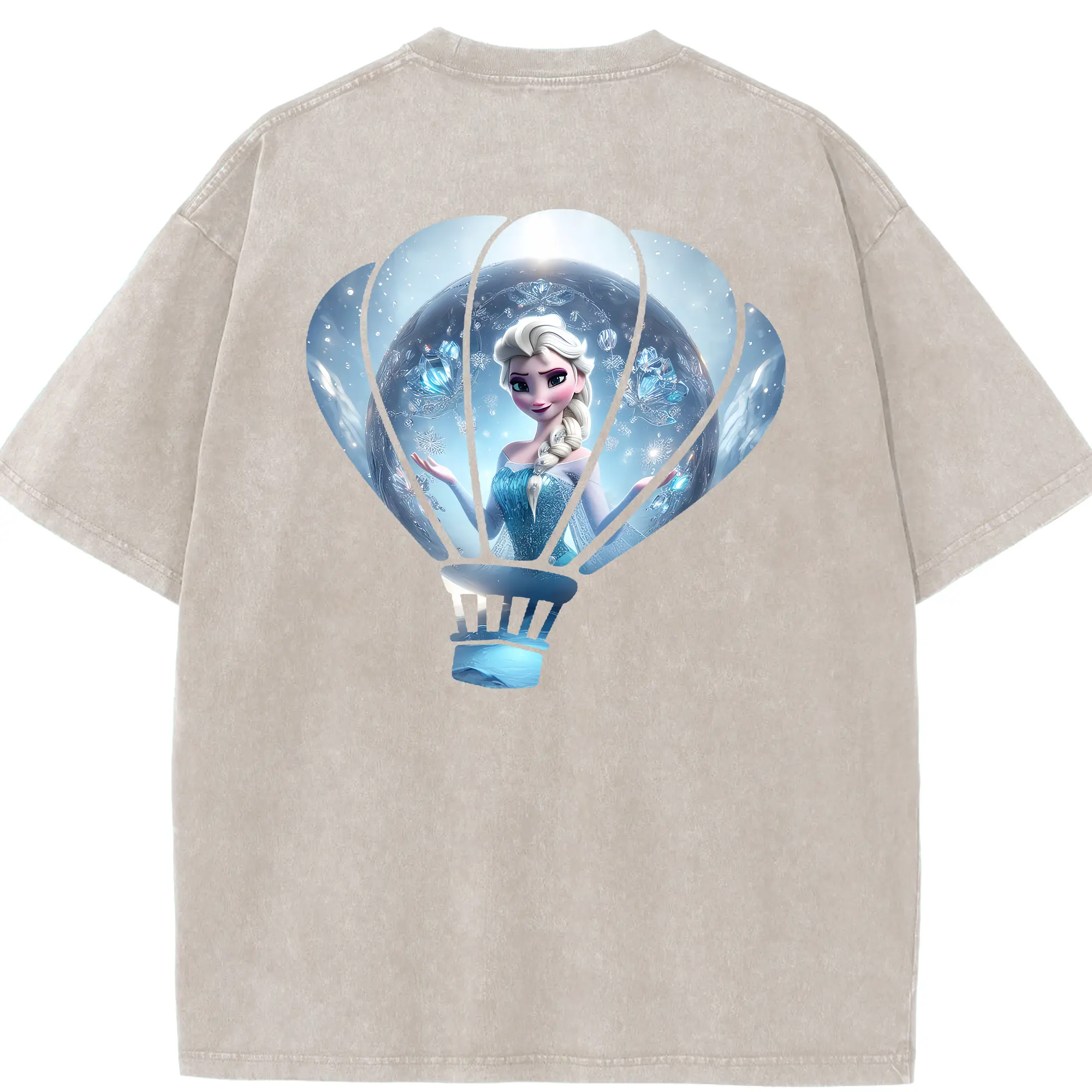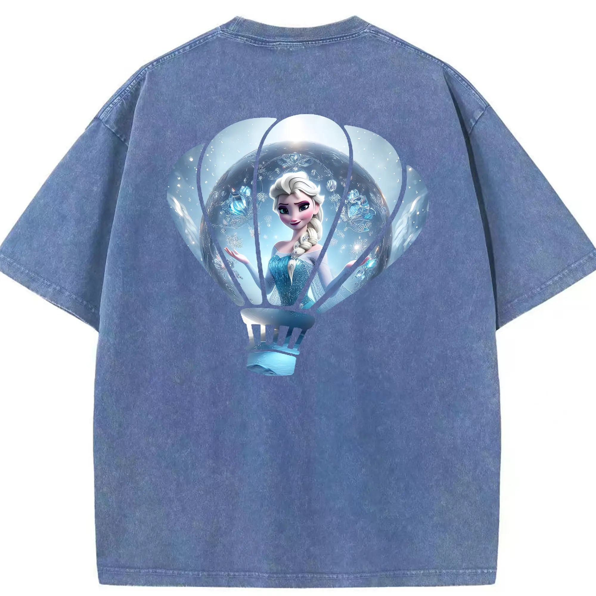 アナと雪の女王(Frozen) グッズ エルサ(Elsa) - 綿100% ヴィンテージ風 半袖Tシャツ ・ フロントプリント ・ 柔らか肌触り ・ 通気性 快適 ・ スポーツ カジュアル 外出用