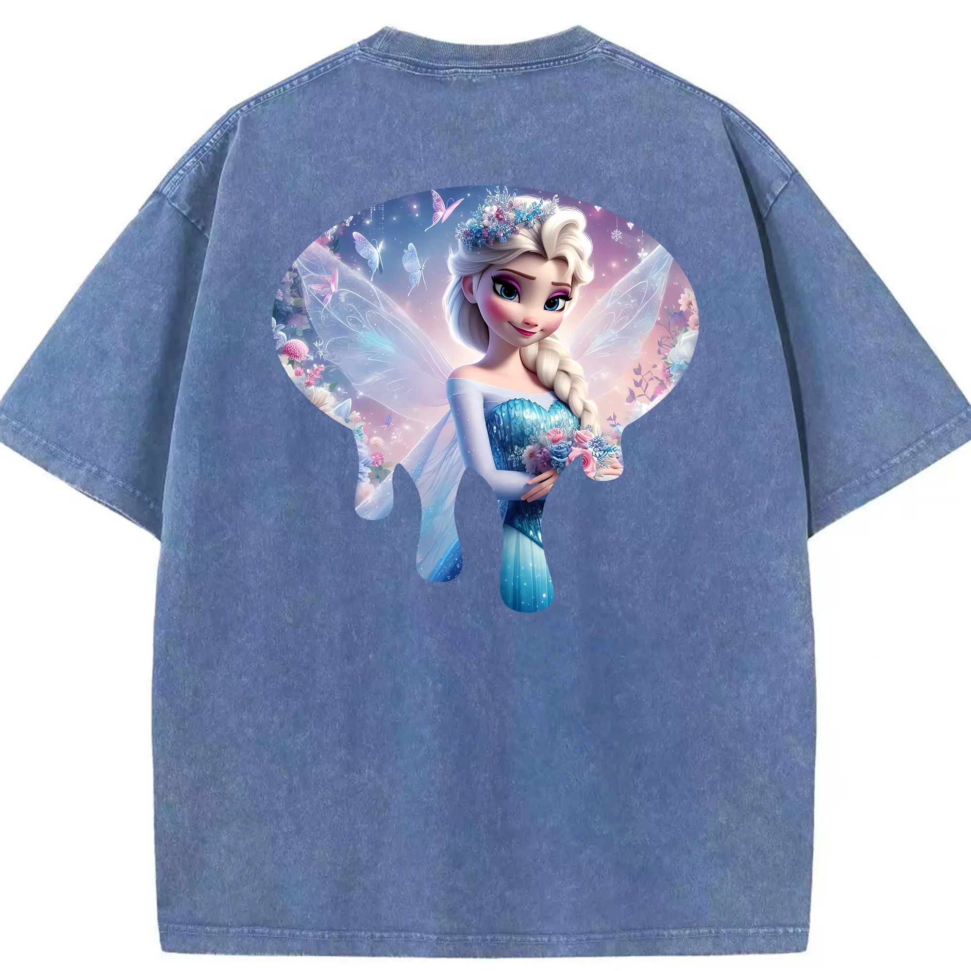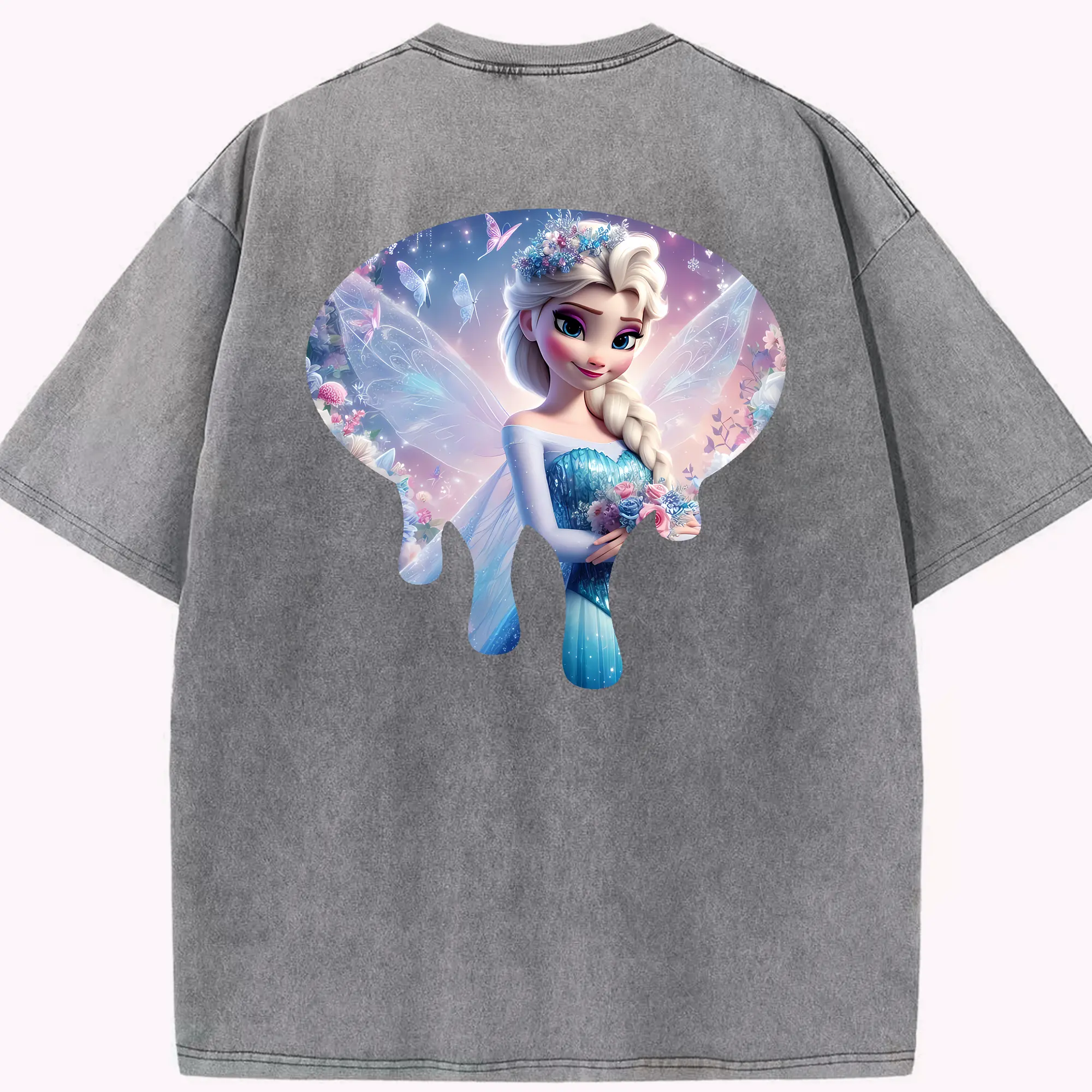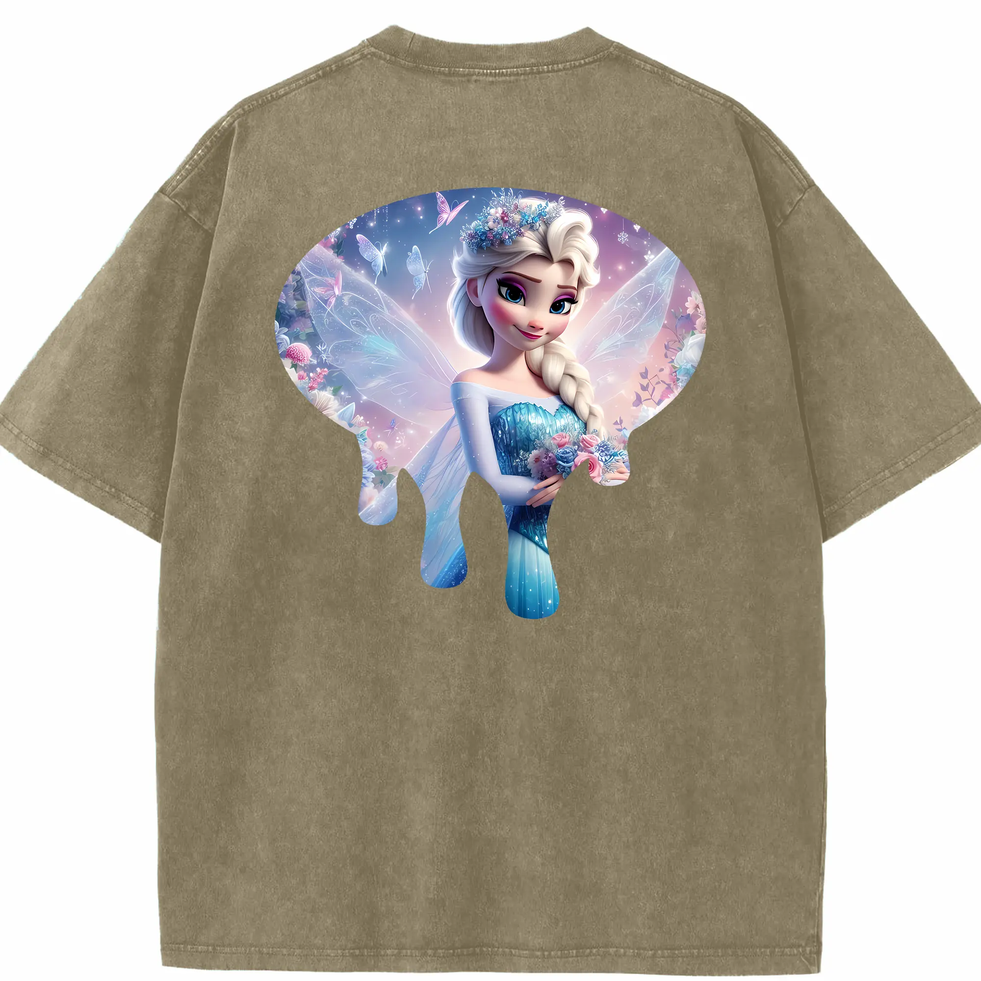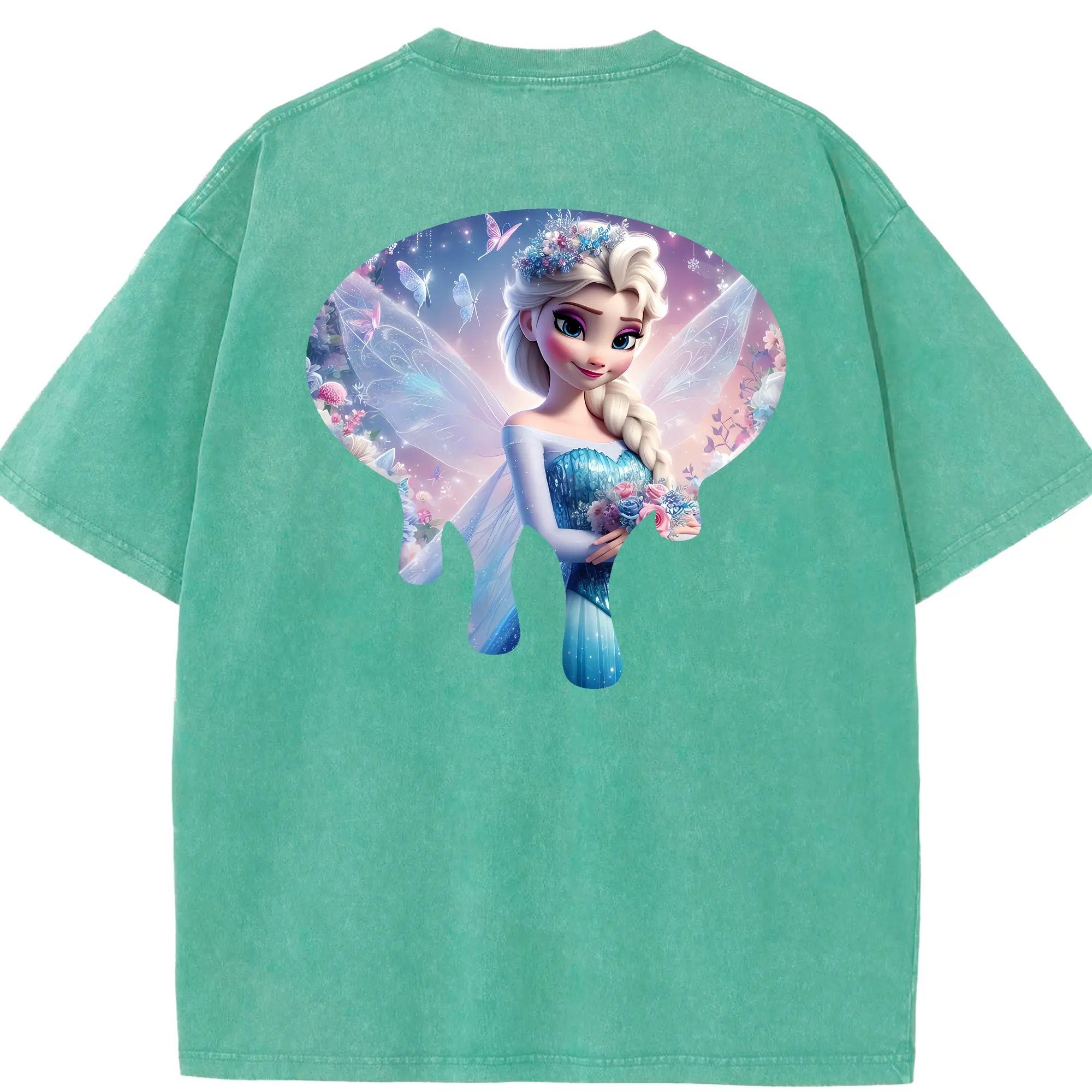 アナと雪の女王(Frozen) グッズ エルサ(Elsa) - 綿100% ヴィンテージ風 半袖Tシャツ ・ フロントプリント ・ 柔らか肌触り ・ 通気性 快適 ・ スポーツ カジュアル 外出用