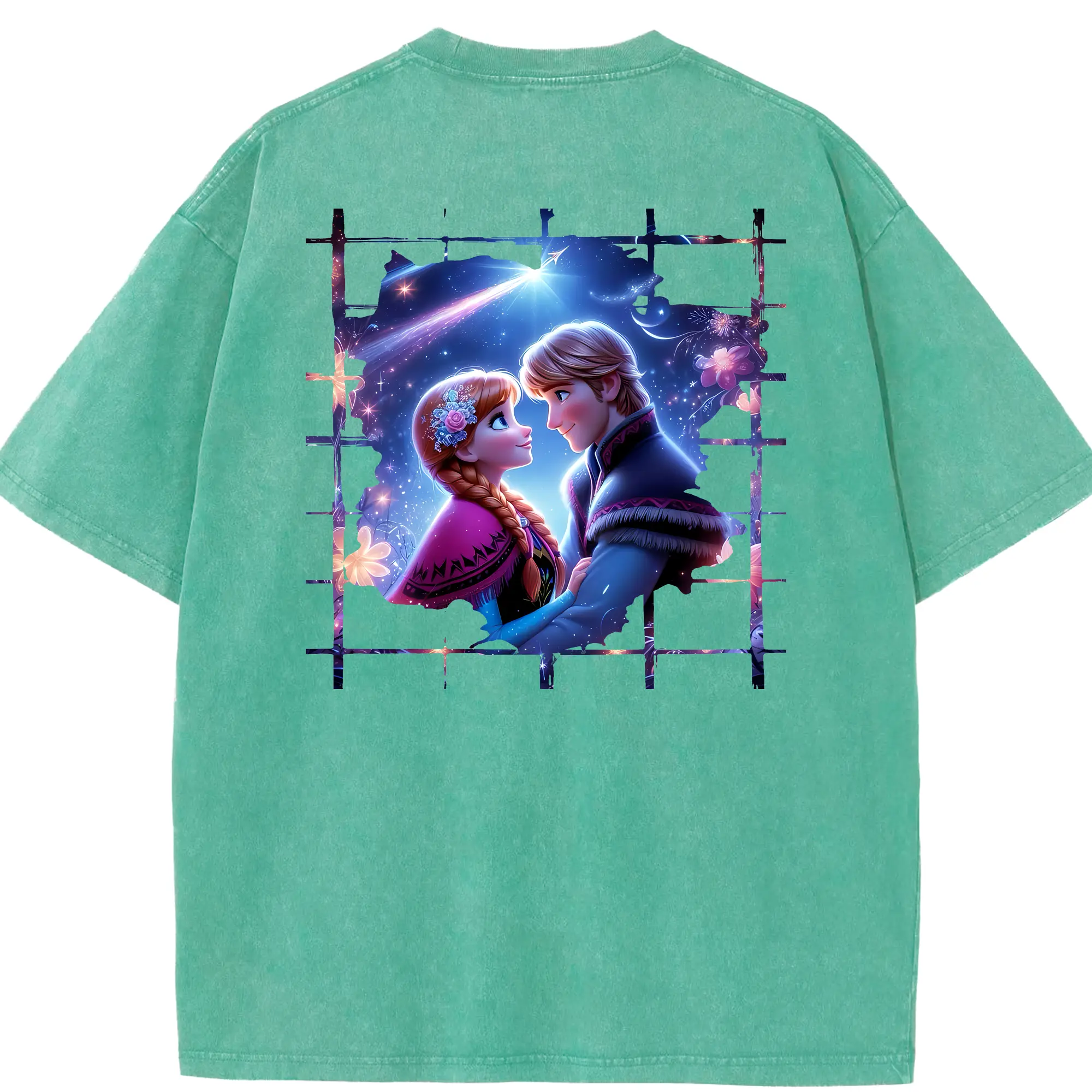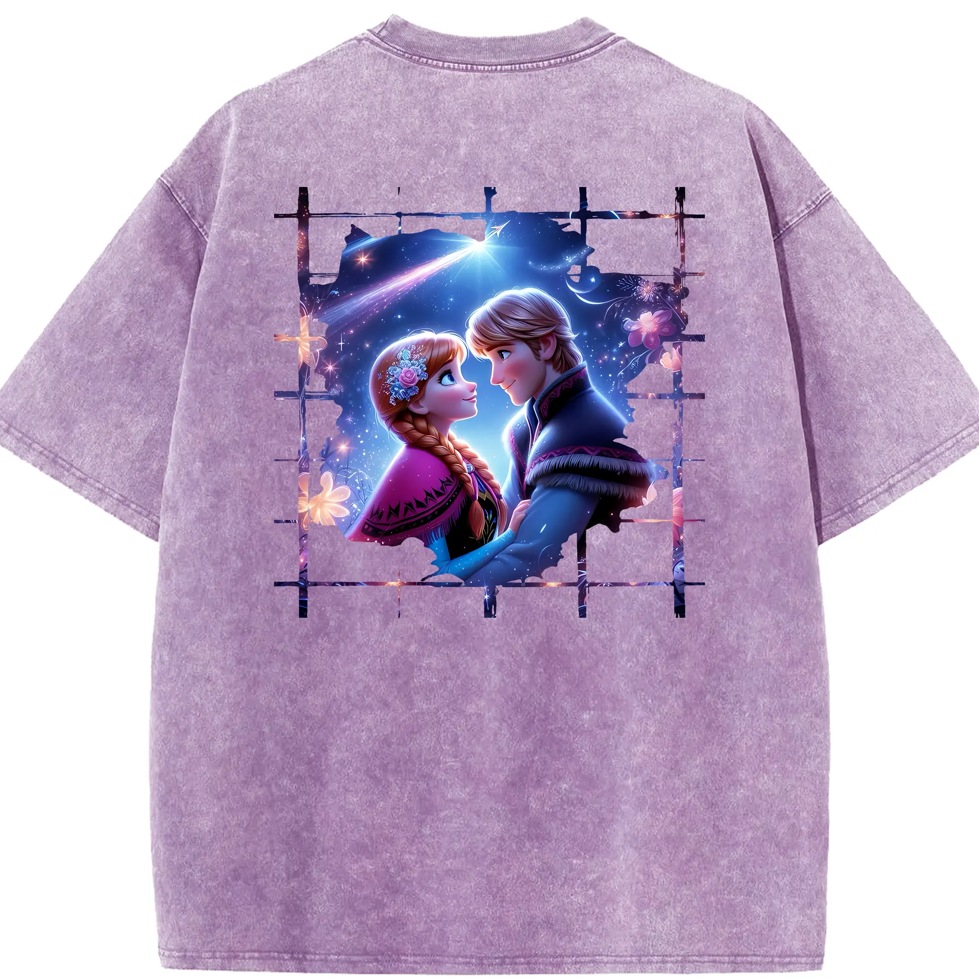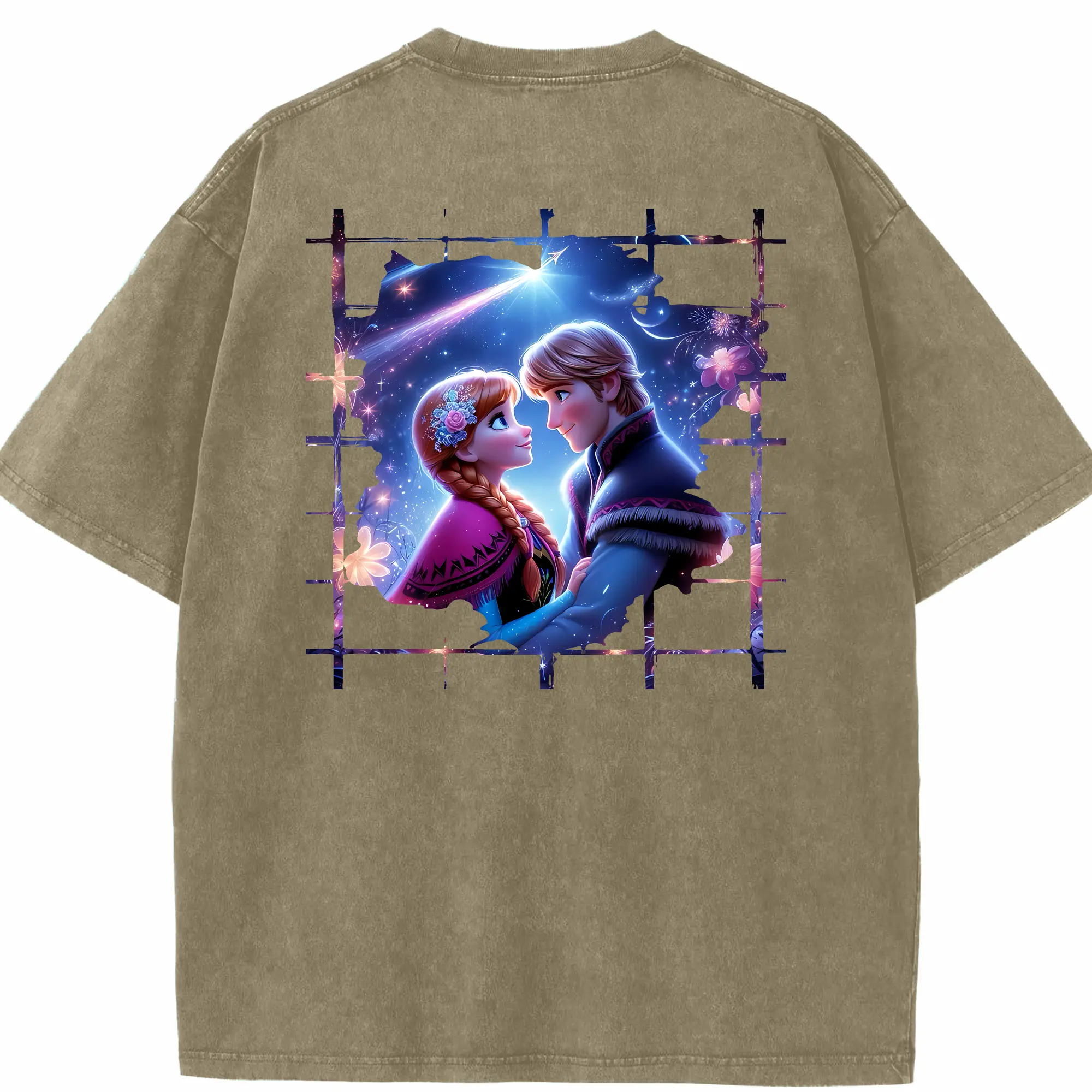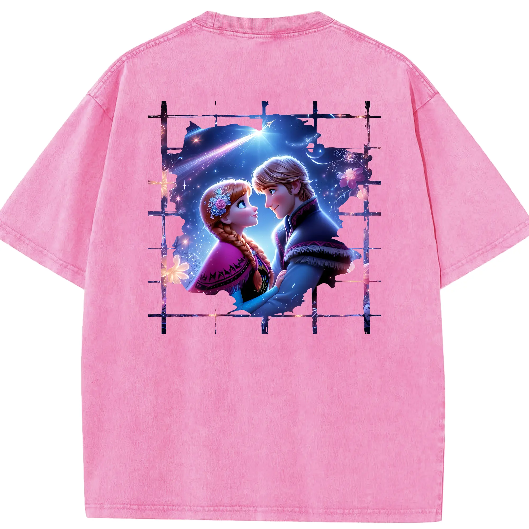 アナと雪の女王(Frozen) グッズ エルサ(Elsa) - 綿100% ヴィンテージ風 半袖Tシャツ ・ フロントプリント ・ 柔らか肌触り ・ 通気性 快適 ・ スポーツ カジュアル 外出用
