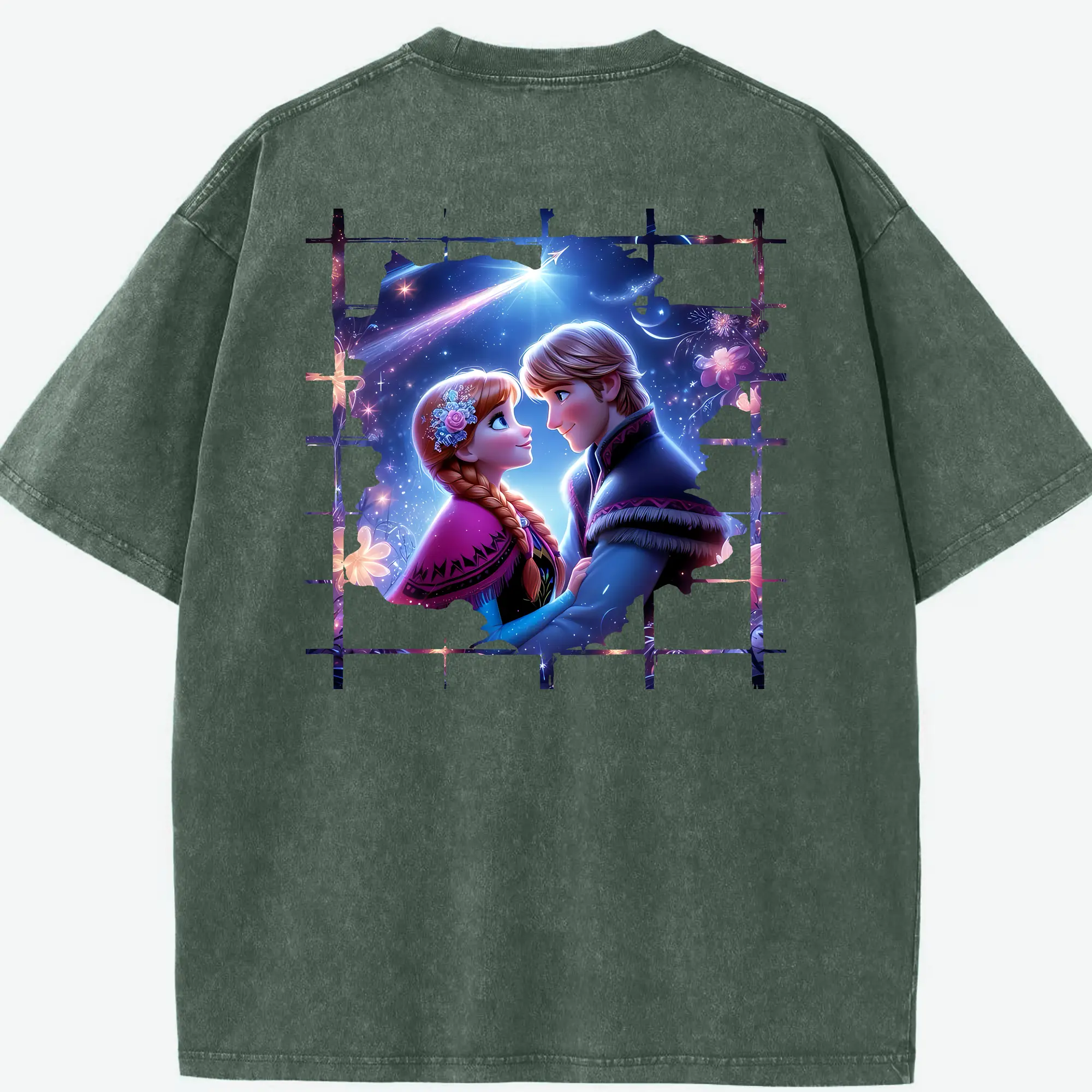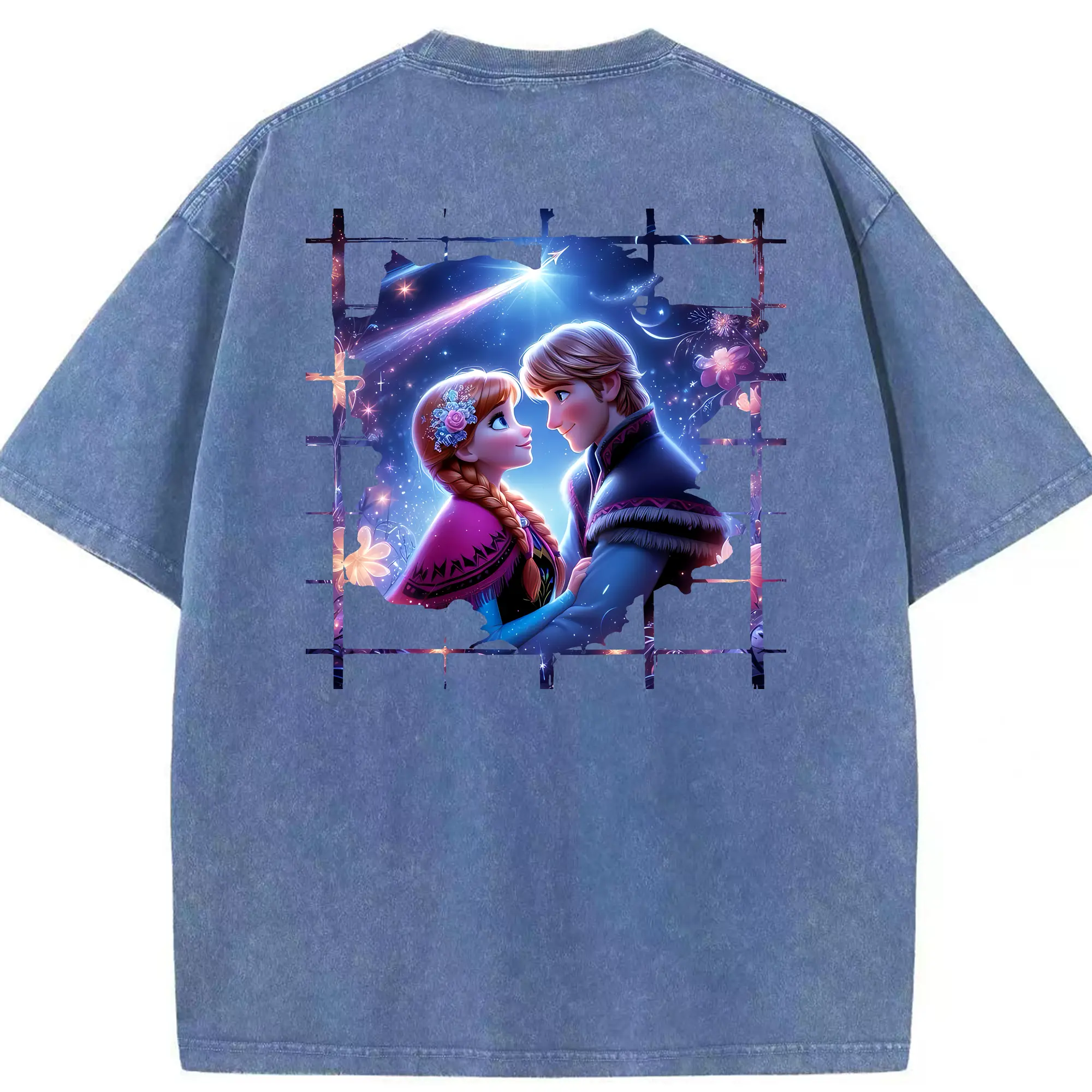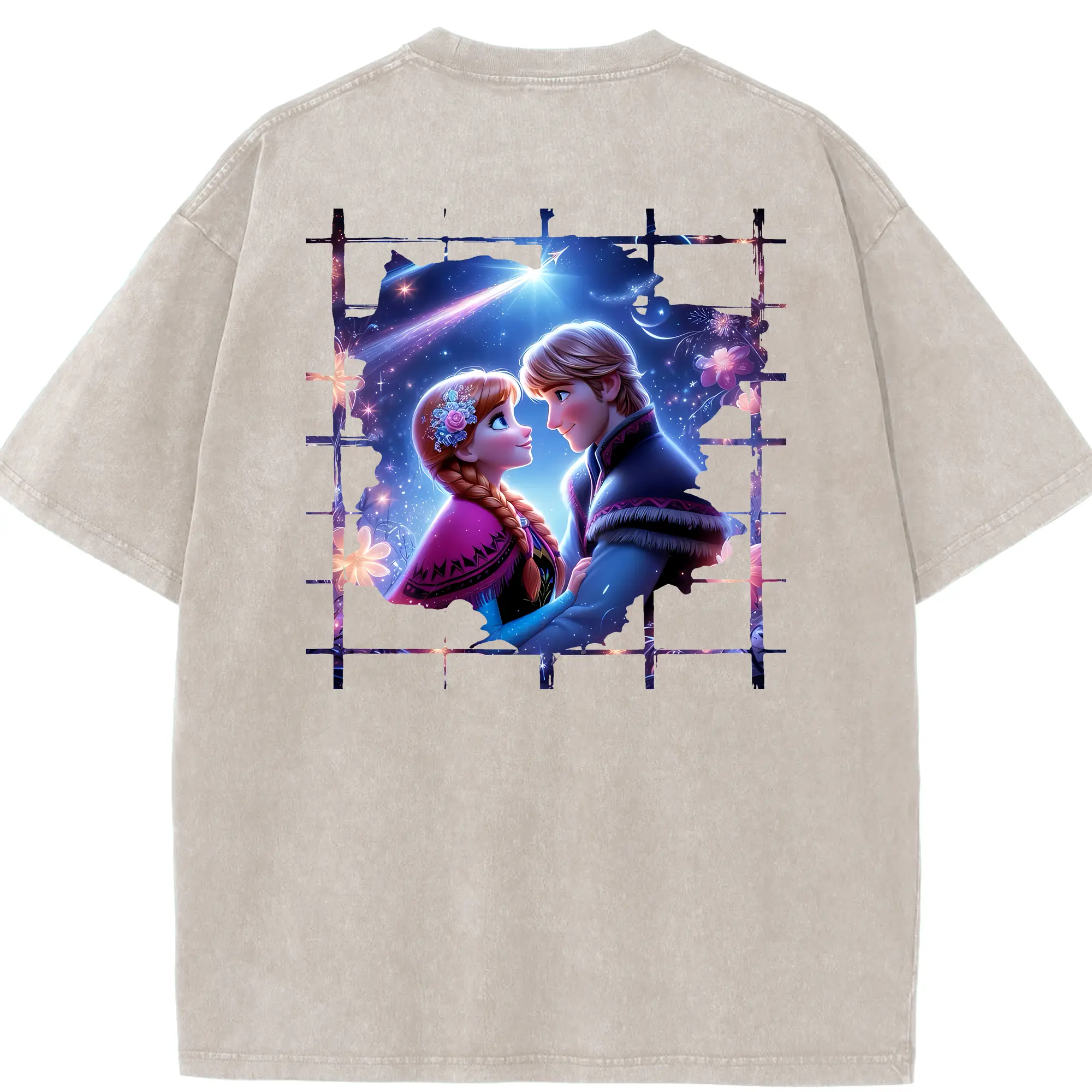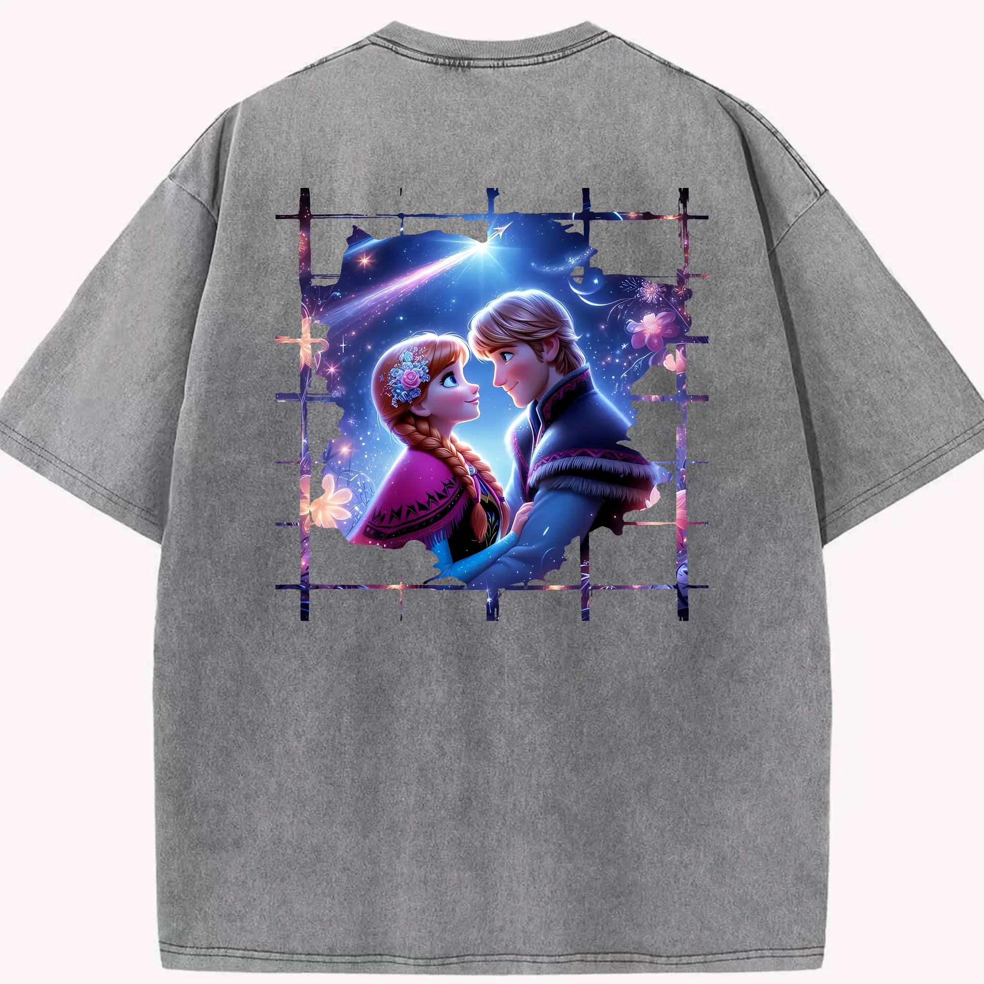 アナと雪の女王(Frozen) グッズ エルサ(Elsa) - 綿100% ヴィンテージ風 半袖Tシャツ ・ フロントプリント ・ 柔らか肌触り ・ 通気性 快適 ・ スポーツ カジュアル 外出用