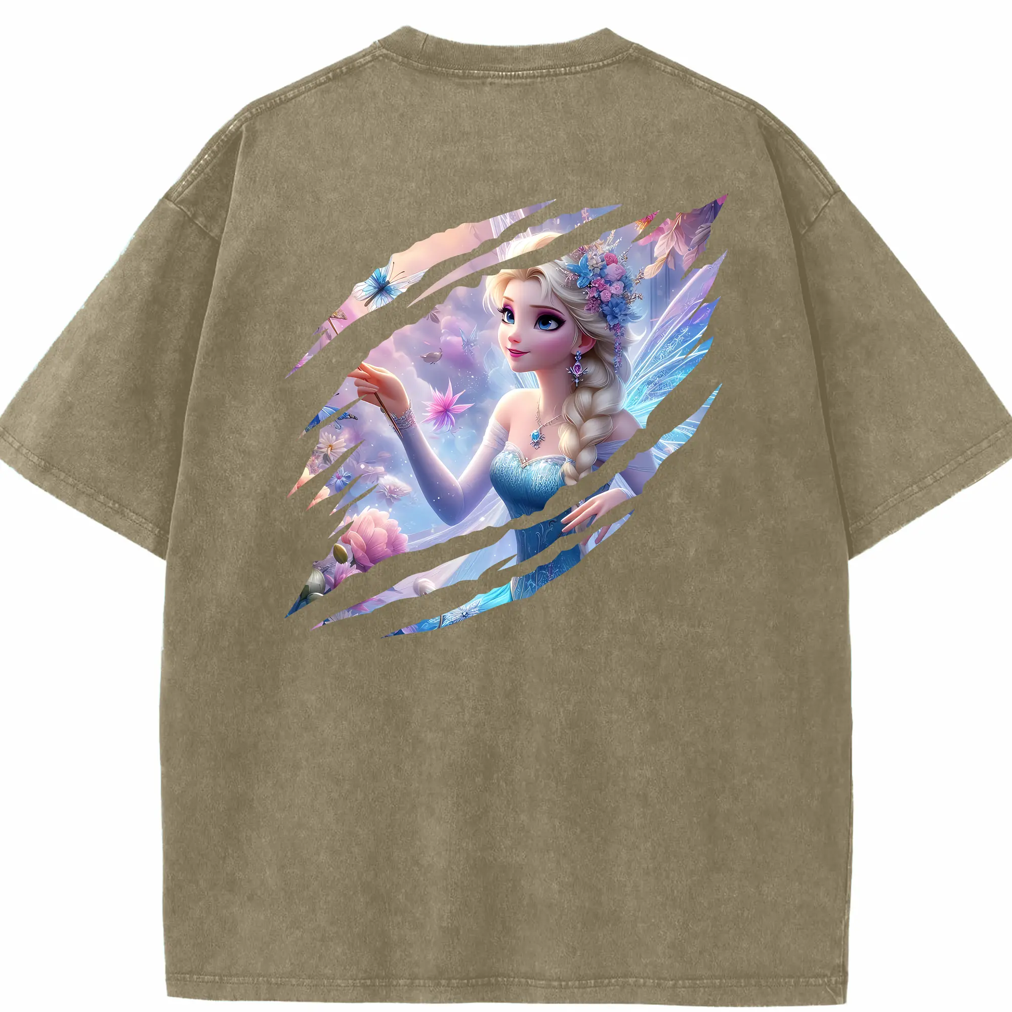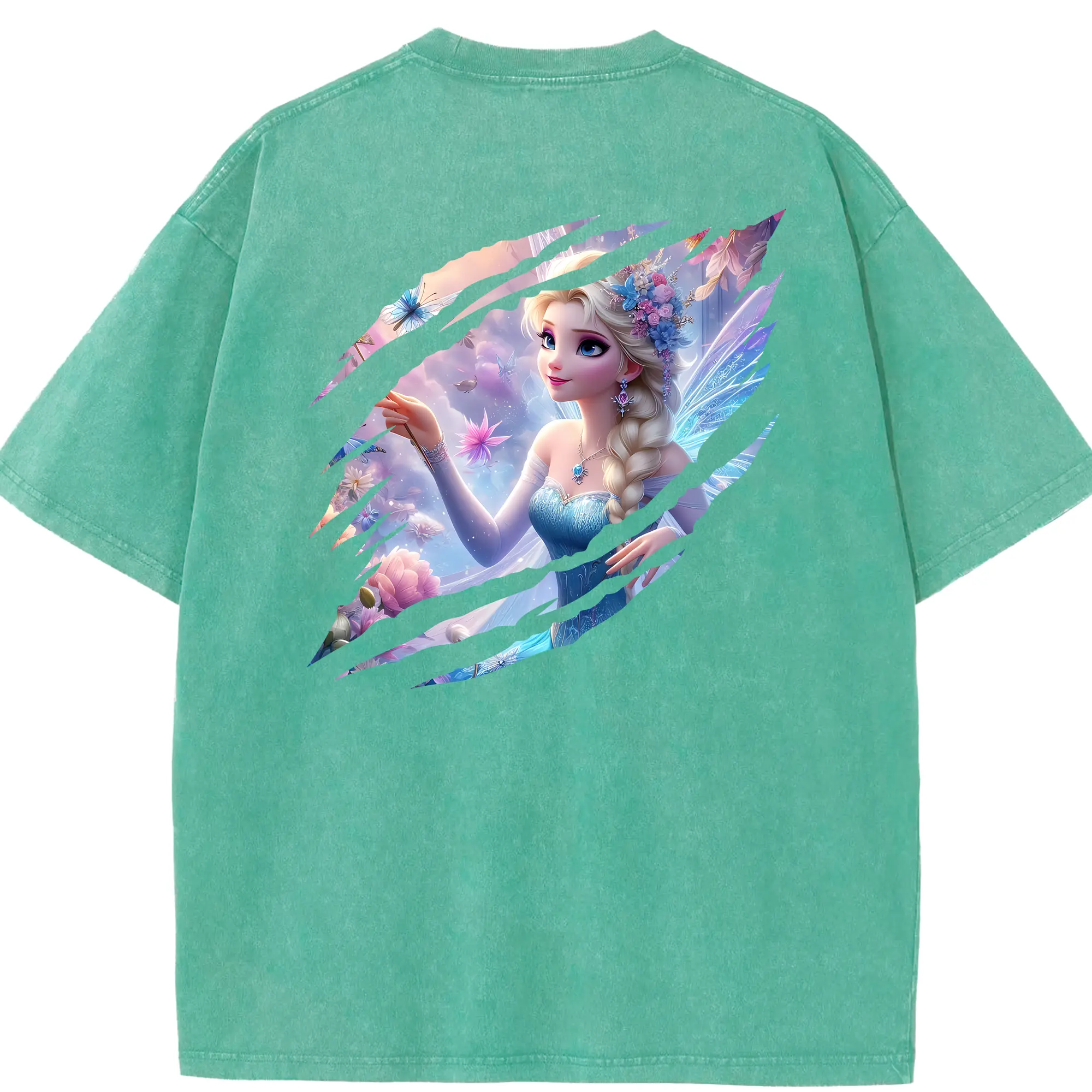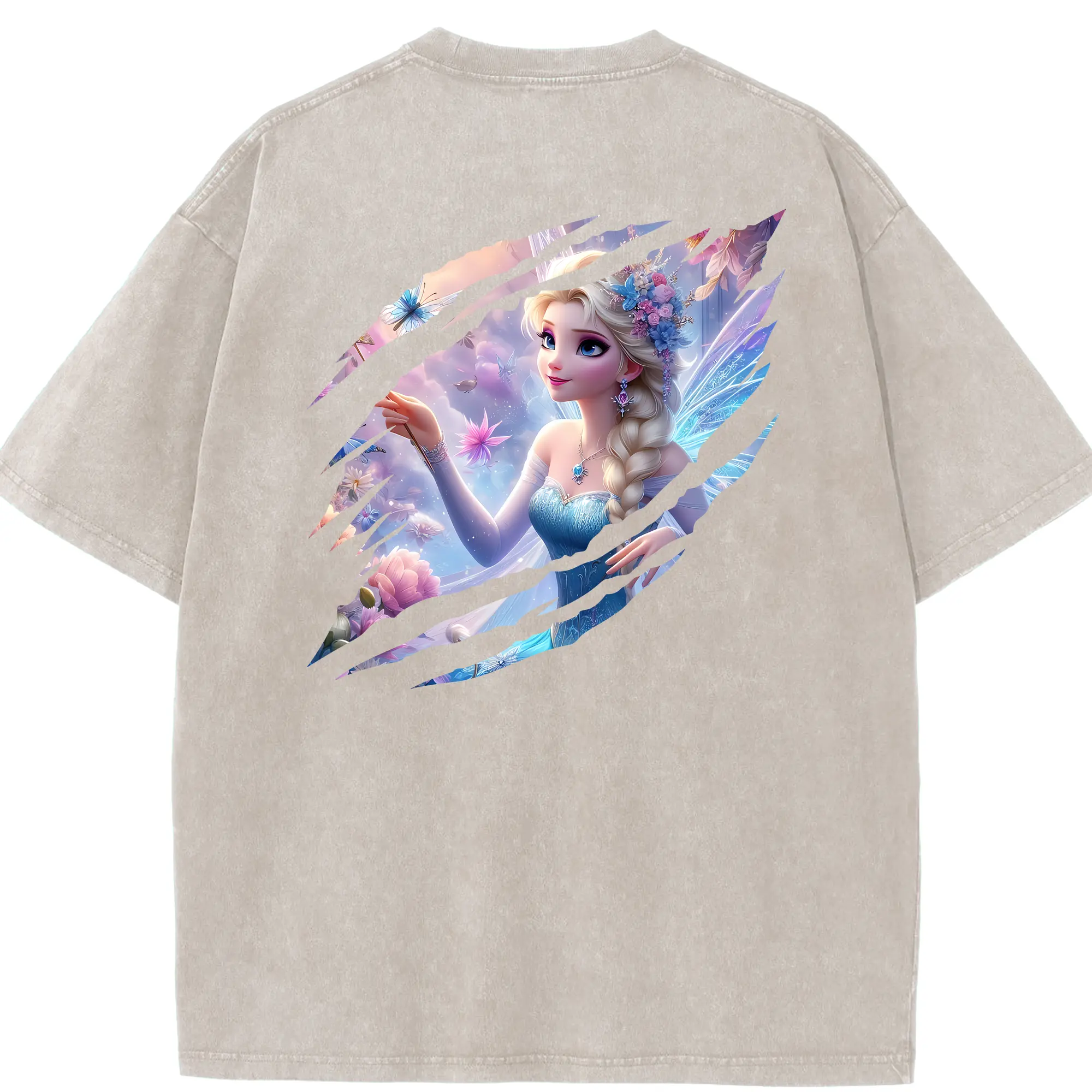 アナと雪の女王(Frozen) グッズ エルサ(Elsa) - 綿100% ヴィンテージ風 半袖Tシャツ ・ フロントプリント ・ 柔らか肌触り ・ 通気性 快適 ・ スポーツ カジュアル 外出用