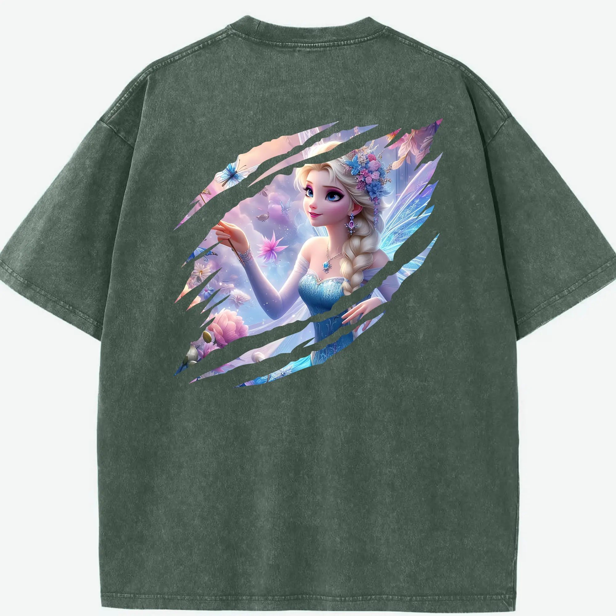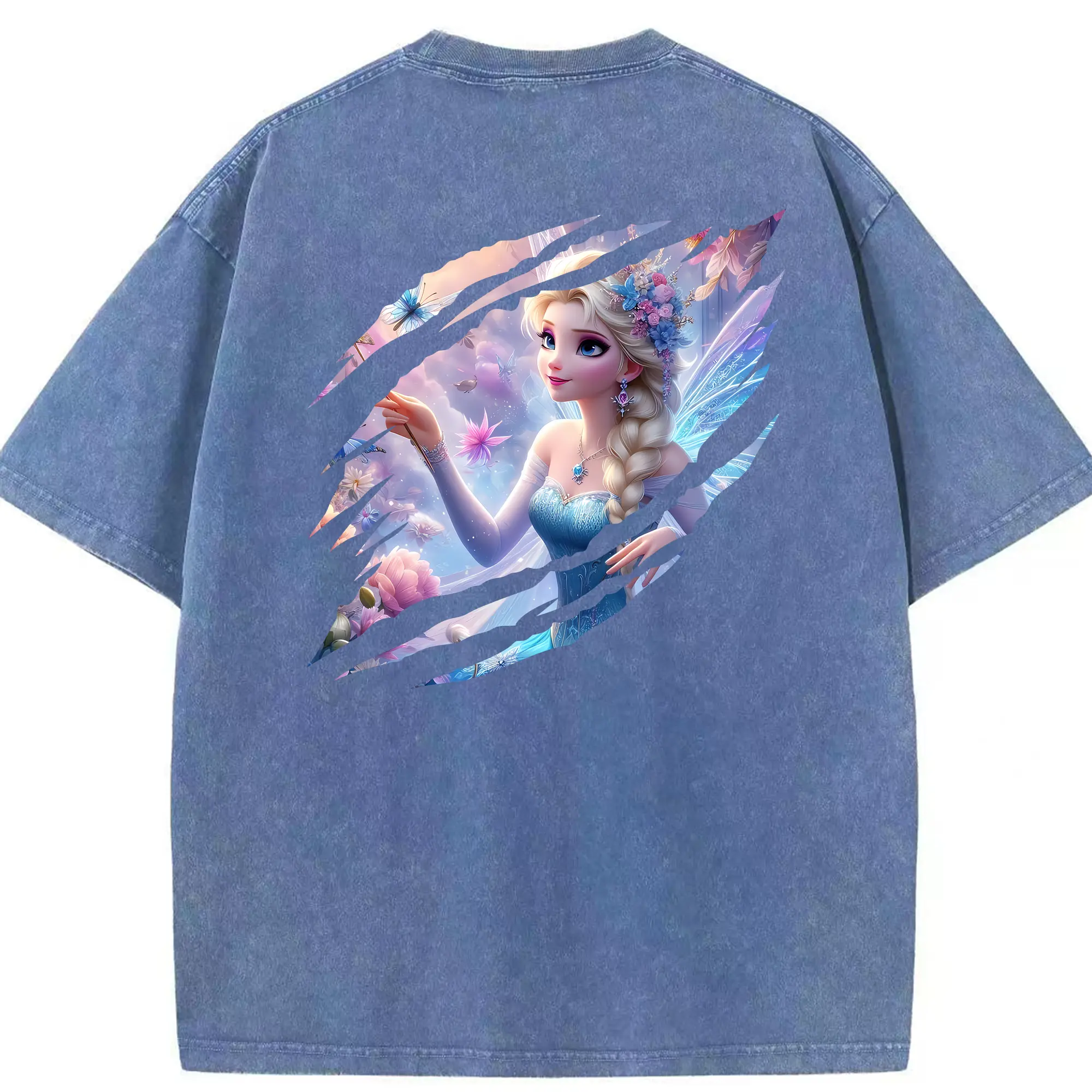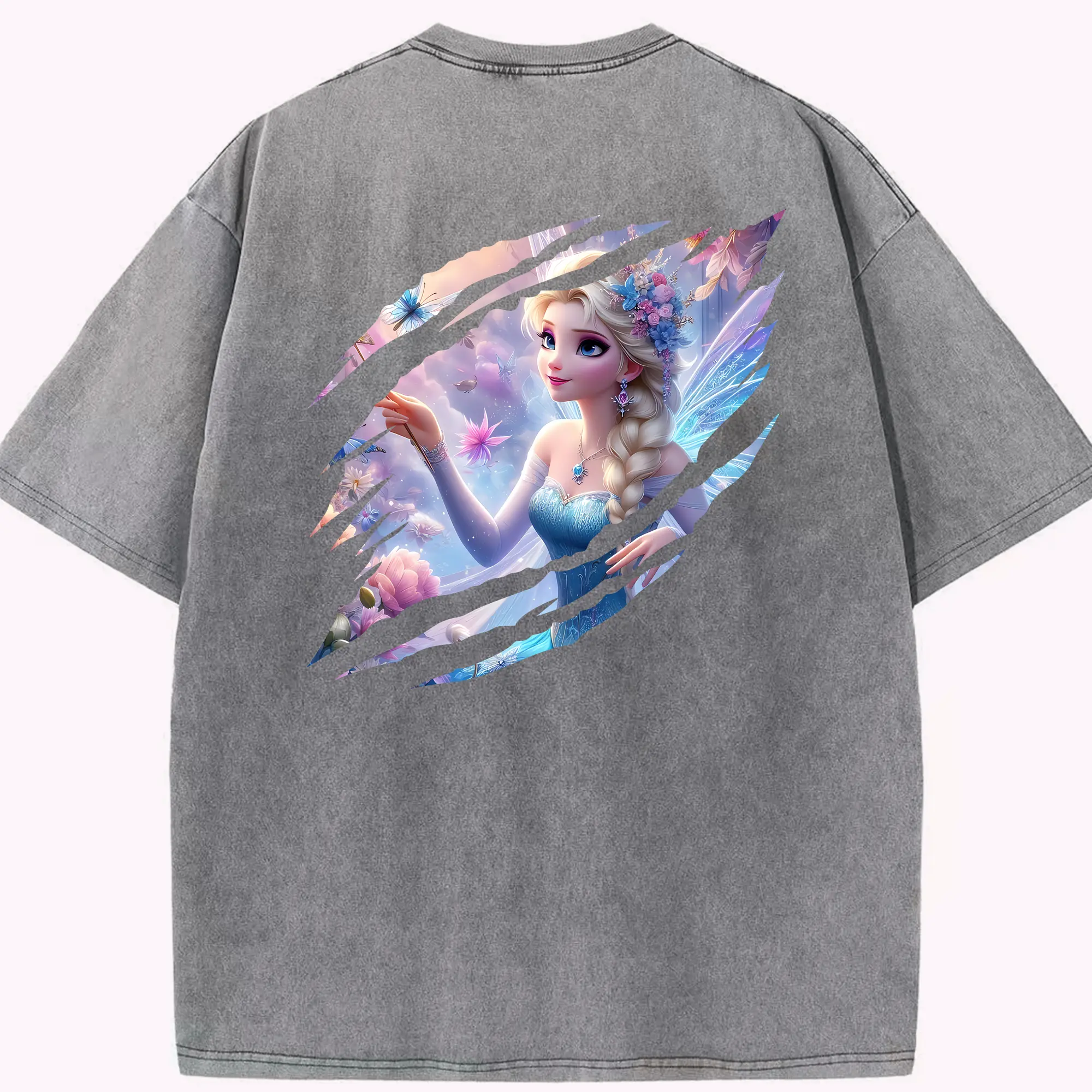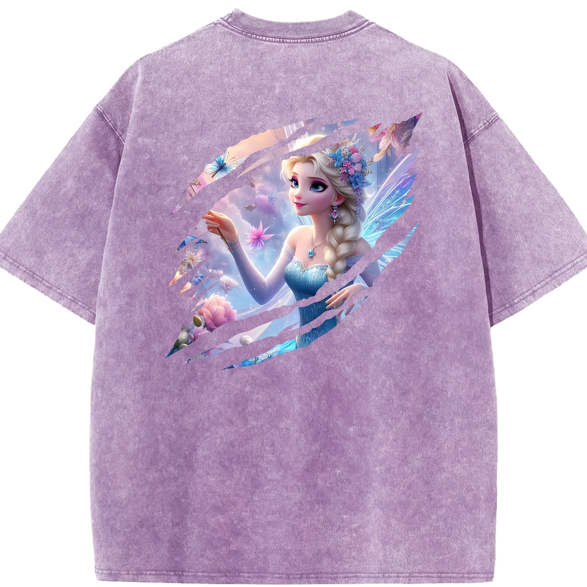 アナと雪の女王(Frozen) グッズ エルサ(Elsa) - 綿100% ヴィンテージ風 半袖Tシャツ ・ フロントプリント ・ 柔らか肌触り ・ 通気性 快適 ・ スポーツ カジュアル 外出用