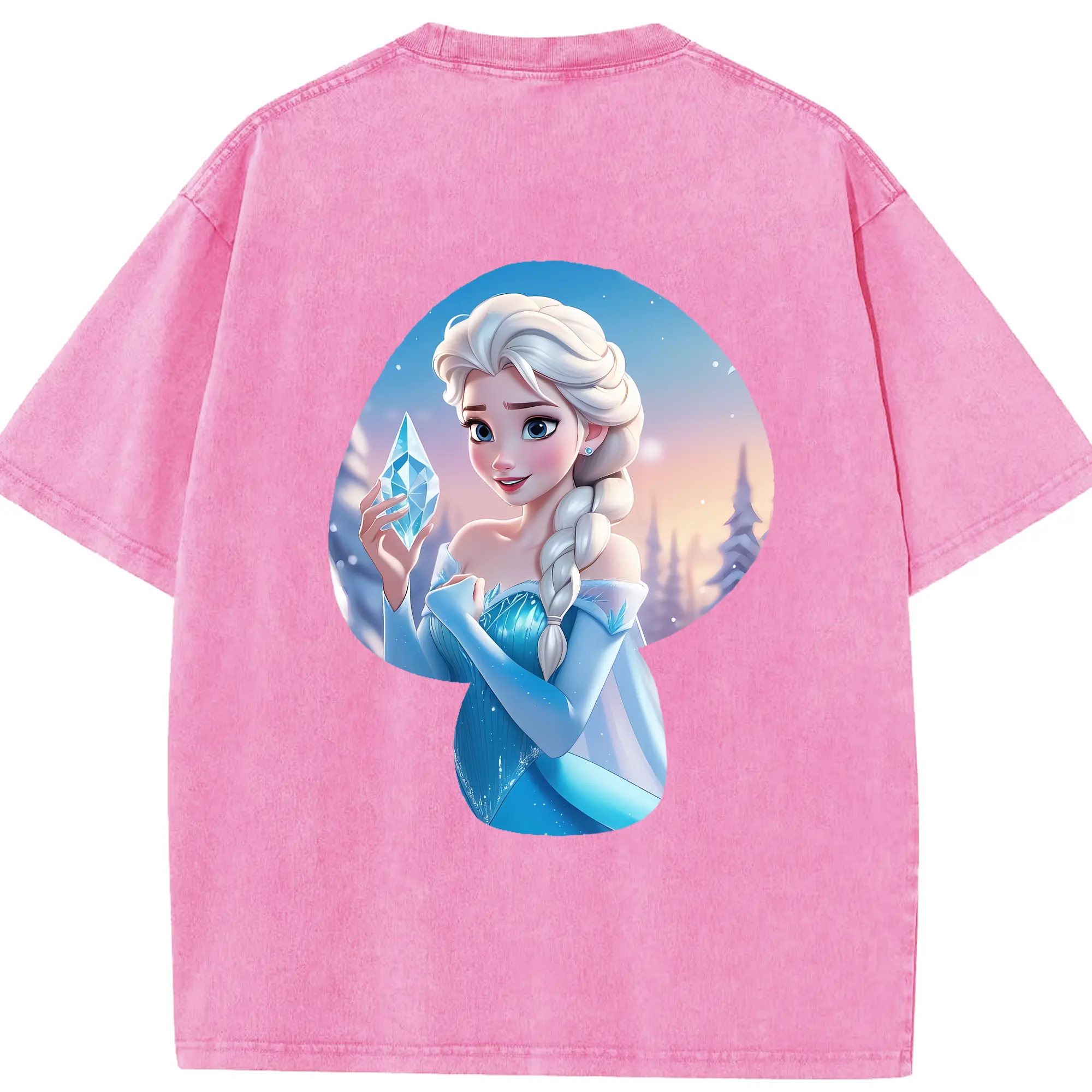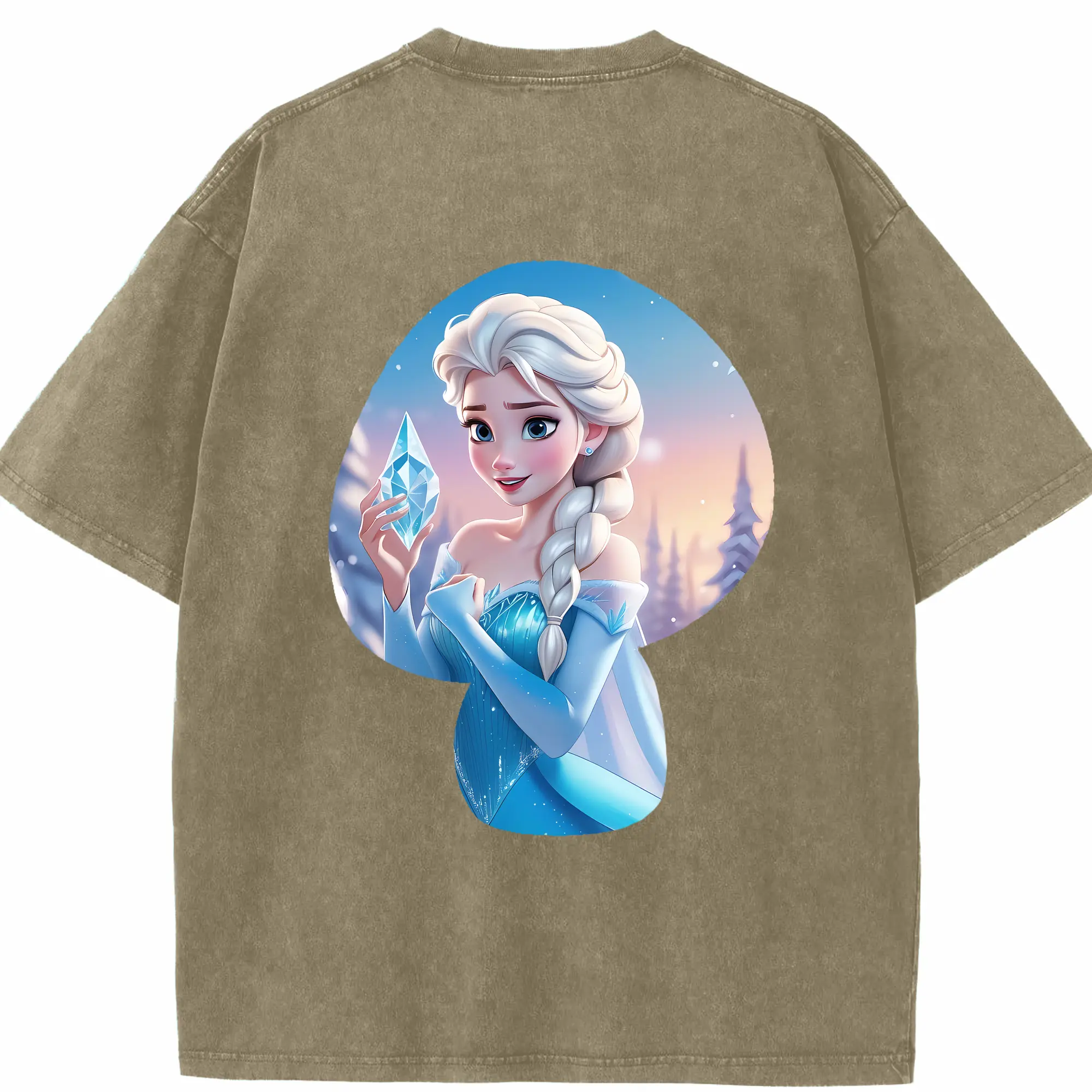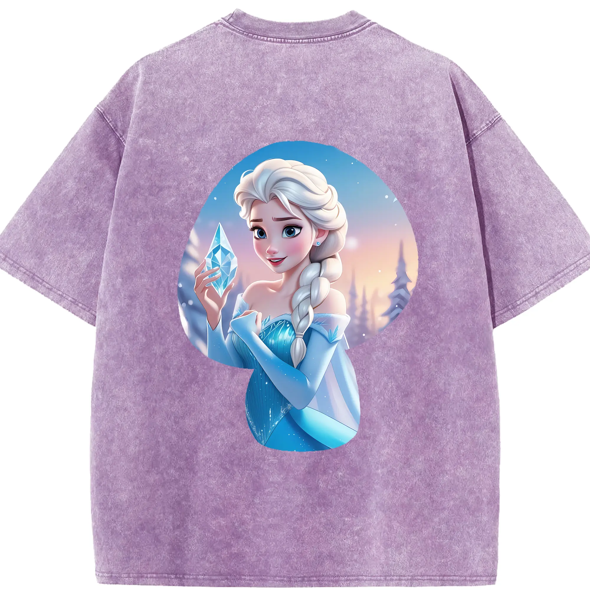 アナと雪の女王(Frozen) グッズ エルサ(Elsa) - 綿100% ヴィンテージ風 半袖Tシャツ ・ フロントプリント ・ 柔らか肌触り ・ 通気性 快適 ・ スポーツ カジュアル 外出用