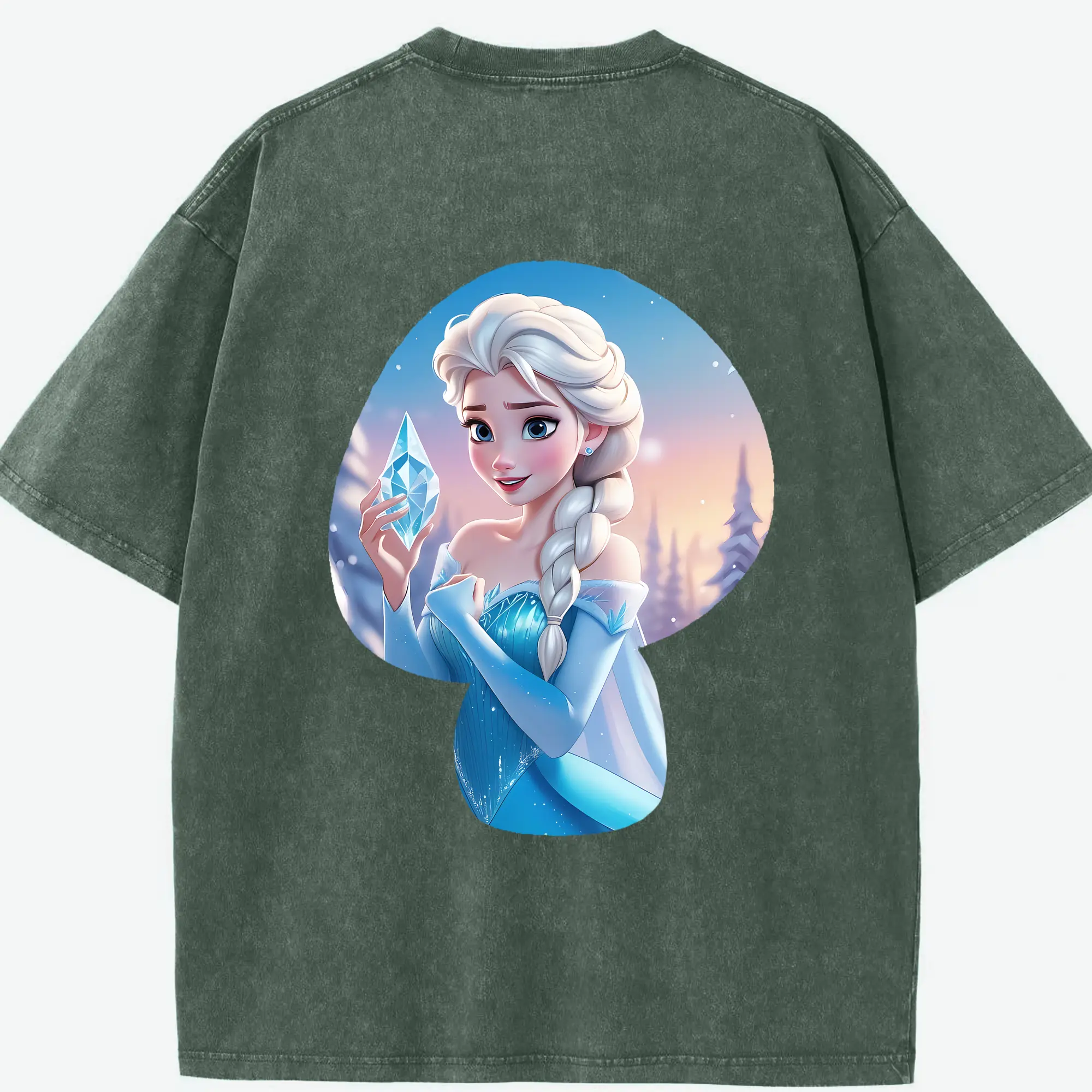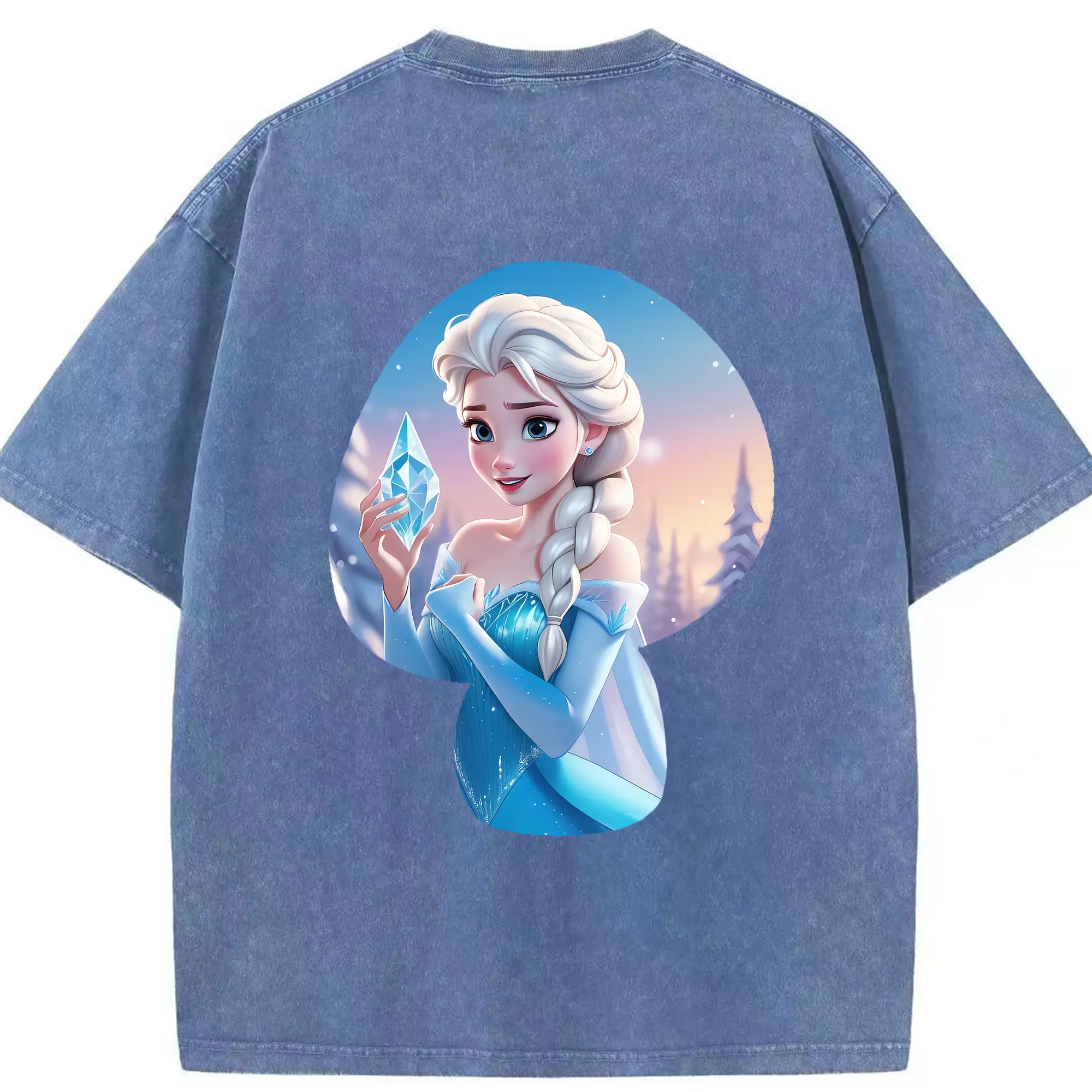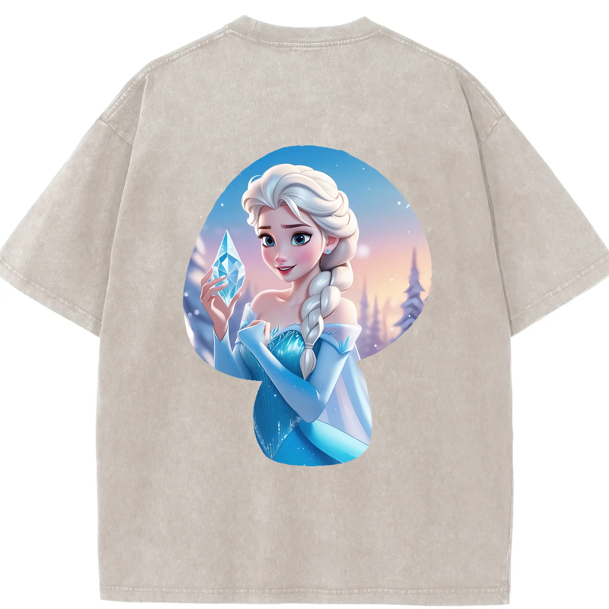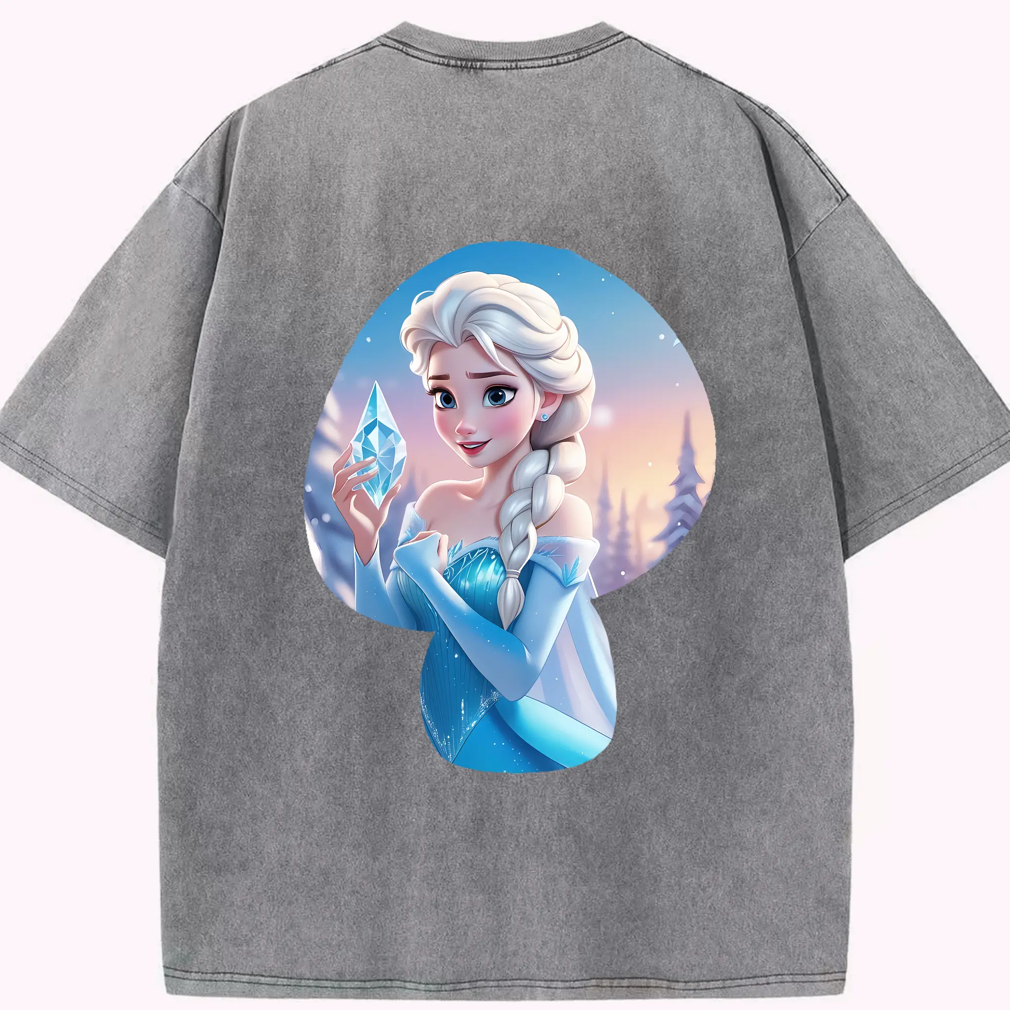 アナと雪の女王(Frozen) グッズ エルサ(Elsa) - 綿100% ヴィンテージ風 半袖Tシャツ ・ フロントプリント ・ 柔らか肌触り ・ 通気性 快適 ・ スポーツ カジュアル 外出用