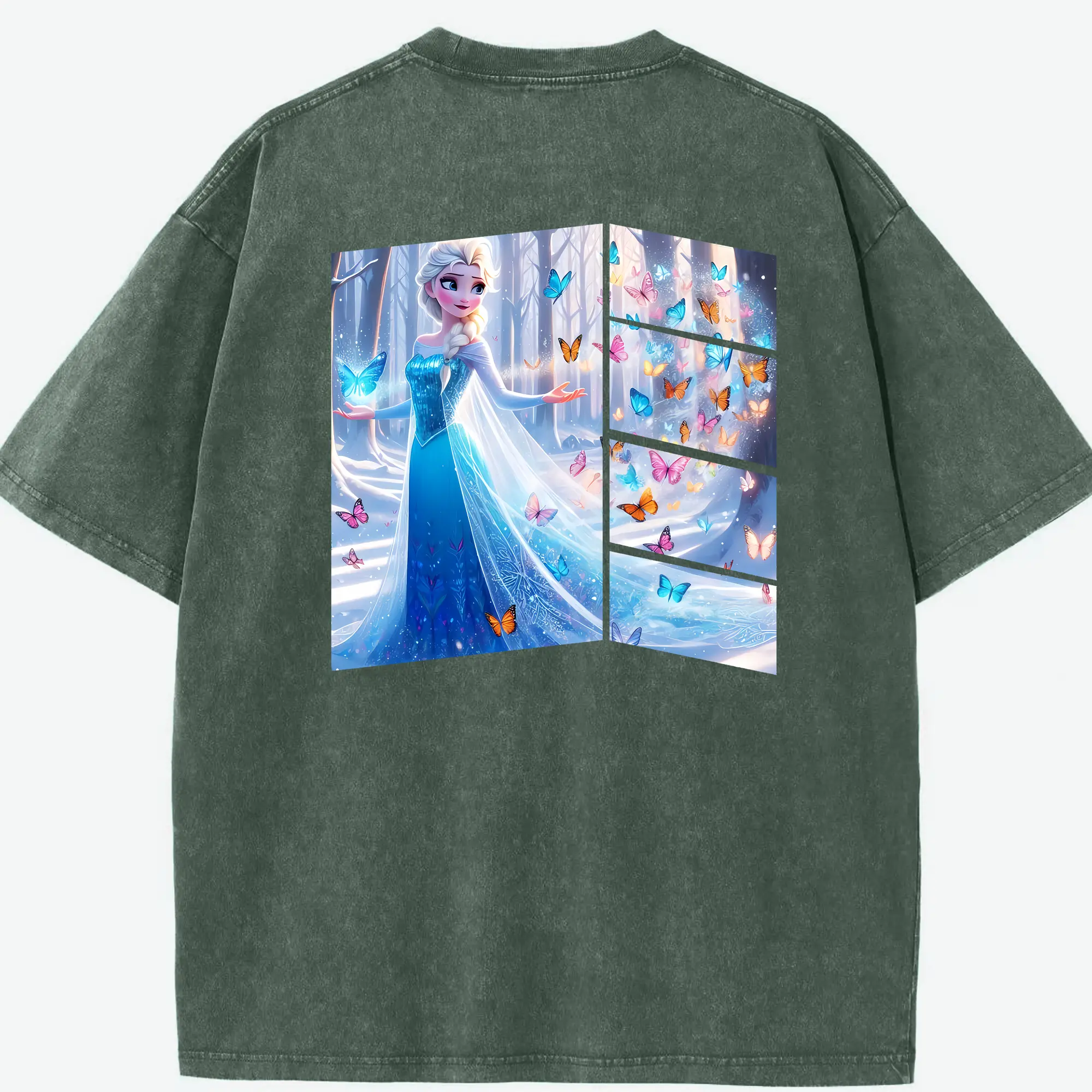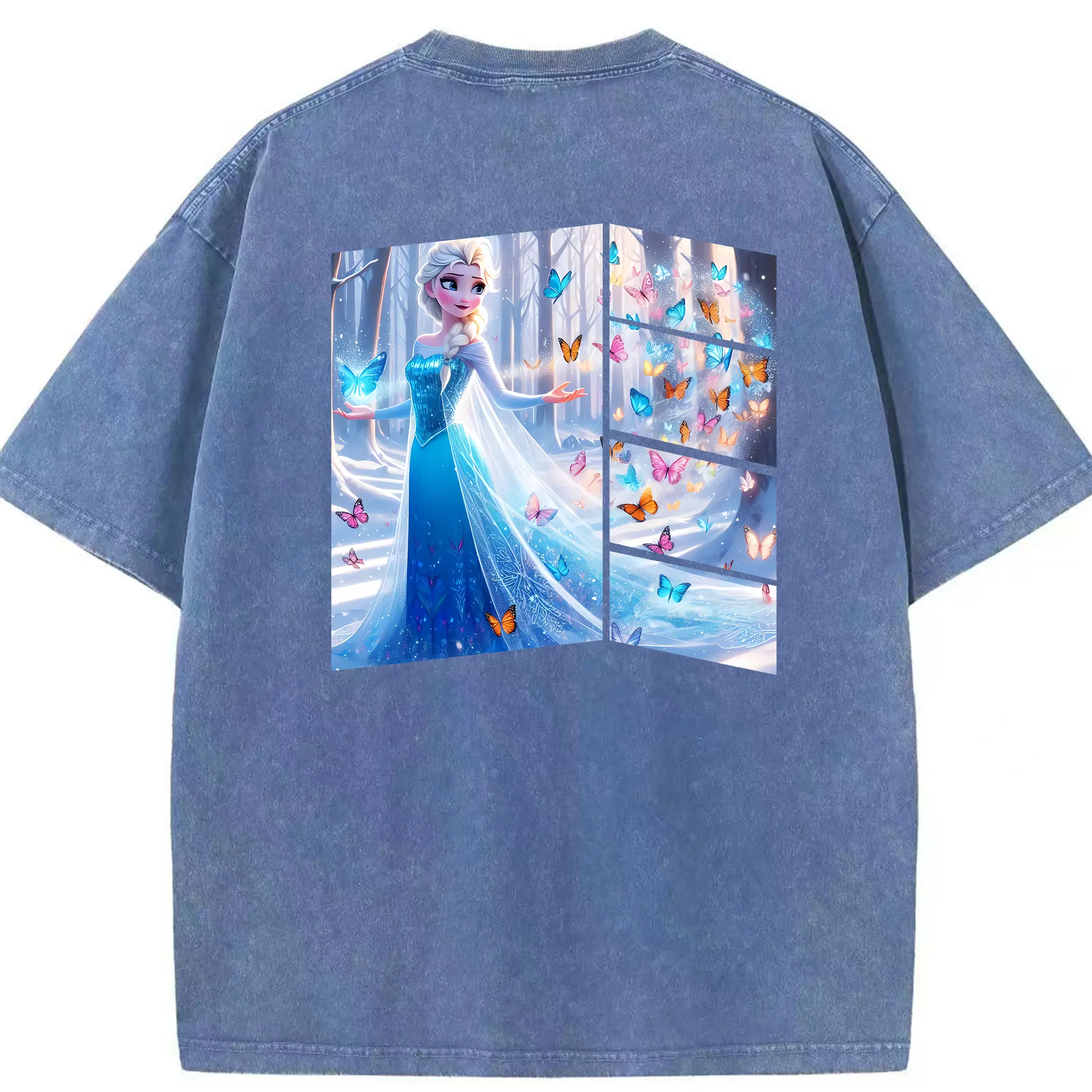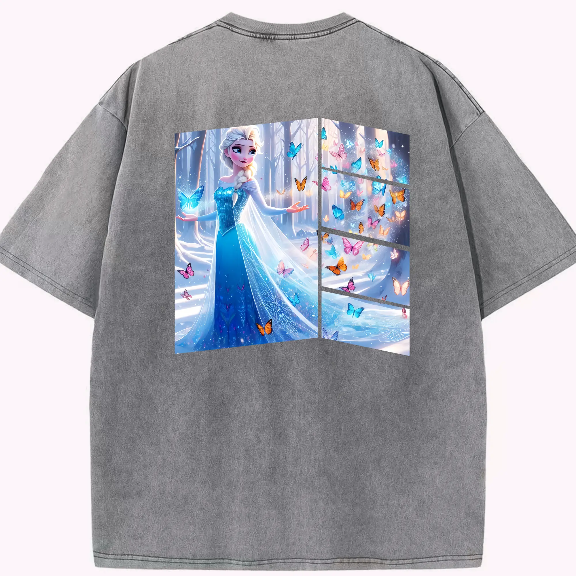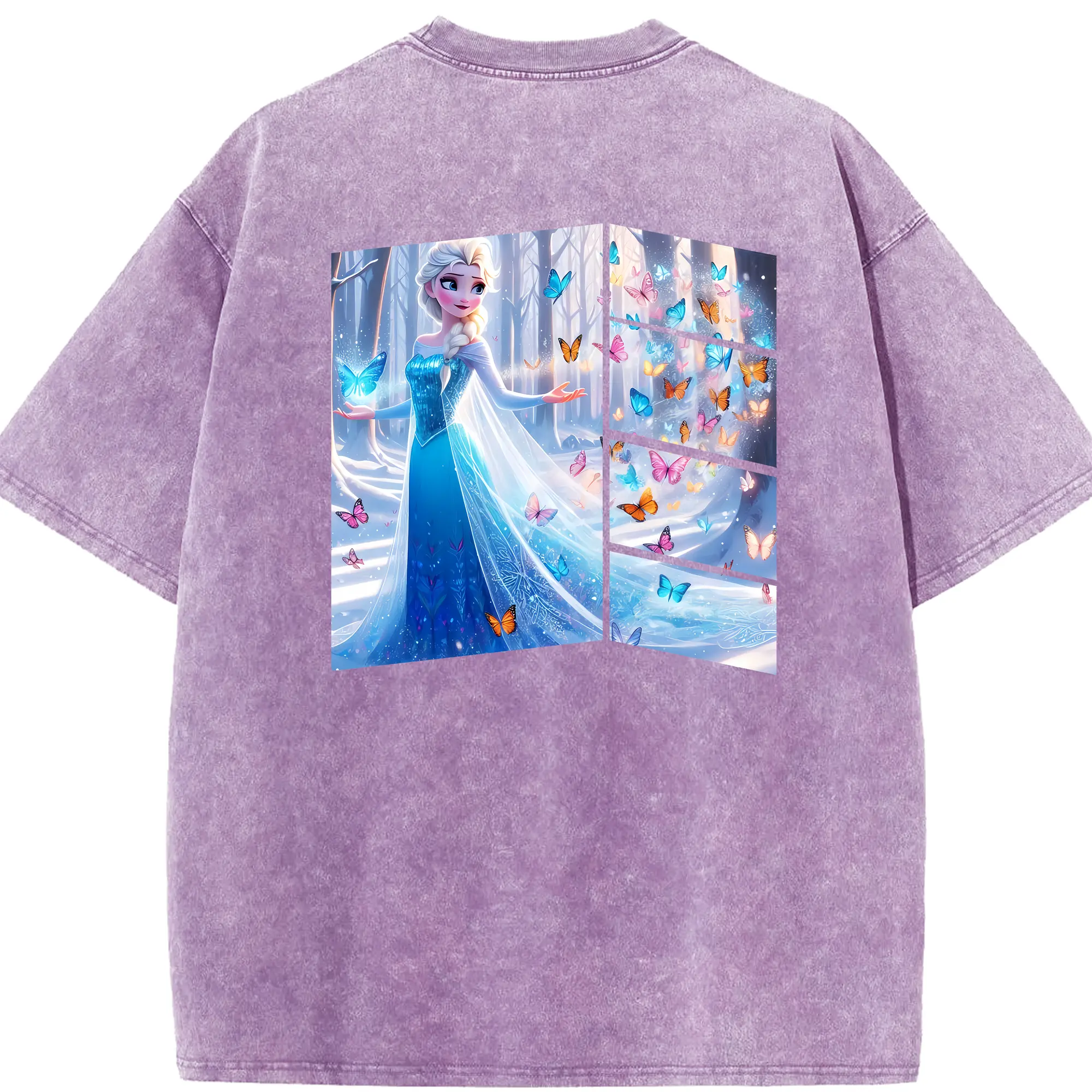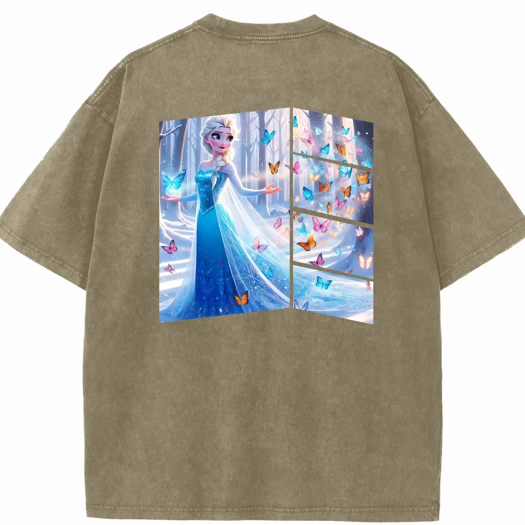 アナと雪の女王(Frozen) グッズ エルサ(Elsa) - 綿100% ヴィンテージ風 半袖Tシャツ ・ フロントプリント ・ 柔らか肌触り ・ 通気性 快適 ・ スポーツ カジュアル 外出用