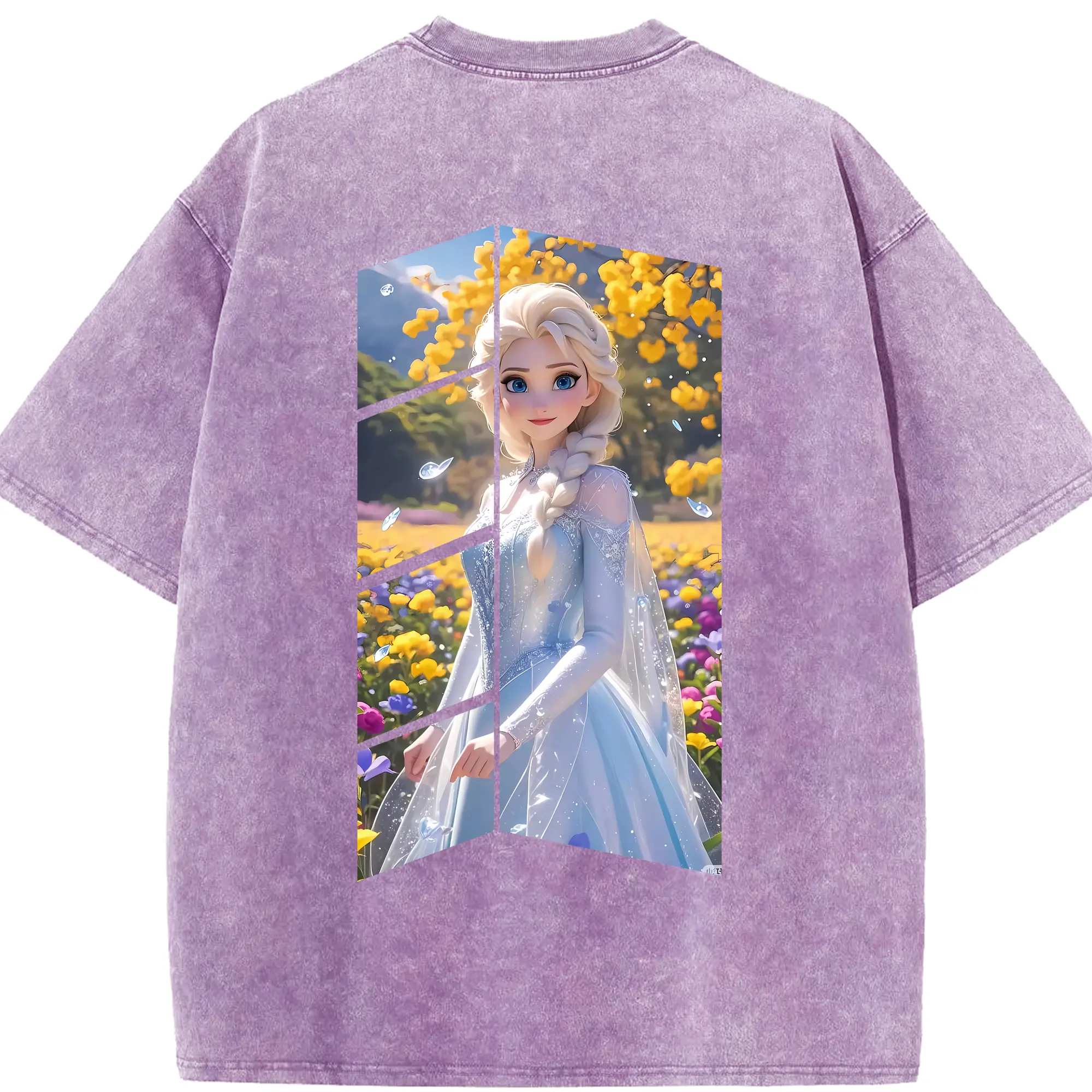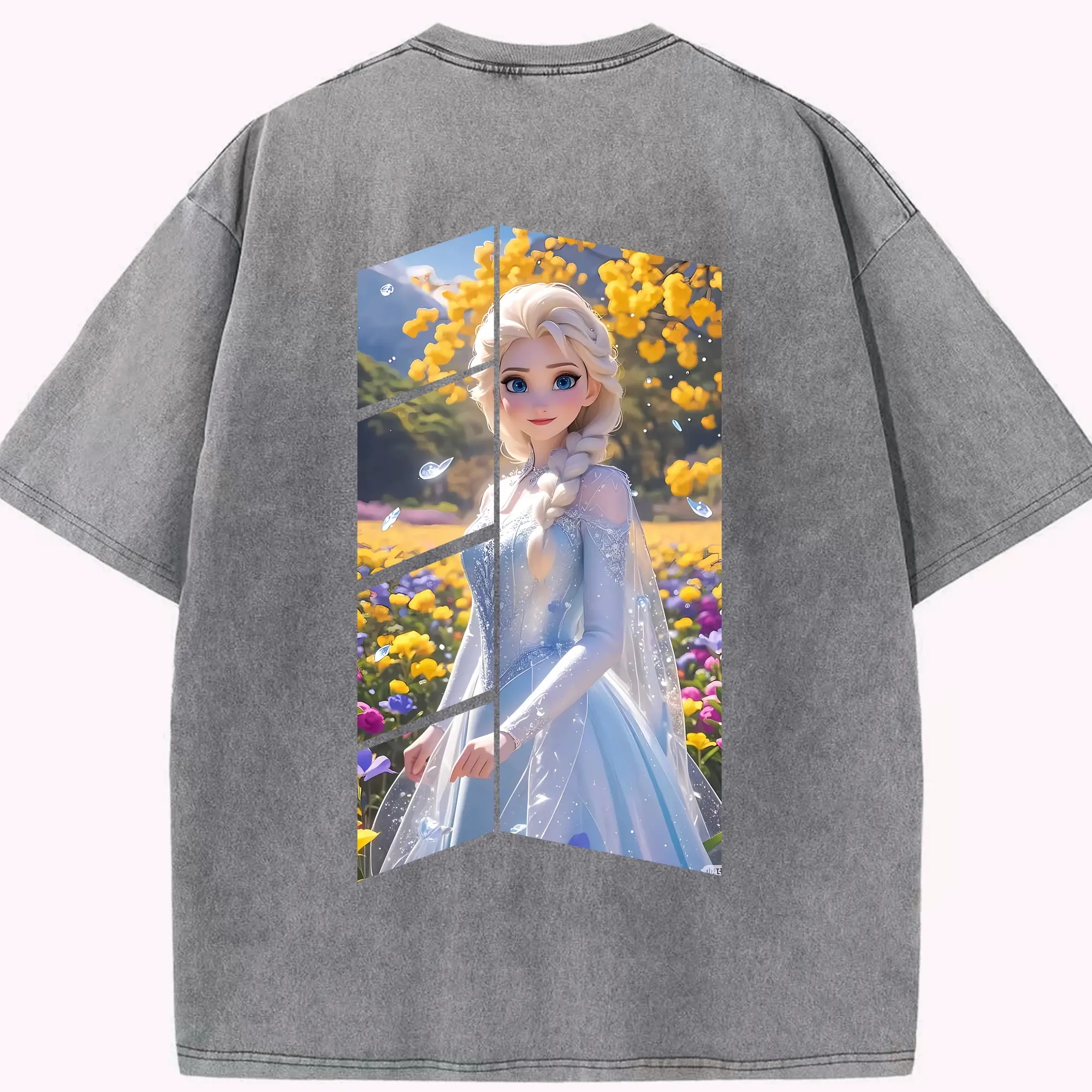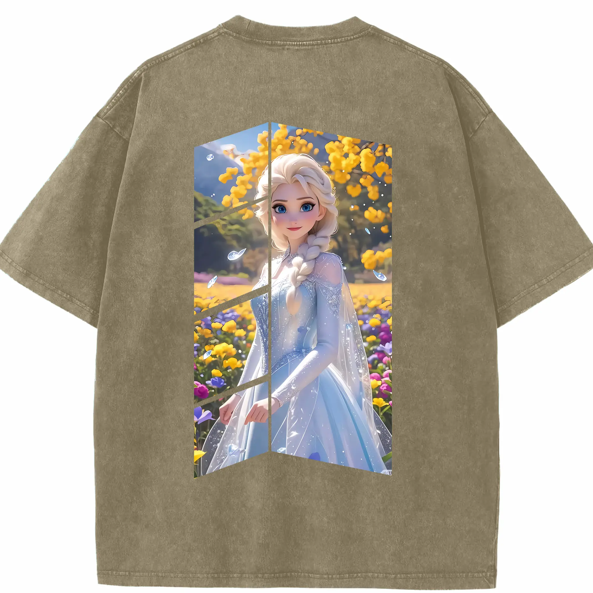 アナと雪の女王(Frozen) グッズ エルサ(Elsa) - 綿100% ヴィンテージ風 半袖Tシャツ ・ 背面プリント ・ 柔らか肌触り ・ 通気性 快適 ・ スポーツ カジュアル 外出用