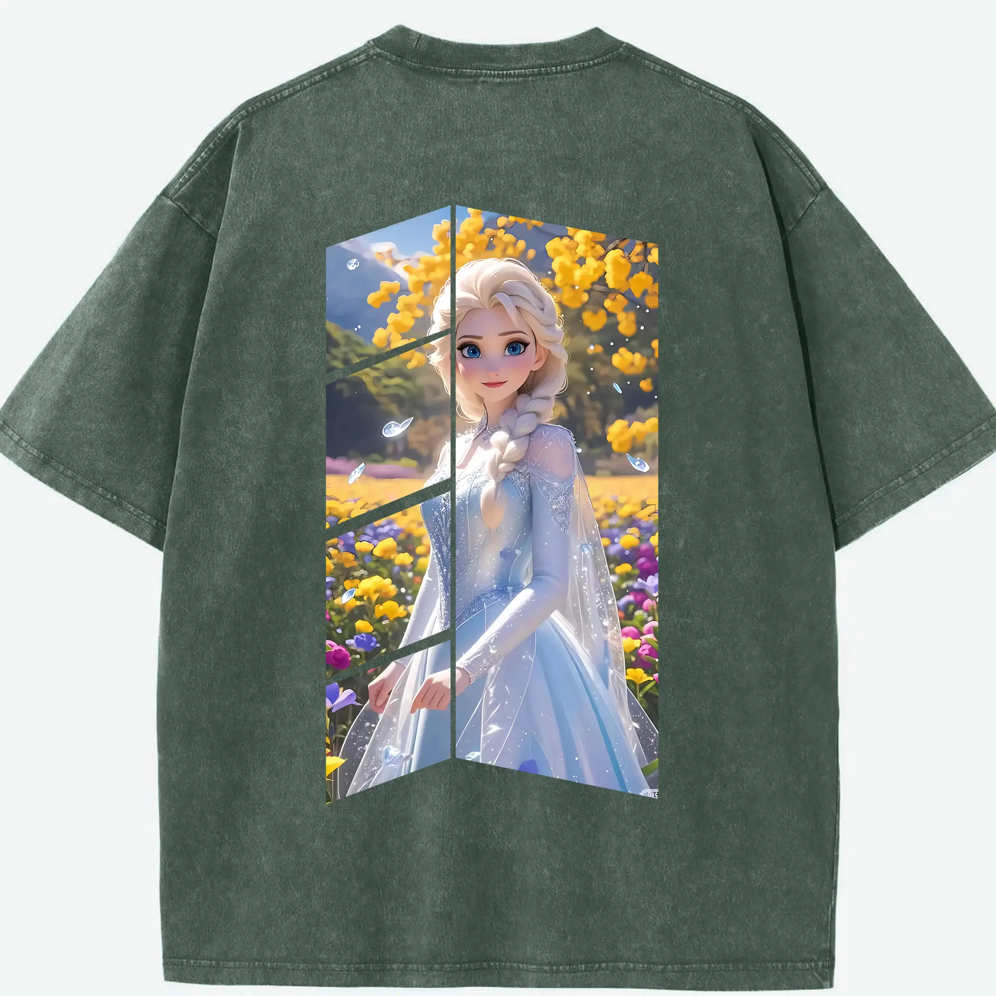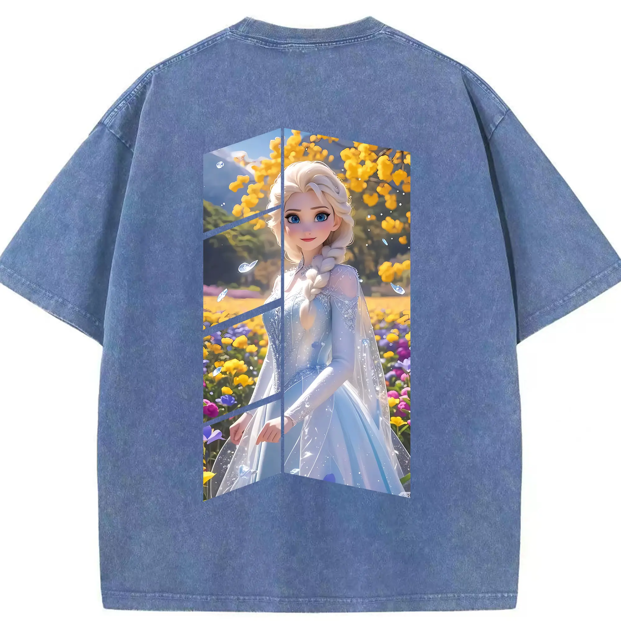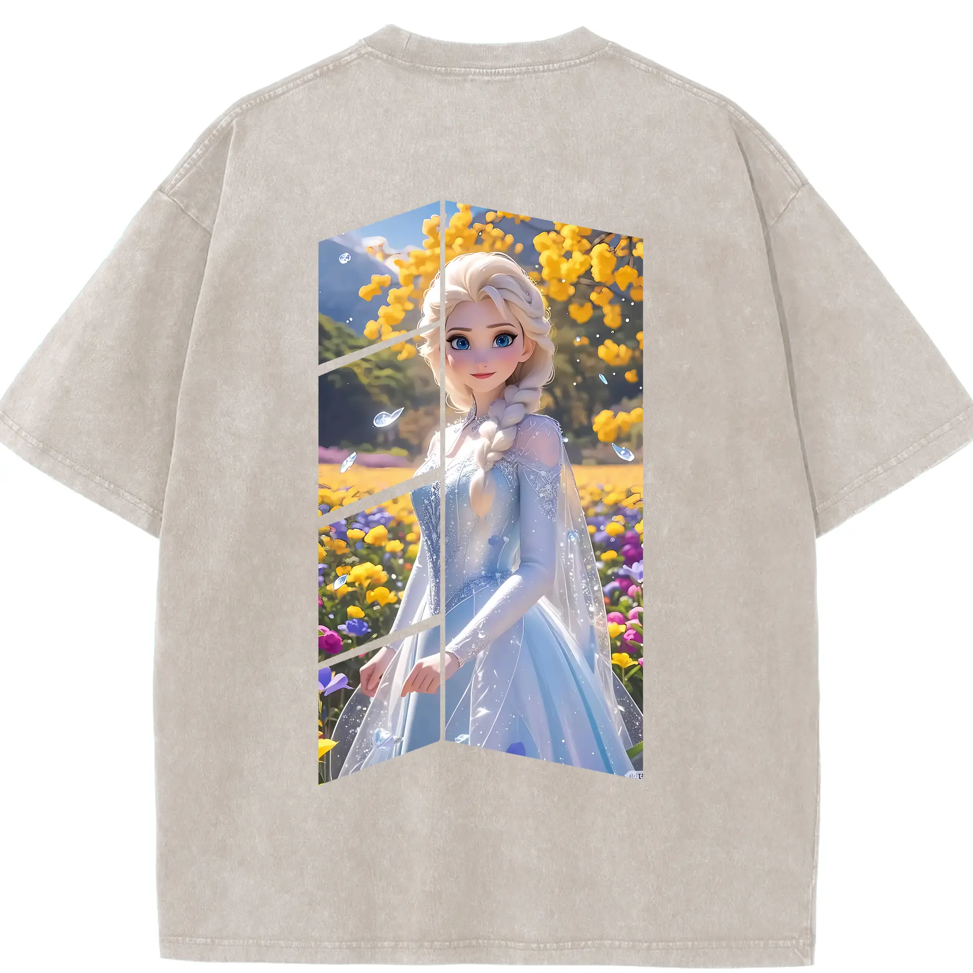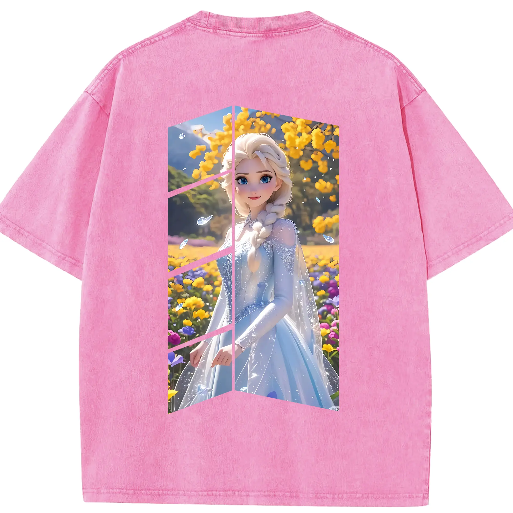 アナと雪の女王(Frozen) グッズ エルサ(Elsa) - 綿100% ヴィンテージ風 半袖Tシャツ ・ 背面プリント ・ 柔らか肌触り ・ 通気性 快適 ・ スポーツ カジュアル 外出用