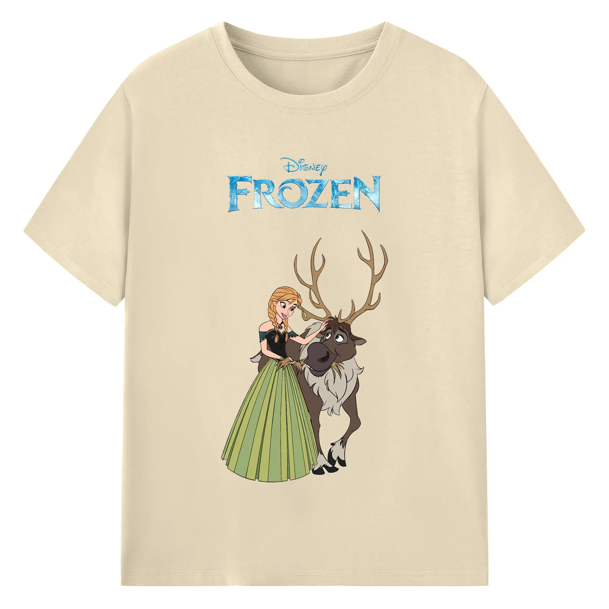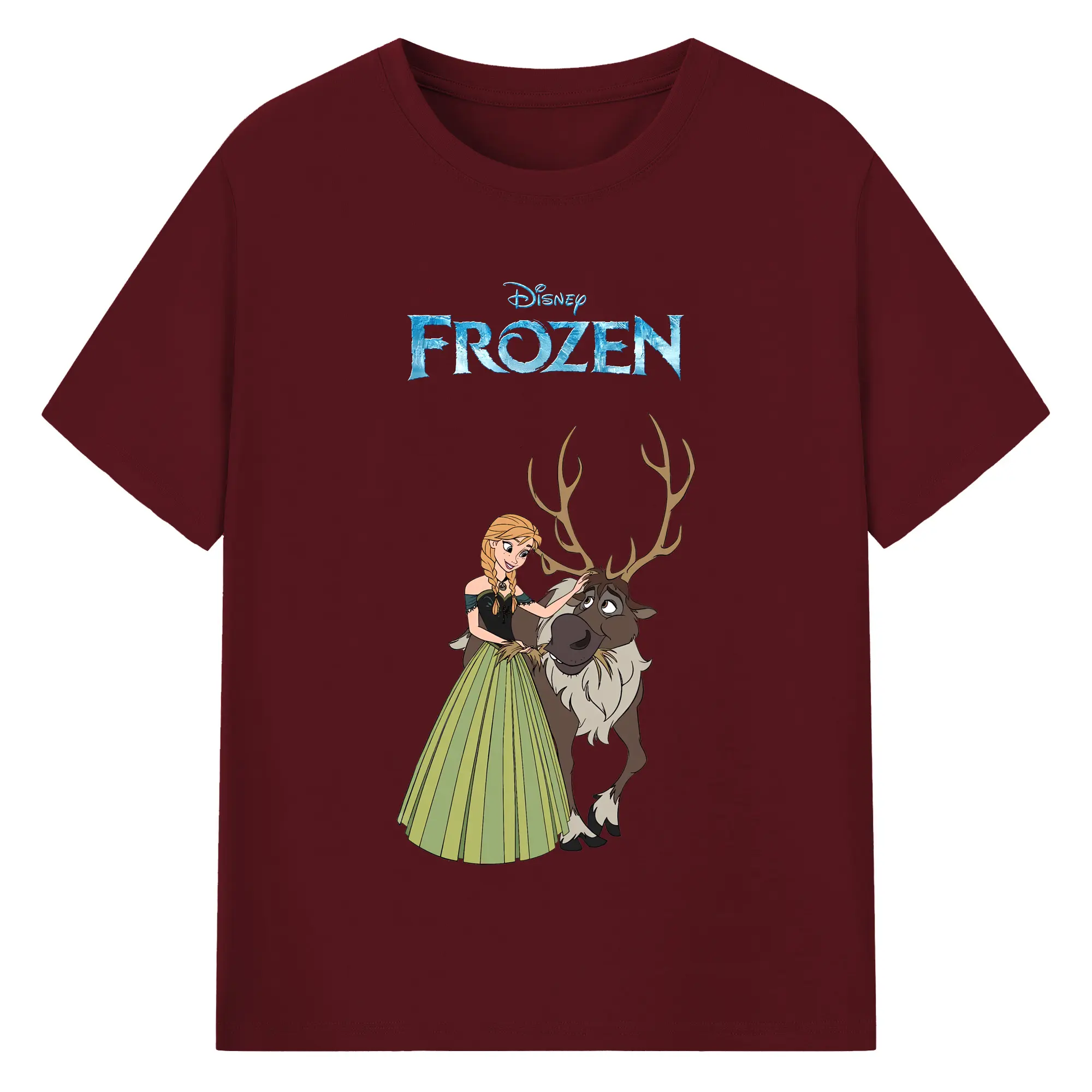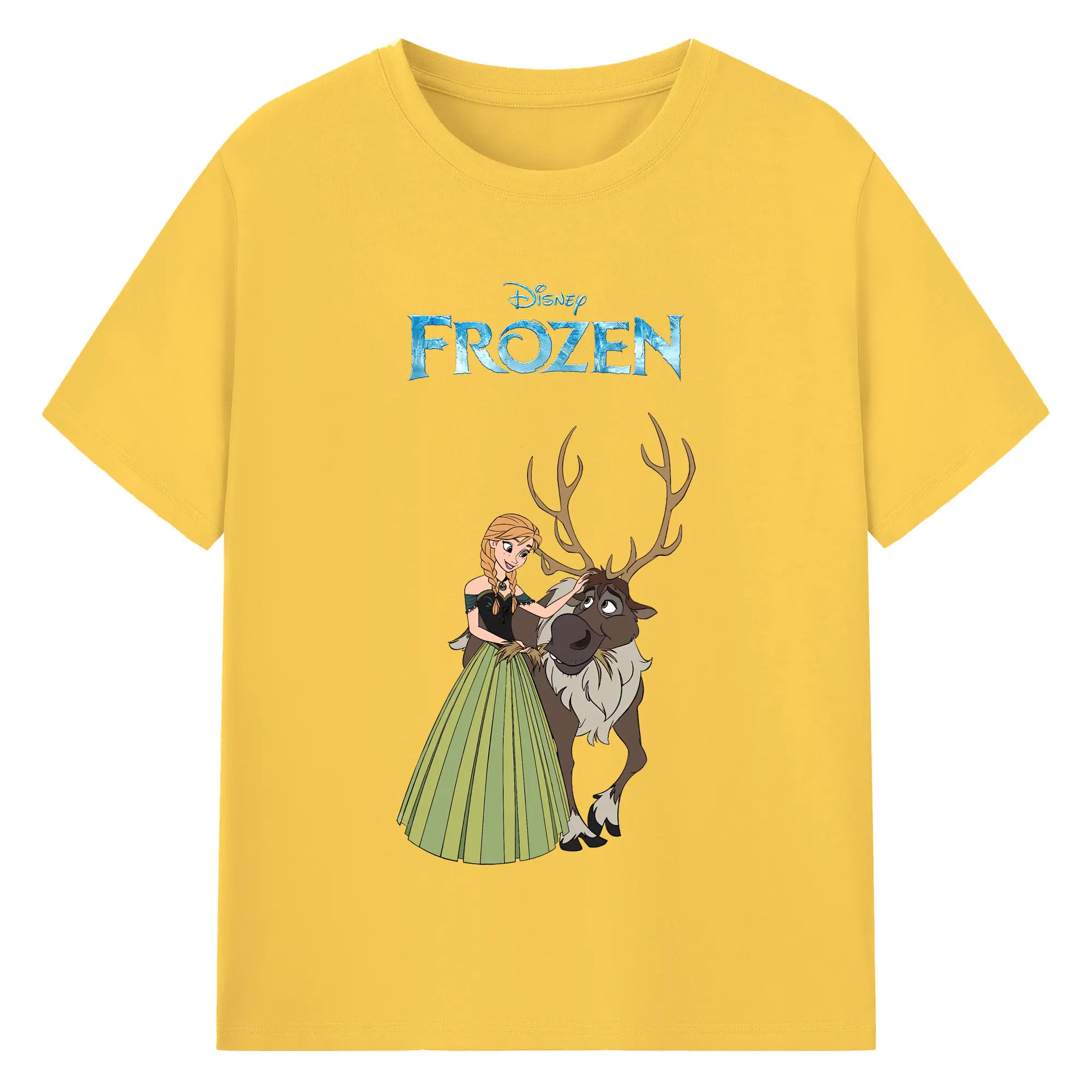 アナと雪の女王(Frozen) グッズ アナ(Anna) - 綿100% 半袖Tシャツ ・ バックプリント ・ 快適 通気性 ・ 日常使い 散歩 スポーツ用