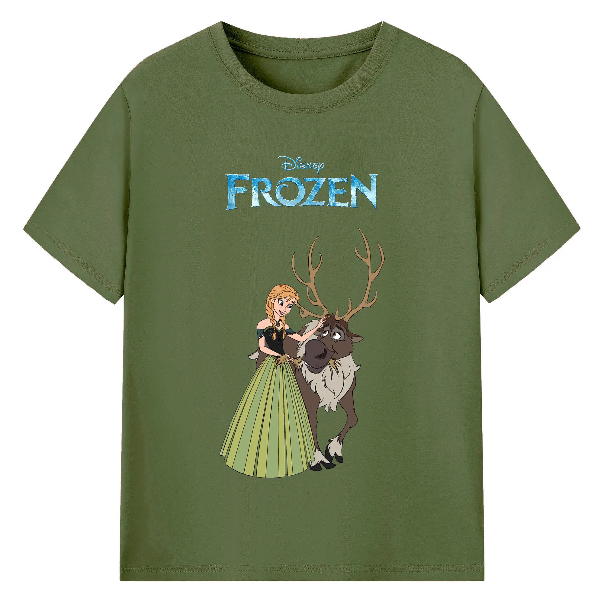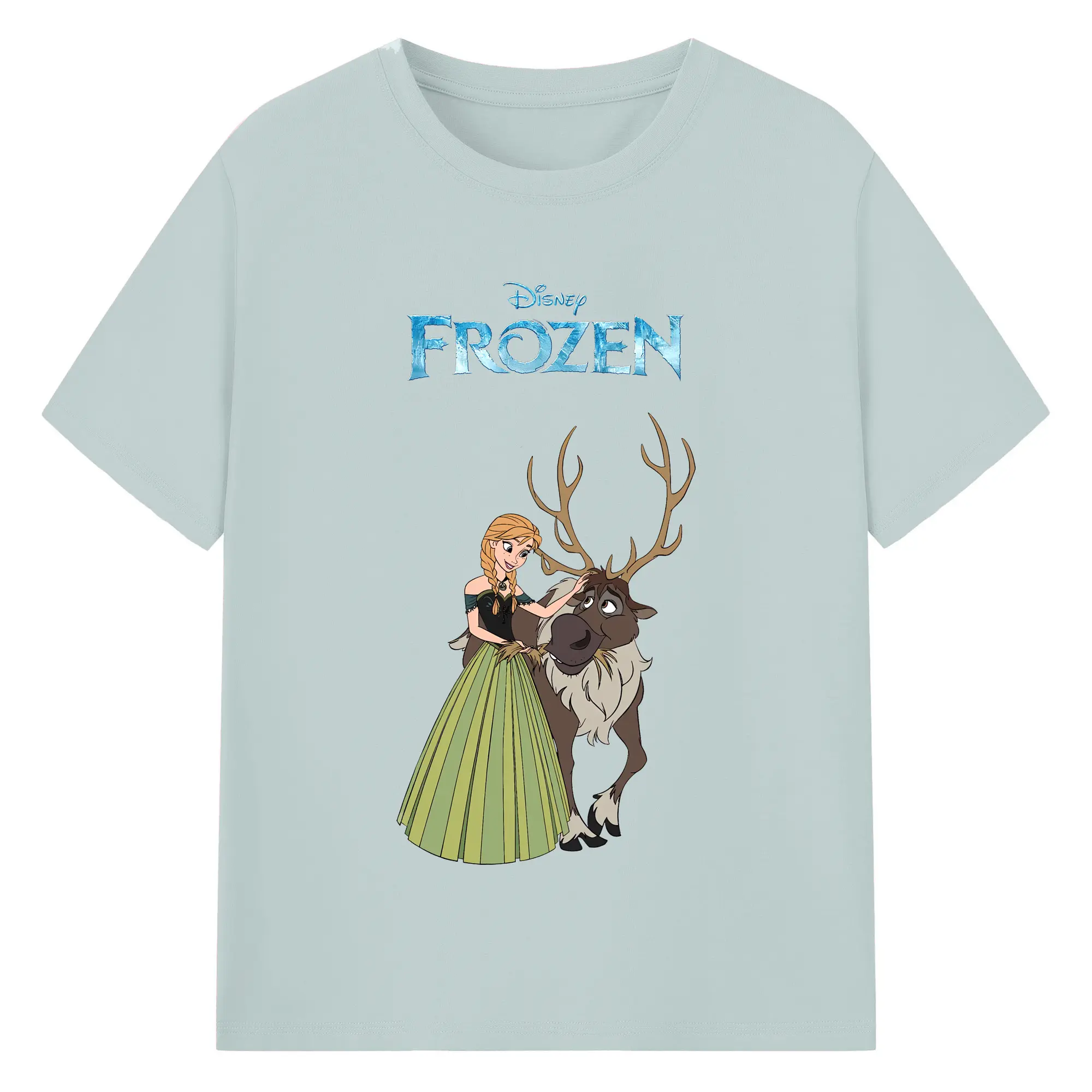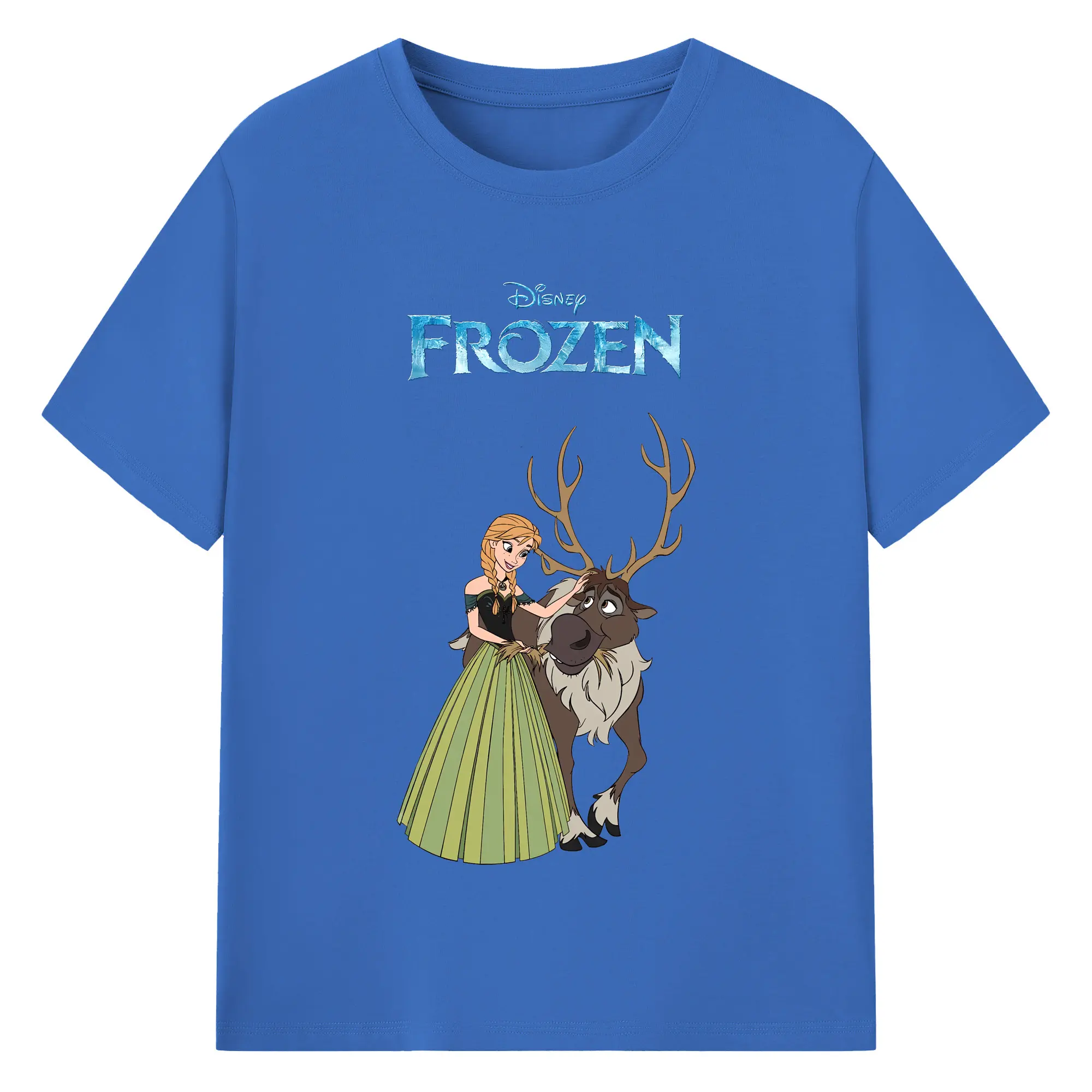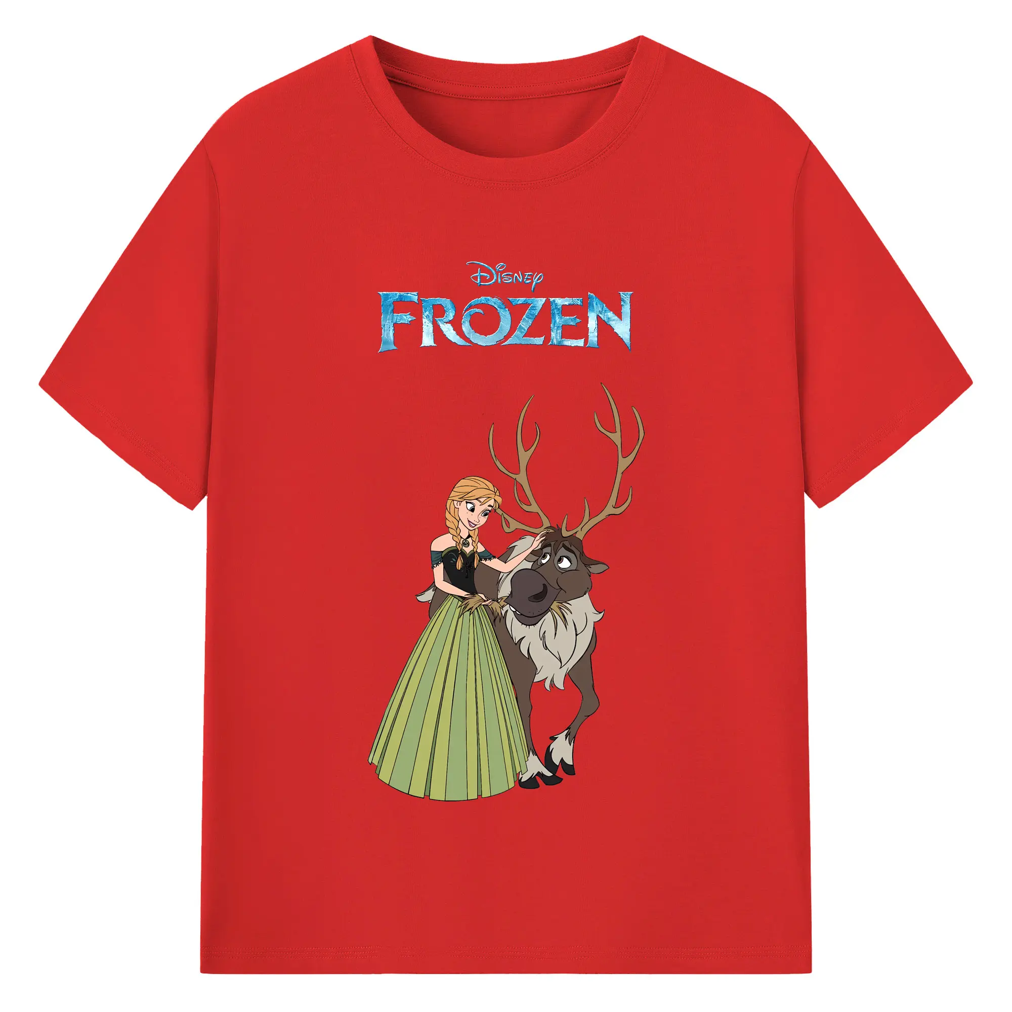 アナと雪の女王(Frozen) グッズ アナ(Anna) - 綿100% 半袖Tシャツ ・ バックプリント ・ 快適 通気性 ・ 日常使い 散歩 スポーツ用