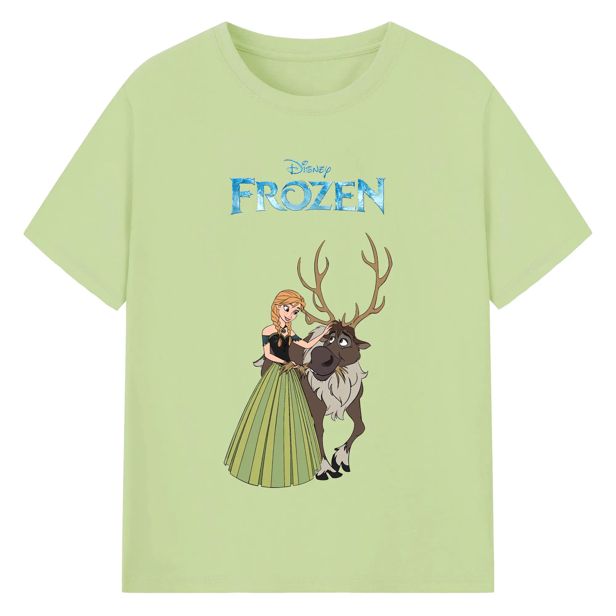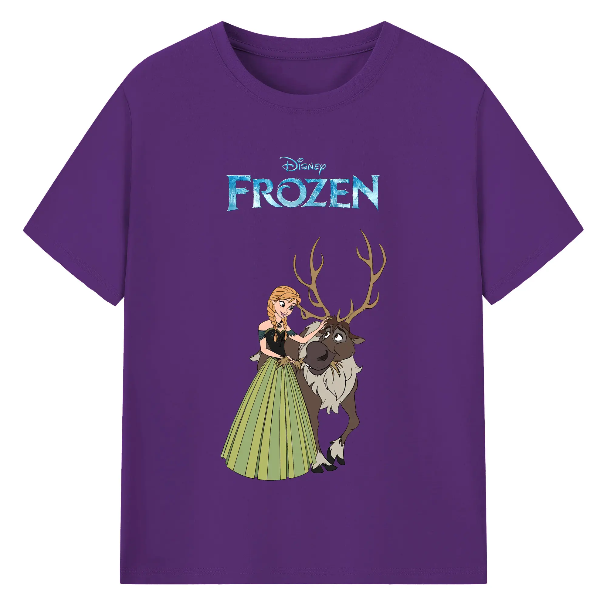 アナと雪の女王(Frozen) グッズ アナ(Anna) - 綿100% キッズTシャツ ・ フロントプリント ・ 快適 通気性 ・ スポーツ カジュアル 散歩用