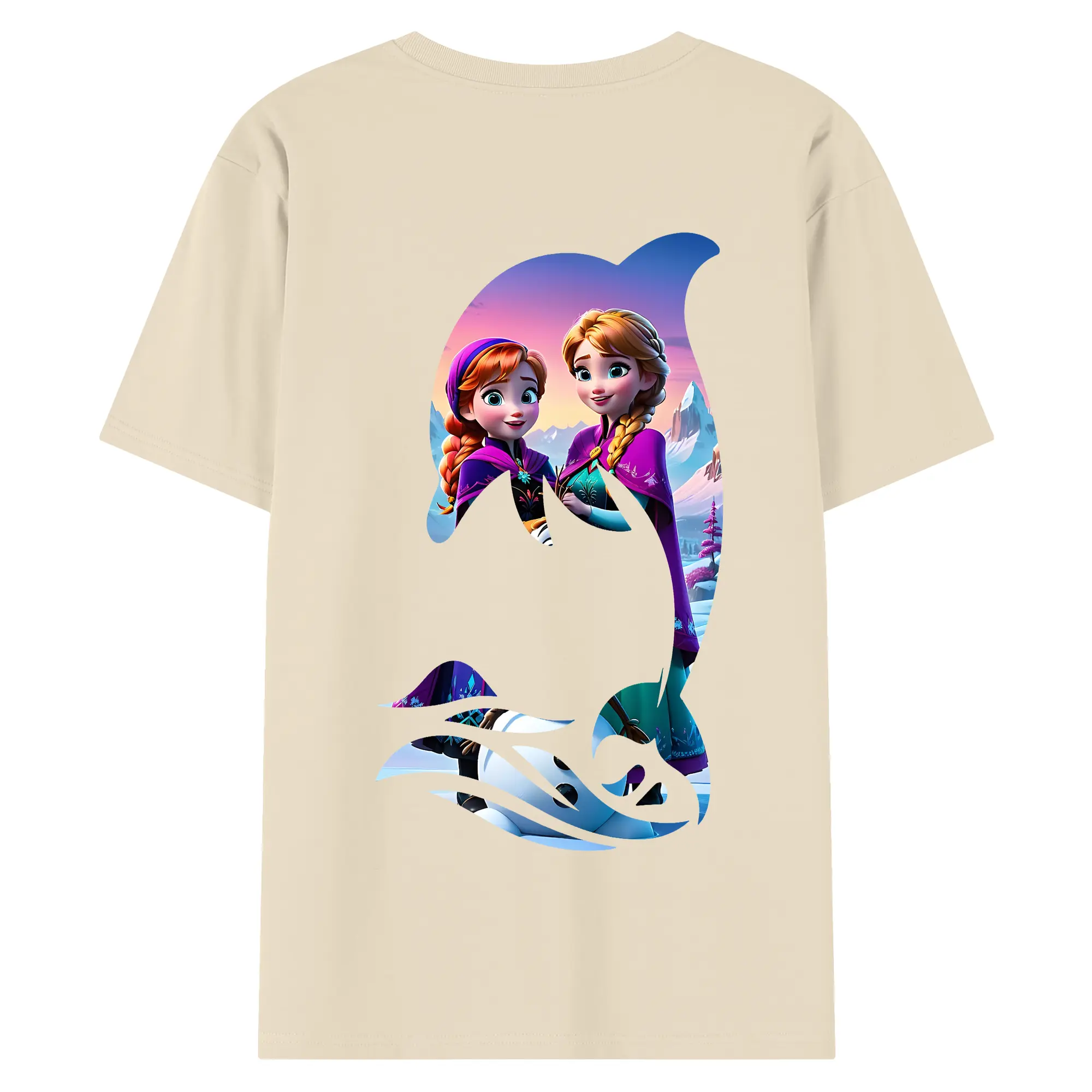 アナと雪の女王(Frozen) グッズ アナ(Anna) - 綿100% ヴィンテージ風 半袖Tシャツ ・ 背面プリント ・ 柔らか肌触り ・ 通気性 快適 ・ スポーツ カジュアル 外出用