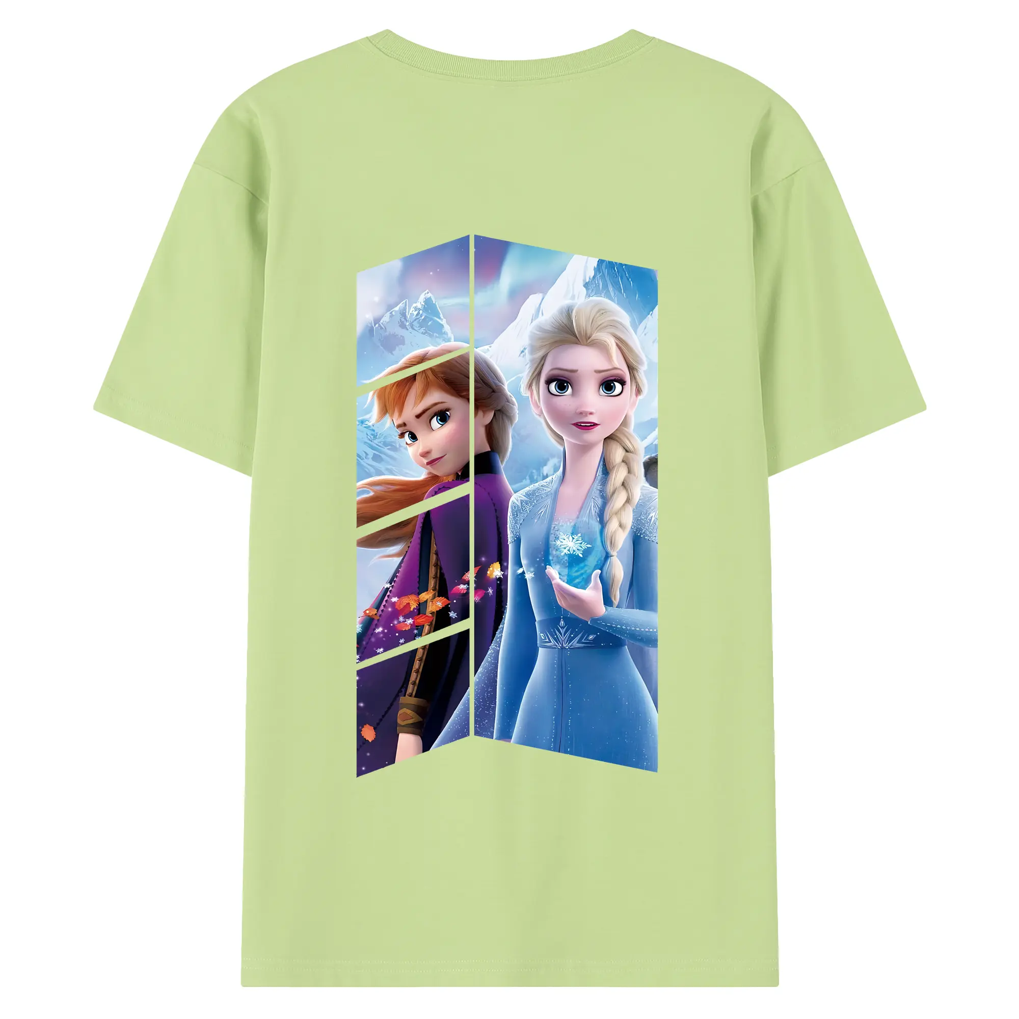 アナと雪の女王(Frozen) グッズ アナ(Anna) - 綿100% ヴィンテージ風 半袖Tシャツ ・ 背面プリント ・ 柔らか肌触り ・ 通気性 快適 ・ スポーツ カジュアル 外出用