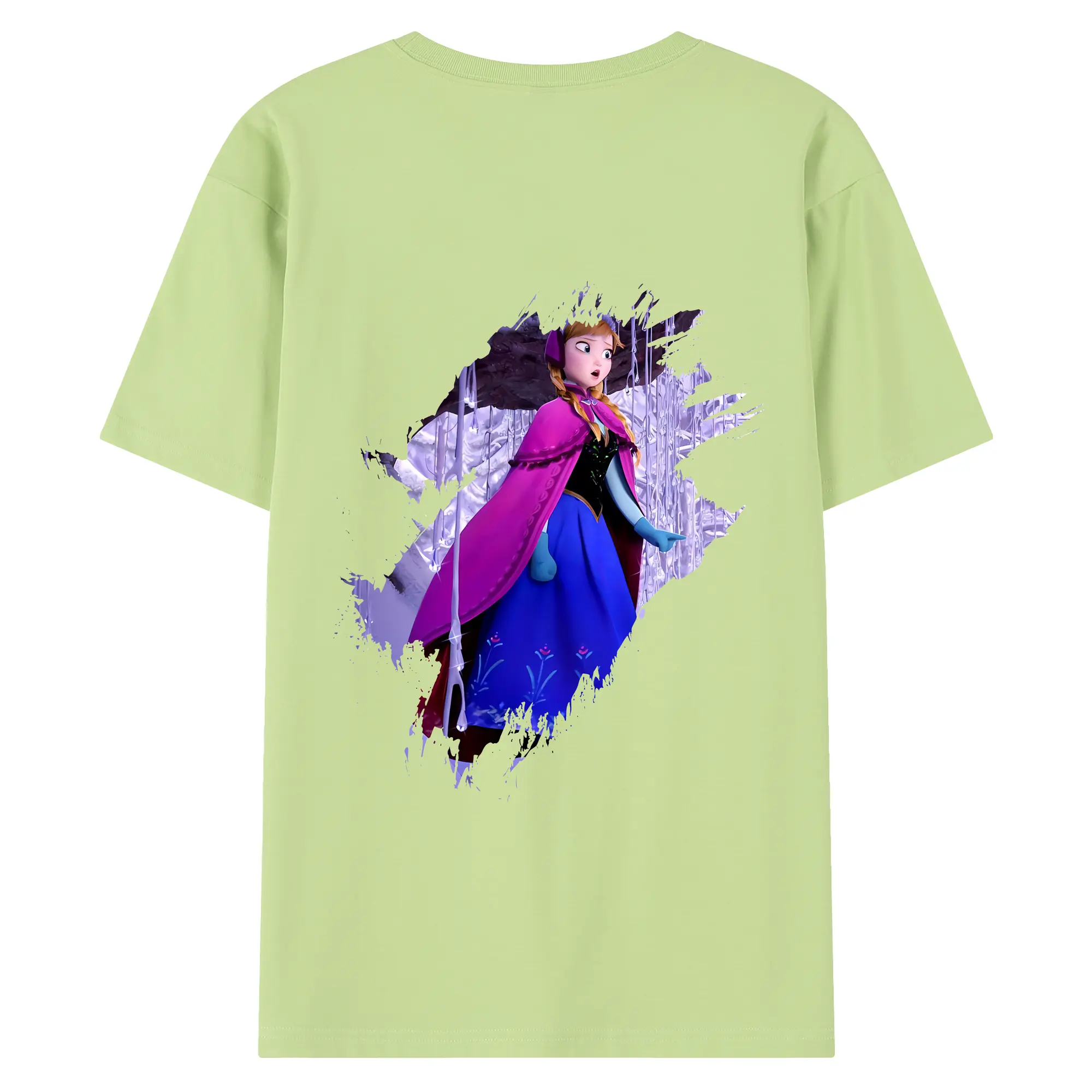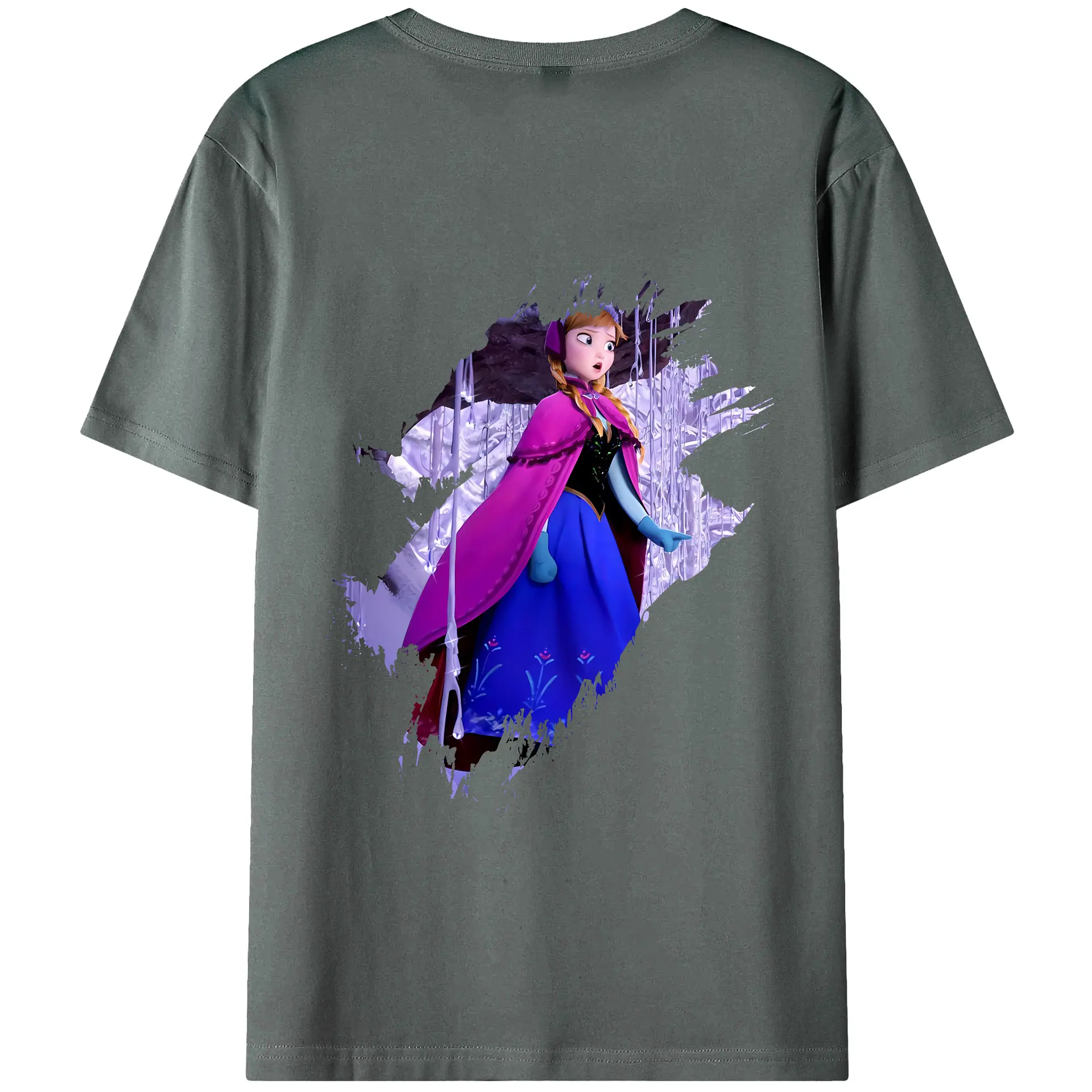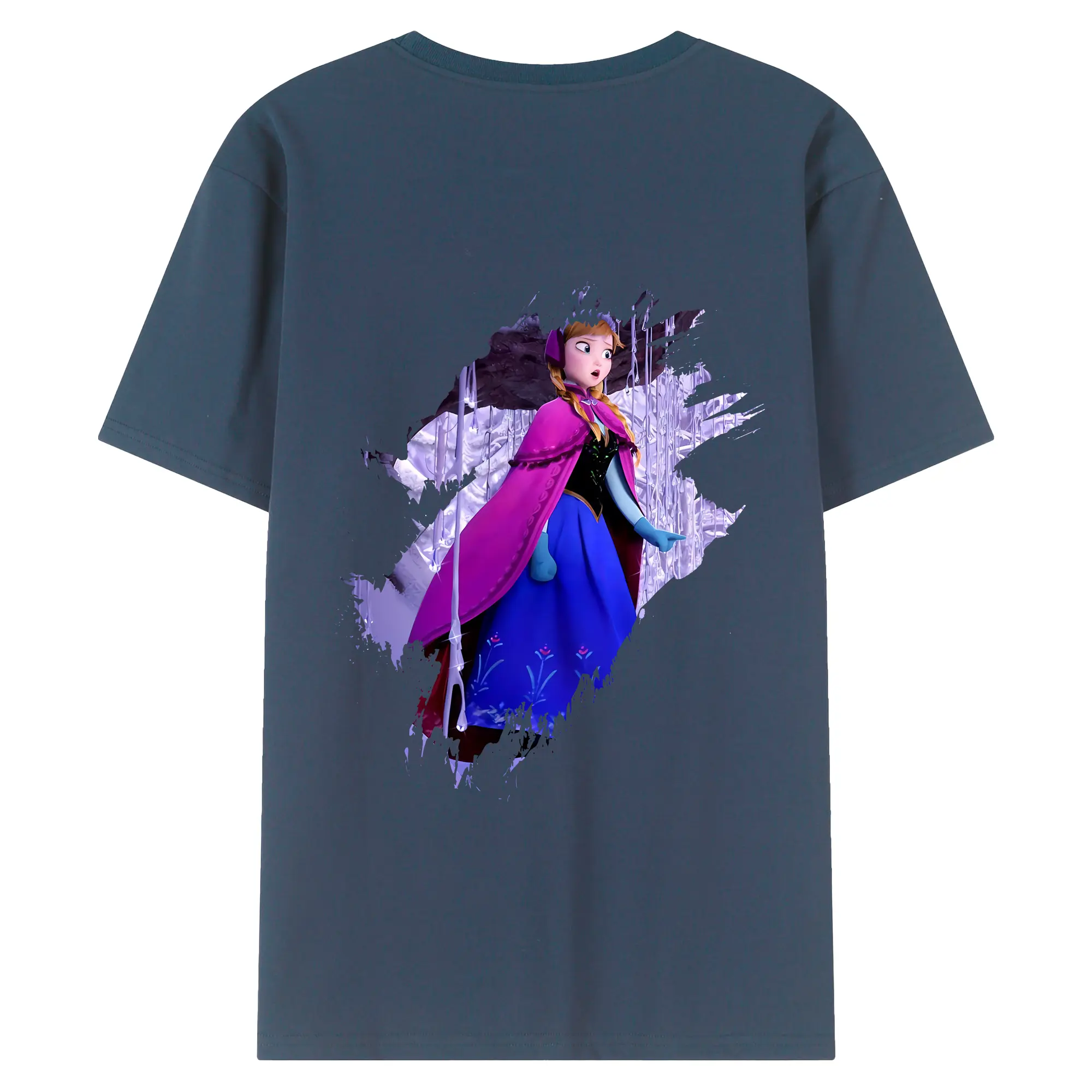 アナと雪の女王(Frozen) グッズ アナ(Anna) - 綿100% ヴィンテージ風 半袖Tシャツ ・ 背面プリント ・ 柔らか肌触り ・ 通気性 快適 ・ スポーツ カジュアル 外出用