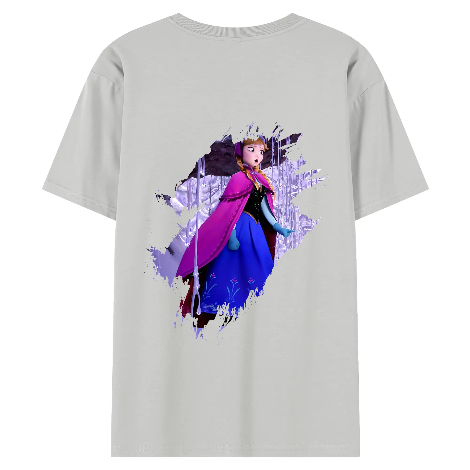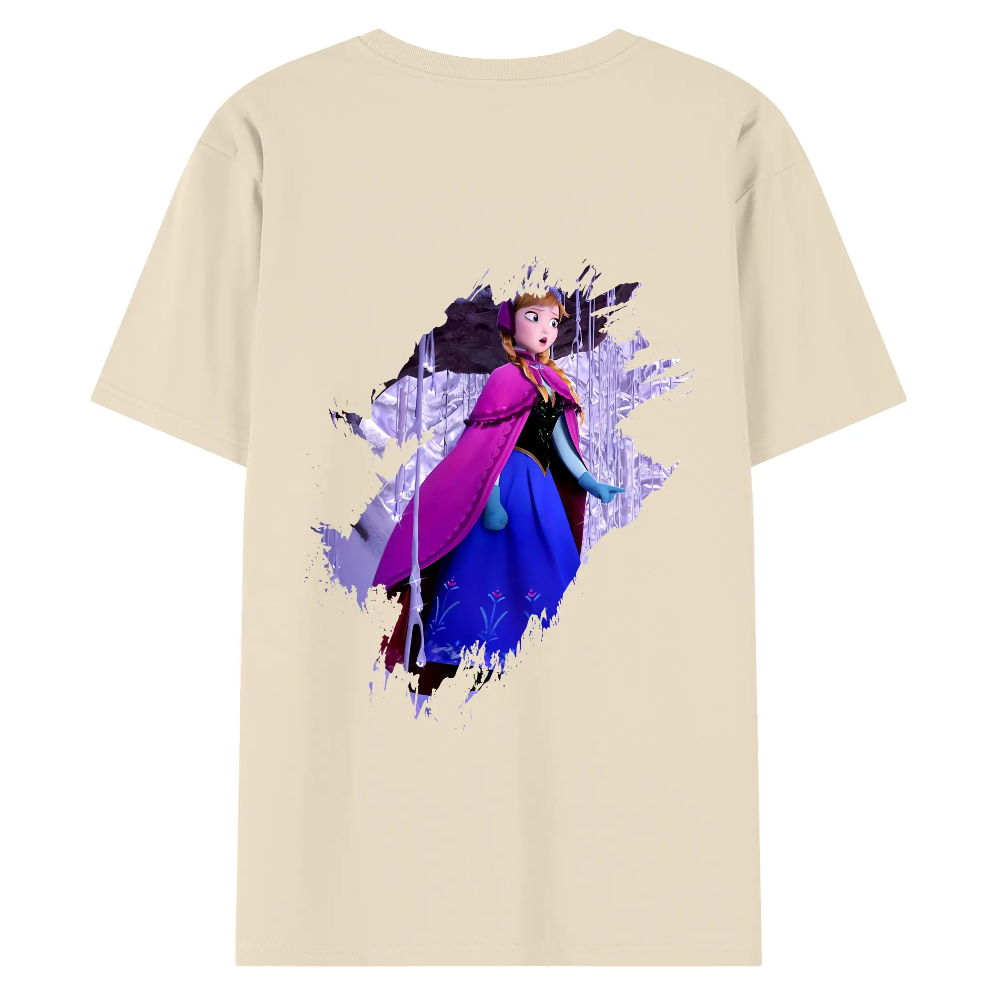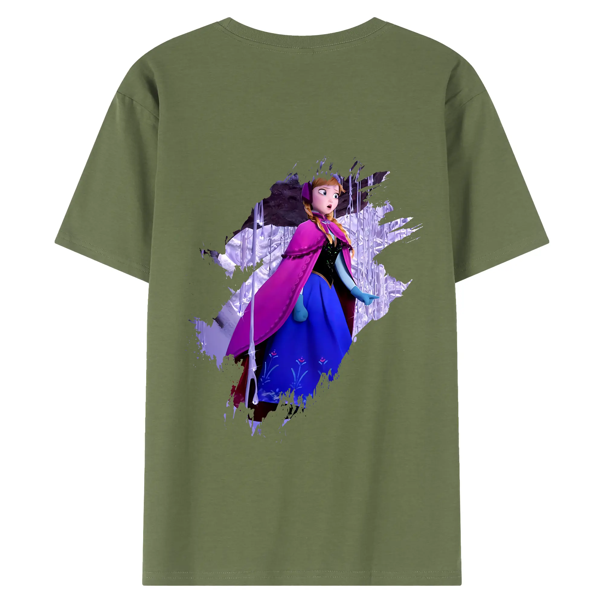 アナと雪の女王(Frozen) グッズ アナ(Anna) - 綿100% ヴィンテージ風 半袖Tシャツ ・ 背面プリント ・ 柔らか肌触り ・ 通気性 快適 ・ スポーツ カジュアル 外出用