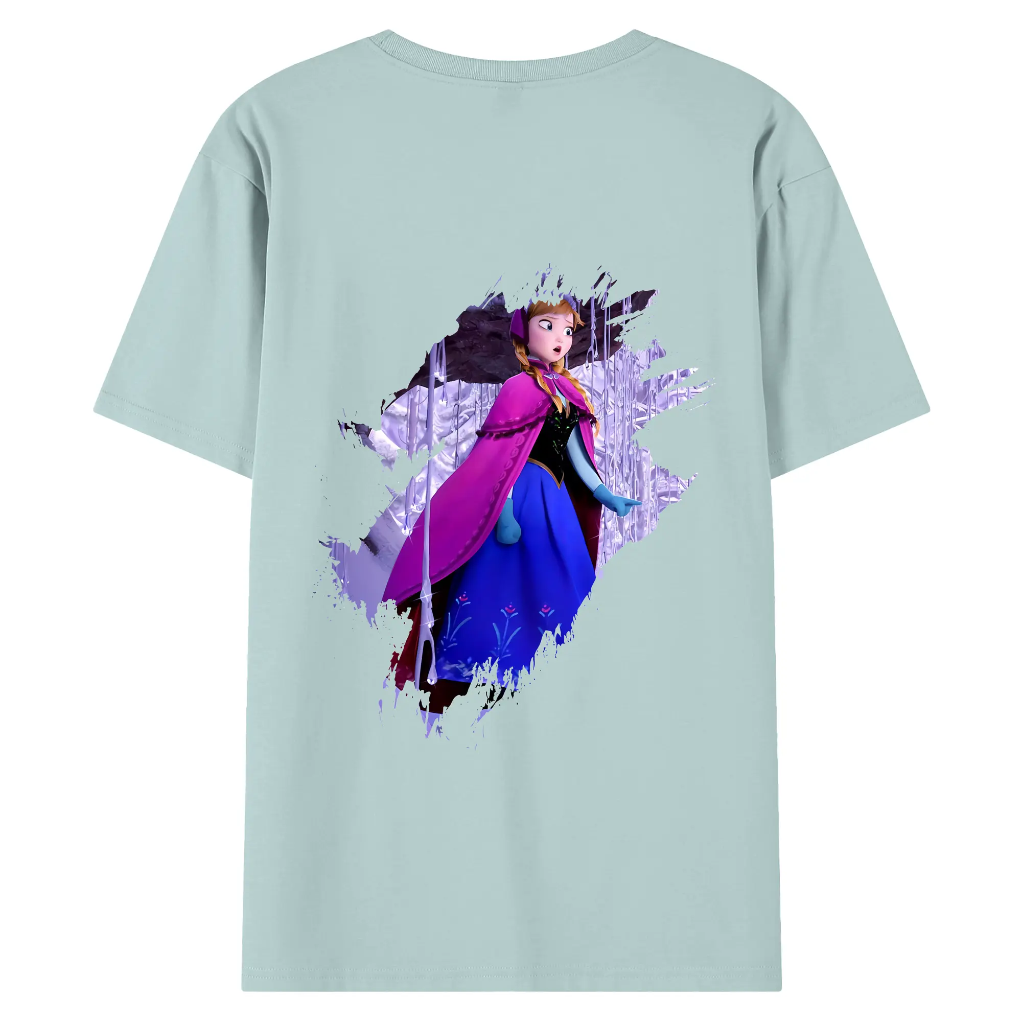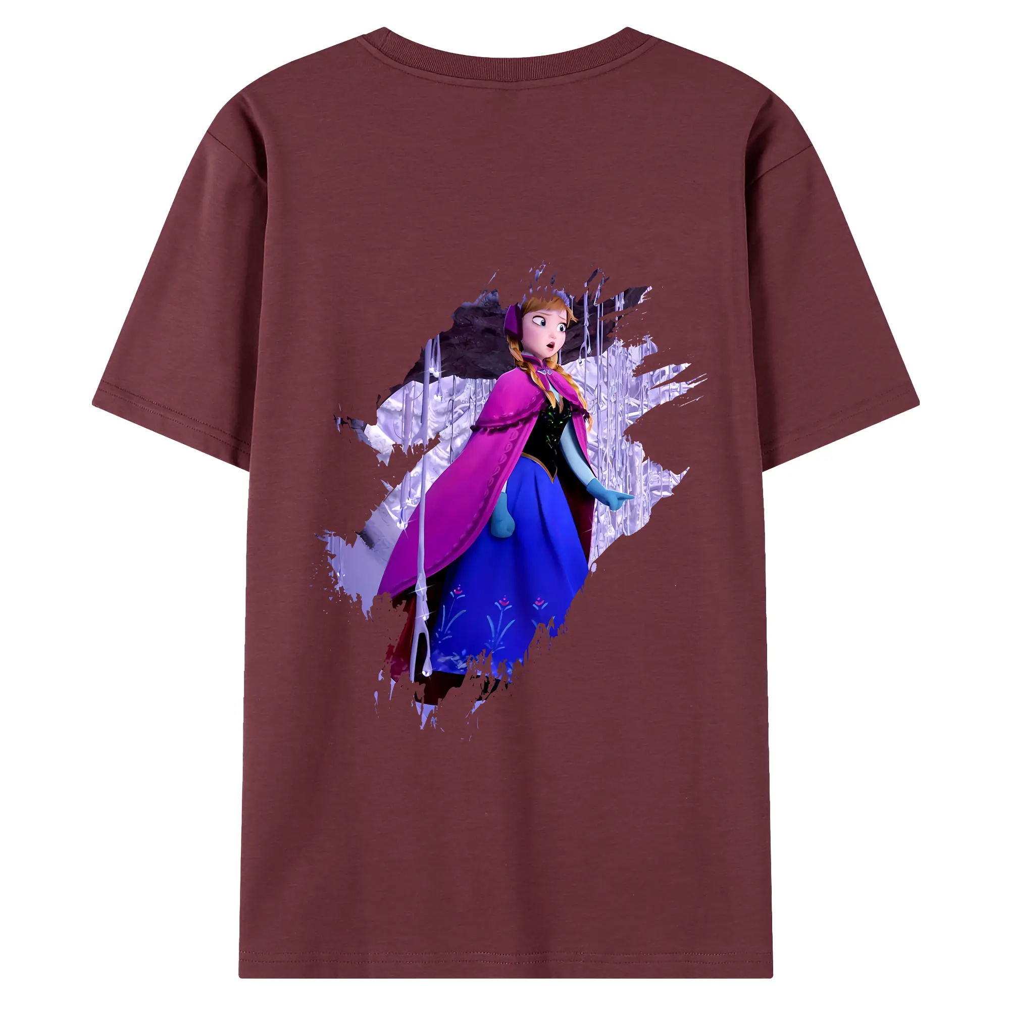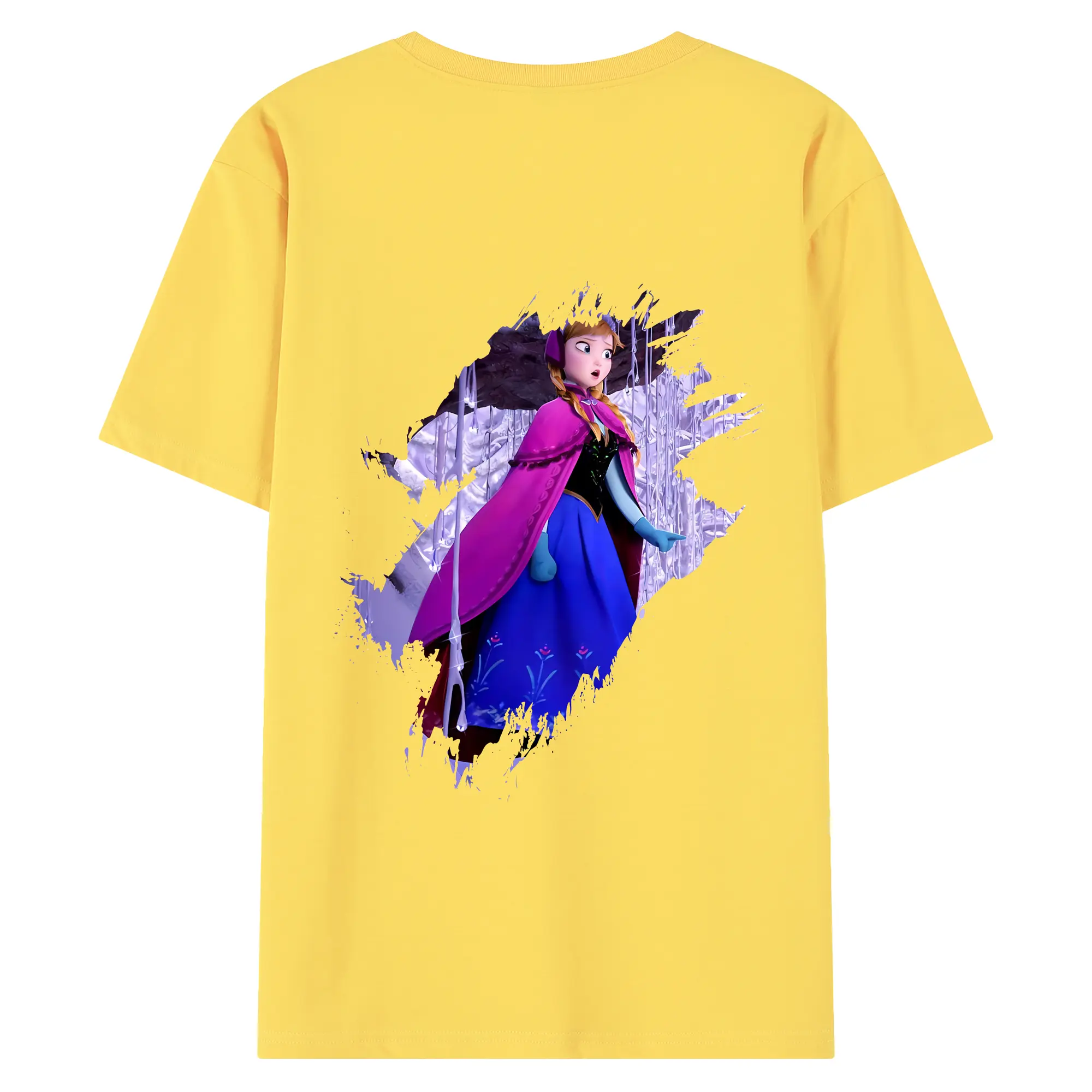 アナと雪の女王(Frozen) グッズ アナ(Anna) - 綿100% 半袖Tシャツ ・ フロントプリント ・ 快適 通気性 ・ 日常使い 散歩 スポーツ用