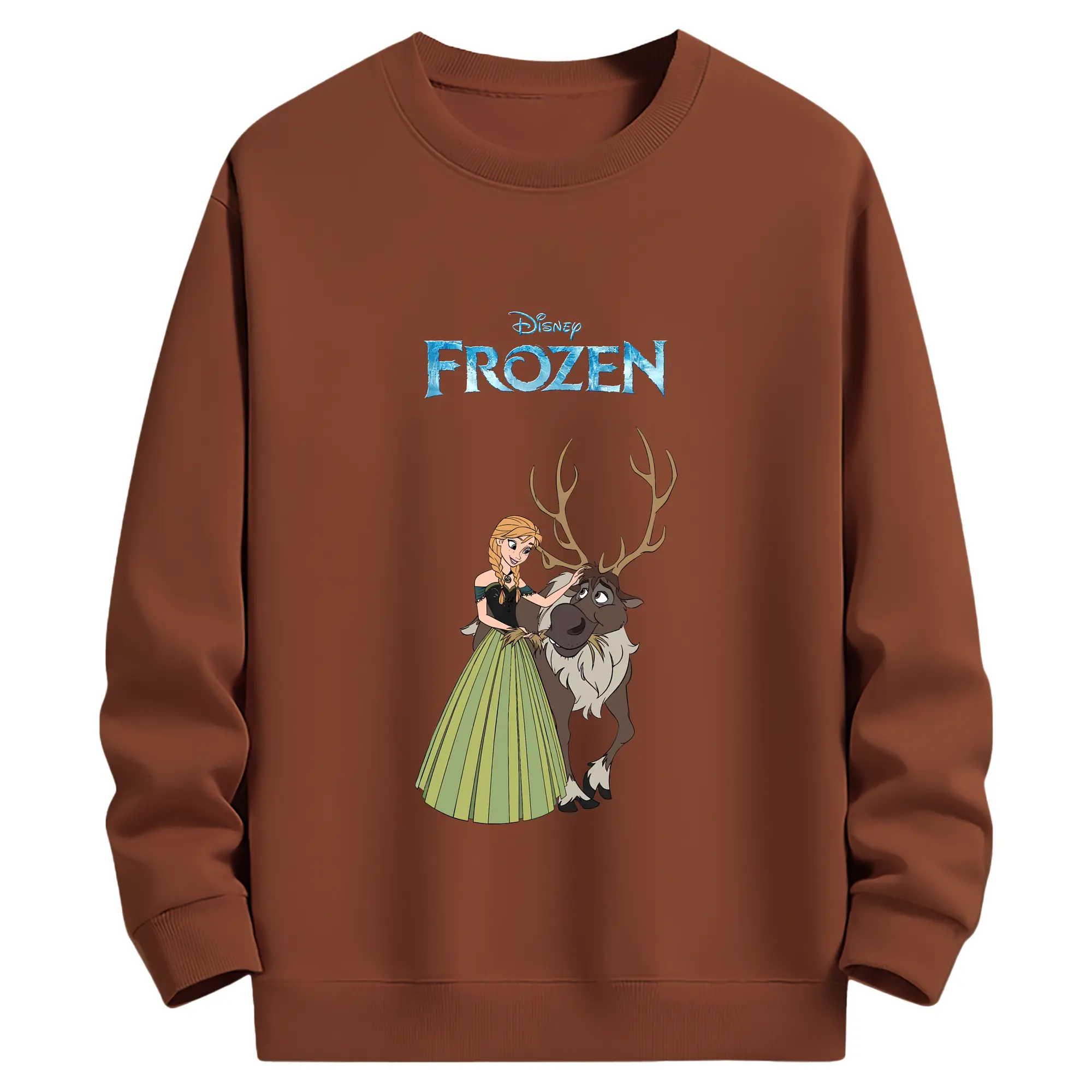 アナと雪の女王(Frozen) グッズ アナ(Anna) - 薄手 クルーネック スウェット 裏毛260g · ポリエステル 春秋向け カジュアル 男女兼用 · トレーナー デイリー スポーツ 散歩に最適