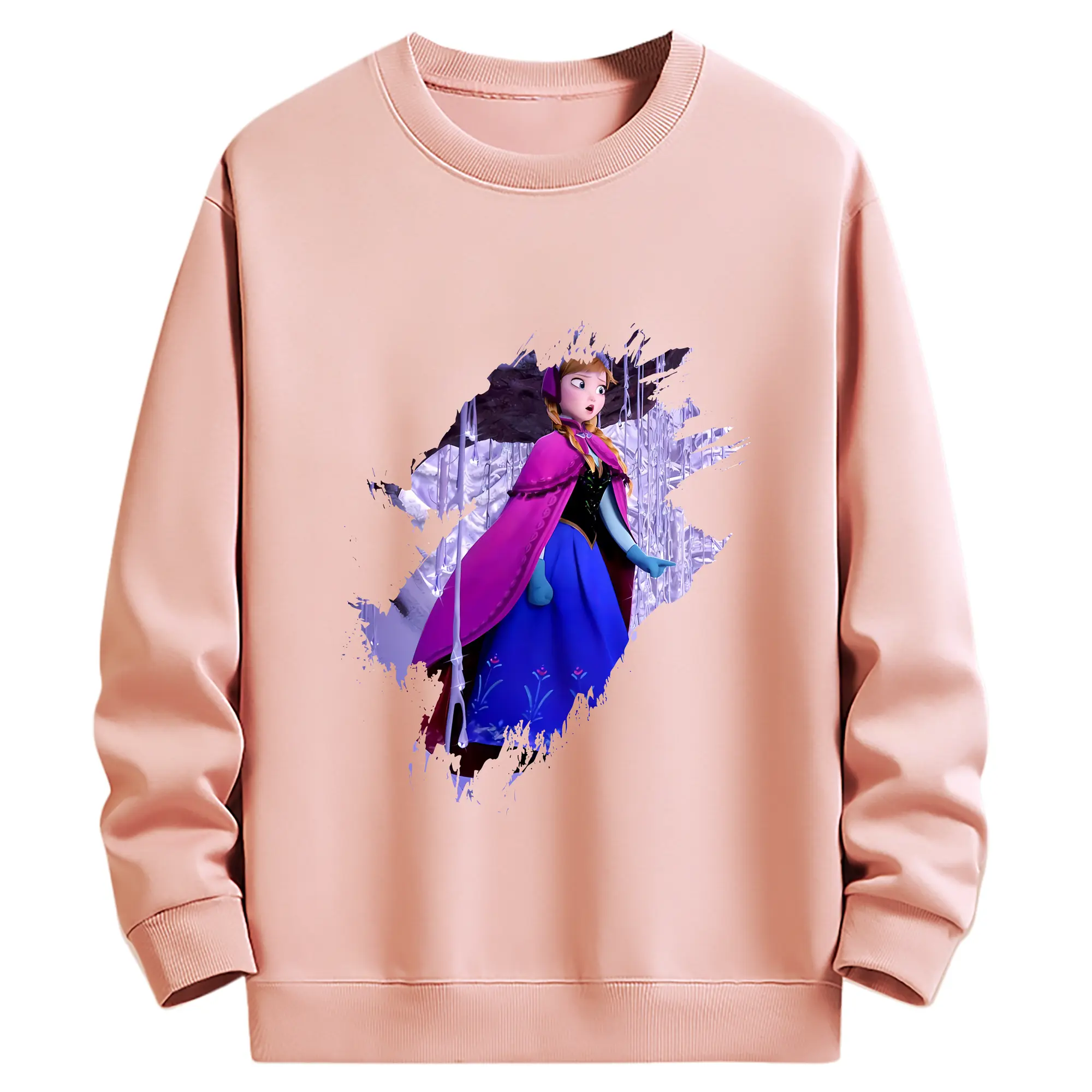アナと雪の女王(Frozen) グッズ アナ(Anna) - 薄手 クルーネック スウェット 裏毛260g · ポリエステル 春秋向け カジュアル 男女兼用 · トレーナー デイリー スポーツ 散歩に最適